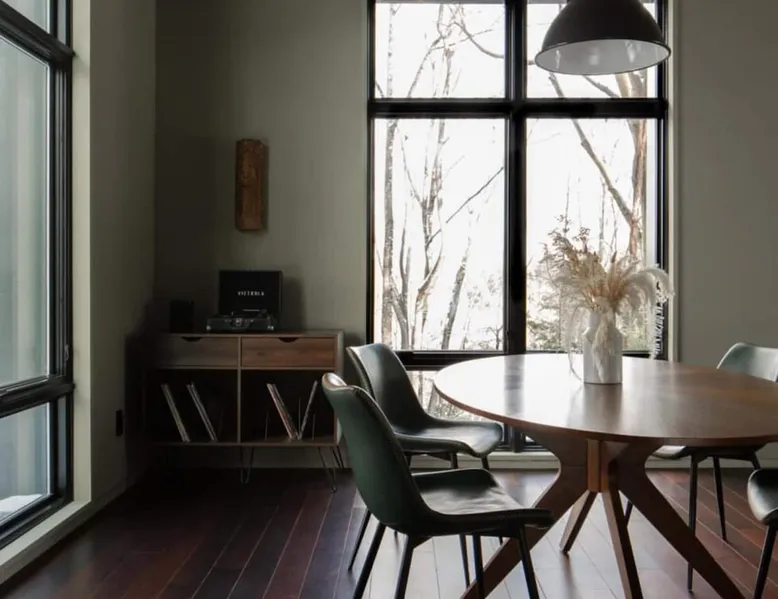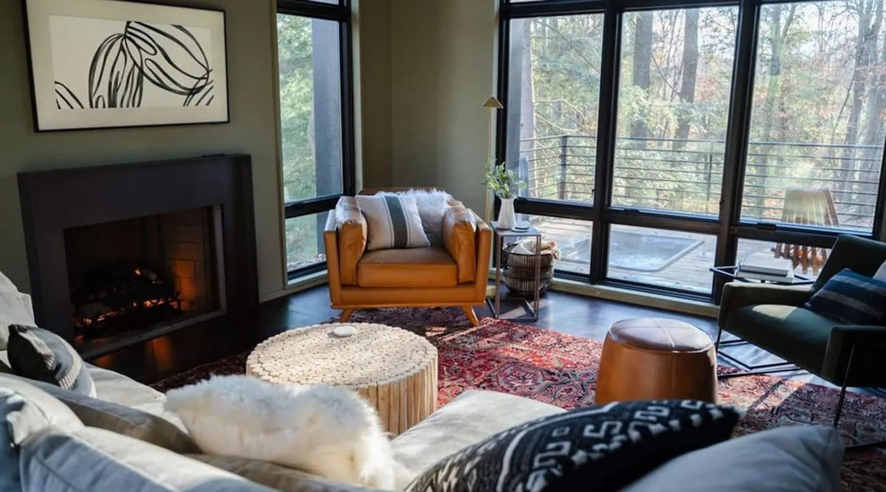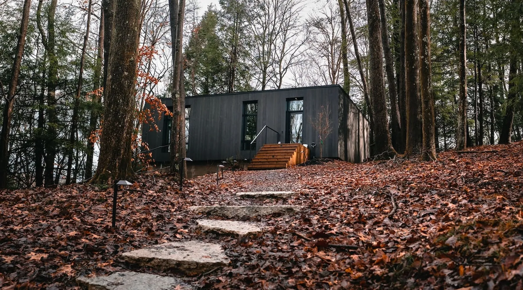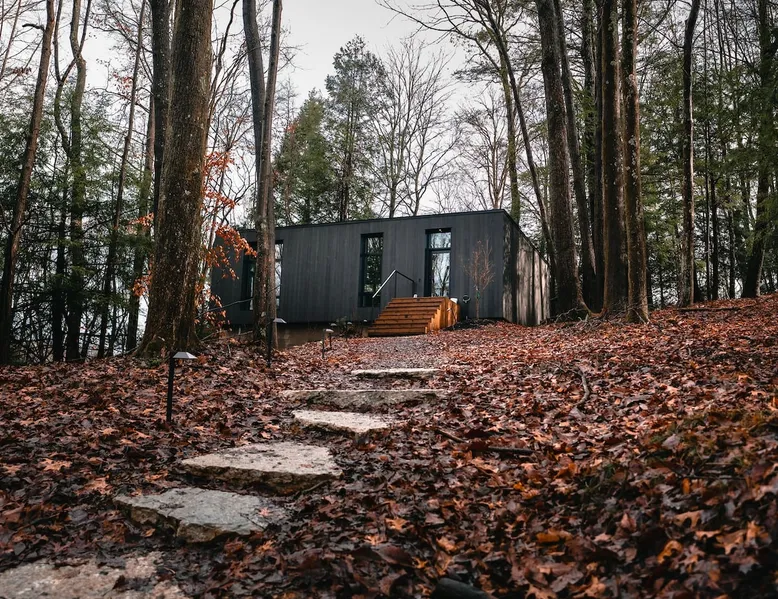 In the heart of Hocking Hills, Idyll Reserve is a collection of 5 modern, sustainable and luxurious vacation rental cabins. This stunning private property features hiking trails, treetop views, caves, and beautiful cabins, each with its own distinct character and features. ● Electric car chargers ● Hot tubs ● Dog friendly ● Fireplaces ● Soaking tubs ● Chefs’ kitchens ● Netflix, HBO Max, Disney Plus ● Sonos ● Fire pits ● Contact-free entry ● Foot access to miles of state hiking trails The space Warm and cozy, The Hillside Cabin is the perfect place to unpack your favorite book and open a bottle of wine. This Hygge Supply cabin sleeps up to 4 and features a large great room with fully equipped kitchen, a large living and dining area and a gas fireplace. A private hot tub, fire table, gas grill and a cozy lounge area complete your outdoor paradise. A 30-yard stone staircase leads the way from the parking area up to this treetop cabin, if steps are a problem for you, we advise you to look into booking The South (IR 1 - no steps, wheelchair accessible) or The North (IR 5 - about 10 steps). Well-behaved dogs are welcome in The Hillside Studio. ● 1 CA king bedroom ● 1 queen sleeper sofa in living room ● 1 bathroom Guest access The South and The Main Cabin (Idyll Reserve | 1 & 2) were built with guests with limited mobility in mind; a stepless ramp from parking to main entrance, a flat floor plan, and wide hallways and doors allow easier access. Please let us know directly if there are any other accommodations we can provide to make your stay more enjoyable. Other things to note Propane for gas grill and firewood for fire pit provided - you may want to bring a fire starter log or two. There is a pack-n-play with bedding, a high chair, and children's dishes and utensils stored in each cabin. Well-behaved dogs are welcome at The Cabin and The Hillside Studio (Idyll Reserve | 3 & 4).