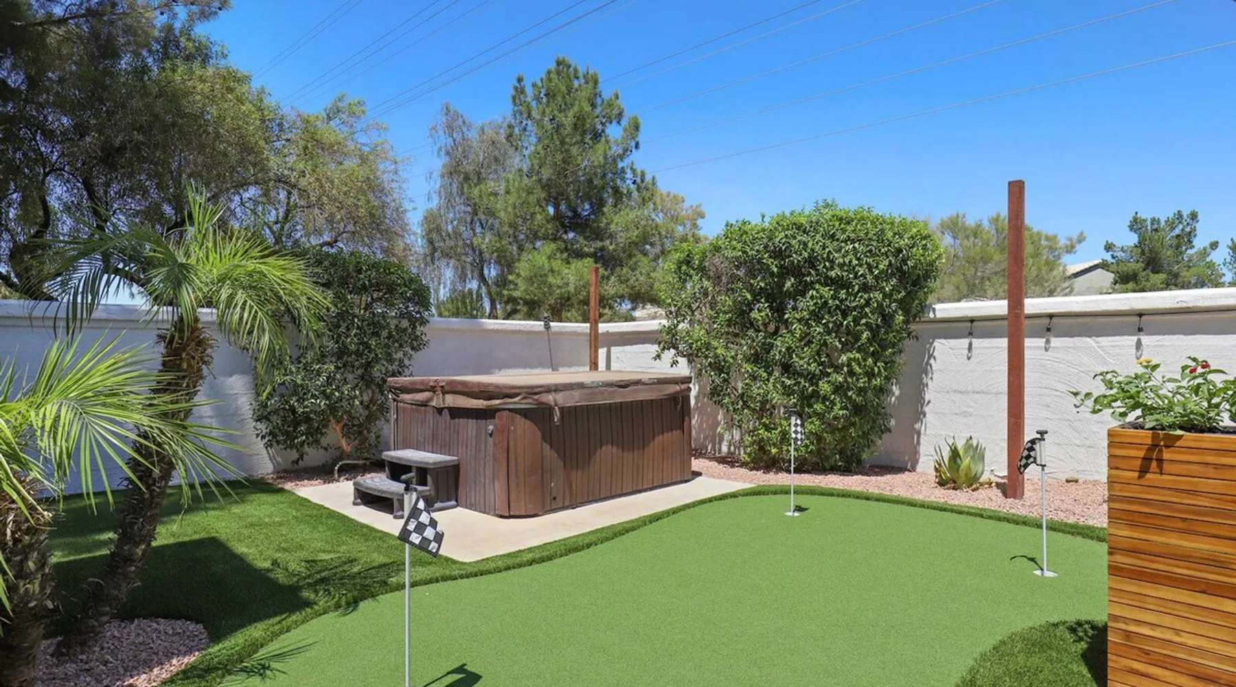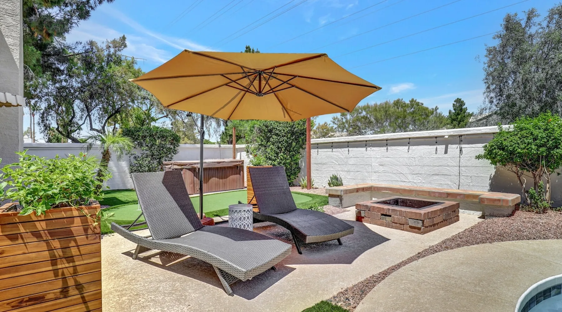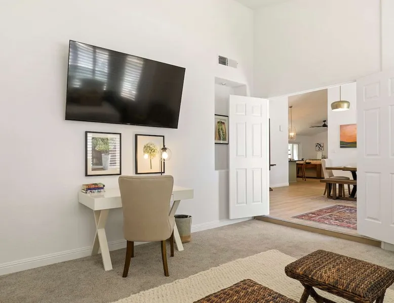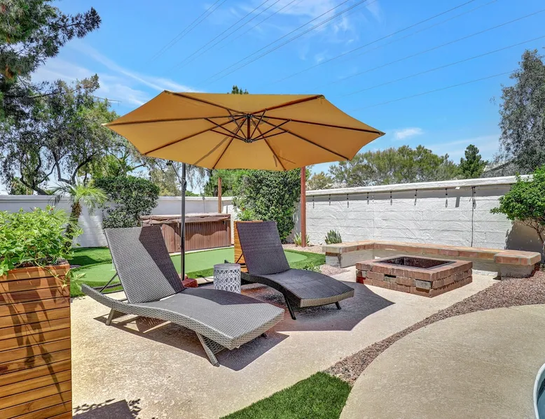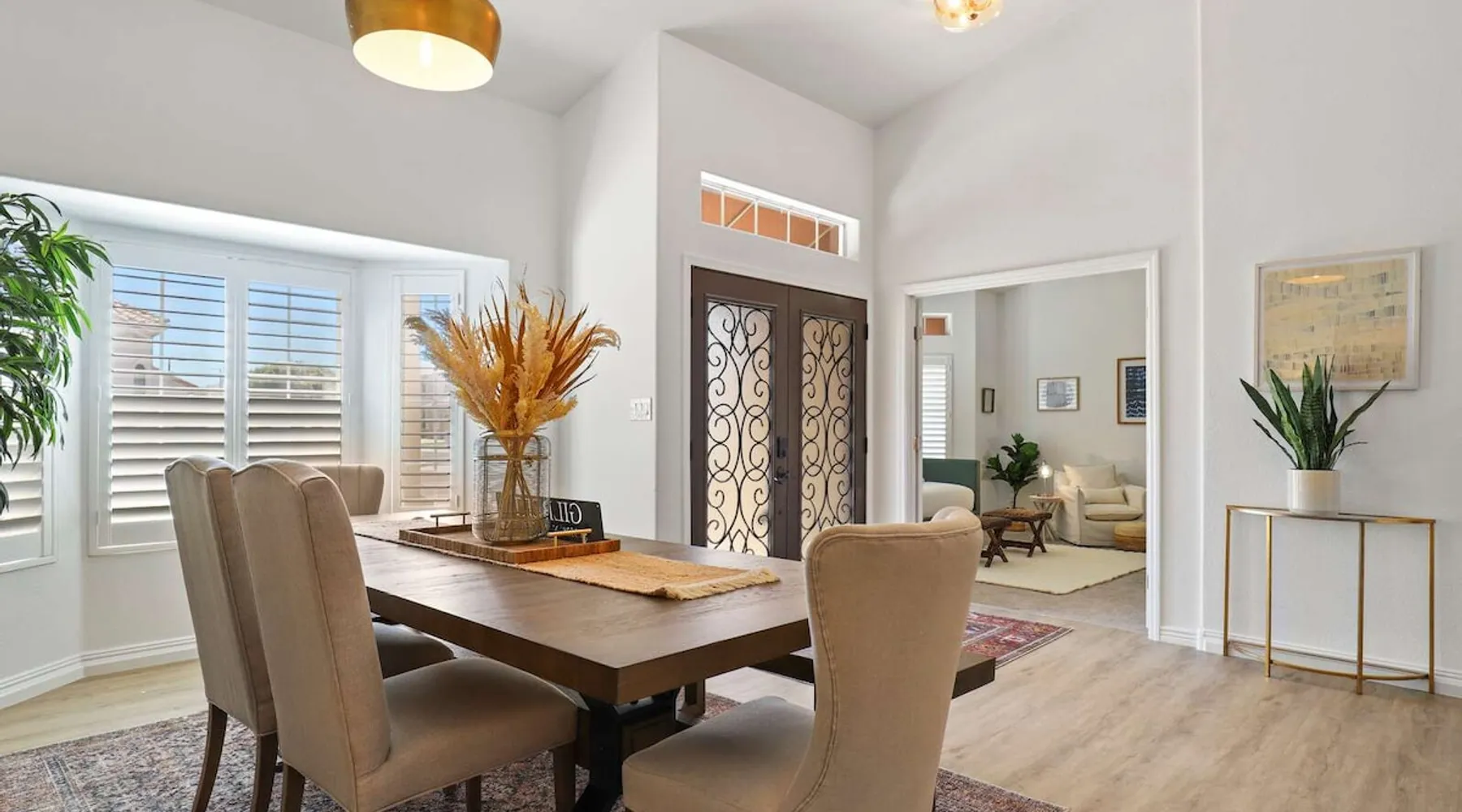 The BEST of Gilbert! This spectacular 5 Bedroom located in the stunning gated community of Val Vista lakes is sure to please everyone in your party! The space Welcome to 7th Heaven A designer desert retreat where style, comfort, and entertainment collide. This stunning 5-bedroom home is your private escape, perfect for families or groups seeking a memorable getaway. Ask us about summer monthly rates as low as $5,500! Outdoor Oasis Lounge by the crystal-clear heated pool, soak in the hot tub, grill out on the propane BBQ, or unwind by the fire pit. Outdoor games, a putting green, and plenty of luxurious seating ensure endless fun under the sun. Chef-Ready Kitchen Cook like a pro in the fully updated kitchen stocked with everything you need—from Starbucks drip coffee and Nespresso to a complimentary bottle of wine. Bon appétit! Special Features Heated Pool Hot Tub Game Room with basketball, lifesize Jenga, TV & more! Putting Green Fire Pit Smart TVs throughout Board Games & Kids’ Toys Kid-Friendly Safety Alarms on Pool Doors Private Office with Desk High-Speed WiFi Walkable to Park and Lake Pool heating is available December–April for $125 per night. Discounts apply to longer stays—ask us for details! Dining Areas Indoor dining table seats 10 Kitchen nook seats 4 Outdoor dining table seats 6 Dishes and utensils for up to 12 guests Bedrooms Master Suite King bed, private sitting area with fireplace and TV, ensuite bathroom with soaking tub and walk-in shower, walk-in closet, and direct yard access. Second Bedroom King bed, Smart TV, reach-in closet. Third Bedroom Queen bed, Smart TV, reach-in closet. Fourth Bedroom Two twin beds, books and toys, reach-in closet. Great for kids! Fifth Bedroom / Office Nook Twin trundle, 65" Smart TV, large desk and sitting area. Bathrooms Two full bathrooms: one ensuite in the master, one shared in the hallway. Both offer a combination bathtub and shower. Family Friendly Equipped with a travel crib, high chair, safety alarms on pool-access doors, kid-friendly dishes, and games—this home is built for families. Amenities High-quality linens and towels Paul Mitchell bathroom products Fully equipped laundry room with washer, dryer, iron, and ironing board Parking for 3 cars in the driveway and 1 in the garage Meet Your Hosts At Hotel Home Stays, we combine hotel-level hospitality with the comfort of a private home. We go above and beyond with rigorous cleaning, hypoallergenic bedding, and contactless check-in via your unique door code. Our digital guest book makes your stay seamless, and our local team is always ready to help with insider tips and quick support. Experience exceptional service and curated comfort—book your stay at 7th Heaven today! Other things to note Pet Policy: - Dogs under 20 lbs allowed, maximum of two. - Approval in writing required, $250 fee per pet. - Unapproved pets result in removal without refund, up to $1,500 in fines. - Cats not allowed due to severe allergies. - Service animals exempt; must be with owner at all times. House Rules: - No smoking or vaping indoors; $1,500 fine. - Disturbing the peace not tolerated; violators asked to leave without refund. - No parties with outside guests; maximum 12 people in the house. - Quiet hours: 10 PM - 8 AM; no loud music. Pool Heating Details: - Optional for $125 per night. - Recommended Oct 15th - April 30th for comfortable swimming. - 3-day advance notice required. - Heating required for entire stay; cannot be turned on/off daily. Concierge Services: - Provided by 3rd party vendors; not affiliated with property owner. - Renter assumes responsibility for third-party activities. Check-In and Check-Out: - Free early/late check-in/out if available; extra fee may apply. - Keyless entry via unique security code provided upon arrival. - Simple check-out instructions provided. - Rental contract emailed for electronic signature before check-in. - Credit card and photo ID required for incidentals.