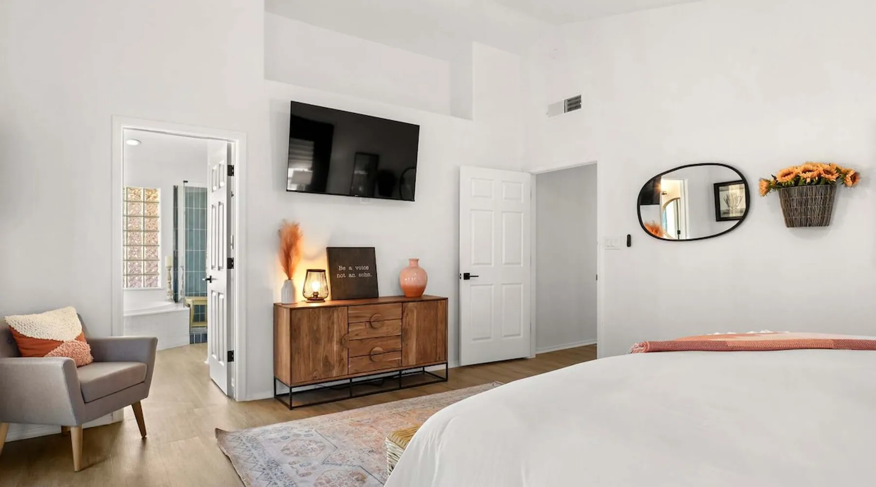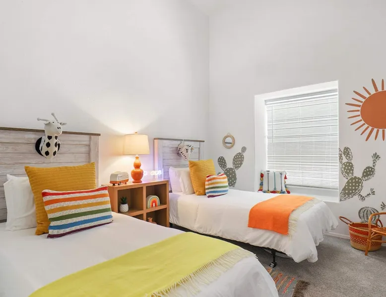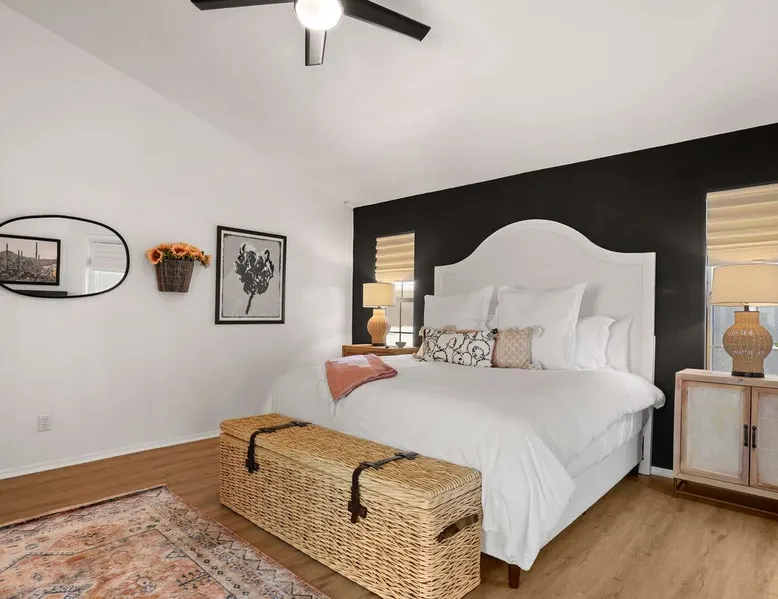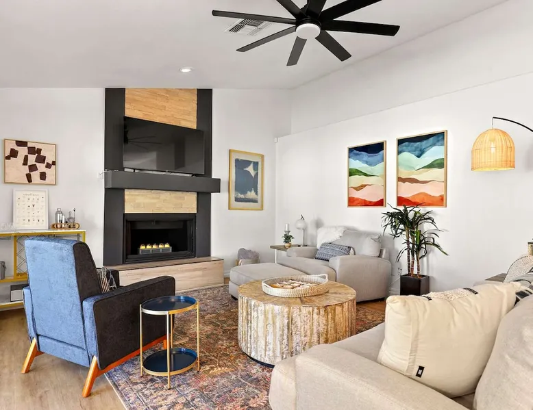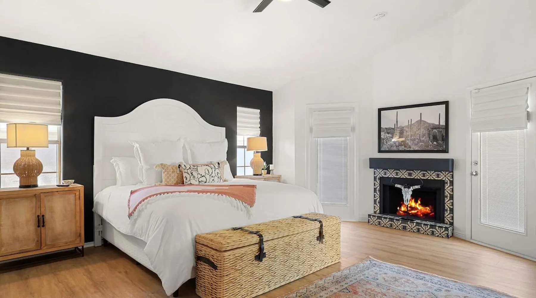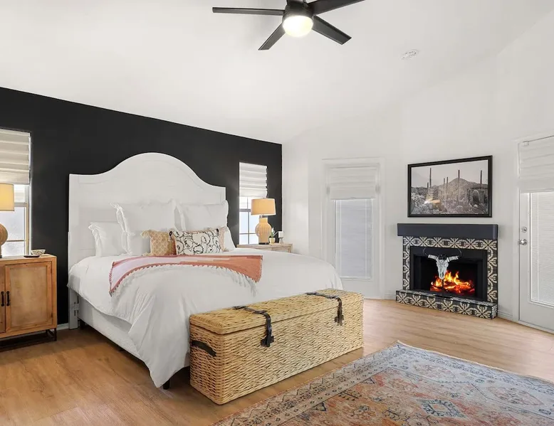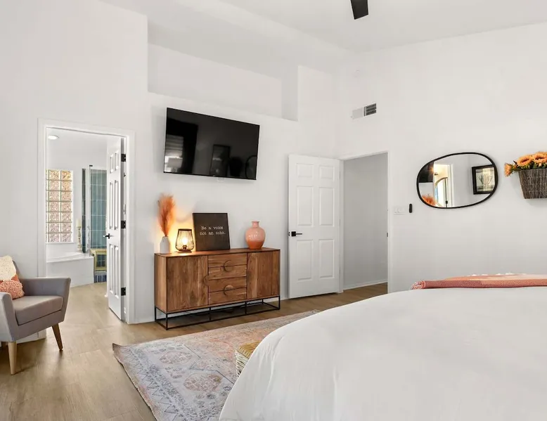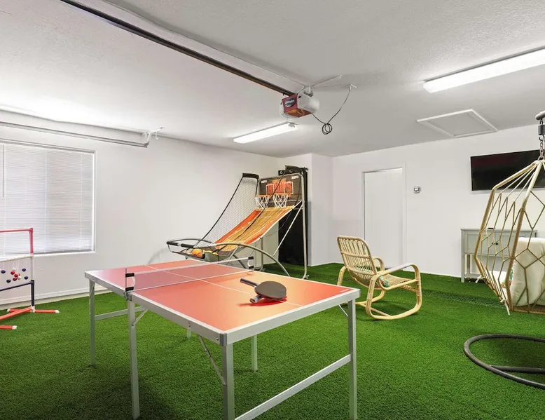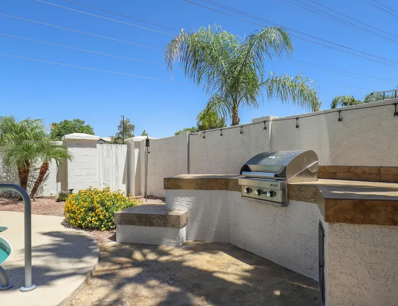 The BEST of Gilbert! This spectacular 5 Bedroom located in the stunning gated community of Val Vista lakes is sure to please everyone in your party! The space Welcome to 7th Heaven A designer desert retreat where style, comfort, and entertainment collide. This stunning 5-bedroom home is your private escape, perfect for families or groups seeking a memorable getaway. Ask us about summer monthly rates as low as $5,500! Outdoor Oasis Lounge by the crystal-clear heated pool, soak in the hot tub, grill out on the propane BBQ, or unwind by the fire pit. Outdoor games, a putting green, and plenty of luxurious seating ensure endless fun under the sun. Chef-Ready Kitchen Cook like a pro in the fully updated kitchen stocked with everything you need—from Starbucks drip coffee and Nespresso to a complimentary bottle of wine. Bon appétit! Special Features Heated Pool Hot Tub Game Room with basketball, lifesize Jenga, TV & more! Putting Green Fire Pit Smart TVs throughout Board Games & Kids’ Toys Kid-Friendly Safety Alarms on Pool Doors Private Office with Desk High-Speed WiFi Walkable to Park and Lake Pool heating is available December–April for $125 per night. Discounts apply to longer stays—ask us for details! Dining Areas Indoor dining table seats 10 Kitchen nook seats 4 Outdoor dining table seats 6 Dishes and utensils for up to 12 guests Bedrooms Master Suite King bed, private sitting area with fireplace and TV, ensuite bathroom with soaking tub and walk-in shower, walk-in closet, and direct yard access. Second Bedroom King bed, Smart TV, reach-in closet. Third Bedroom Queen bed, Smart TV, reach-in closet. Fourth Bedroom Two twin beds, books and toys, reach-in closet. Great for kids! Fifth Bedroom / Office Nook Twin trundle, 65" Smart TV, large desk and sitting area. Bathrooms Two full bathrooms: one ensuite in the master, one shared in the hallway. Both offer a combination bathtub and shower. Family Friendly Equipped with a travel crib, high chair, safety alarms on pool-access doors, kid-friendly dishes, and games—this home is built for families. Amenities High-quality linens and towels Paul Mitchell bathroom products Fully equipped laundry room with washer, dryer, iron, and ironing board Parking for 3 cars in the driveway and 1 in the garage Meet Your Hosts At Hotel Home Stays, we combine hotel-level hospitality with the comfort of a private home. We go above and beyond with rigorous cleaning, hypoallergenic bedding, and contactless check-in via your unique door code. Our digital guest book makes your stay seamless, and our local team is always ready to help with insider tips and quick support. Experience exceptional service and curated comfort—book your stay at 7th Heaven today! Other things to note Pet Policy: - Dogs under 20 lbs allowed, maximum of two. - Approval in writing required, $250 fee per pet. - Unapproved pets result in removal without refund, up to $1,500 in fines. - Cats not allowed due to severe allergies. - Service animals exempt; must be with owner at all times. House Rules: - No smoking or vaping indoors; $1,500 fine. - Disturbing the peace not tolerated; violators asked to leave without refund. - No parties with outside guests; maximum 12 people in the house. - Quiet hours: 10 PM - 8 AM; no loud music. Pool Heating Details: - Optional for $125 per night. - Recommended Oct 15th - April 30th for comfortable swimming. - 3-day advance notice required. - Heating required for entire stay; cannot be turned on/off daily. Concierge Services: - Provided by 3rd party vendors; not affiliated with property owner. - Renter assumes responsibility for third-party activities. Check-In and Check-Out: - Free early/late check-in/out if available; extra fee may apply. - Keyless entry via unique security code provided upon arrival. - Simple check-out instructions provided. - Rental contract emailed for electronic signature before check-in. - Credit card and photo ID required for incidentals.