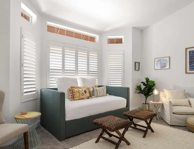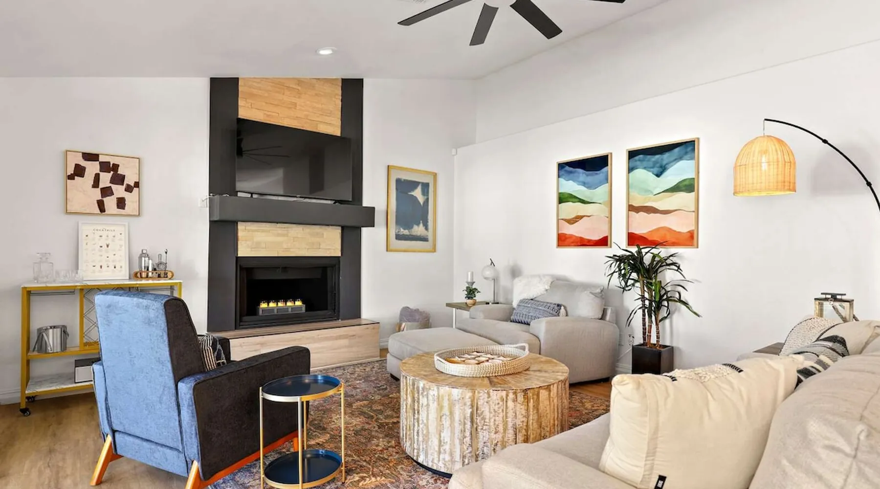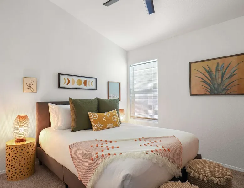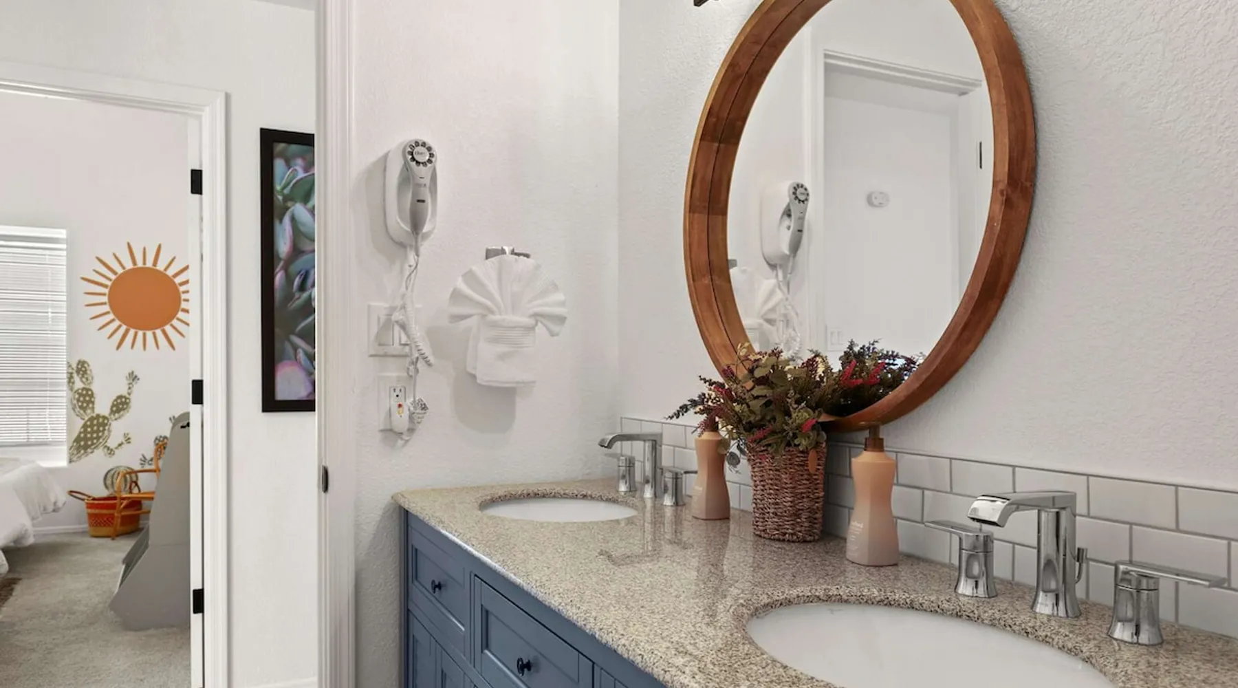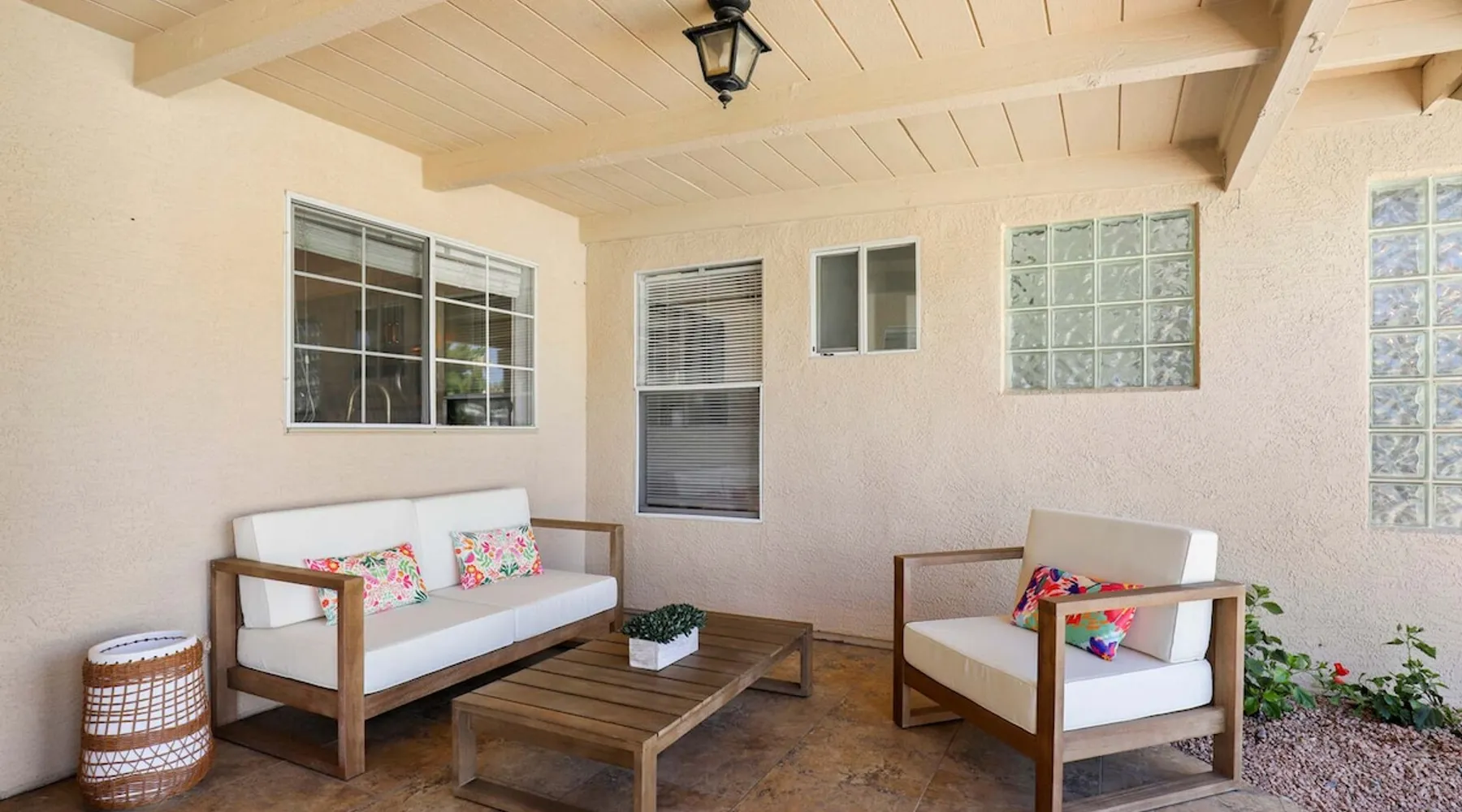 The BEST of Gilbert! This spectacular 5 Bedroom located in the stunning gated community of Val Vista lakes is sure to please everyone in your party! The space Welcome to 7th Heaven A designer desert retreat where style, comfort, and entertainment collide. This stunning 5-bedroom home is your private escape, perfect for families or groups seeking a memorable getaway. Ask us about summer monthly rates as low as $5,500! Outdoor Oasis Lounge by the crystal-clear heated pool, soak in the hot tub, grill out on the propane BBQ, or unwind by the fire pit. Outdoor games, a putting green, and plenty of luxurious seating ensure endless fun under the sun. Chef-Ready Kitchen Cook like a pro in the fully updated kitchen stocked with everything you need—from Starbucks drip coffee and Nespresso to a complimentary bottle of wine. Bon appétit! Special Features Heated Pool Hot Tub Game Room with basketball, lifesize Jenga, TV & more! Putting Green Fire Pit Smart TVs throughout Board Games & Kids’ Toys Kid-Friendly Safety Alarms on Pool Doors Private Office with Desk High-Speed WiFi Walkable to Park and Lake Pool heating is available December–April for $125 per night. Discounts apply to longer stays—ask us for details! Dining Areas Indoor dining table seats 10 Kitchen nook seats 4 Outdoor dining table seats 6 Dishes and utensils for up to 12 guests Bedrooms Master Suite King bed, private sitting area with fireplace and TV, ensuite bathroom with soaking tub and walk-in shower, walk-in closet, and direct yard access. Second Bedroom King bed, Smart TV, reach-in closet. Third Bedroom Queen bed, Smart TV, reach-in closet. Fourth Bedroom Two twin beds, books and toys, reach-in closet. Great for kids! Fifth Bedroom / Office Nook Twin trundle, 65" Smart TV, large desk and sitting area. Bathrooms Two full bathrooms: one ensuite in the master, one shared in the hallway. Both offer a combination bathtub and shower. Family Friendly Equipped with a travel crib, high chair, safety alarms on pool-access doors, kid-friendly dishes, and games—this home is built for families. Amenities High-quality linens and towels Paul Mitchell bathroom products Fully equipped laundry room with washer, dryer, iron, and ironing board Parking for 3 cars in the driveway and 1 in the garage Meet Your Hosts At Hotel Home Stays, we combine hotel-level hospitality with the comfort of a private home. We go above and beyond with rigorous cleaning, hypoallergenic bedding, and contactless check-in via your unique door code. Our digital guest book makes your stay seamless, and our local team is always ready to help with insider tips and quick support. Experience exceptional service and curated comfort—book your stay at 7th Heaven today! Other things to note Pet Policy: - Dogs under 20 lbs allowed, maximum of two. - Approval in writing required, $250 fee per pet. - Unapproved pets result in removal without refund, up to $1,500 in fines. - Cats not allowed due to severe allergies. - Service animals exempt; must be with owner at all times. House Rules: - No smoking or vaping indoors; $1,500 fine. - Disturbing the peace not tolerated; violators asked to leave without refund. - No parties with outside guests; maximum 12 people in the house. - Quiet hours: 10 PM - 8 AM; no loud music. Pool Heating Details: - Optional for $125 per night. - Recommended Oct 15th - April 30th for comfortable swimming. - 3-day advance notice required. - Heating required for entire stay; cannot be turned on/off daily. Concierge Services: - Provided by 3rd party vendors; not affiliated with property owner. - Renter assumes responsibility for third-party activities. Check-In and Check-Out: - Free early/late check-in/out if available; extra fee may apply. - Keyless entry via unique security code provided upon arrival. - Simple check-out instructions provided. - Rental contract emailed for electronic signature before check-in. - Credit card and photo ID required for incidentals.