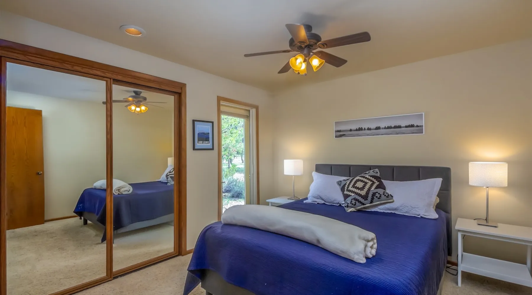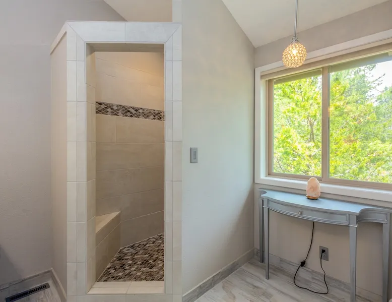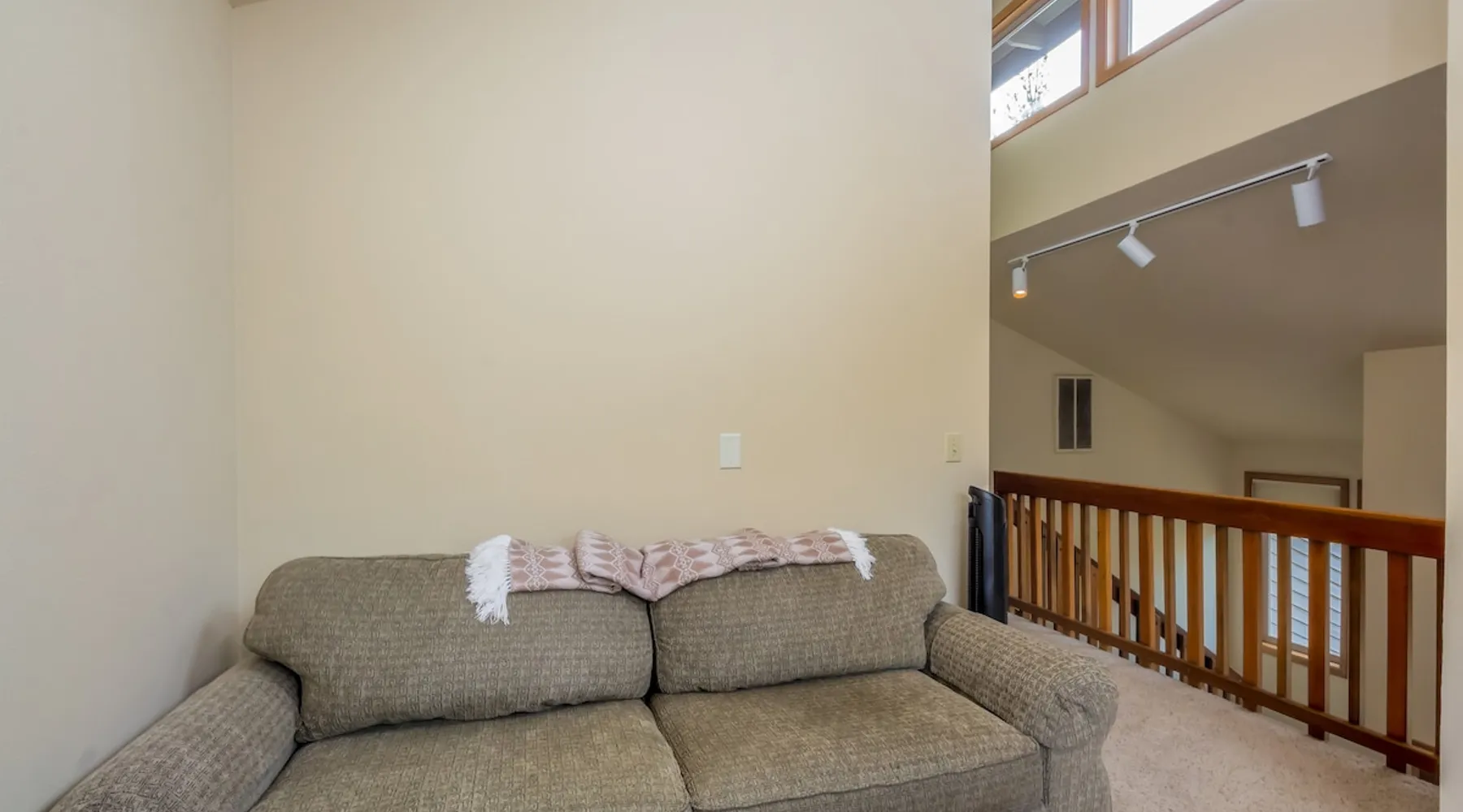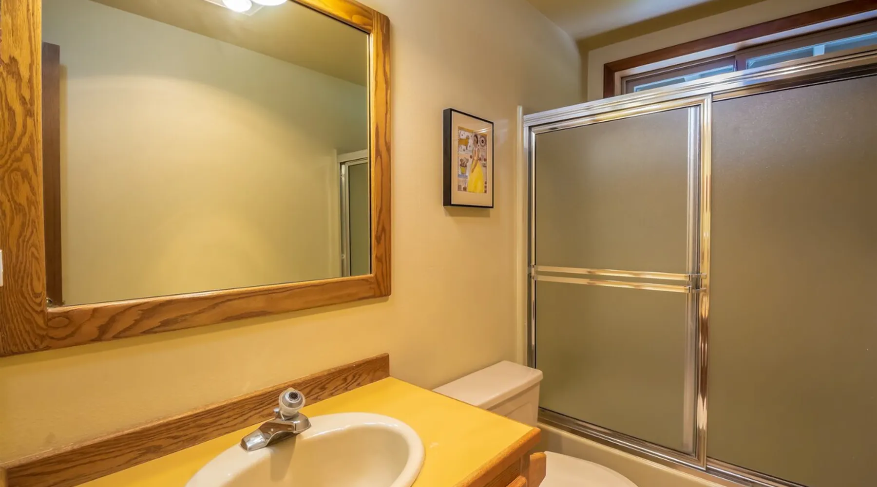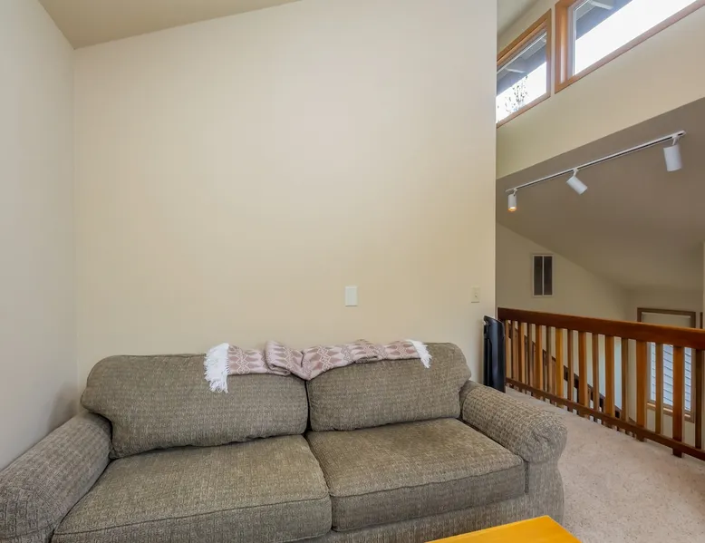 Cozy and inviting, this 2-bedroom Sunriver home features natural wood beam ceilings, a gas fireplace, and forest views through large windows. Enjoy a fully stocked kitchen, dining for four, and a comfy living room to unwind. The main level offers a queen bedroom and full bath; upstairs you'll find a king suite, loft with sleeper sofa, and portable A/C. Relax on the deck with a gas grill, stay connected with free WiFi, and explore all that Sunriver has to offer year-round! The space This 2 bedroom home invites you in with cozy furnishings, lofty ceilings of natural wood beams and large windows that frame the deck and the surrounding forest. The living room, warmed by the gas fireplace, has a flatscreen TV and a sofa where you can put your feet up after a day of hiking, biking, fishing, or skiing. Just around the corner in the kitchen, you'll find everything you need to prepare your favorite meal, a peninsula breakfast bar for two, and an adjacent dining space with a table for four. On this level you'll also find a queen bedroom and a full guest bathroom with shower and tub, plus the laundry room. Head upstairs to find a cozy loft with a pull-out sofa, portable AC unit, TV and DVD player for viewing your favorite movie. A king bedroom with private attached bathroom with gorgeous tiled shower completes this level. Come summertime, you can open the doors to the deck, get the gas grill going for an afternoon barbecue, and find a seat in the shade of the trees. Additional amenities include free WiFi, so you can easily look up a new trail or keep your eye on the snow report. Dogs allowed, 2 max. Fees apply. Other things to note AGE RESTRICTIONS: Guests must be 23 years or older to rent Bennington homes and the person reserving must occupy the home the whole reservation.