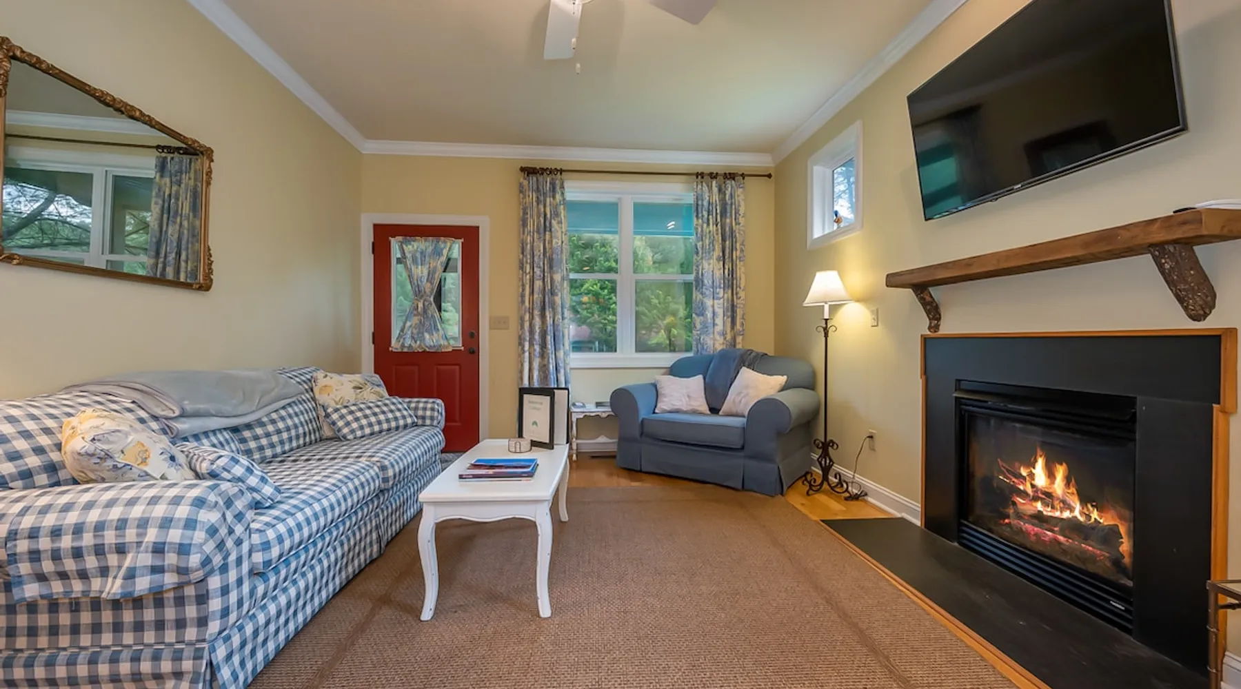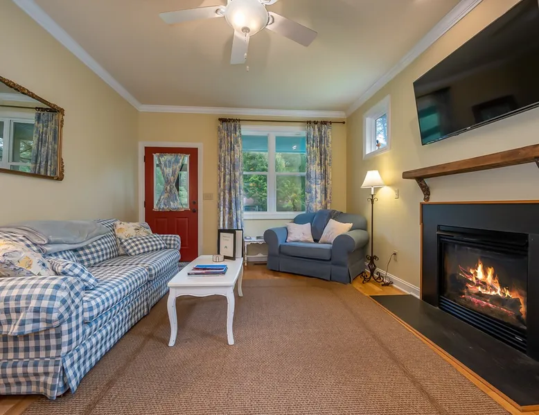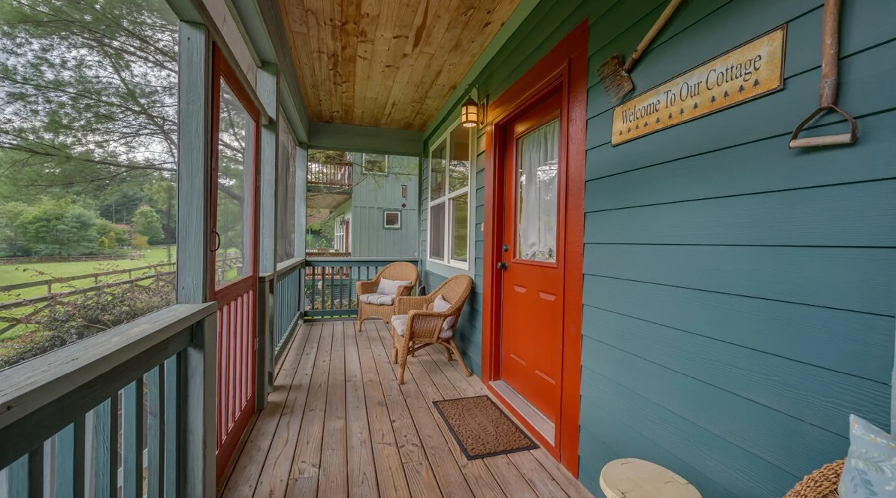 The Buttercup is a one-of-a-kind 2 bedroom 2 Bath home and is your perfect getaway in the mountains. This cabin is a warm and cozy gem located in the lovely Highland Lake community in Flat Rock. The community affords quiet and safe areas to take a morning stroll, or a sunset walk-about! Only 10 minutes to downtown Hendersonville and around 30 minutes to downtown Asheville! The space With a screened in front porch overlooking the Garden Hamlet you’ll love your surroundings. Inside you will be greeted by a tastefully decorated cottage with country charm, while incorporating some of today's latest technology including WIFI and a flat panel television. The fully equipped kitchen and comfortable living area are sure to provide perfect space to gather and create memories. The cabin faces inward toward a meadow filled with goats and flowerbeds and gardens. You are right in the middle of the beauty and serenity. Seasons restaurant a stone's throw from the front door. The Park at Flat Rock is less than a mile from the house, with walking and running trails, and an expansive playground with nearby picnic tables. Book your stay today, but be warned, we're pretty sure you'll never want to leave! Exclusive Special: When you book Buttercup Cottage you will receive a special code for discounted tickets to the Biltmore Estate! Contact us for more info. Home Truths: - Sleeps in beds: 4 - Max Occupancy: 4 - We provide linens for all beds; other occupancy will require guests providing their own linens - Internet Speed: Download - 24.8 Mbps Upload - 2.8 Mbps - There is one parking place next to the home with additional parking available in nearby community parking lot. We openly share our Cleaning Fees in a manner of full disclosure, as we think this is the most honest and forthright approach with respect to our guests. Our Cleaning Fees are backed by our Clean Guarantee, which reflects the highest level of standards, pristine environments for our guests, and a level of clean that surpasses any other vacation homes; we literally guarantee it! Early Check In and/or Late Check Out may be possible, depending on cleaning schedules and other reservations. If it is possible, there may be an additional fee that would be determined based on the time that you wish to check in or out and the seasonal rates. Quiet Policy: Please note that the property is located in a quiet community. Parties, loud noise and unruly behavior are absolutely prohibited, and guests are expected to respect the neighbors and the peace this mountain retreat area affords. Pets: Many of our guests have allergies so we have maintained a pet-free environment so they can enjoy their vacation without the potential of an allergic reaction. If you have a pet we can recommend some alternatives nearby. Please inquire for details regarding payment, the cancellation policy, military discounts, and trip insurance. Note: Reservations over 30 days are subject for review prior to acceptance. A separate rental agreement will be required for 90+ day stays.