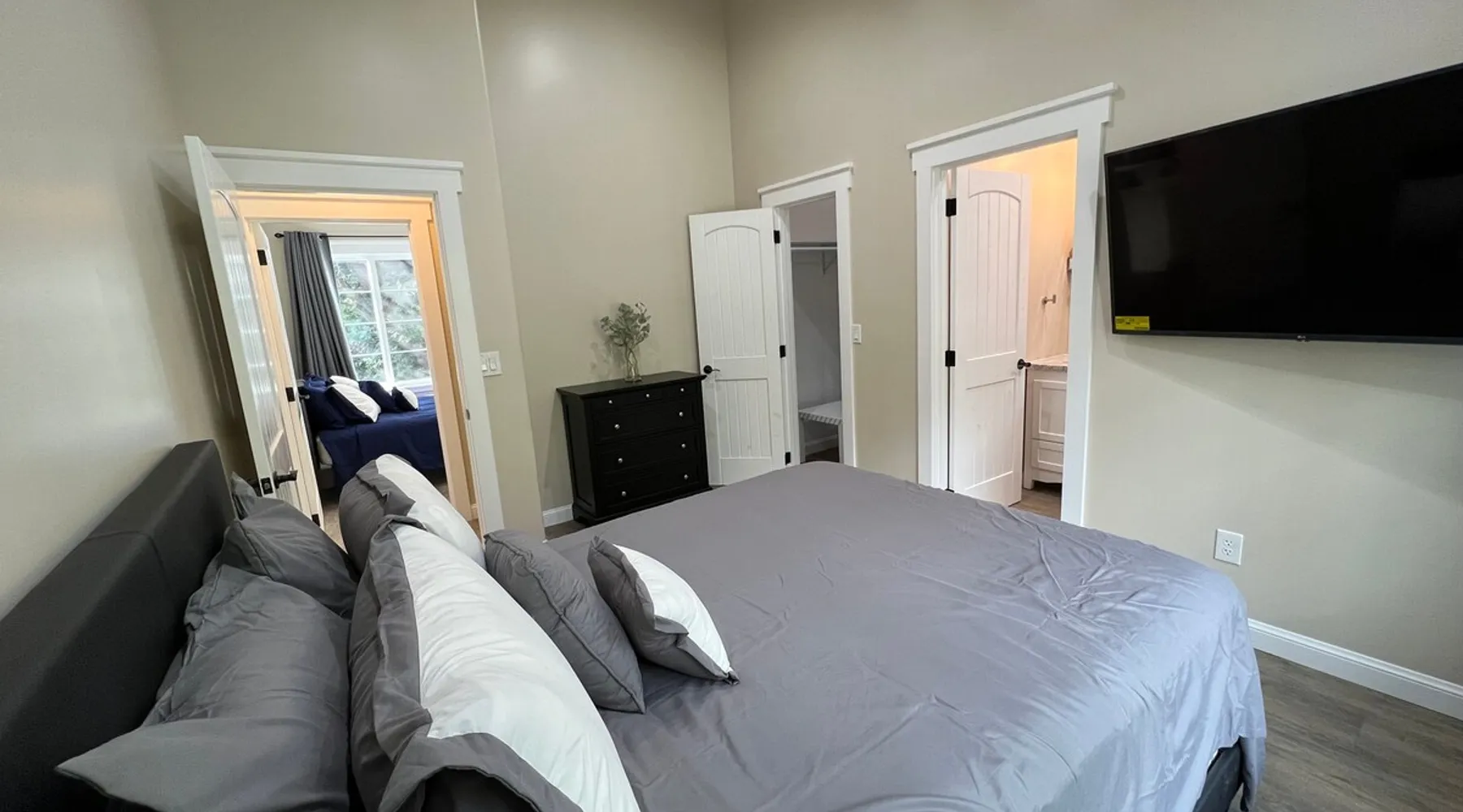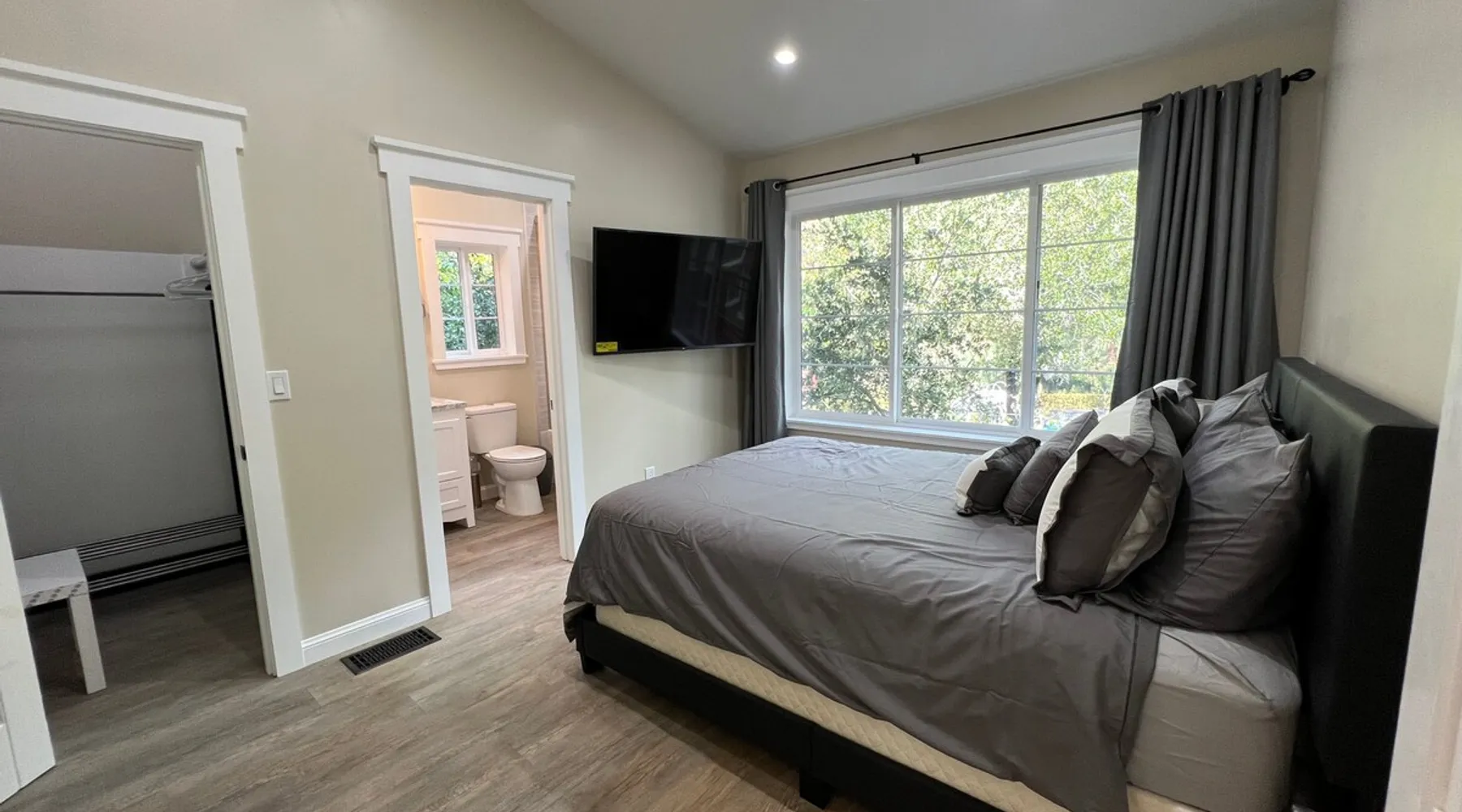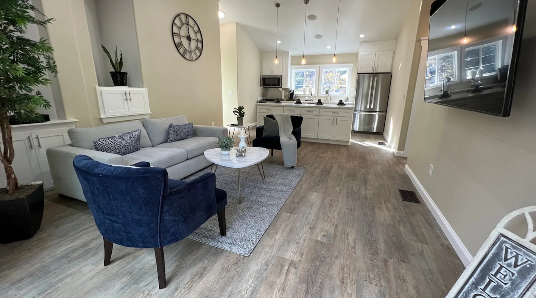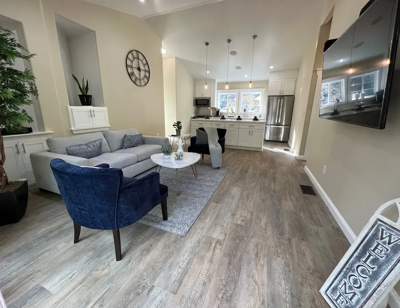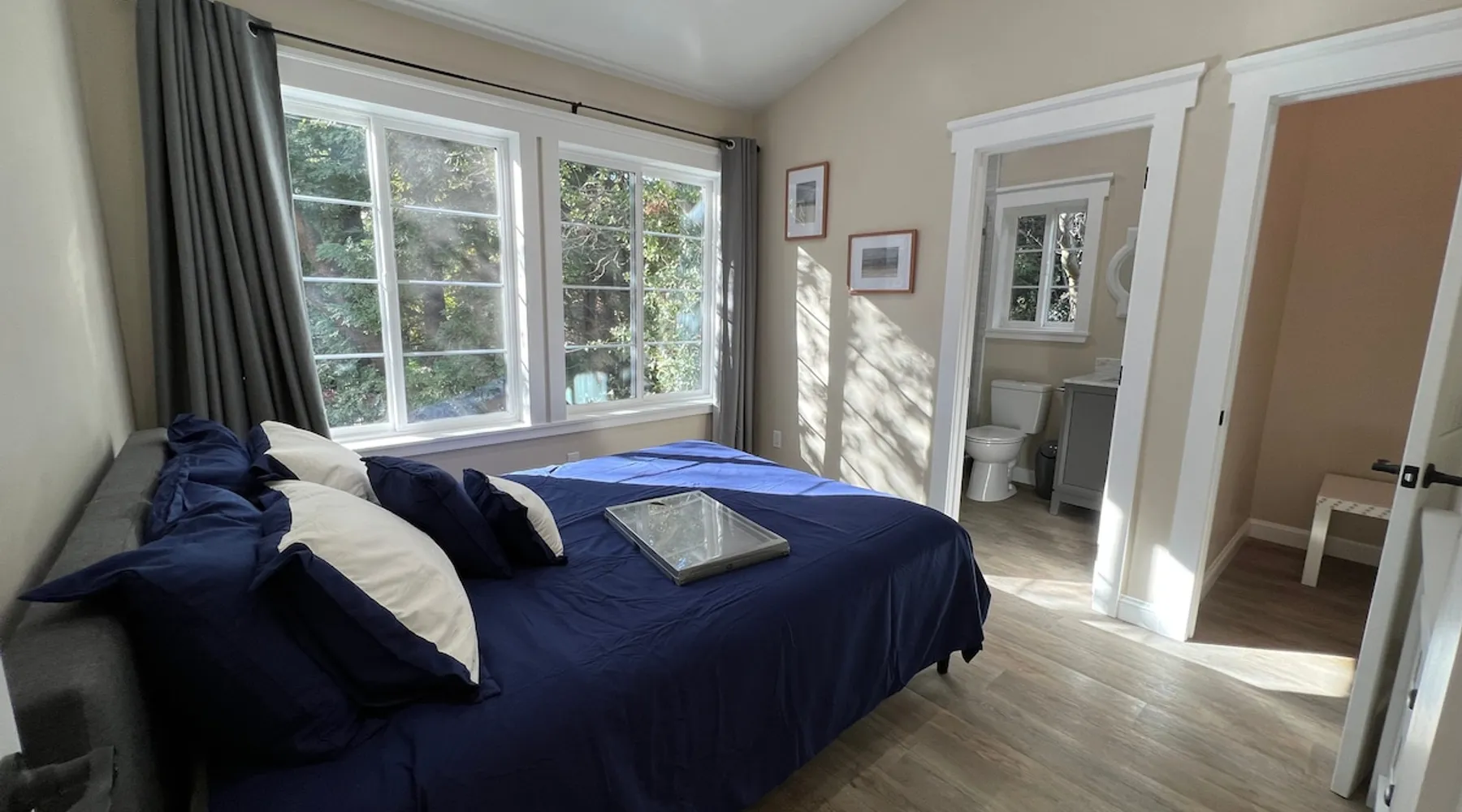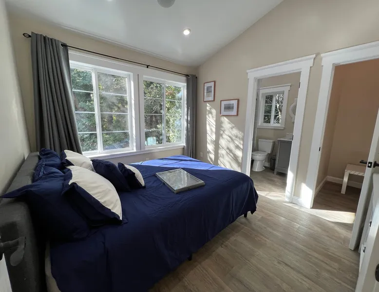 Welcome to my spectacular loft suite! This place is great to relax, concentrate on work, and/or enjoy the beauties of Alamo. This brand-new unit is in the heart of Alamo, close to many hiking trails, Mt. Diablo State Park, the Iron Horse Trail, and Walnut Creek's shopping and dining. It is centrally located with easy access to Silicon Valley, San Francisco, Marin National Parks, Sonoma Raceway, the wine country (Napa), BART, and multiple airports. bcue3 The space The location is amazing with the beautiful surroundings and privacy it offers. It allows for anyone who stays here to feel right at home. It is across from the Round Hill golf course and only two miles from highway 680. The loft suite is on the second level with its own private entrance, accessed through stairs. You then enter into an open floor plan containing a spacious living area and a kitchen with brand-new stainless-steel appliances. Living room holds a 65" 4k Smart TV, the master bedroom has a 55" 4k Smart TV, and the entire suite has a multi-zone audio system. The unit is surrounded by beautiful oak trees, a peaceful creek, and amazing wildlife, which can be viewed on the outdoor patio area and through the large windows. This is outdoor dream living! The suite comes fully furnished allowing you to relax and enjoy your stay. Guest access There is a parking sign saying for guests only, available in front of the main house, located on a private court. The backyard is shared with the main house. Use of the pool only, can be accessed with prior approval. Sauna, Camastro, slide and pool accessories are only owners use. The gazebo has an extra charge if used. Other things to note Please note there is a extra fee for charging electric cars and use of outdoor jacuzzi or gazebo.