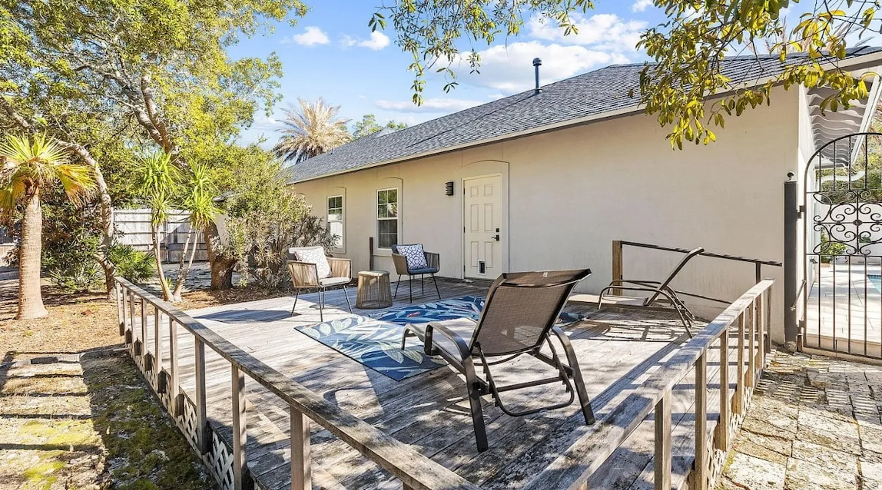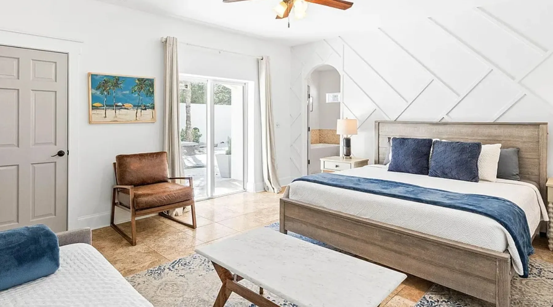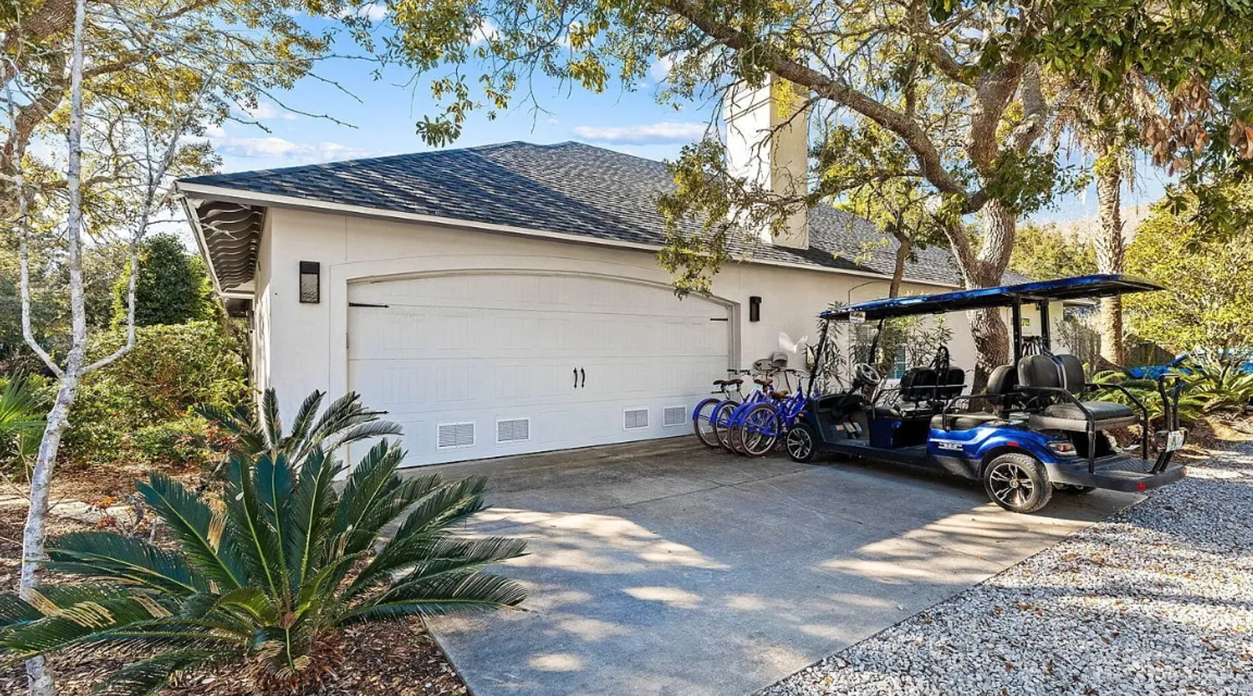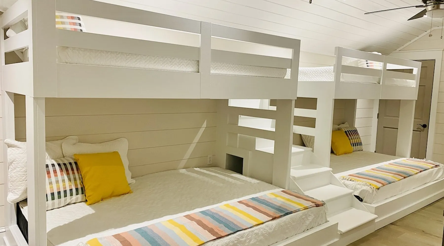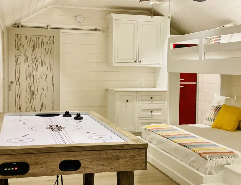 DISCOUNTS on Week Stays!! Saltaire 2 is a luxury, custom remodeled and designed 5 bedroom home. Tucked in on a drive between the Cypress Groves and 30a, the home is a short walk, golf cart or bike ride to Seagrove's shops and restaurants. The main home has four bedrooms, including a bunkroom with 2 twins and 2 queens. The attached guest house has a queen bed and sleeper sofa. Spread out in the courtyard. If you need less space, you can just rent, the main house, Saltaire. The space The grand entry welcomes you into the stately home. The dual sliders flank the walkway and provide for the best of indoor/outdoor living. The adjoining in-law suite/nanny quarters is easily accessed from the main entry and allows up to 18 to sleep comfortably and is perfect for multiple families. The large reclaimed coral patio with huge outdoor hearth is perfect for cool evenings. Custom built pool with in-ground hot tub and sun loungers provide the ultimate in luxury living. The expansive backyard has plenty of outdoor seating areas including large outdoor dining table and propane grill. The first level boasts three king bedrooms. The master was custom designed and built for the most discerning tastes. The bedroom captures your imagination with the custom wall feature, King bed and seating area with pull-out Trundle bed. The large soaking tub, double vanity, huge walk in shower with built ins dual shower heads (one is a rainfall shower) complete this modern farmhouse master suite. The other two king bedrooms are custom designed and with luxury bedding are quite distinct. The upstairs bedroom features two twin over queen custom bunks. The attached in-law/nanny quarters has a queen size bed, sofa bed and its own kitchen and washer/dryer. Outdoor: Backyard oasis features a custom pool/hot tub – pool can be heated for an additional per diem fee. Pool includes a sundeck with loungers and an umbrella. Take in a competitive game of corn hole in the backyard or engage in a fun round of table tennis on the outdoor ping pong table. Bicycles and a golf cart (cart provider waiver required) are available. The front patio features an additional hot tub. Enjoy a delicious meal poolside that you have prepared on the grills in the outdoor kitchen area. Relax around the outdoor fireplace. Kitchen: The well-appointed kitchen will please any chef, with a 36", 6-burner Bertazonni range and custom designed pecky cypress range hood. Guest house has an additional kitchen to spread out. Bedrooms, Bunk Room and Bathrooms: 5 Sleeping Areas (All have Roku TVs) and ensuite/attached bathrooms 4 bathrooms 9 Total beds Master Suite and ensuite Bathroom – main level: Luxury King bedroom with custom wall and daybed. Ensuite bathroom features a relaxing soaking tub and a huge walk in shower. Bedroom 2 – main level: King bedroom and Jack and Jill bathroom with double sinks and soaking tub. Bedroom 3 – level:main: King Bedroom features custom wall treatment, lounge chair. Jack and Jill bathroom. Bedroom 4 – upper level: Bringing the fun, this custom bunk room sleeps 6 with two twin beds over two queen beds. The room has an air hockey table. The ensuite bathroom includes a walk-in shower. Bedroom 5 – guest house: includes a queen bed, large closet, and smart TV. Sofa bed: guest house sofa is a queen sofa Family Room: The comfortable living room has room for the entire crew to relax. This space includes a large and stylish sectional to watch movies on the 55” TV. Two lounge chairs and fireplace round out the sitting area. When not watching TV or playing games around the coffee table, take in a game of pool on Saltaire’s 7-foot table. Dining: Pull the family up around the large dining table. The kitchen island adds seating for 6. And if outdoors is your thing, you can enjoy meals al fresco in the backyard around the dining table. Guest house kitchen table seats four. Included is a starter supply of basic amenities including paper towels, toilet paper, coffee, tea, and spices. You may need to supplement this supply based on individual preferences and usage. Special attention rules: * 5% Discount off nightly rate for stays of at least 7 nights * Primary Renter Must Upload Government ID * Renter Identification and background will be checked * No smoking * No parties or events * Must be 25 to book * No college Spring breakers * You must sign our rental agreement * Security deposit credit card hold is required * All rentals subject to 7% Florida tax and 5% Walton County tax * Guests agree to contact host with any concerns and give host the opportunity to correct them Guest access A unique door code is provided to each renter on the day of arrival once the home has been cleaned and inspected. As a reminder and per your rental agreement, you must depart the appointed check-out time or earlier. If you stay beyond the check-out time you are subject to a charge of $200 for every 15 minutes which will be charged against your security deposit hold. Other things to note Pool may be heated for entire stay at a rate of $75/day. Two hot tubs, one in pool and one free-standing