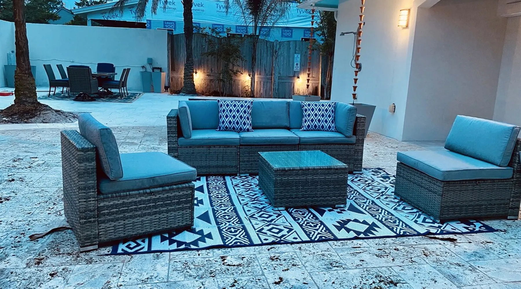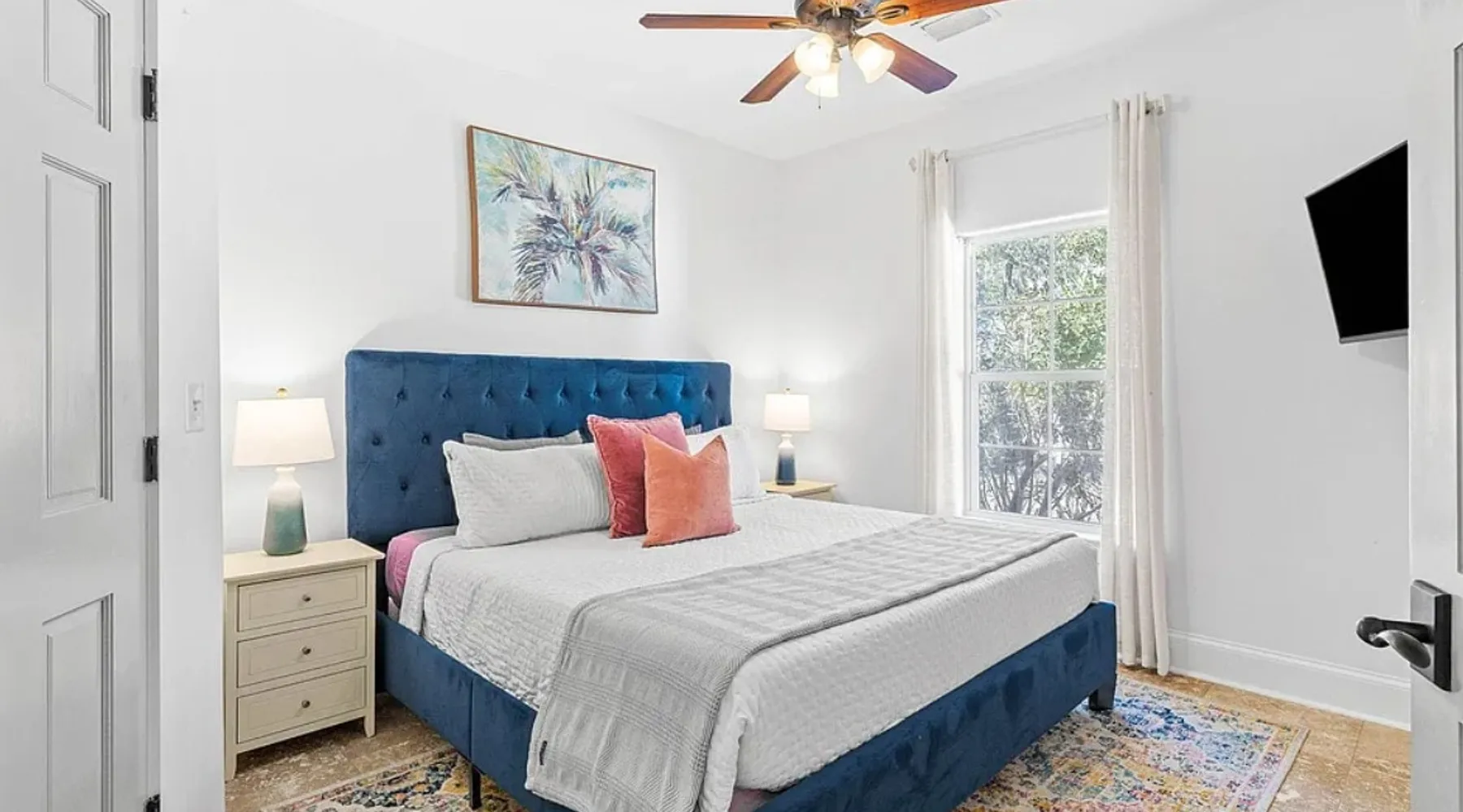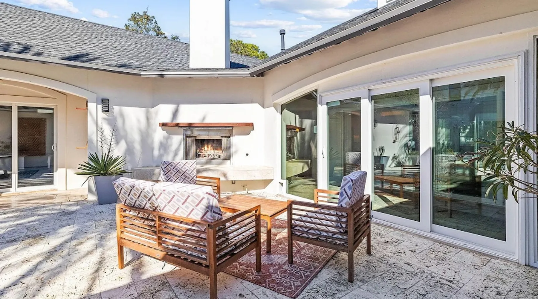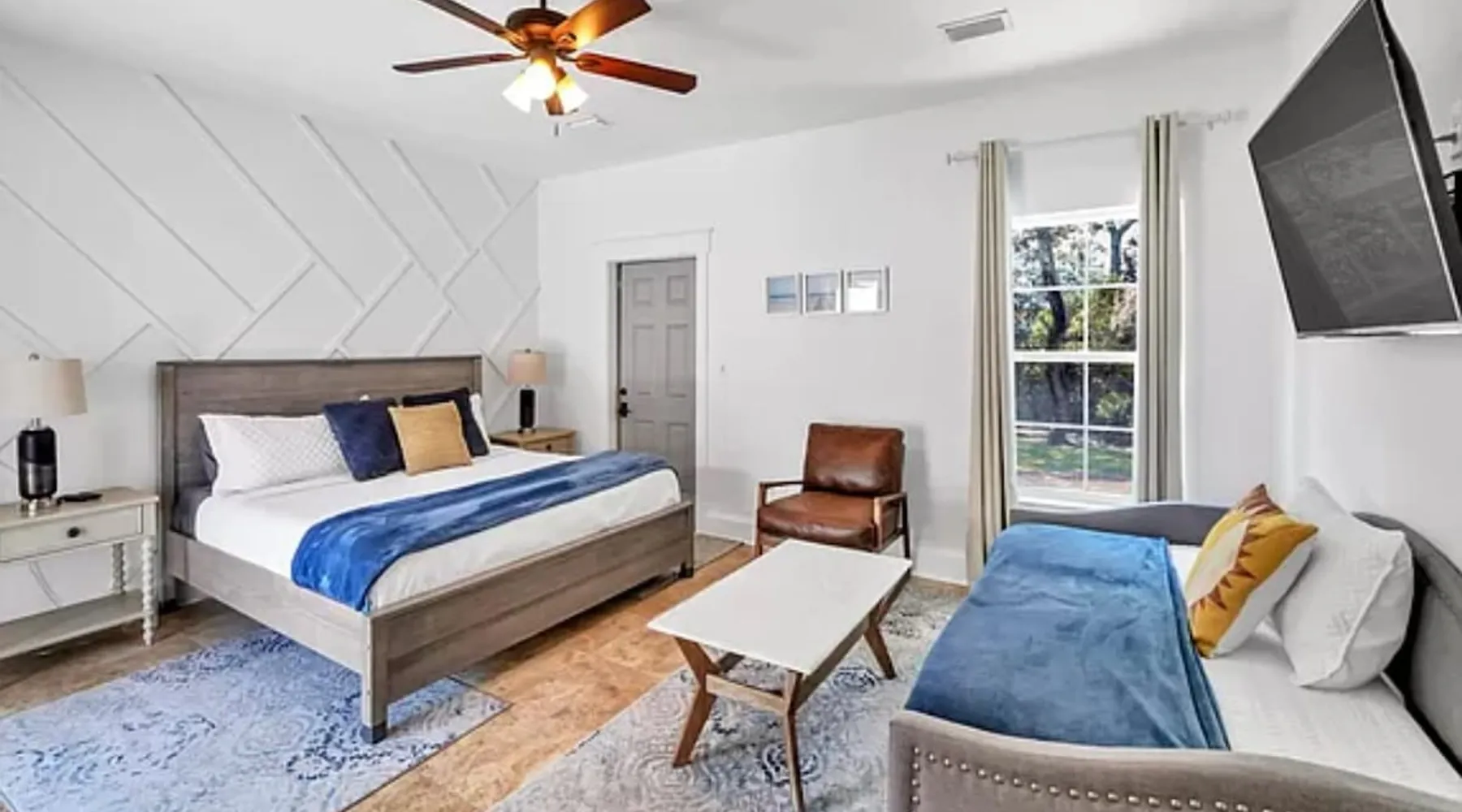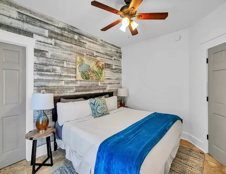 DISCOUNTS on Week Stays!! Saltaire 2 is a luxury, custom remodeled and designed 5 bedroom home. Tucked in on a drive between the Cypress Groves and 30a, the home is a short walk, golf cart or bike ride to Seagrove's shops and restaurants. The main home has four bedrooms, including a bunkroom with 2 twins and 2 queens. The attached guest house has a queen bed and sleeper sofa. Spread out in the courtyard. If you need less space, you can just rent, the main house, Saltaire. The space The grand entry welcomes you into the stately home. The dual sliders flank the walkway and provide for the best of indoor/outdoor living. The adjoining in-law suite/nanny quarters is easily accessed from the main entry and allows up to 18 to sleep comfortably and is perfect for multiple families. The large reclaimed coral patio with huge outdoor hearth is perfect for cool evenings. Custom built pool with in-ground hot tub and sun loungers provide the ultimate in luxury living. The expansive backyard has plenty of outdoor seating areas including large outdoor dining table and propane grill. The first level boasts three king bedrooms. The master was custom designed and built for the most discerning tastes. The bedroom captures your imagination with the custom wall feature, King bed and seating area with pull-out Trundle bed. The large soaking tub, double vanity, huge walk in shower with built ins dual shower heads (one is a rainfall shower) complete this modern farmhouse master suite. The other two king bedrooms are custom designed and with luxury bedding are quite distinct. The upstairs bedroom features two twin over queen custom bunks. The attached in-law/nanny quarters has a queen size bed, sofa bed and its own kitchen and washer/dryer. Outdoor: Backyard oasis features a custom pool/hot tub – pool can be heated for an additional per diem fee. Pool includes a sundeck with loungers and an umbrella. Take in a competitive game of corn hole in the backyard or engage in a fun round of table tennis on the outdoor ping pong table. Bicycles and a golf cart (cart provider waiver required) are available. The front patio features an additional hot tub. Enjoy a delicious meal poolside that you have prepared on the grills in the outdoor kitchen area. Relax around the outdoor fireplace. Kitchen: The well-appointed kitchen will please any chef, with a 36", 6-burner Bertazonni range and custom designed pecky cypress range hood. Guest house has an additional kitchen to spread out. Bedrooms, Bunk Room and Bathrooms: 5 Sleeping Areas (All have Roku TVs) and ensuite/attached bathrooms 4 bathrooms 9 Total beds Master Suite and ensuite Bathroom – main level: Luxury King bedroom with custom wall and daybed. Ensuite bathroom features a relaxing soaking tub and a huge walk in shower. Bedroom 2 – main level: King bedroom and Jack and Jill bathroom with double sinks and soaking tub. Bedroom 3 – level:main: King Bedroom features custom wall treatment, lounge chair. Jack and Jill bathroom. Bedroom 4 – upper level: Bringing the fun, this custom bunk room sleeps 6 with two twin beds over two queen beds. The room has an air hockey table. The ensuite bathroom includes a walk-in shower. Bedroom 5 – guest house: includes a queen bed, large closet, and smart TV. Sofa bed: guest house sofa is a queen sofa Family Room: The comfortable living room has room for the entire crew to relax. This space includes a large and stylish sectional to watch movies on the 55” TV. Two lounge chairs and fireplace round out the sitting area. When not watching TV or playing games around the coffee table, take in a game of pool on Saltaire’s 7-foot table. Dining: Pull the family up around the large dining table. The kitchen island adds seating for 6. And if outdoors is your thing, you can enjoy meals al fresco in the backyard around the dining table. Guest house kitchen table seats four. Included is a starter supply of basic amenities including paper towels, toilet paper, coffee, tea, and spices. You may need to supplement this supply based on individual preferences and usage. Special attention rules: * 5% Discount off nightly rate for stays of at least 7 nights * Primary Renter Must Upload Government ID * Renter Identification and background will be checked * No smoking * No parties or events * Must be 25 to book * No college Spring breakers * You must sign our rental agreement * Security deposit credit card hold is required * All rentals subject to 7% Florida tax and 5% Walton County tax * Guests agree to contact host with any concerns and give host the opportunity to correct them Guest access A unique door code is provided to each renter on the day of arrival once the home has been cleaned and inspected. As a reminder and per your rental agreement, you must depart the appointed check-out time or earlier. If you stay beyond the check-out time you are subject to a charge of $200 for every 15 minutes which will be charged against your security deposit hold. Other things to note Pool may be heated for entire stay at a rate of $75/day. Two hot tubs, one in pool and one free-standing