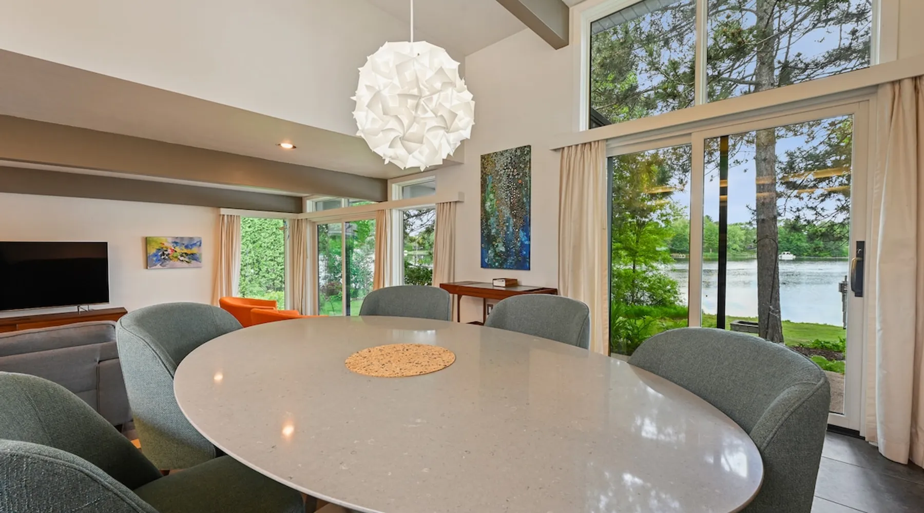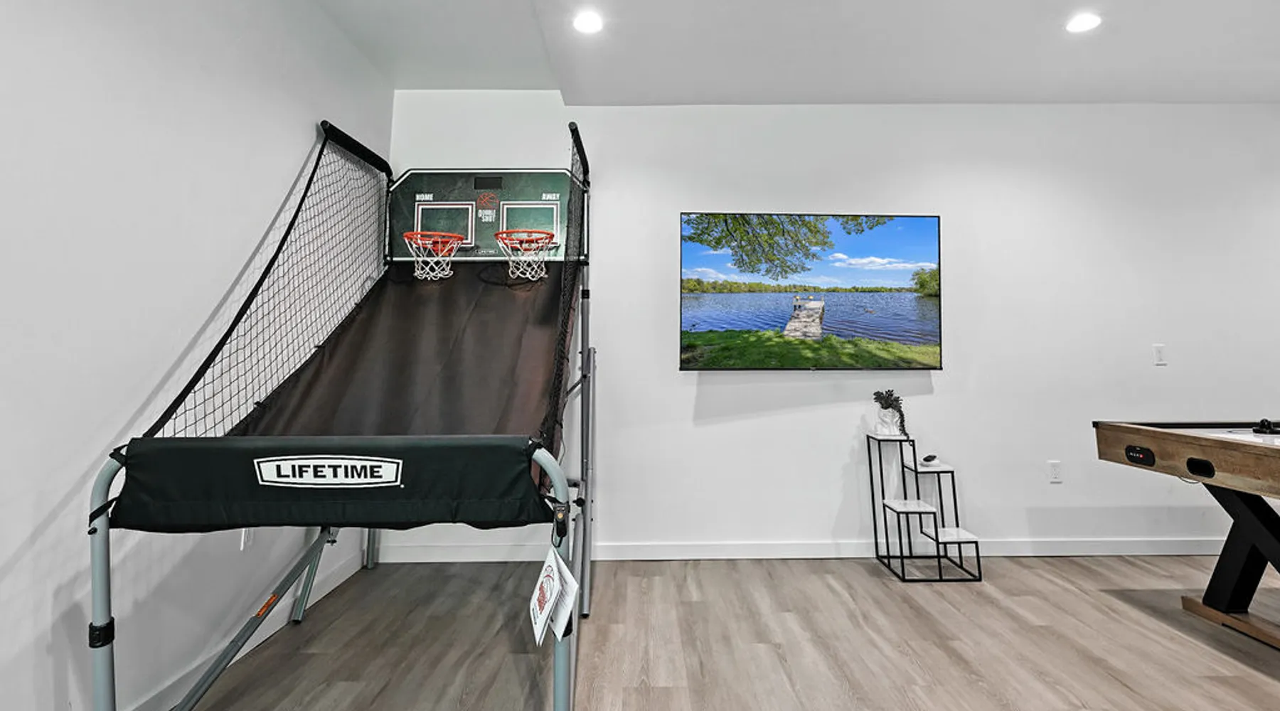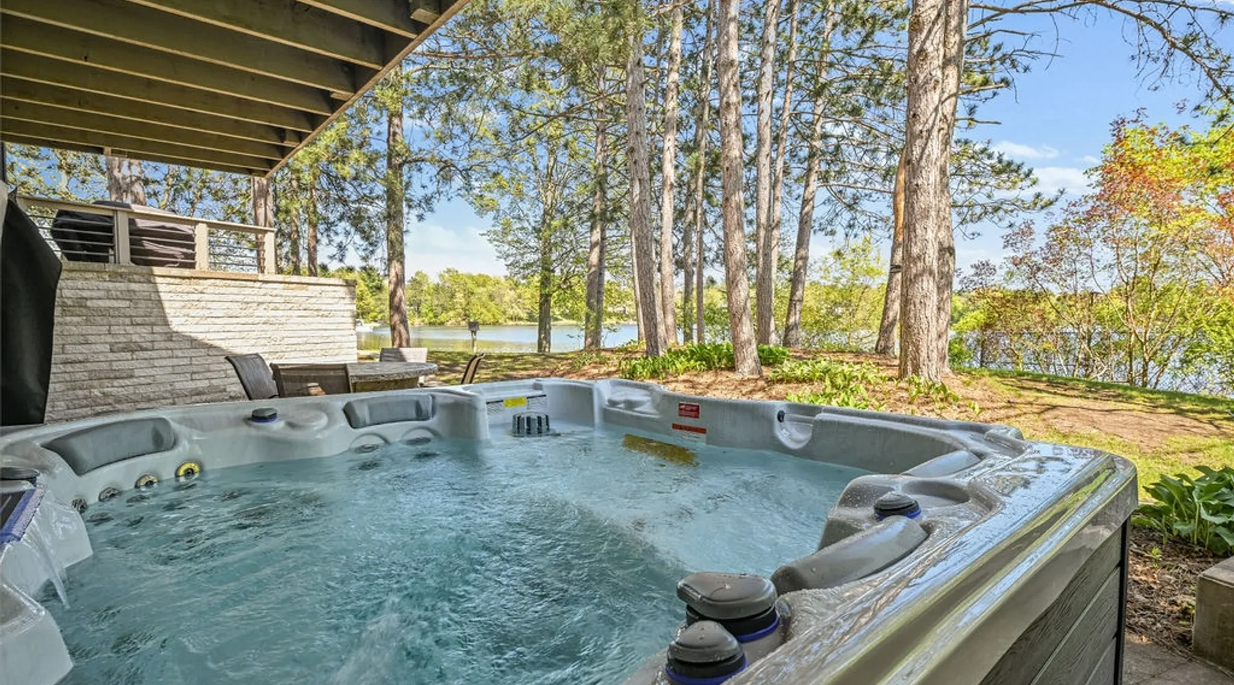 Chill at McDill ~ Did you ever think you could have an island getaway with the convenience of in-town amenities? You can, at this hidden treasure on Riverwoods Island! This home will not disappoint! If you’re a water-lover, golfer, biker, hiker, or just a ‘get-me-out-of-towner’ this is a place you will come to over and over again! Located in the heart of Stevens Point, this house has the uptown luxuries of bars, restaurants, and entertainment, but the tranquility of the northwoods. The space - Direct lake access - Fish species: panfish, large/small mouth bass and northern pike - Kayaks (4), a canoe, swim lilly pad, and life vests included - Fire pit - Gas grill - Hot tub - Outdoor dining - Balcony and patios - Complimentary wifi/internet - 4 Bedroom/3.5 Bathroom (sleeps 10) - Primary bedroom has a king bed, smart TV, and ensuite with a soaker tub and a separate glass shower with dual shower heads and massage jets. Screened in porch with seating off of primary bedroom - connects to outdoor balcony. - 2 secondary bedrooms on the top level; both have queen beds, one has an office desk with computer monitor and HDMI cable for easy laptop hook up - Last bedroom is on the lower level, bunk beds - full size lower mattress, twin mattress on the upper bunk (rated for 350lbs on the lower bunk 250lbs on the upper bunk), smart TV, backyard access - Three full bathrooms (two with tubs); one 1/2 bath off the kitchen/foyer - Full towels and linens provided - including towels for the hot tub - Showers have shampoo, conditioner, and body wash - Hair dryer, iron, and ironing board on site - Pack n' Play, high chair, and booster on site - Convenience items included: dish soap, dishwasher tablets, laundry soap and dryer sheets (please clean out lint trap after each load of laundry) - Coffee maker, coffee beans, bean grinder, creamer and sugar provided - Keurig (no k-cups provided) - Ice maker in freezer - Fully stocked kitchen, including essential utensils, dishware and glassware. Accommodations for kids as well! - Two countertop stools with height adjustment in the kitchen - Large dining room table with 6 chairs (2 extra chairs on the lower level) along with a secondary 'breakfast nook' glass table in the lower level - Indoor gas fireplace - Complementary board games, books, and kid's activities - Free parking on site - Two hammocks - Pickleball net, racket and balls Chill at McDill is a luxury retreat offered by Mirus Properties, where we strive to give guests the very best experience and memories that will last a lifetime. This hidden treasure is connected by land bridge going across a small channel that's been around for decades. The island has a 1 mile loop of road system, great for taking morning walks or an afternoon bike ride. The area has many nearby grocery stores, bars, and restaurants, along with delivery services, should you never want to leave the house. McDill Pond is a lake that is approximately 247 acres in size and a maximum depth of 19ft. This is the home to some great fishing, kayaking, tubing, and other water sports. With many channels and sloughs, there is always something new to explore. Follow us on Social Media!! FB: Mirus Properties, LLC Insta: @mirusproperties