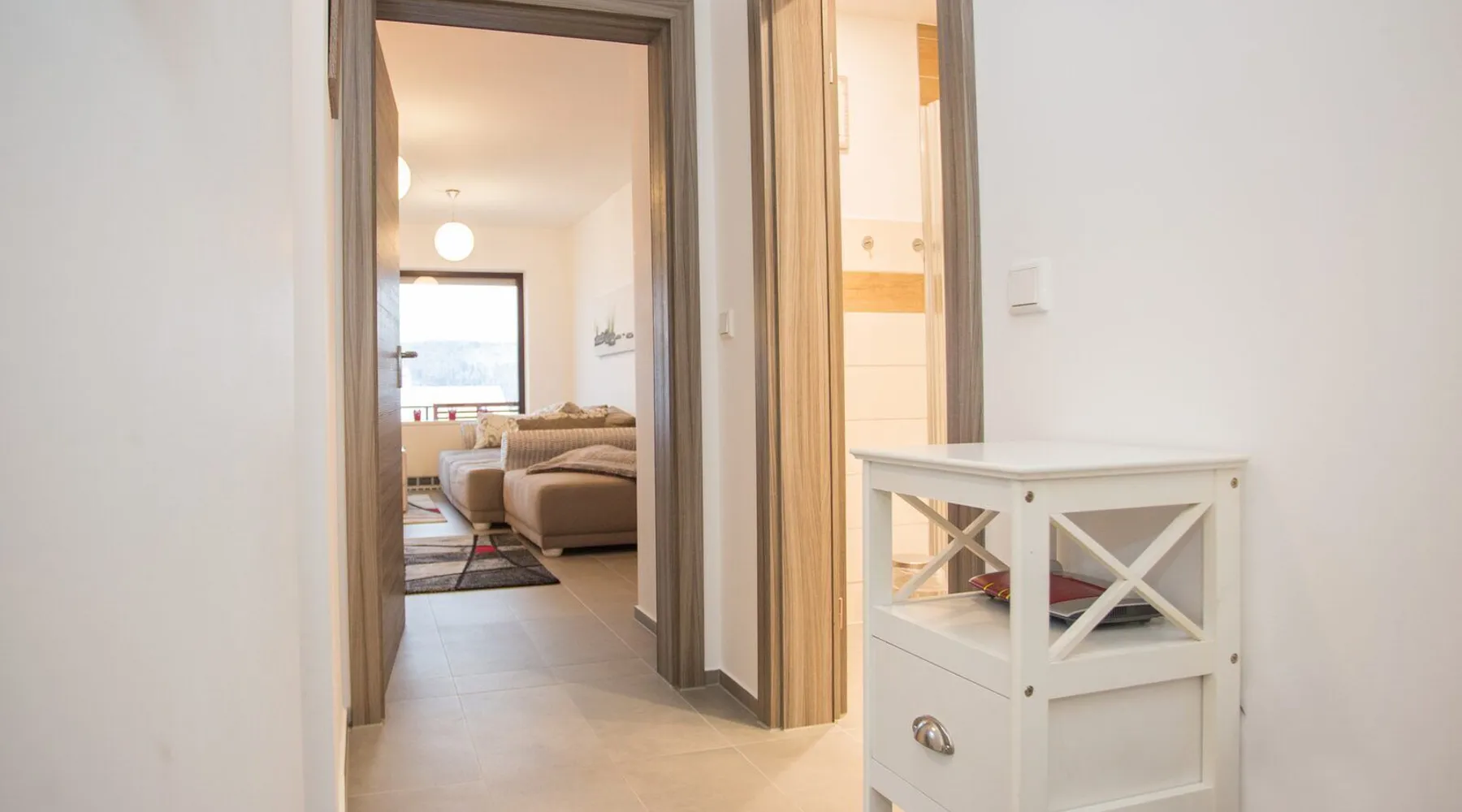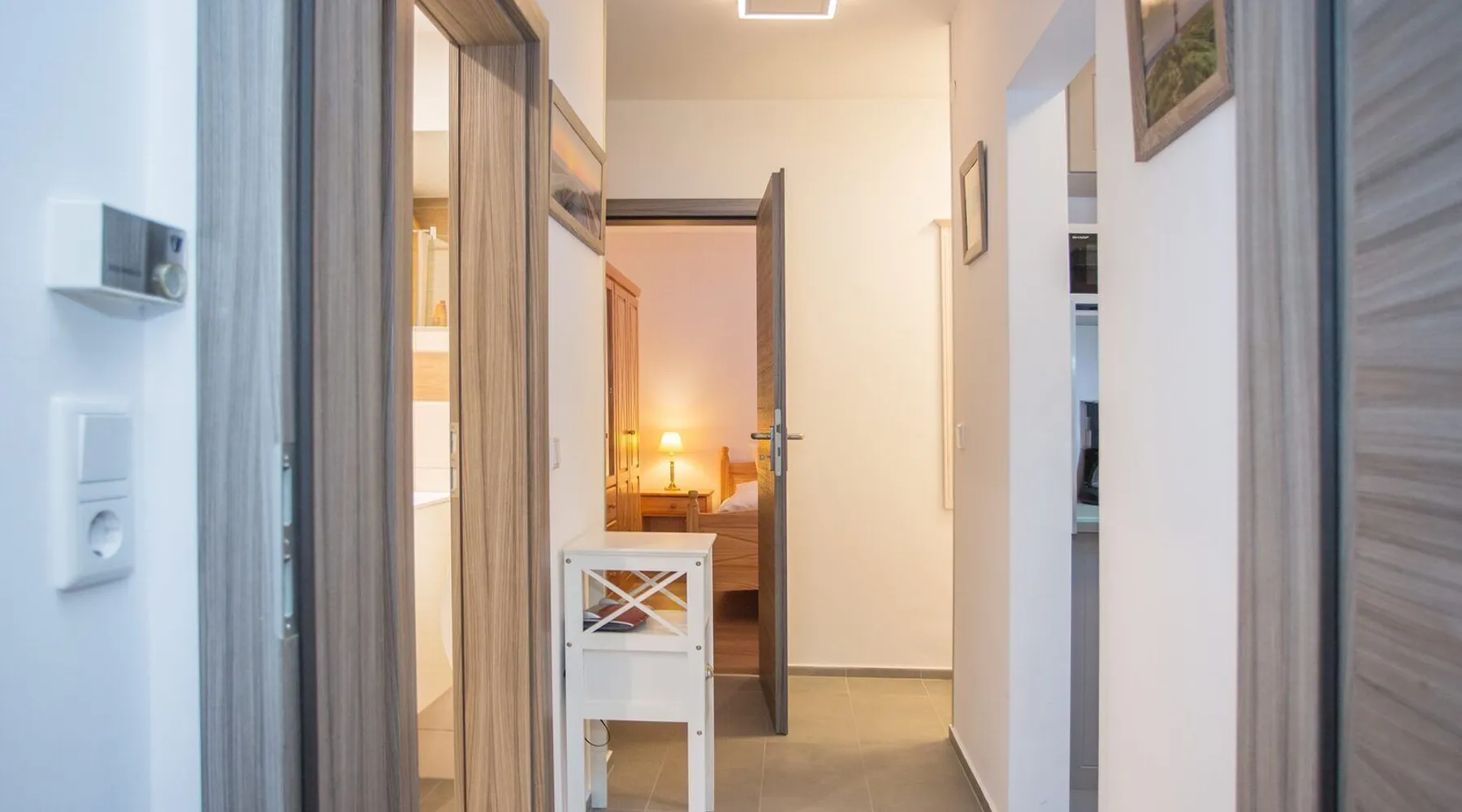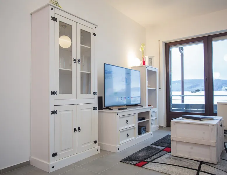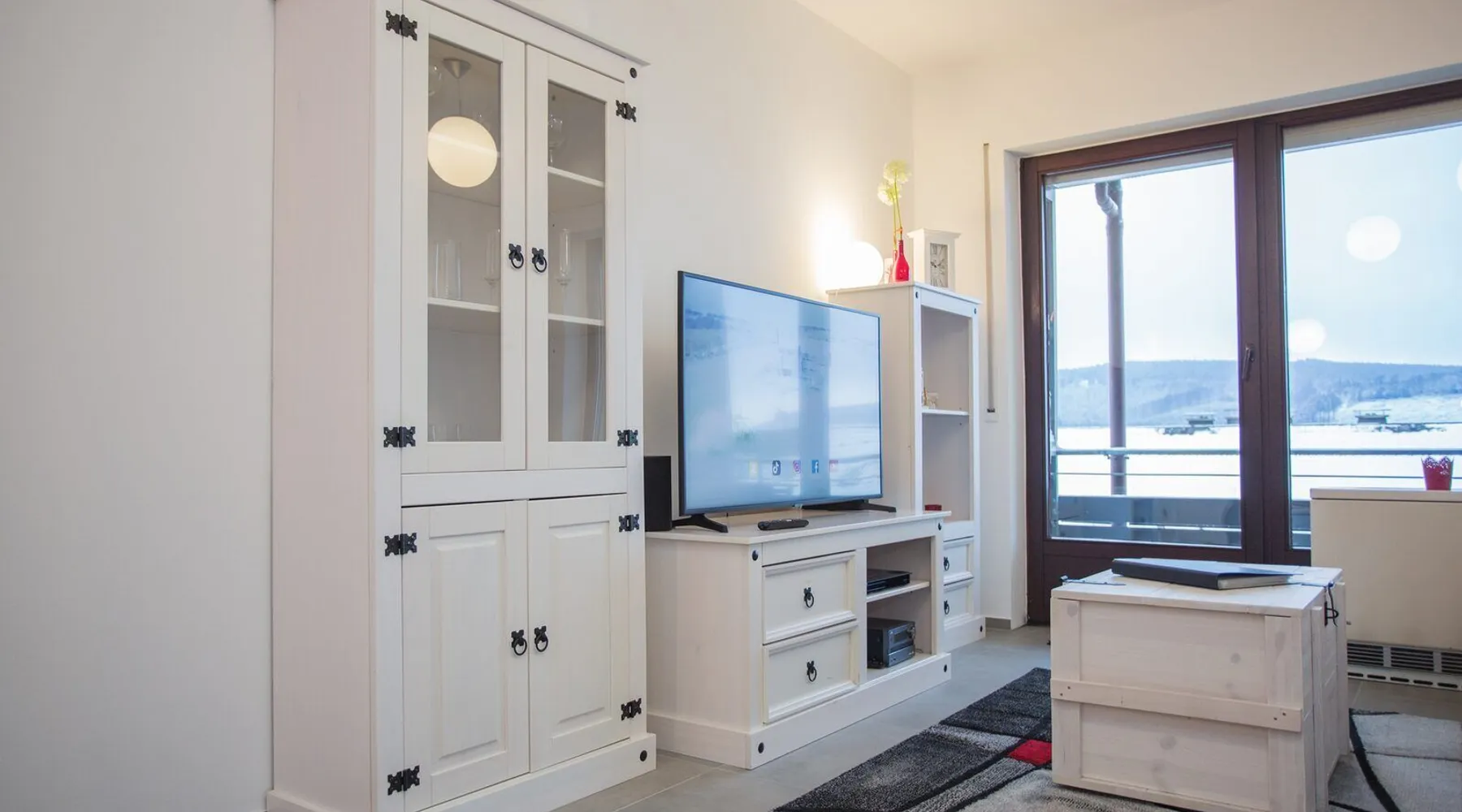 Max. persons: 2 Bedrooms: 1 Bathrooms: 1 Size: 49m² Description If you love winter sports and nature, this apartment will serve as the perfect base for your holiday. The holiday home is located on the eastern fringes of the village and on the edge of the woods. Its hillside location offers views over the roofs of Niedersfeld and out towards the other side of the Ruhr valley. In the evenings, you can see the sun set behind the mountains. Accommodation The living room of the apartment has a seating corner with a smart TV (including Blu-ray/DVD player), a dining corner that seats four and a fridge with freezer compartment. The separate kitchen is equipped with a four-ring ceramic hob, oven, fridge, combi microwave, filter coffee machine and kettle. The bedroom is furnished with a double bed (160 x 200 cm), bedside tables and a wardrobe offering plenty of storage space. The apartment is equipped with roller shutters, meaning you can block out the light to just the right level. The bathroom has a shower with a glass shower panel, a toilet and a bathroom cabinet with a mirror and hairdryer. The balcony at the apartment faces south-west and offers stunning views. It comes furnished with a sofa, table, lounge chair and drying rack. The apartment has Wi-Fi, basement storage on the same floor and a parking space. The private storage area offers plenty of space to store skis or mountain bikes, for example. Surrounding area A woodland area with hiking trails that stretch up to the Willingen ski slopes starts right behind the home. Stunning walks across Northern Germany’s largest upland moors are right on your doorstep. Sauerland’s highest peak is located just 4 km from the apartment. The nearby village centre is the place to go for daily groceries or a drink and bite to eat at one of the cafes and restaurants. There’s plenty to do here all year round. Hillebachsee is the perfect place to go swimming, water skiing, surfing and much more in summer. During the winter months too, the surrounding area is nothing less than paradise. The Eschenberg ski slopes or Rodelparadies Ruhrquelle are just some of the places that are begging to be explored.