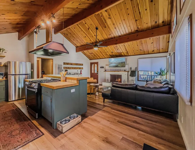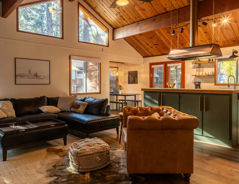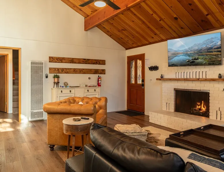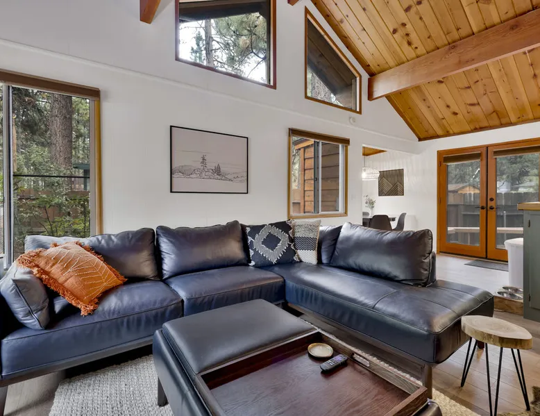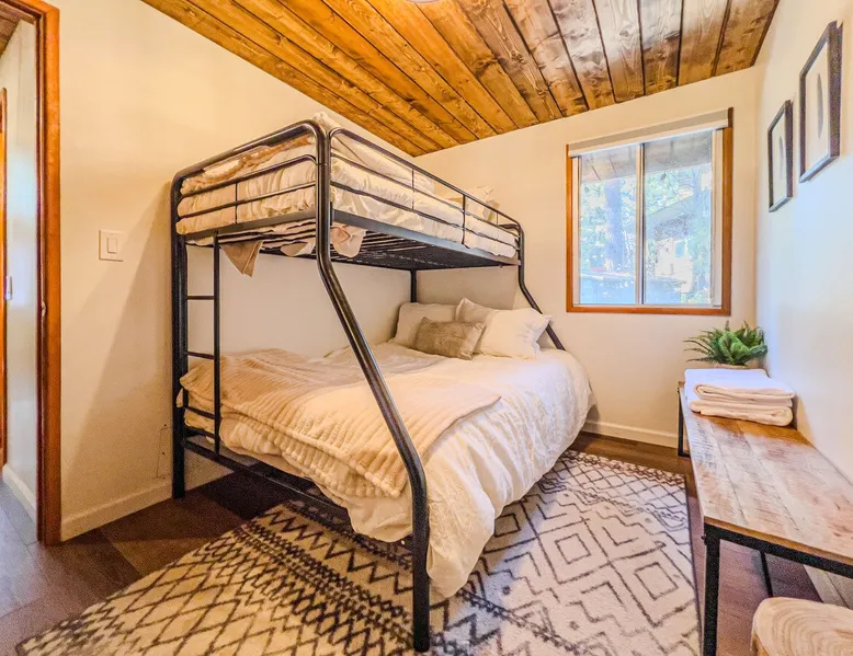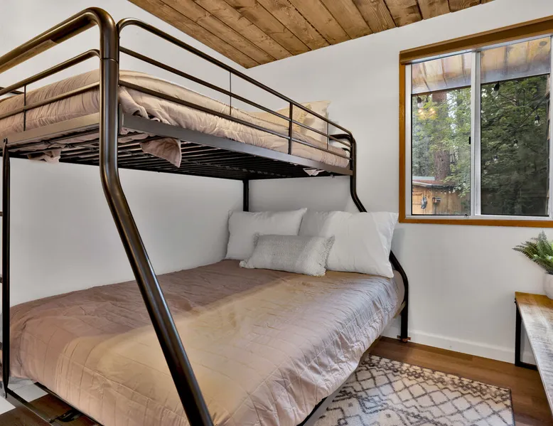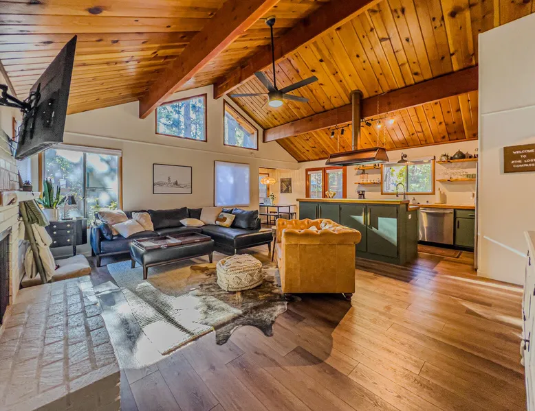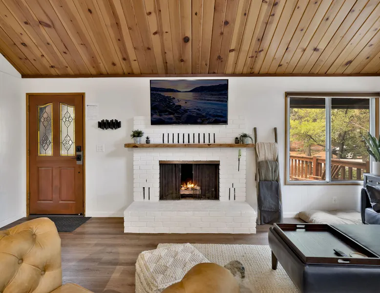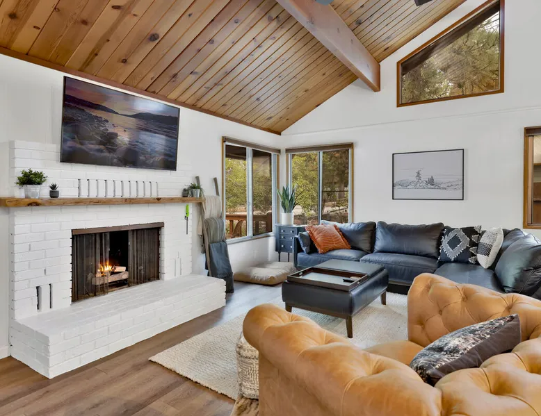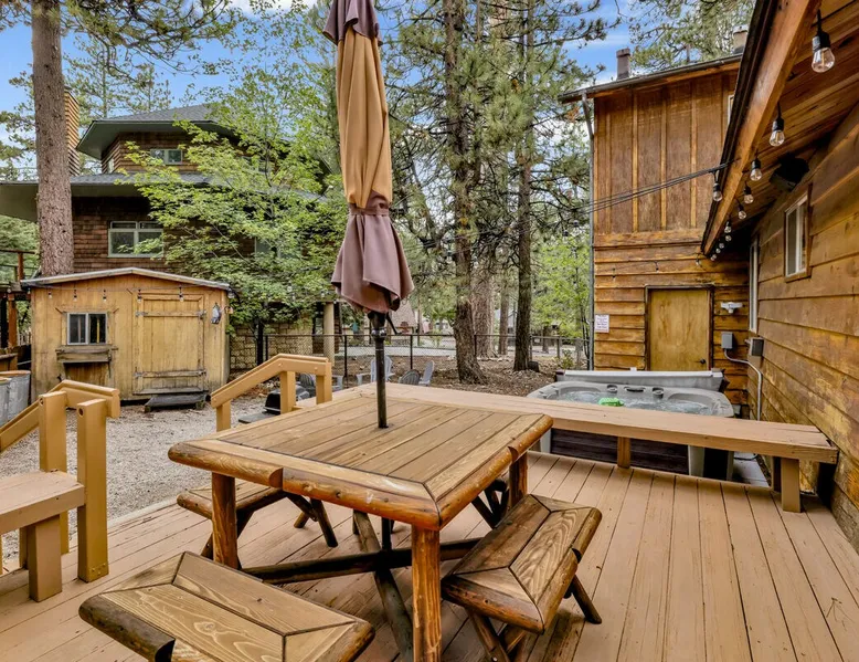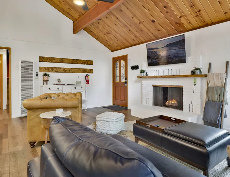 The Lost Compass will be your new home away from home in the mountains for years to come providing your group with the opportunity to vacation in style and comfort together with added amenities and modern furnishings paired up with a prime location within a short car ride to all local Big Bear activities. Soak in the hot tub or enjoy hours of fun in the packed game room garage as you make lifelong memories together under soaring pine trees and shooting stars no matter the season you visit! The space The Lost Compass | Walk To Lake | Game Room | Spa Welcome to The Lost Compass, our freshly furnished and modern two story log cabin chalet is the perfect spot to escape and enjoy Big Bear and the mountains, you'll be within walking distance to Boulder Bay and only 5 minutes to town, where you can enjoy a lovely dinner, or watch a movie and do some shopping! Boasting the comforts from home alongside added amenities included modern appliances, Streaming TVs, a private hot tub, and a fabulous game room converted garage packed with entertainment- your group is sure to make memories to last a lifetime here at The Lost Compass! Entering your chalet on the lower level you are welcomed into the cozy living room area ordained with beautiful hardwood floors, knotty pine beamed cathedral ceilings, and plenty of natural lighting and viewing spaces from the many big open windows, perfect for watching the snow falling in the winter months. Comfy modern couches and sitting chairs are perfectly nestled in front of a toasty gas fireplace and mounted Streaming TV, this is the right space for visiting together or popping on your favorite movie and hosting a movie night in right here at the cabin with complimentary hi speed WIFI internet provided. (Guests must have their own accounts to enjoy Streaming Services.) You will absolutely love the open floor plan here at The Lost Compass, seamlessly flowing from the living room right into the equipped kitchen and dining areas, this is the perfect home for entertaining a dinner party or hosting a holiday meal together. The adorable dining table and breakfast island provide ample dining space while the kitchen has all that you need to prepare your home cooked meals. Freshly painted cabinets are stocked full with cookware and utensils while the essential appliances and dishwasher ensures that your cleanup is even a breeze. This lower entry level hosts your guest bath and two guest bedrooms while the entire upstairs level is home to your spacious primary suite with it's own beautiful private bath, all of your bedrooms and bathrooms are made up for your group with warm linens, blankets, pillows, and fresh shower towels for your trip when you arrive. To further your vacation experience the attached garage has been converted to a fun packed and convenient game room area offering arcade games, an air hockey table, and a washer and dryer for those wet snow clothes or extended stay visits here in the mountains. Outside you will find a wonderful forested and fully fenced private backyard area that is perfect for the kids and pets with great sun decks, outdoor patio furnishings, and a propane BBQ for you to grill up delicious meals and enjoy your natural surroundings. To the side of the deck you will find your own private hot tub under the stars, this is the perfect space to relax and unwind after a long day of adventures out on the lake or mountain. With a close drive to the mountain, walking distance to the lake, and all the modern amenities and conveniences of home you will be able to find yourself here at The Lost Compass! Book Today! Sleeping Arrangements: Bedroom 1: Queen Bed- Downstairs Entry Level Bedroom 2: Full/Twin Bunk Bed- Downstairs Entry Level Bedroom 3: Primary Suite: King Bed + Twin Sleeper Sofa, Streaming TV, Private 3/4 Bath (Shower Only)- Upstairs 2nd Level Bathroom Arrangements: Hallway 3/4 Bath (Shower Only)- Downstairs Entry Level Private 3/4 Bath (Shower Only)- Bedroom 3- Upstairs 2nd Level -Sleeps 7 -3 Cars Driveway Parking -2 Pets Welcome w/ Additional Fee -1,234 Total Square Feet City Permit #: VRR-2024-1328 Registration Details 2024-1328