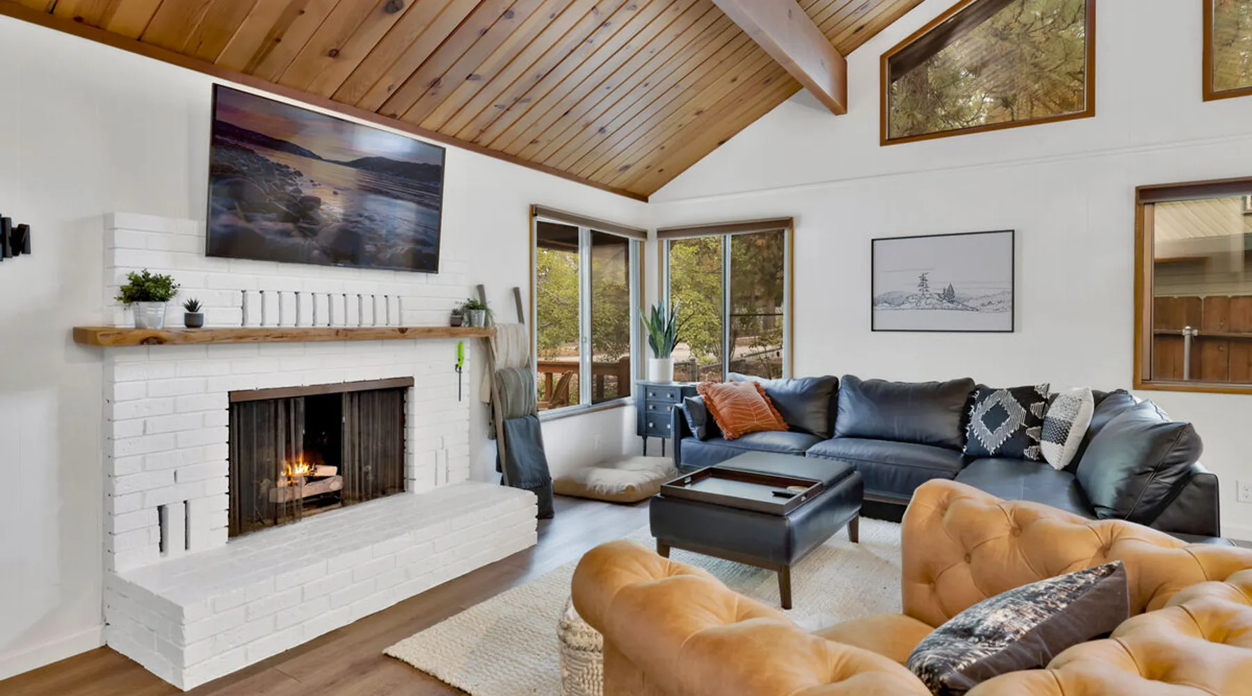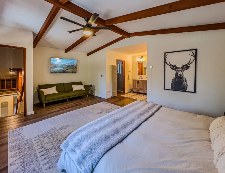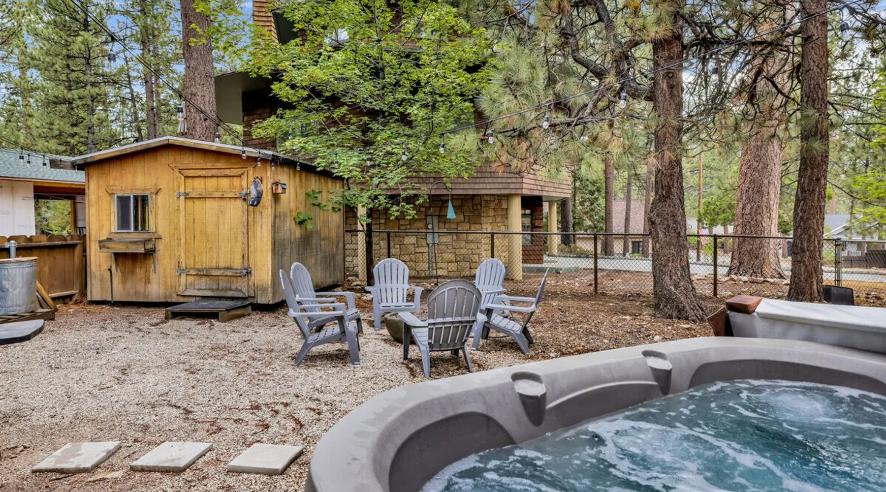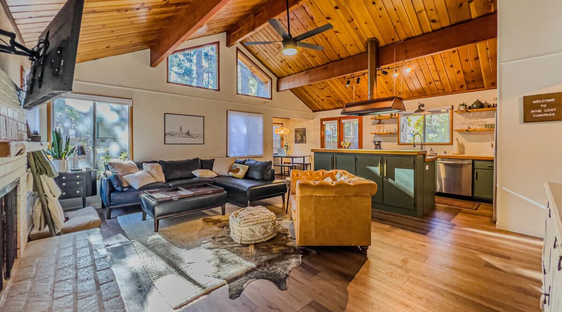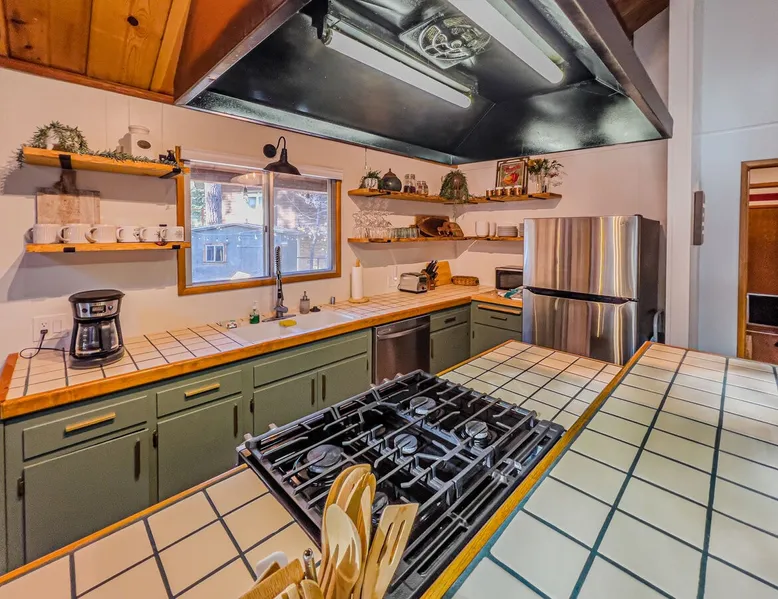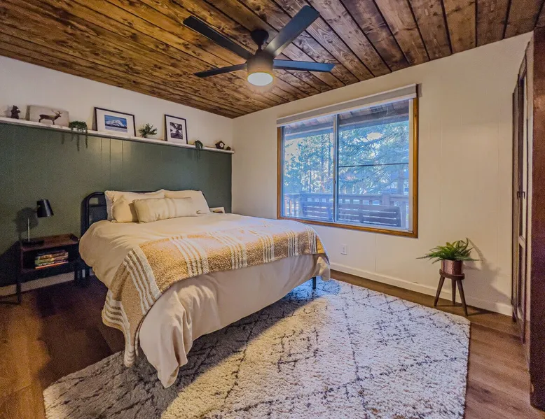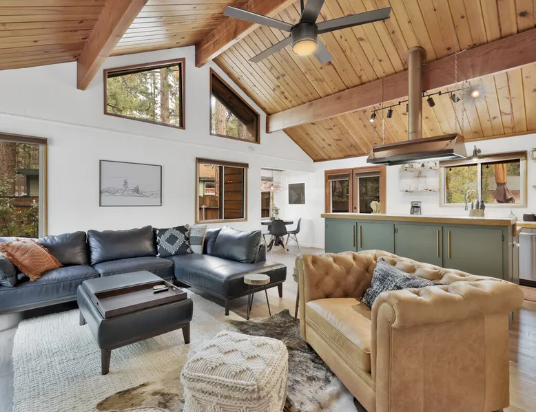 The Lost Compass will be your new home away from home in the mountains for years to come providing your group with the opportunity to vacation in style and comfort together with added amenities and modern furnishings paired up with a prime location within a short car ride to all local Big Bear activities. Soak in the hot tub or enjoy hours of fun in the packed game room garage as you make lifelong memories together under soaring pine trees and shooting stars no matter the season you visit! The space The Lost Compass | Walk To Lake | Game Room | Spa Welcome to The Lost Compass, our freshly furnished and modern two story log cabin chalet is the perfect spot to escape and enjoy Big Bear and the mountains, you'll be within walking distance to Boulder Bay and only 5 minutes to town, where you can enjoy a lovely dinner, or watch a movie and do some shopping! Boasting the comforts from home alongside added amenities included modern appliances, Streaming TVs, a private hot tub, and a fabulous game room converted garage packed with entertainment- your group is sure to make memories to last a lifetime here at The Lost Compass! Entering your chalet on the lower level you are welcomed into the cozy living room area ordained with beautiful hardwood floors, knotty pine beamed cathedral ceilings, and plenty of natural lighting and viewing spaces from the many big open windows, perfect for watching the snow falling in the winter months. Comfy modern couches and sitting chairs are perfectly nestled in front of a toasty gas fireplace and mounted Streaming TV, this is the right space for visiting together or popping on your favorite movie and hosting a movie night in right here at the cabin with complimentary hi speed WIFI internet provided. (Guests must have their own accounts to enjoy Streaming Services.) You will absolutely love the open floor plan here at The Lost Compass, seamlessly flowing from the living room right into the equipped kitchen and dining areas, this is the perfect home for entertaining a dinner party or hosting a holiday meal together. The adorable dining table and breakfast island provide ample dining space while the kitchen has all that you need to prepare your home cooked meals. Freshly painted cabinets are stocked full with cookware and utensils while the essential appliances and dishwasher ensures that your cleanup is even a breeze. This lower entry level hosts your guest bath and two guest bedrooms while the entire upstairs level is home to your spacious primary suite with it's own beautiful private bath, all of your bedrooms and bathrooms are made up for your group with warm linens, blankets, pillows, and fresh shower towels for your trip when you arrive. To further your vacation experience the attached garage has been converted to a fun packed and convenient game room area offering arcade games, an air hockey table, and a washer and dryer for those wet snow clothes or extended stay visits here in the mountains. Outside you will find a wonderful forested and fully fenced private backyard area that is perfect for the kids and pets with great sun decks, outdoor patio furnishings, and a propane BBQ for you to grill up delicious meals and enjoy your natural surroundings. To the side of the deck you will find your own private hot tub under the stars, this is the perfect space to relax and unwind after a long day of adventures out on the lake or mountain. With a close drive to the mountain, walking distance to the lake, and all the modern amenities and conveniences of home you will be able to find yourself here at The Lost Compass! Book Today! Sleeping Arrangements: Bedroom 1: Queen Bed- Downstairs Entry Level Bedroom 2: Full/Twin Bunk Bed- Downstairs Entry Level Bedroom 3: Primary Suite: King Bed + Twin Sleeper Sofa, Streaming TV, Private 3/4 Bath (Shower Only)- Upstairs 2nd Level Bathroom Arrangements: Hallway 3/4 Bath (Shower Only)- Downstairs Entry Level Private 3/4 Bath (Shower Only)- Bedroom 3- Upstairs 2nd Level -Sleeps 7 -3 Cars Driveway Parking -2 Pets Welcome w/ Additional Fee -1,234 Total Square Feet City Permit #: VRR-2024-1328 Registration Details 2024-1328