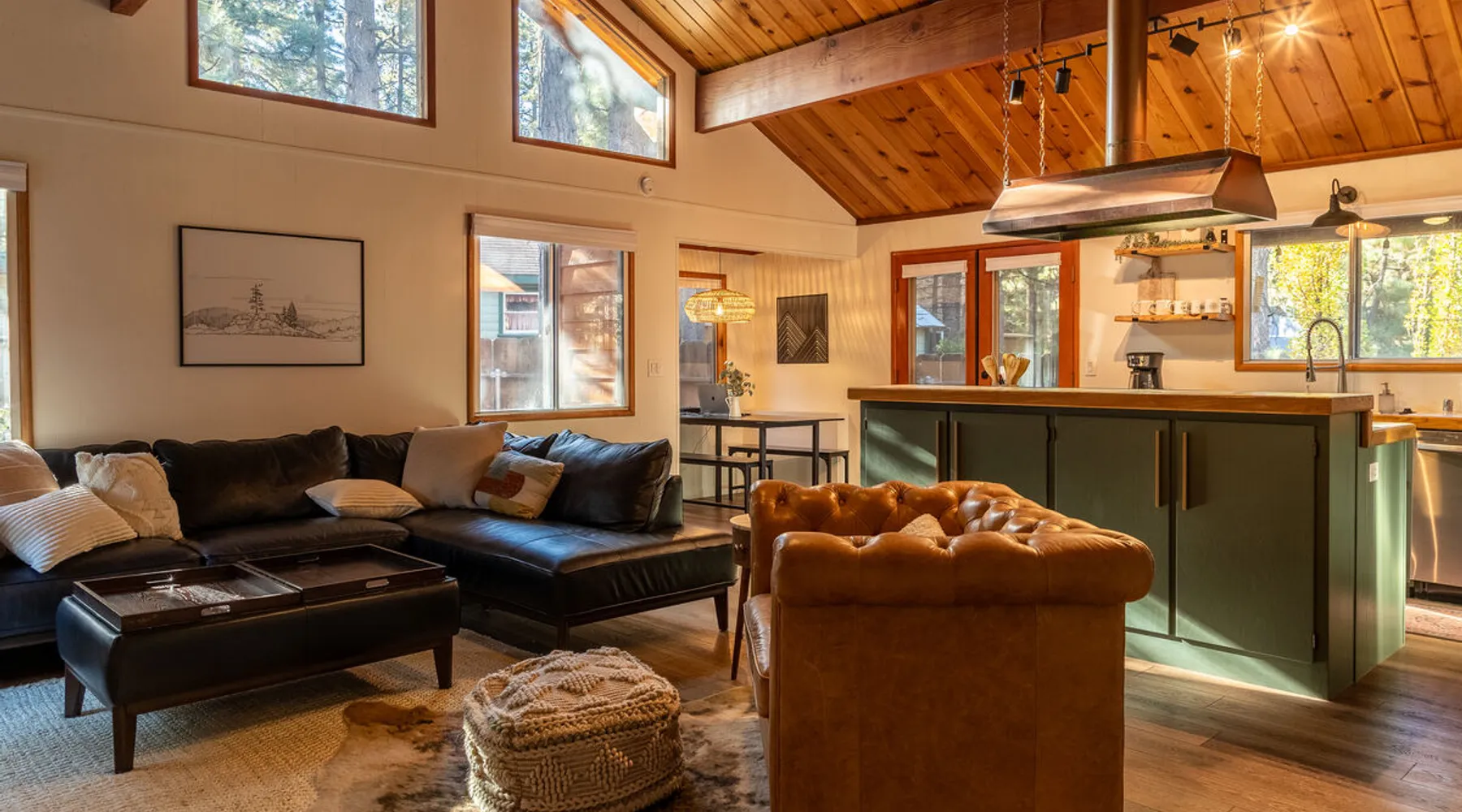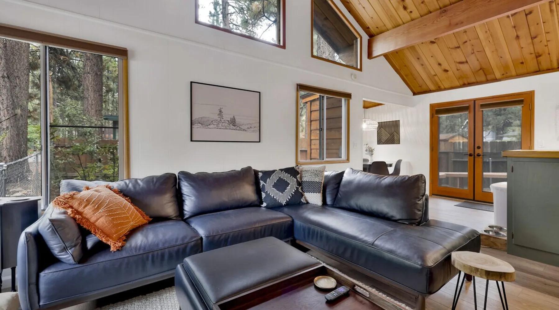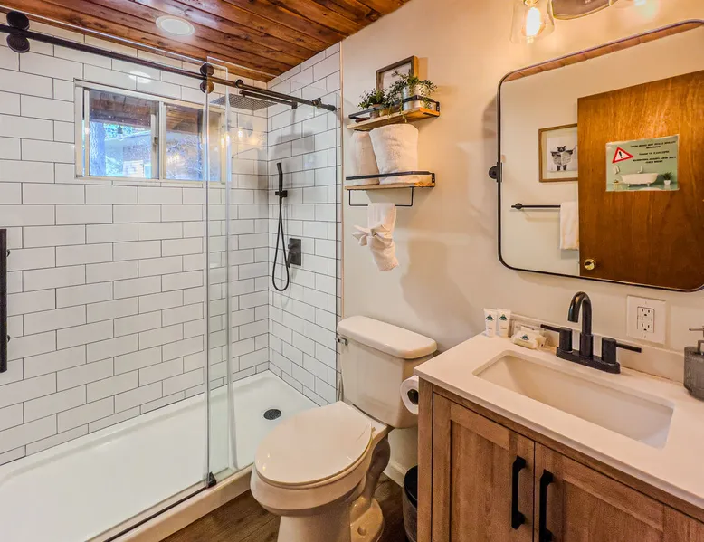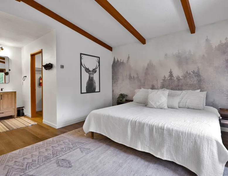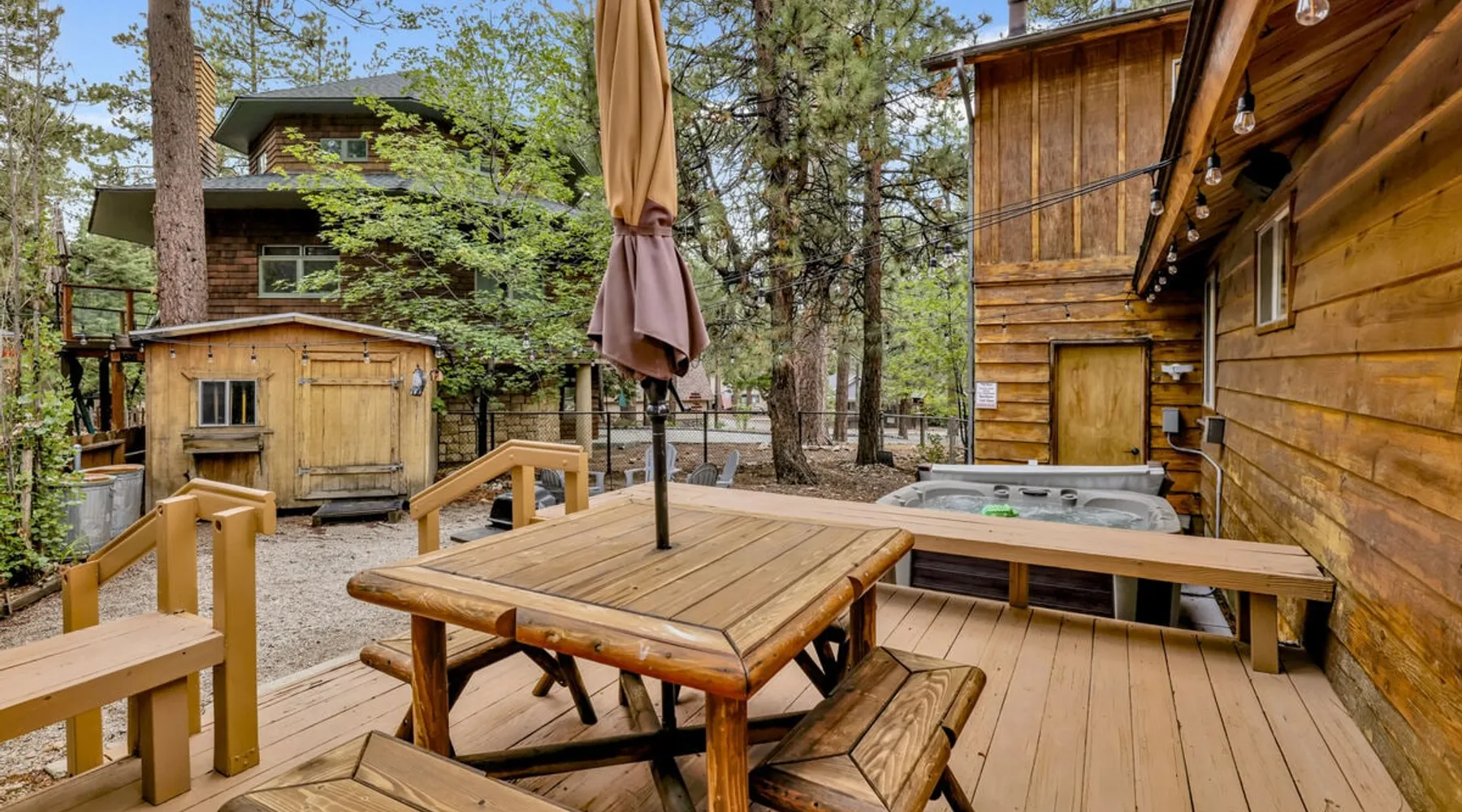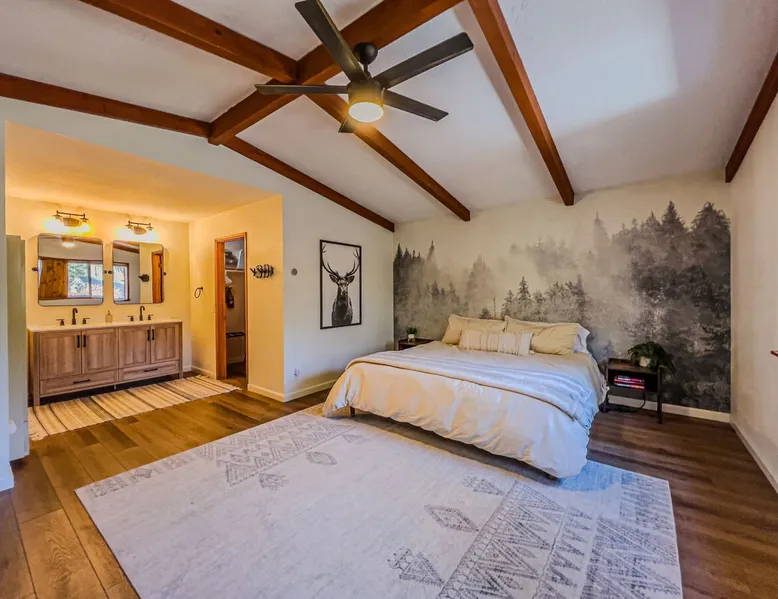 The Lost Compass will be your new home away from home in the mountains for years to come providing your group with the opportunity to vacation in style and comfort together with added amenities and modern furnishings paired up with a prime location within a short car ride to all local Big Bear activities. Soak in the hot tub or enjoy hours of fun in the packed game room garage as you make lifelong memories together under soaring pine trees and shooting stars no matter the season you visit! The space The Lost Compass | Walk To Lake | Game Room | Spa Welcome to The Lost Compass, our freshly furnished and modern two story log cabin chalet is the perfect spot to escape and enjoy Big Bear and the mountains, you'll be within walking distance to Boulder Bay and only 5 minutes to town, where you can enjoy a lovely dinner, or watch a movie and do some shopping! Boasting the comforts from home alongside added amenities included modern appliances, Streaming TVs, a private hot tub, and a fabulous game room converted garage packed with entertainment- your group is sure to make memories to last a lifetime here at The Lost Compass! Entering your chalet on the lower level you are welcomed into the cozy living room area ordained with beautiful hardwood floors, knotty pine beamed cathedral ceilings, and plenty of natural lighting and viewing spaces from the many big open windows, perfect for watching the snow falling in the winter months. Comfy modern couches and sitting chairs are perfectly nestled in front of a toasty gas fireplace and mounted Streaming TV, this is the right space for visiting together or popping on your favorite movie and hosting a movie night in right here at the cabin with complimentary hi speed WIFI internet provided. (Guests must have their own accounts to enjoy Streaming Services.) You will absolutely love the open floor plan here at The Lost Compass, seamlessly flowing from the living room right into the equipped kitchen and dining areas, this is the perfect home for entertaining a dinner party or hosting a holiday meal together. The adorable dining table and breakfast island provide ample dining space while the kitchen has all that you need to prepare your home cooked meals. Freshly painted cabinets are stocked full with cookware and utensils while the essential appliances and dishwasher ensures that your cleanup is even a breeze. This lower entry level hosts your guest bath and two guest bedrooms while the entire upstairs level is home to your spacious primary suite with it's own beautiful private bath, all of your bedrooms and bathrooms are made up for your group with warm linens, blankets, pillows, and fresh shower towels for your trip when you arrive. To further your vacation experience the attached garage has been converted to a fun packed and convenient game room area offering arcade games, an air hockey table, and a washer and dryer for those wet snow clothes or extended stay visits here in the mountains. Outside you will find a wonderful forested and fully fenced private backyard area that is perfect for the kids and pets with great sun decks, outdoor patio furnishings, and a propane BBQ for you to grill up delicious meals and enjoy your natural surroundings. To the side of the deck you will find your own private hot tub under the stars, this is the perfect space to relax and unwind after a long day of adventures out on the lake or mountain. With a close drive to the mountain, walking distance to the lake, and all the modern amenities and conveniences of home you will be able to find yourself here at The Lost Compass! Book Today! Sleeping Arrangements: Bedroom 1: Queen Bed- Downstairs Entry Level Bedroom 2: Full/Twin Bunk Bed- Downstairs Entry Level Bedroom 3: Primary Suite: King Bed + Twin Sleeper Sofa, Streaming TV, Private 3/4 Bath (Shower Only)- Upstairs 2nd Level Bathroom Arrangements: Hallway 3/4 Bath (Shower Only)- Downstairs Entry Level Private 3/4 Bath (Shower Only)- Bedroom 3- Upstairs 2nd Level -Sleeps 7 -3 Cars Driveway Parking -2 Pets Welcome w/ Additional Fee -1,234 Total Square Feet City Permit #: VRR-2024-1328 Registration Details 2024-1328