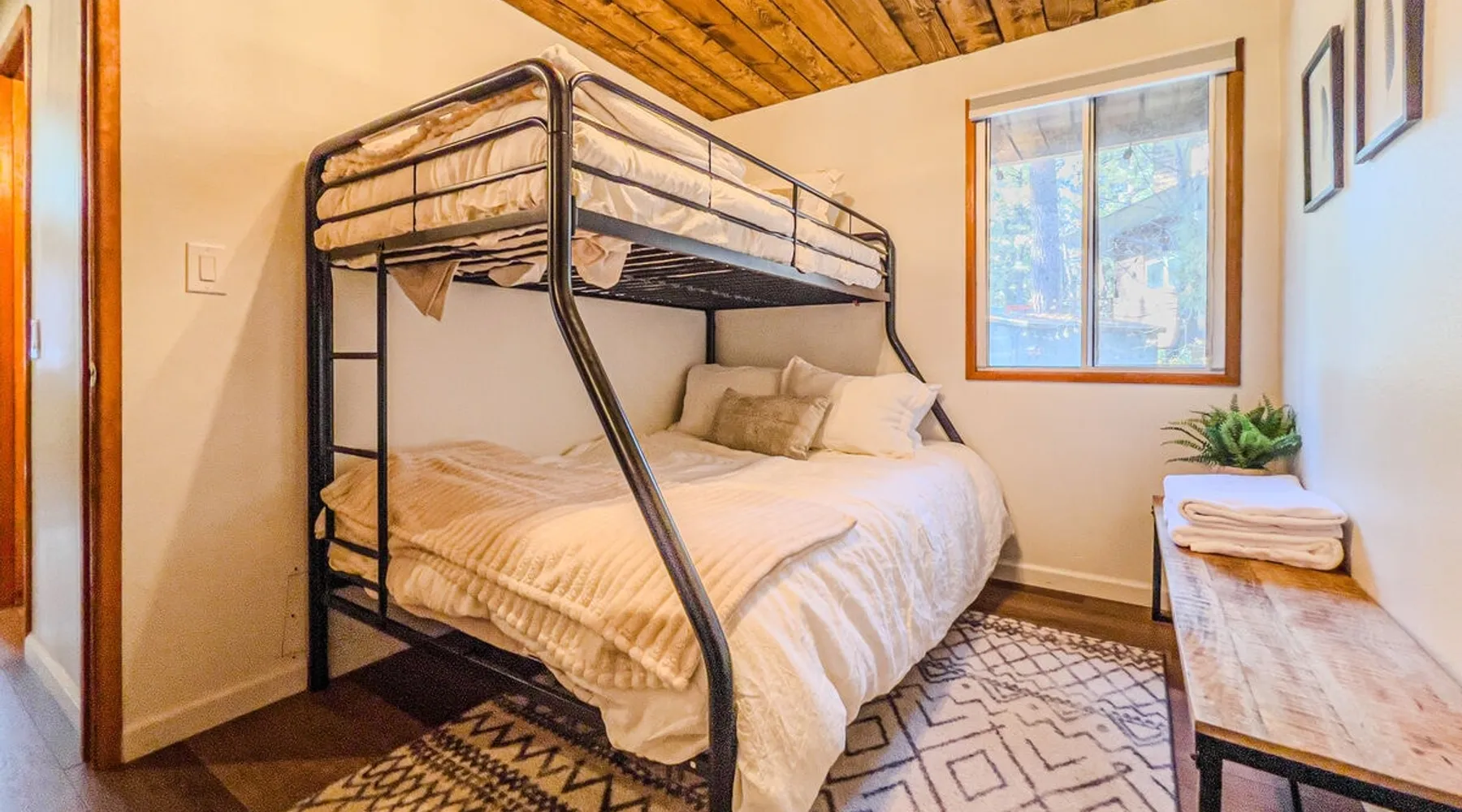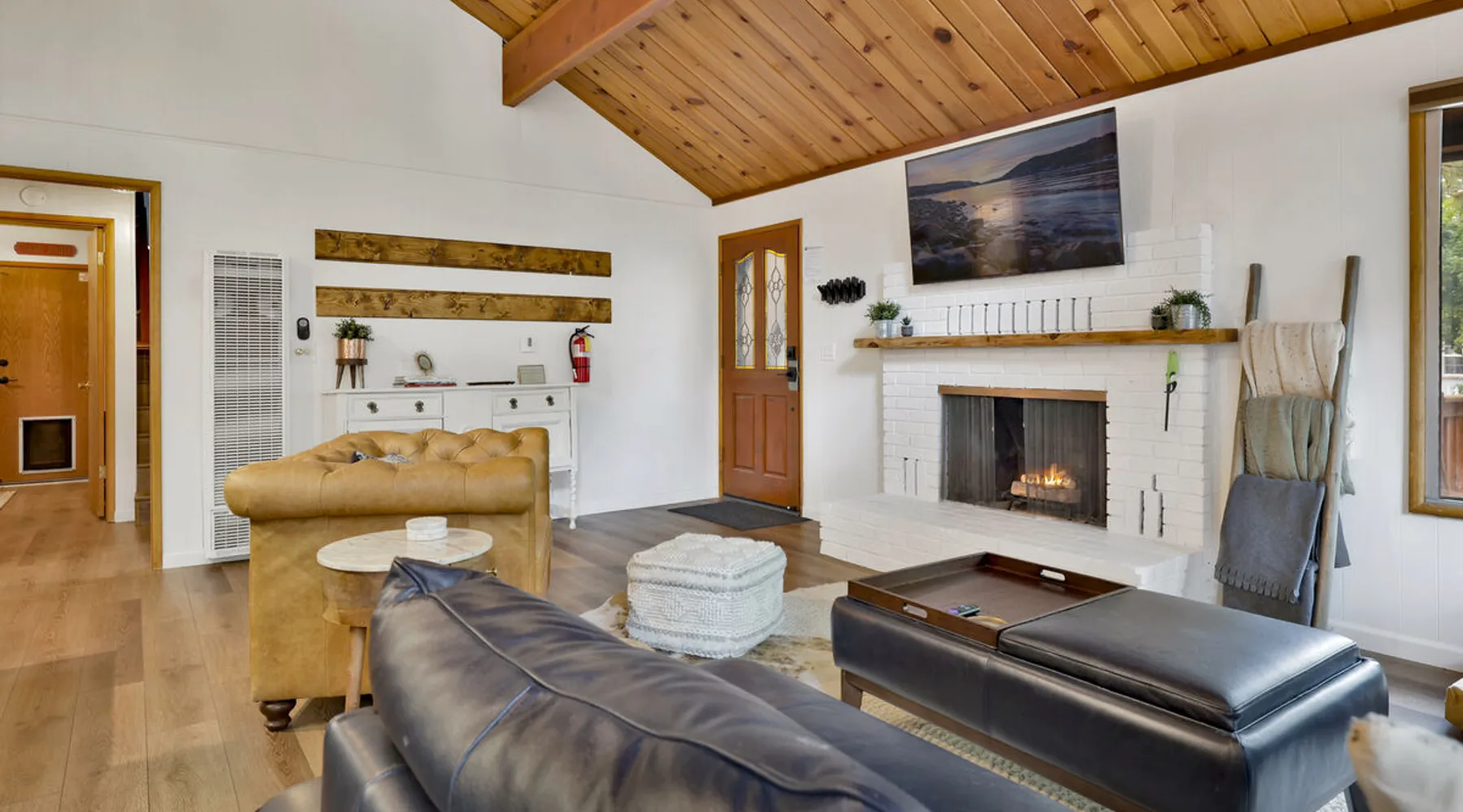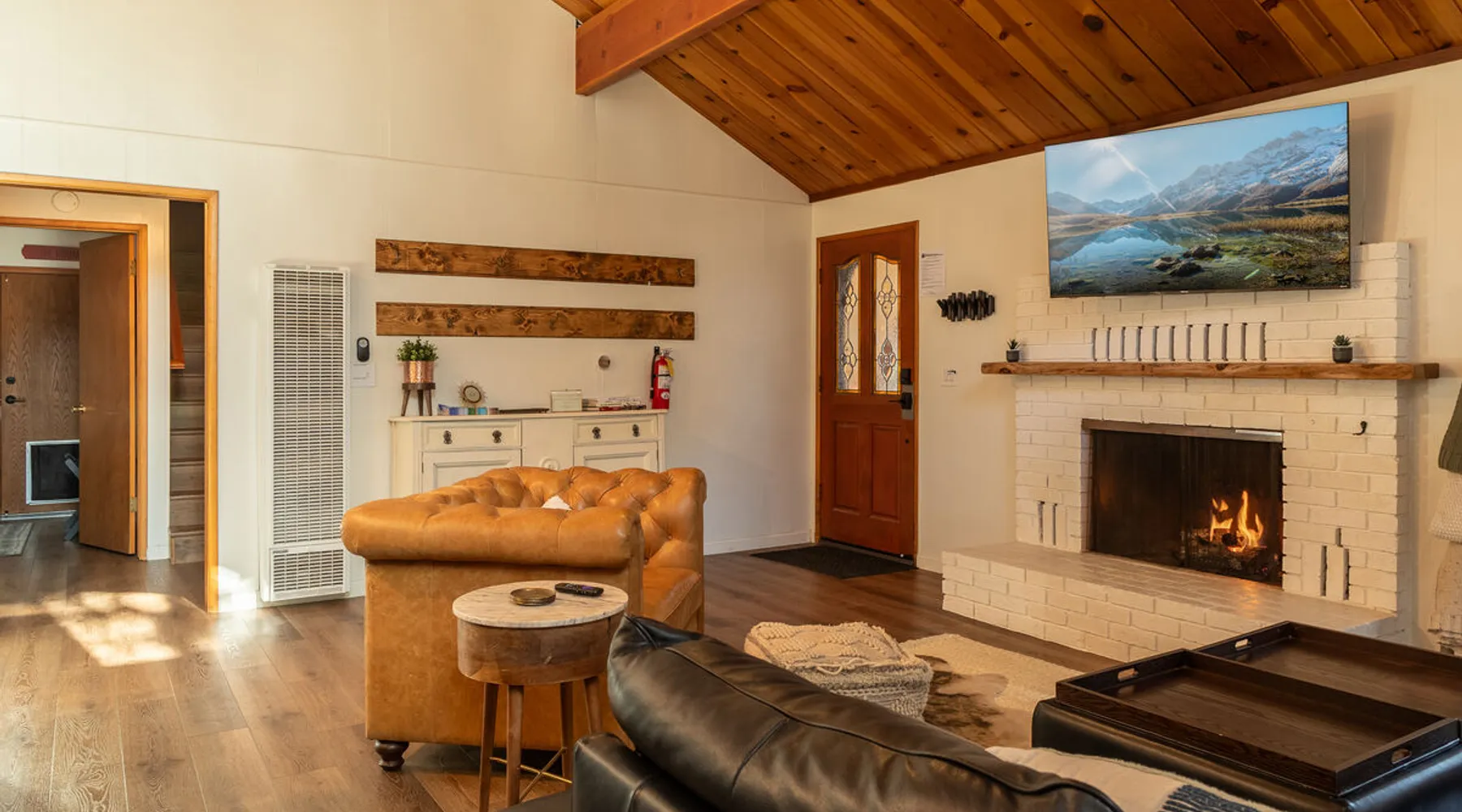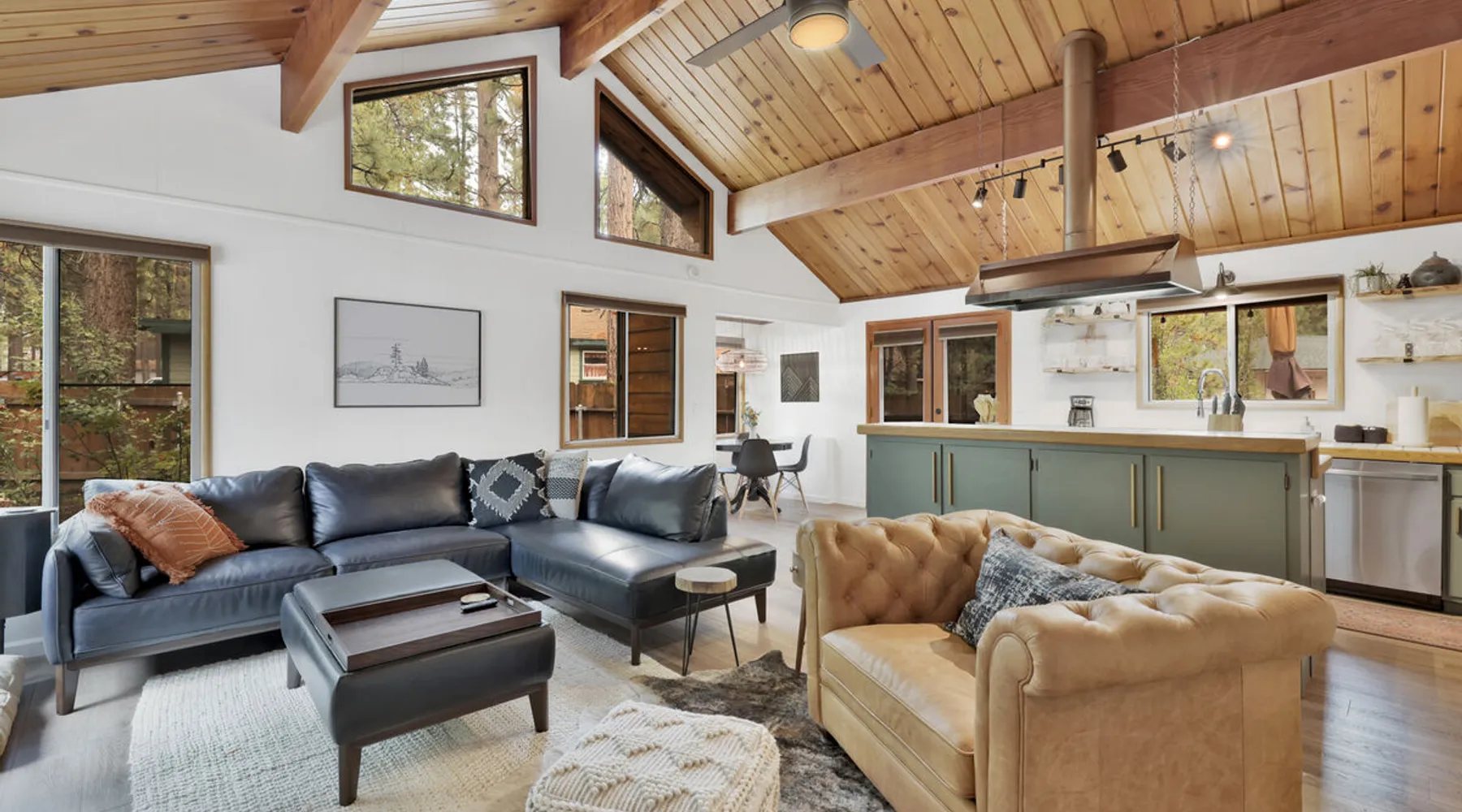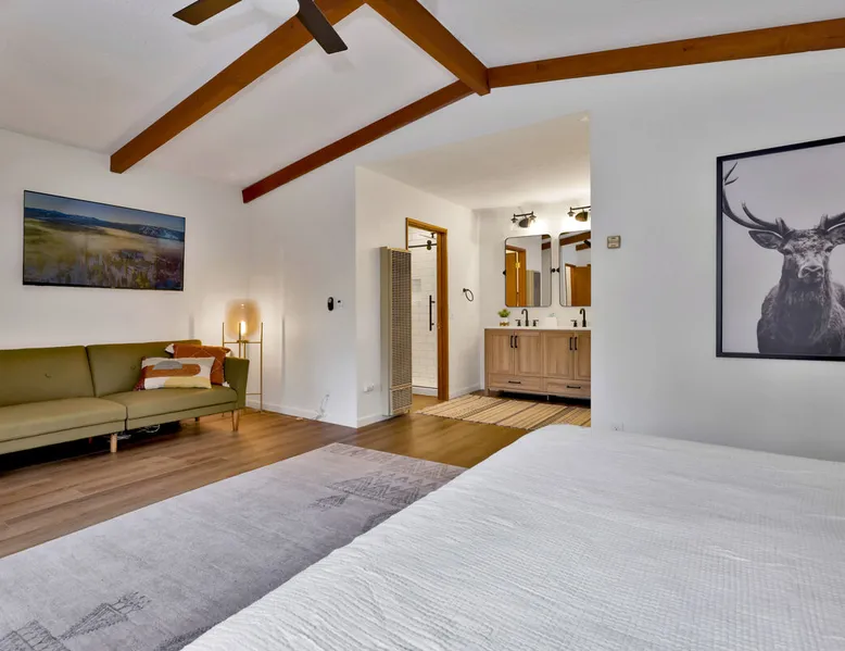 The Lost Compass will be your new home away from home in the mountains for years to come providing your group with the opportunity to vacation in style and comfort together with added amenities and modern furnishings paired up with a prime location within a short car ride to all local Big Bear activities. Soak in the hot tub or enjoy hours of fun in the packed game room garage as you make lifelong memories together under soaring pine trees and shooting stars no matter the season you visit! The space The Lost Compass | Walk To Lake | Game Room | Spa Welcome to The Lost Compass, our freshly furnished and modern two story log cabin chalet is the perfect spot to escape and enjoy Big Bear and the mountains, you'll be within walking distance to Boulder Bay and only 5 minutes to town, where you can enjoy a lovely dinner, or watch a movie and do some shopping! Boasting the comforts from home alongside added amenities included modern appliances, Streaming TVs, a private hot tub, and a fabulous game room converted garage packed with entertainment- your group is sure to make memories to last a lifetime here at The Lost Compass! Entering your chalet on the lower level you are welcomed into the cozy living room area ordained with beautiful hardwood floors, knotty pine beamed cathedral ceilings, and plenty of natural lighting and viewing spaces from the many big open windows, perfect for watching the snow falling in the winter months. Comfy modern couches and sitting chairs are perfectly nestled in front of a toasty gas fireplace and mounted Streaming TV, this is the right space for visiting together or popping on your favorite movie and hosting a movie night in right here at the cabin with complimentary hi speed WIFI internet provided. (Guests must have their own accounts to enjoy Streaming Services.) You will absolutely love the open floor plan here at The Lost Compass, seamlessly flowing from the living room right into the equipped kitchen and dining areas, this is the perfect home for entertaining a dinner party or hosting a holiday meal together. The adorable dining table and breakfast island provide ample dining space while the kitchen has all that you need to prepare your home cooked meals. Freshly painted cabinets are stocked full with cookware and utensils while the essential appliances and dishwasher ensures that your cleanup is even a breeze. This lower entry level hosts your guest bath and two guest bedrooms while the entire upstairs level is home to your spacious primary suite with it's own beautiful private bath, all of your bedrooms and bathrooms are made up for your group with warm linens, blankets, pillows, and fresh shower towels for your trip when you arrive. To further your vacation experience the attached garage has been converted to a fun packed and convenient game room area offering arcade games, an air hockey table, and a washer and dryer for those wet snow clothes or extended stay visits here in the mountains. Outside you will find a wonderful forested and fully fenced private backyard area that is perfect for the kids and pets with great sun decks, outdoor patio furnishings, and a propane BBQ for you to grill up delicious meals and enjoy your natural surroundings. To the side of the deck you will find your own private hot tub under the stars, this is the perfect space to relax and unwind after a long day of adventures out on the lake or mountain. With a close drive to the mountain, walking distance to the lake, and all the modern amenities and conveniences of home you will be able to find yourself here at The Lost Compass! Book Today! Sleeping Arrangements: Bedroom 1: Queen Bed- Downstairs Entry Level Bedroom 2: Full/Twin Bunk Bed- Downstairs Entry Level Bedroom 3: Primary Suite: King Bed + Twin Sleeper Sofa, Streaming TV, Private 3/4 Bath (Shower Only)- Upstairs 2nd Level Bathroom Arrangements: Hallway 3/4 Bath (Shower Only)- Downstairs Entry Level Private 3/4 Bath (Shower Only)- Bedroom 3- Upstairs 2nd Level -Sleeps 7 -3 Cars Driveway Parking -2 Pets Welcome w/ Additional Fee -1,234 Total Square Feet City Permit #: VRR-2024-1328 Registration Details 2024-1328