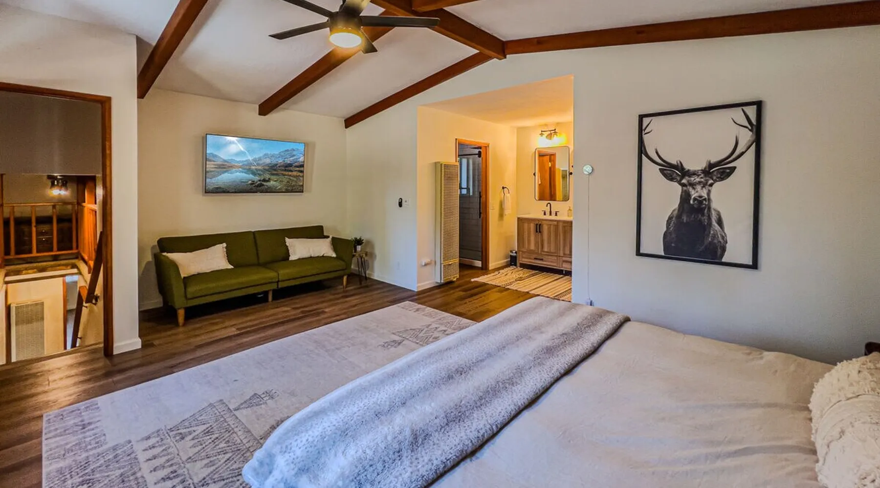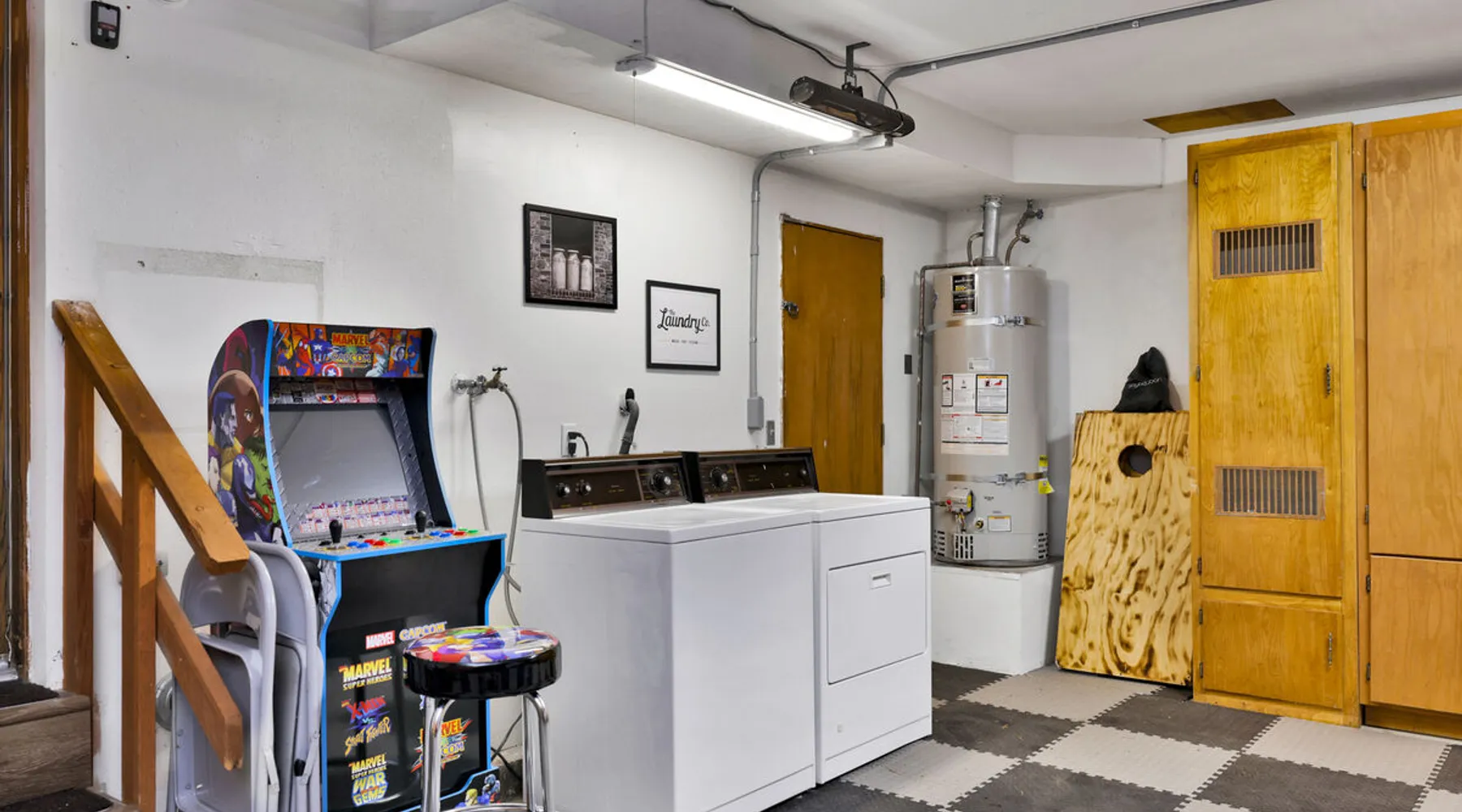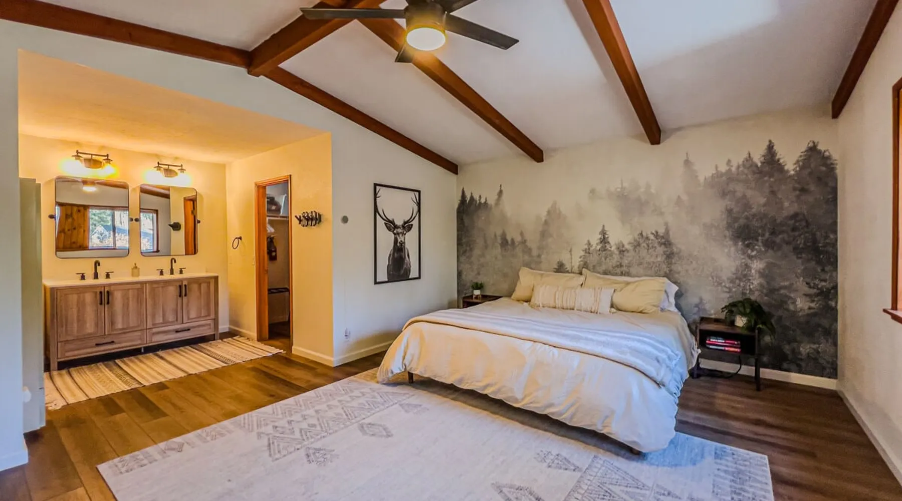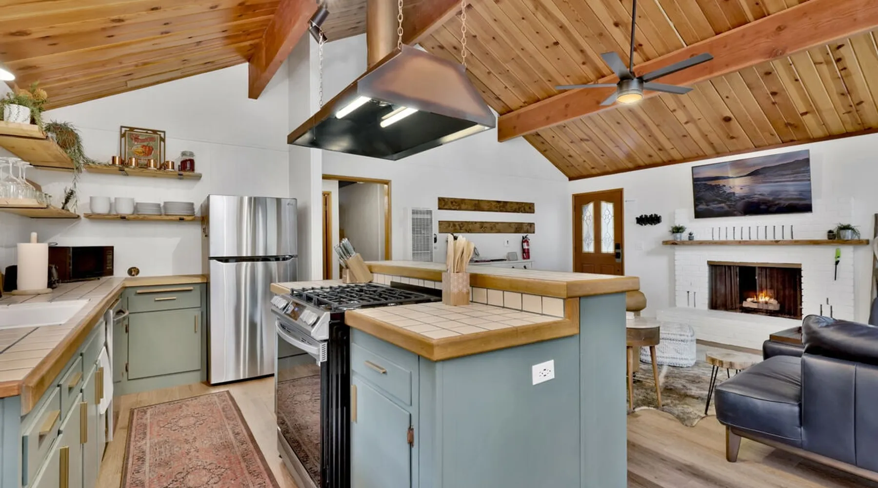 The Lost Compass will be your new home away from home in the mountains for years to come providing your group with the opportunity to vacation in style and comfort together with added amenities and modern furnishings paired up with a prime location within a short car ride to all local Big Bear activities. Soak in the hot tub or enjoy hours of fun in the packed game room garage as you make lifelong memories together under soaring pine trees and shooting stars no matter the season you visit! The space The Lost Compass | Walk To Lake | Game Room | Spa Welcome to The Lost Compass, our freshly furnished and modern two story log cabin chalet is the perfect spot to escape and enjoy Big Bear and the mountains, you'll be within walking distance to Boulder Bay and only 5 minutes to town, where you can enjoy a lovely dinner, or watch a movie and do some shopping! Boasting the comforts from home alongside added amenities included modern appliances, Streaming TVs, a private hot tub, and a fabulous game room converted garage packed with entertainment- your group is sure to make memories to last a lifetime here at The Lost Compass! Entering your chalet on the lower level you are welcomed into the cozy living room area ordained with beautiful hardwood floors, knotty pine beamed cathedral ceilings, and plenty of natural lighting and viewing spaces from the many big open windows, perfect for watching the snow falling in the winter months. Comfy modern couches and sitting chairs are perfectly nestled in front of a toasty gas fireplace and mounted Streaming TV, this is the right space for visiting together or popping on your favorite movie and hosting a movie night in right here at the cabin with complimentary hi speed WIFI internet provided. (Guests must have their own accounts to enjoy Streaming Services.) You will absolutely love the open floor plan here at The Lost Compass, seamlessly flowing from the living room right into the equipped kitchen and dining areas, this is the perfect home for entertaining a dinner party or hosting a holiday meal together. The adorable dining table and breakfast island provide ample dining space while the kitchen has all that you need to prepare your home cooked meals. Freshly painted cabinets are stocked full with cookware and utensils while the essential appliances and dishwasher ensures that your cleanup is even a breeze. This lower entry level hosts your guest bath and two guest bedrooms while the entire upstairs level is home to your spacious primary suite with it's own beautiful private bath, all of your bedrooms and bathrooms are made up for your group with warm linens, blankets, pillows, and fresh shower towels for your trip when you arrive. To further your vacation experience the attached garage has been converted to a fun packed and convenient game room area offering arcade games, an air hockey table, and a washer and dryer for those wet snow clothes or extended stay visits here in the mountains. Outside you will find a wonderful forested and fully fenced private backyard area that is perfect for the kids and pets with great sun decks, outdoor patio furnishings, and a propane BBQ for you to grill up delicious meals and enjoy your natural surroundings. To the side of the deck you will find your own private hot tub under the stars, this is the perfect space to relax and unwind after a long day of adventures out on the lake or mountain. With a close drive to the mountain, walking distance to the lake, and all the modern amenities and conveniences of home you will be able to find yourself here at The Lost Compass! Book Today! Sleeping Arrangements: Bedroom 1: Queen Bed- Downstairs Entry Level Bedroom 2: Full/Twin Bunk Bed- Downstairs Entry Level Bedroom 3: Primary Suite: King Bed + Twin Sleeper Sofa, Streaming TV, Private 3/4 Bath (Shower Only)- Upstairs 2nd Level Bathroom Arrangements: Hallway 3/4 Bath (Shower Only)- Downstairs Entry Level Private 3/4 Bath (Shower Only)- Bedroom 3- Upstairs 2nd Level -Sleeps 7 -3 Cars Driveway Parking -2 Pets Welcome w/ Additional Fee -1,234 Total Square Feet City Permit #: VRR-2024-1328 Registration Details 2024-1328
