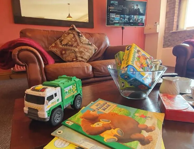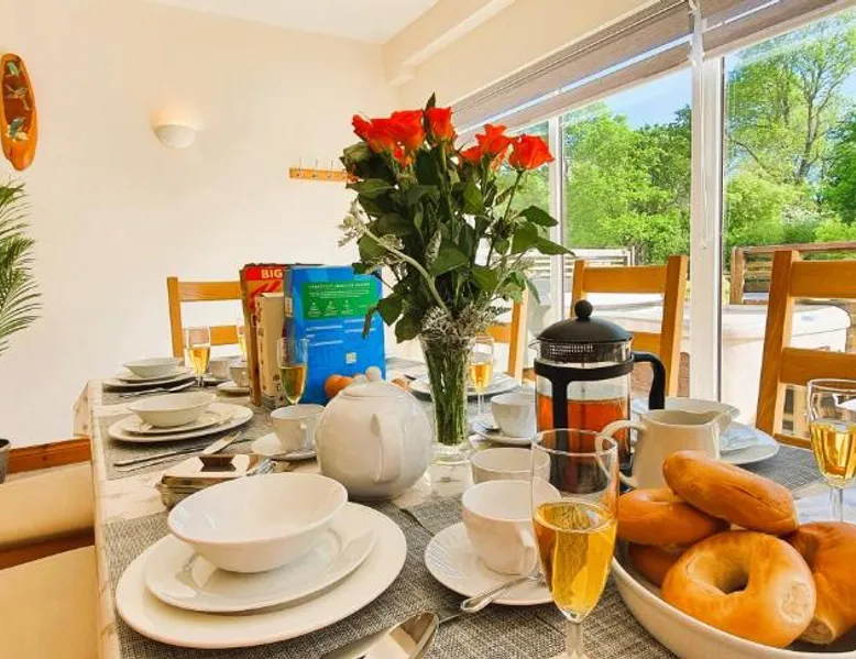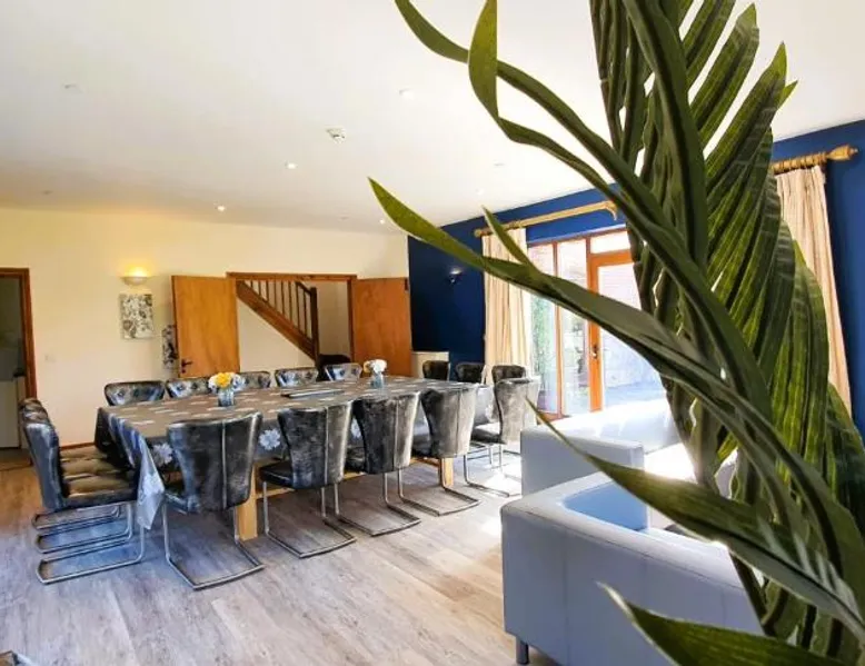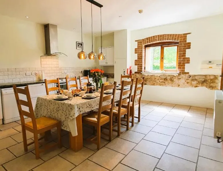 Historic Charm: The Victorian Barn in Blandford Forum offers a unique holiday home experience within a historic building. Guests enjoy a beautiful garden, terrace, and indoor swimming pool with stunning views. Modern Amenities: The property features a sauna, hot tub, and indoor play area. Additional facilities include free WiFi, free on-site private parking, and an electric vehicle charging station. Comfortable Accommodations: Each unit offers a private bathroom, fully equipped kitchen, and comfortable living areas. Family rooms and interconnected rooms cater to all guests, ensuring a pleasant stay. Local Attractions: Located 15 mi from Monkey World and 29 mi from Bournemouth Airport, the property is close to Corfe Castle and Poole Harbor. Activities such as fishing, hiking, and cycling are available nearby. This holiday home features a pool with a view, hot tub and sauna. This spacious holiday home consists of a living room and large kitchen, 4 separate bedrooms and 4 bathrooms with a bath and a shower. Ground floor WC. The well-equipped kitchen features a stovetop, a refrigerator, a dishwasher and kitchenware. Featuring a terrace with garden views, this holiday home also provides a flat-screen TV with streaming services. The unit offers 6 beds.