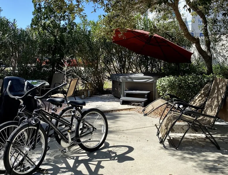 Steps to the Beach, Trails, Shops, Dining and more! This one bedroom has with everything you might need for the perfect 30A couple's or small family getaway vacation. Situated only 528 yds from beach access in the heart of Seagrove. This lovely cottage features granite countertops, hardwood floors throughout. Smart TVs in the living area and bedroom. You'll love the large patio which is the great spot for relaxation and privacy with its dining area, private hot tub and propane grill. The space Outdoor: The private oasis includes its own hot tub, propane grill, and patio. Kitchen: The home’s kitchen will accommodate the most discerning chef. Sleeping Spaces: Bedroom: includes a queen bed, large closet, and smart TV. Sofa sleeper: living room includes a queen sofa bed Pack N Play is available for little ones Family Room: The living room has a comfy sofa, roku smart TV. Dining: Kitchen dining table seats four. And if outdoors is your thing, you can enjoy meals al fresco on the patio around the dining table. Included is a starter supply of basic amenities including paper towels, toilet paper, coffee, tea, and spices. You may need to supplement this supply based on individual preferences and usage. Special attention rules: * 5% Discount off nightly rate for stays of at least 7 nights * Primary Renter Must Upload Government ID * Renter Identification and background will be checked * No smoking * No parties or events * Must be 25 to book * No college Spring breakers * You must sign our rental agreement * Guests agree to contact host with any concerns and give host the opportunity to correct them Guest access Once the home has been cleaned and inspected, guests receive a unique door code that is active only for your stay. Other things to note There is a main house that adjoins Solsun. Main house residents have their own private entrance and parking. Main house guests do not have access to Solsun nor its hot tub and bicycles.