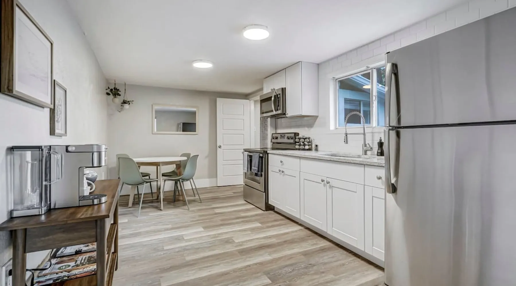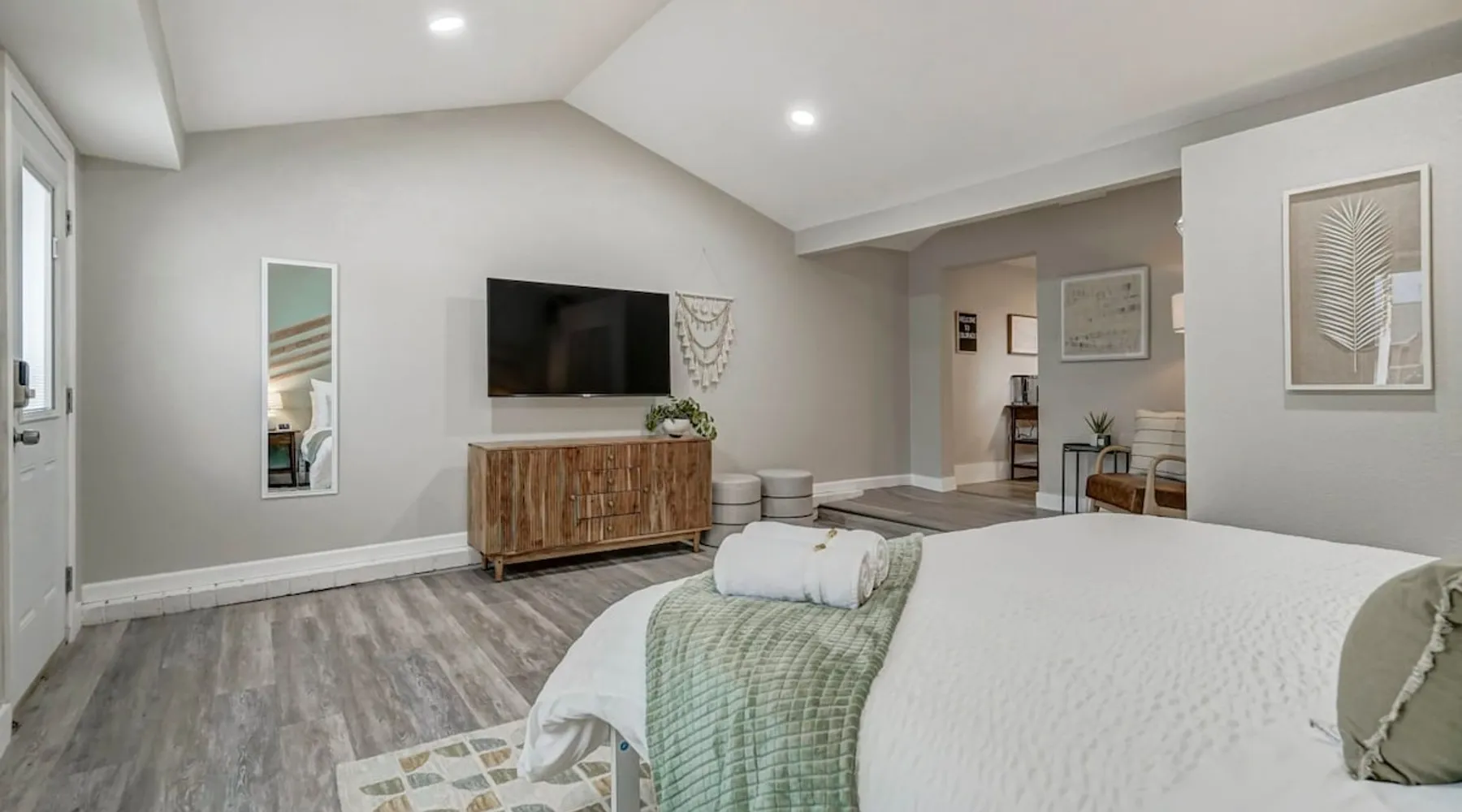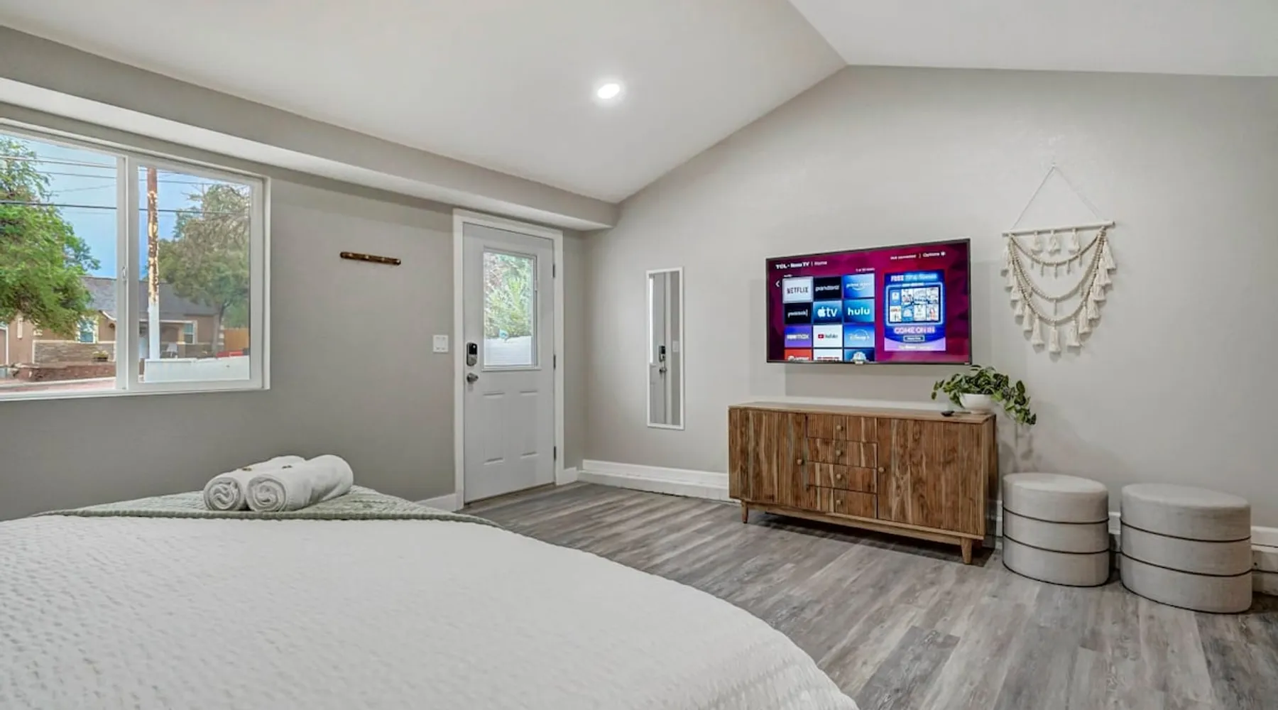 Welcome to our newly renovated studio! Impeccably refurbished and thoughtfully equipped with the best amenities! 🏡 Top-rated vacation rental near downtown Colorado Springs! 🏙️ Mins to downtown shops & restaurants! 🏰 Quick drive to Garden of the Gods, Cheyenne Mtn Zoo, CO College, & USAFA! 🏥 Short hop to Memorial Hospital, Memorial Park, & Olympic Training Center! 🚀 Fast WiFi & 55” 4k Smart TV! 👶 Pack-n-play for little adventurers! 🍽️ Fully-stocked kitchen w/ Keurig! Ready to be charmed? The space 🏡 Welcome to Our Curated Colorado Studio Conveniently situated just east of Downtown Colorado Springs, this beautifully transformed studio apartment offers proximity to all the area has to offer. Within minutes, you'll find yourself amidst fantastic restaurants, superb attractions, and with easy access to I-25, less than 2 miles away. 🛏️ Bedroom & Living Room The spacious bedroom/living room is perfectly set up with a wonderfully comfortable King bed and fresh, crisp linens for your stay. Hang your items with provided hangers or place your suitcase on the luggage rack provided. The space is thoughtfully decorated with your comfort in mind. King Bed: Cozy up in the ultra-comfortable King bed with fresh linens. Entertainment: Relax in front of the large 55" Smart TV and catch up on your favorite shows. 🍳 Kitchen Cook to your heart's content in the galley-style kitchen, fully stocked with all the essentials to make you feel right at home: Essentials: Baking sheets, utensils, pots/pans, spices, silverware, and more. Home Cooking: Everything you need to prepare meals from the comfort of "home." 🛁 Bathroom Enjoy the sparkling cleanliness and amenities provided to enhance your stay: Amenities: Hairdryer, plush soft towels, feminine products, shampoo, conditioner, and body wash. Cleanliness: The shower, vanity, and toilet are kept spotless for your comfort. 🌟 Thoughtful Details We understand that your trip is a carefully planned experience, and we're committed to providing a stay that exceeds your expectations. With attention to detail and a focus on your comfort, our space offers everything you need for a memorable and enjoyable stay. Guest access 🔑 During your stay, you will have access to the entire unit with its own private exterior entry! We welcome you to feel at home during your stay and enjoy all the wonderful food and drinks just a few minutes away located all around the Downtown area! Other things to note 📜 Rental Agreement: For a seamless booking experience, a Rental Agreement is required for all reservations. Once your reservation is confirmed, we’ll provide details for completing the agreement. 🔑 Check-In Process: For a seamless check-in experience, your unique code along with your check-in instructions will be updated into your personalized guidebook on the morning of your arrival. You’ll use this code for entry. ☕ Starter Supply: We’ve prepared a starter supply that includes paper towels, coffee K-cups, toilet paper, shampoo, body wash, and plush white towels! We hope these amenities add an extra touch of comfort to your stay. ⏰ Unauthorized Late Checkout Fee: $20 Per Half Hour Late 💵 Additional Fees: For guests bringing dogs, there is a mandatory pet fee of $100 per dog, collected after booking. A maximum of 2 dogs is allowed per reservation unless otherwise approved. No other animals are permitted. Optional services, including early check-in, late check-out, and additional guests, can be arranged upon request and are subject to availability. These additional fees help cover the cost of reworking the schedule or adding an additional cleaner if needed. Please message us ahead of time for pricing and availability.