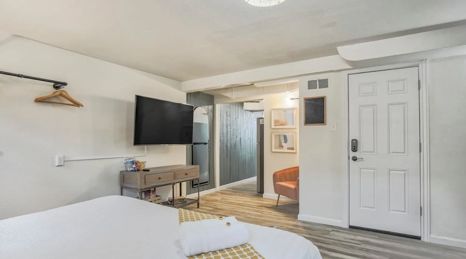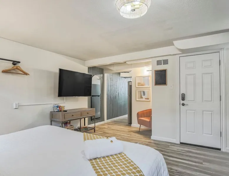 Welcome to Pikes Escape! Our newly remodeled studio apartment, designed for comfort and convenience in Colorado Springs! 🌟 Professionally cleaned and disinfected for your safety 🚶 Walk to Memorial Park, Memorial Hospital, & The Olympic Training Center 🚀 Ultra-fast WiFi & 55” Roku Smart TV for streaming 🍳 Fully stocked kitchen for home-cooked meals 🎮 Shared arcade room with NBA Jam, Pac-Man, foosball, & skeeball 🌳 Relax in the communal backyard for outdoor fun Pack your bags and book now! The space Welcome to your home away from home at Pikes Escape! As you step into this newly remodeled unit, you'll be greeted by a private entrance and a cozy atmosphere, perfect for your Colorado Springs adventure. 🏡 Private Entrance Enjoy complete privacy with your own entrance. This welcoming environment is ideal for relaxing after a day of exploring. ✨ Stylish Interior Relax in a thoughtfully designed space, perfect for spending time with family and friends. The stylish decor and cozy ambiance make it a delightful place to unwind. 🛏️ Rooms & Beds The unit comfortably sleeps up to 4 guests: Bedroom: 1 Queen Bed Living Area: Queen-sized pull-out sofa with a mattress for additional guests 🛁 Bathrooms The full bathroom is equipped with all standard toiletries, featuring a hairdryer, makeup removal wipes, and emergency feminine products. 🔥 Outdoor Paradise Enjoy outdoor activities just steps away, with nearby parks and attractions offering endless possibilities for adventure. 🍳 Fully-Equipped Kitchen The kitchen is fully stocked with all the essentials for cooking, from utensils to spices. Enjoy fresh coffee every morning from our Keurig, stocked with coffee pods and creamer. 🧺 Convenient Laundry Access the communal laundry room, featuring complimentary washers and dryers to keep your clothes fresh during your stay. 🎮 Game Room Fun Enjoy access to a shared game room featuring retro arcade classics like NBA Jam and Pac-Man, alongside foosball, skeeball, and a TV. A great spot for some indoor fun and friendly competition! 📜 Legal Compliance Rest easy knowing we are legally registered with the city. Your booking won't be canceled due to staying at an unpermitted short-term rental. Our Favorite Guest Reviews 🌟 "It was a great experience, and we enjoyed our stay. The place was spotless, and we loved the welcome goodies. Everything was clean and convenient." 🌟 "My stay at Kaitlyn's listing was very nice. The location was great, with everything you need for a comfortable stay. The home was clean and cozy, and the instructions were super clear." 🌟 "Just as listed! Great location near lots of things to do. Kaitlyn was responsive and helpful throughout our stay. Loved the comfy beds and sweet little kitchen." 🌟 "Definitely will be staying here again. The space was thoughtfully prepared with snacks and extras, and the location was close to all tourist attractions." 🌟 "Everything went smoothly for our stay. Kaitlyn was very responsive, and parking was easy to find. The apartment was nice, clean, and cozy." Guest access 🔑 Your own private space! You’ll have the entire unit to yourself, including a private backyard. There is access to a shared game room featuring foosball, skeeball, and a TV—there’s plenty of space for everyone. If you are interested in booking the other unit too, please reach out and we can help! Other things to note 📜 Rental Agreement: For a seamless booking experience, a Rental Agreement is required for all reservations. Once your reservation is confirmed, we’ll provide details for completing the agreement. 🔑 Check-In Process: For a seamless check-in experience, your unique code along with your check-in instructions will be updated into your personalized guidebook on the morning of your arrival. You’ll use this code for entry. ☕ Starter Supply: We’ve prepared a starter supply that includes paper towels, coffee K-cups, toilet paper, shampoo, body wash, and plush white towels! We hope these amenities add an extra touch of comfort to your stay. ⏰ Unauthorized Late Checkout Fee: $20 Per Half Hour Late 💵 Additional Fees:Optional services, including early check-in, late check-out, and additional guests, can be arranged upon request and are subject to availability. These additional fees help cover the cost of reworking the schedule or adding an additional cleaner if needed. Please message us ahead of time for pricing and availability. 🎮 Shared Game Room: During your stay, you'll have access to a shared game room featuring retro arcade games like NBA Jam and Pac-Man, as well as foosball, skeeball, and a TV—perfect for some indoor fun with fellow guests.