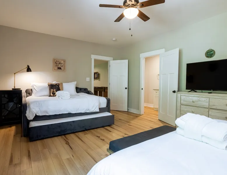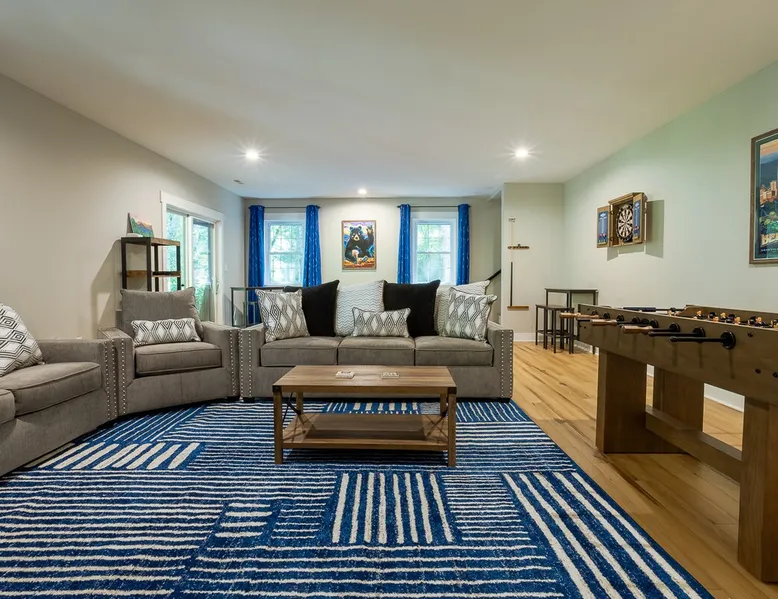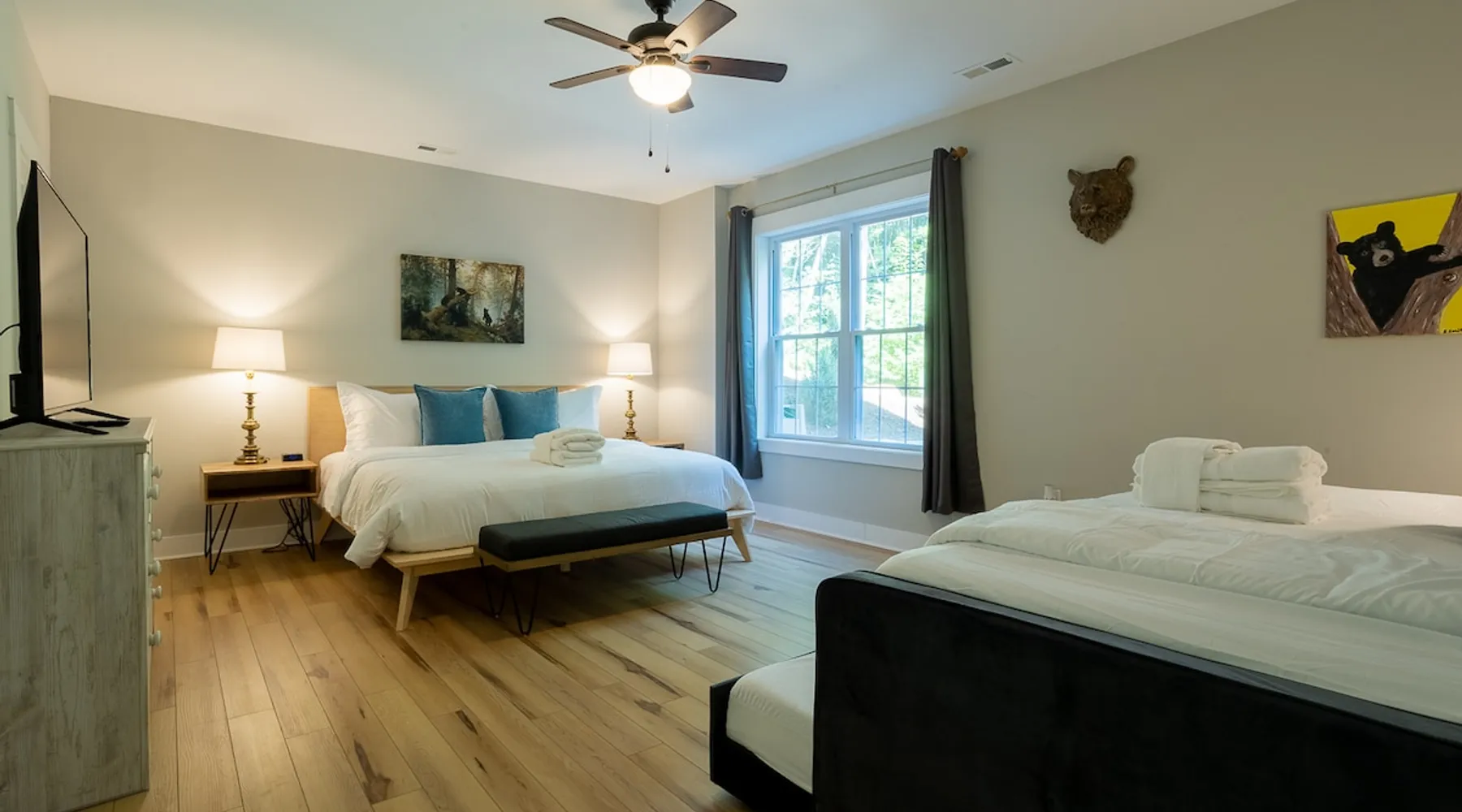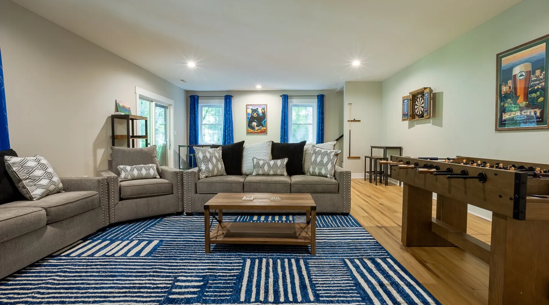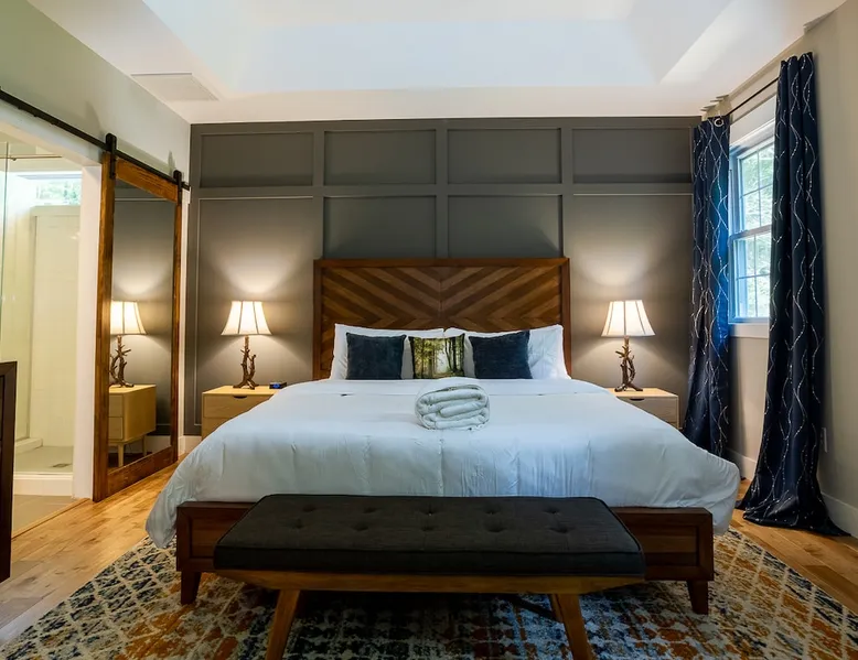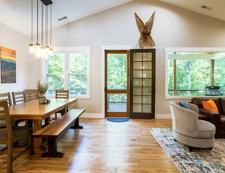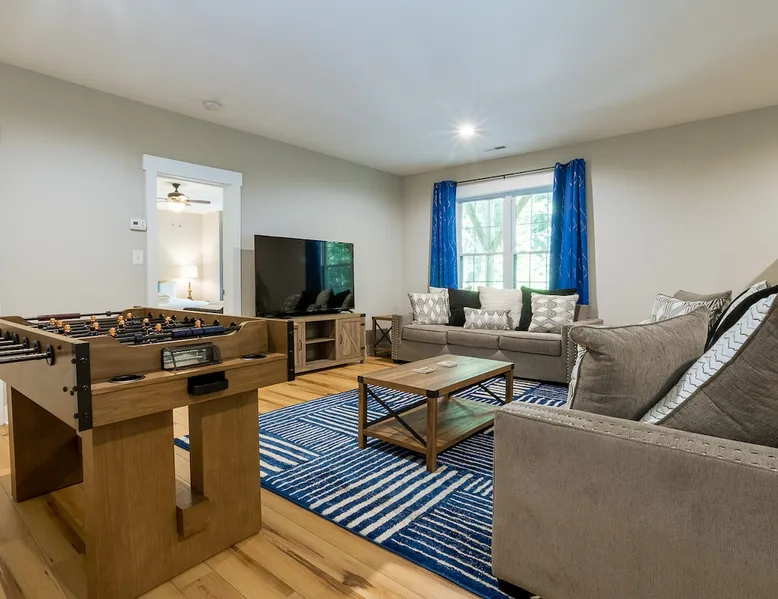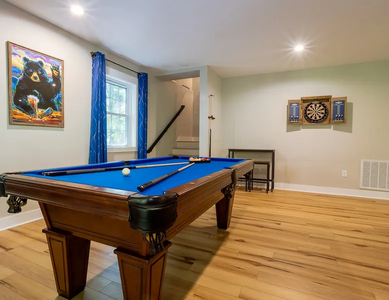 Crooked Maple Cottage is a craftsman style 4 bedroom, 3 bath home that is beautifully decorated and is spacious. This is the perfect cottage to choose for your home base while you explore the Blue Ridge Mountains. So many activities are at your fingertips, whether you want to take a drive on the scenic Blue Ridge Parkway, go for a waterfall hike, rafting or zip lining. And, you’re conveniently located just 20 minutes to downtown Asheville with shopping, dining, music and more! The space The open floor plan welcomes everyone that walks through its doors. The peacefulness will wash over you along with the abundance of natural light, you will immediately feel right at home. The great room provides comfortable seating and a gas fireplace to cozy up in front of while you’re watching a movie or just spending time with your group. Bring your dog along, they are welcome! The fully equipped kitchen will have the chef of the group happy. Take a step out onto the large deck to enjoy your morning coffee or an evening cocktail and breathe in the fresh mountain air. Comfortable guests rooms for individual privacy are sure to provide a good nights rest. Crooked Maple Cottage is also equipped with all of the modern amenities you’re used to having and so much more! Including Smart TV’s for streaming, strong wifi, and a game area with a pool table, foosball, dart board, corn hole, there is something for everyone! As you head out to explore, you won't have to go far as you are only 5 minutes from 2 breweries, a local cheese and wine shop as well as an ice cream parlor! We know that this property will surpass your wildest expectations, plan your trip today! Exclusive Special: When you book Crooked Maple Cottage you will receive a special code for discounted tickets to the Biltmore Estate! Contact us for more info. Home Truths: - Sleeps in beds: 8 - Max Occupancy: 12 - Queen sofa bed in lower level - We provide linens for all beds; other occupancy will require guests providing their own linens - Internet Speed: Download - 400Mbps We openly share our Cleaning Fees in a manner of full disclosure, as we think this is the most honest and forthright approach with respect to our guests. Our Cleaning Fees are backed by our Clean Guarantee, which reflects the highest level of standards, pristine environments for our guests, and a level of clean that surpasses any other vacation homes; we literally guarantee it! Quiet Policy: Parties, loud noise and unruly behavior are absolutely prohibited, and guests are expected to respect the neighbors and the peace this mountain retreat area affords. Pets: This home and property are very dog friendly, and guests are welcome to bring their "best friends" with them. There is a non-refundable Pet Fee of $130 with a limit of 2 dogs per booking party. *If additional pets are approved, additional charges will apply (This is NOT automatically added by VRBO, TripAdvisor or Airbnb, so please let us know so that we can add the fee for you) Early Check In and/or Late Check Out may be possible, depending on cleaning schedules and other reservations. If it is possible, there may be an additional fee that would be determined based on the time that you wish to check in or out and the seasonal rates. Please inquire for details regarding payment, the cancellation policy, military discounts, and trip insurance. Note: Reservations over 30 days are subject for review prior to acceptance. A separate rental agreement will be required for 90+ day stays. Last Minute Bookings: Reservations made within 7 days of check-in require additional documentation before confirmation.