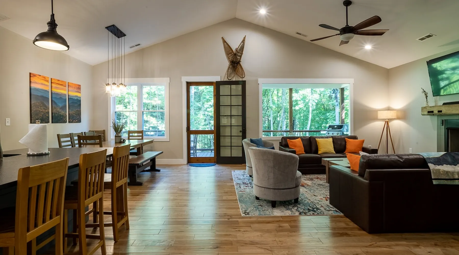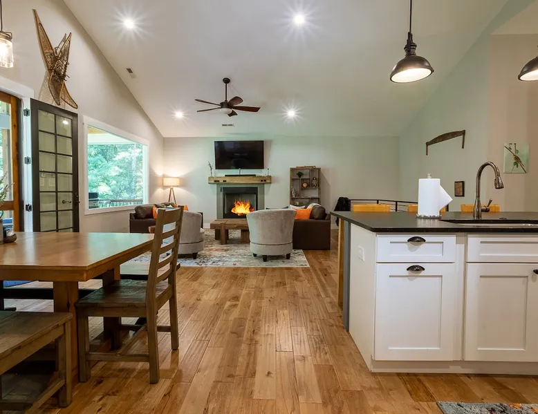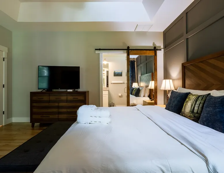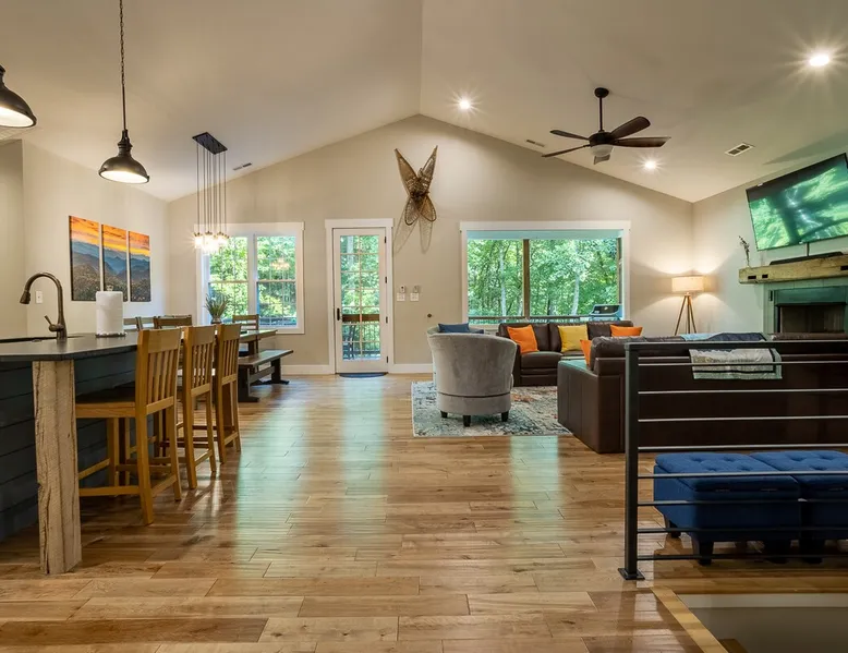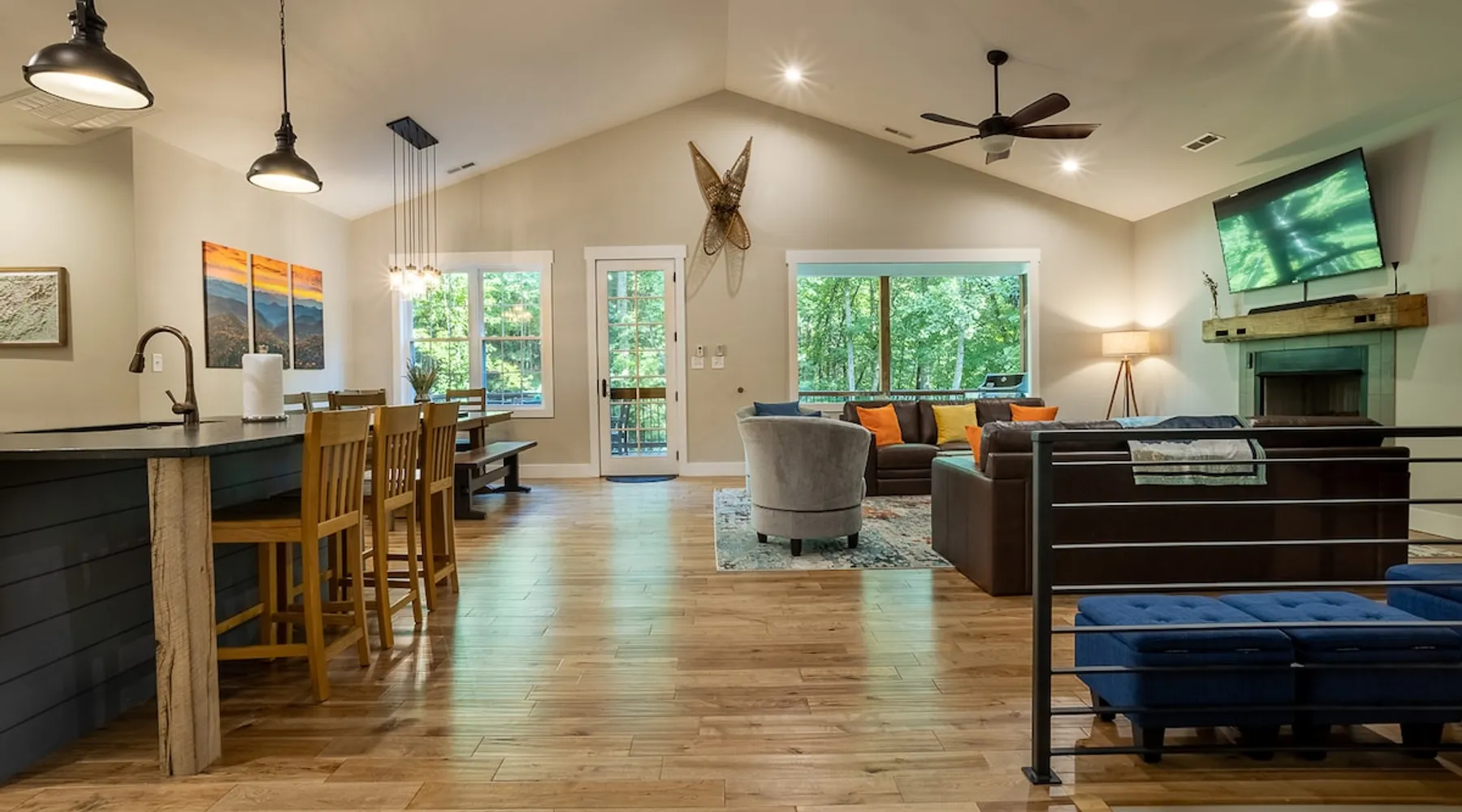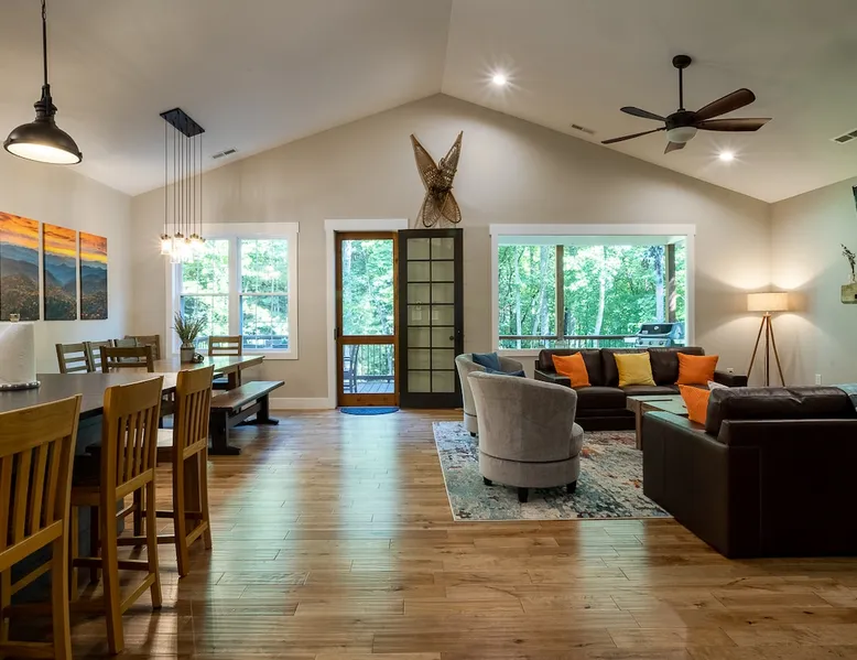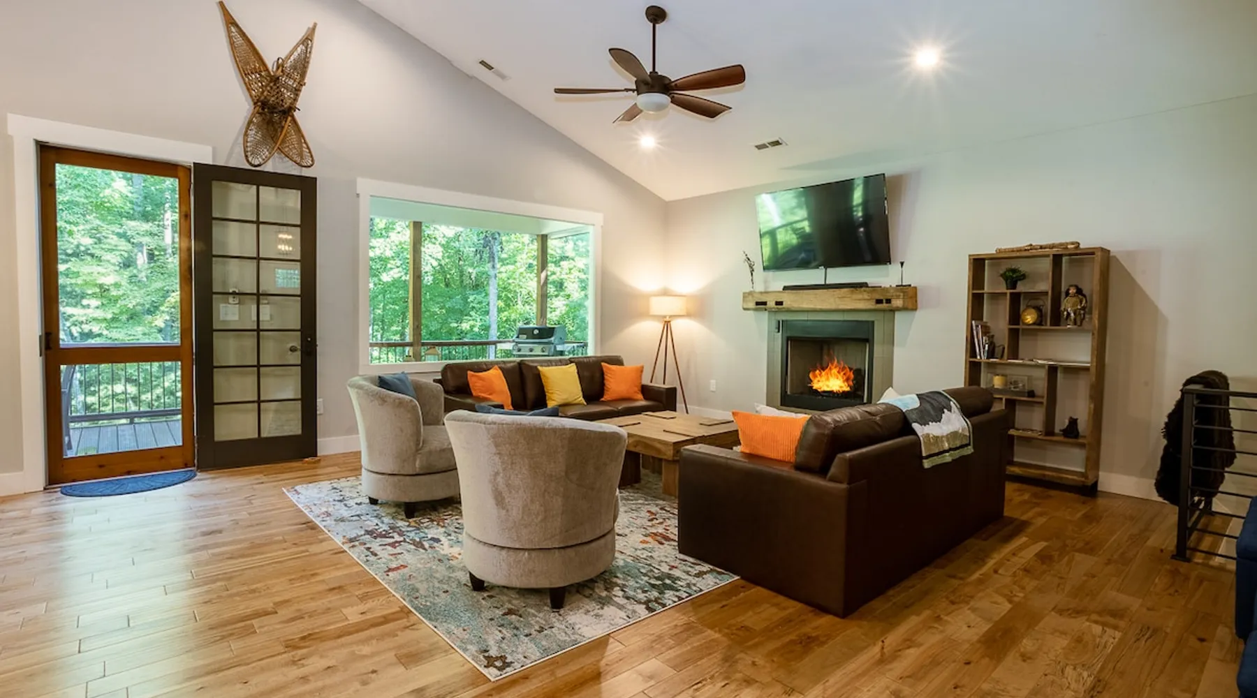 Crooked Maple Cottage is a craftsman style 4 bedroom, 3 bath home that is beautifully decorated and is spacious. This is the perfect cottage to choose for your home base while you explore the Blue Ridge Mountains. So many activities are at your fingertips, whether you want to take a drive on the scenic Blue Ridge Parkway, go for a waterfall hike, rafting or zip lining. And, you’re conveniently located just 20 minutes to downtown Asheville with shopping, dining, music and more! The space The open floor plan welcomes everyone that walks through its doors. The peacefulness will wash over you along with the abundance of natural light, you will immediately feel right at home. The great room provides comfortable seating and a gas fireplace to cozy up in front of while you’re watching a movie or just spending time with your group. Bring your dog along, they are welcome! The fully equipped kitchen will have the chef of the group happy. Take a step out onto the large deck to enjoy your morning coffee or an evening cocktail and breathe in the fresh mountain air. Comfortable guests rooms for individual privacy are sure to provide a good nights rest. Crooked Maple Cottage is also equipped with all of the modern amenities you’re used to having and so much more! Including Smart TV’s for streaming, strong wifi, and a game area with a pool table, foosball, dart board, corn hole, there is something for everyone! As you head out to explore, you won't have to go far as you are only 5 minutes from 2 breweries, a local cheese and wine shop as well as an ice cream parlor! We know that this property will surpass your wildest expectations, plan your trip today! Exclusive Special: When you book Crooked Maple Cottage you will receive a special code for discounted tickets to the Biltmore Estate! Contact us for more info. Home Truths: - Sleeps in beds: 8 - Max Occupancy: 12 - Queen sofa bed in lower level - We provide linens for all beds; other occupancy will require guests providing their own linens - Internet Speed: Download - 400Mbps We openly share our Cleaning Fees in a manner of full disclosure, as we think this is the most honest and forthright approach with respect to our guests. Our Cleaning Fees are backed by our Clean Guarantee, which reflects the highest level of standards, pristine environments for our guests, and a level of clean that surpasses any other vacation homes; we literally guarantee it! Quiet Policy: Parties, loud noise and unruly behavior are absolutely prohibited, and guests are expected to respect the neighbors and the peace this mountain retreat area affords. Pets: This home and property are very dog friendly, and guests are welcome to bring their "best friends" with them. There is a non-refundable Pet Fee of $130 with a limit of 2 dogs per booking party. *If additional pets are approved, additional charges will apply (This is NOT automatically added by VRBO, TripAdvisor or Airbnb, so please let us know so that we can add the fee for you) Early Check In and/or Late Check Out may be possible, depending on cleaning schedules and other reservations. If it is possible, there may be an additional fee that would be determined based on the time that you wish to check in or out and the seasonal rates. Please inquire for details regarding payment, the cancellation policy, military discounts, and trip insurance. Note: Reservations over 30 days are subject for review prior to acceptance. A separate rental agreement will be required for 90+ day stays. Last Minute Bookings: Reservations made within 7 days of check-in require additional documentation before confirmation.