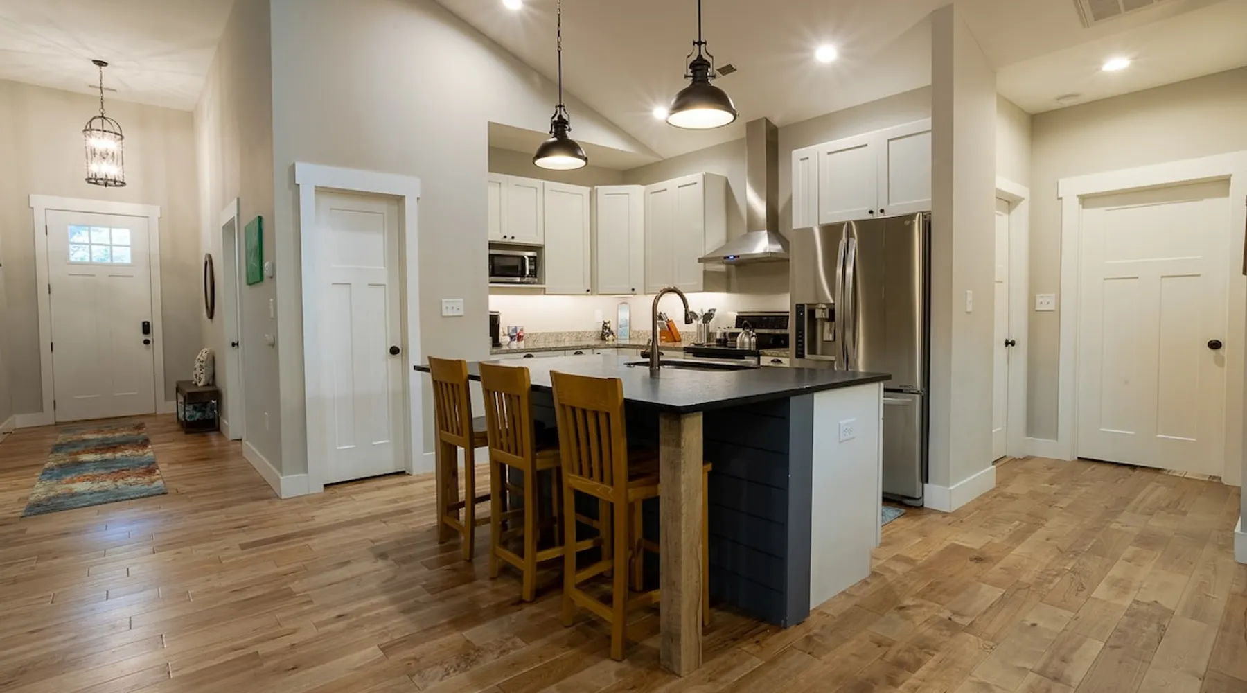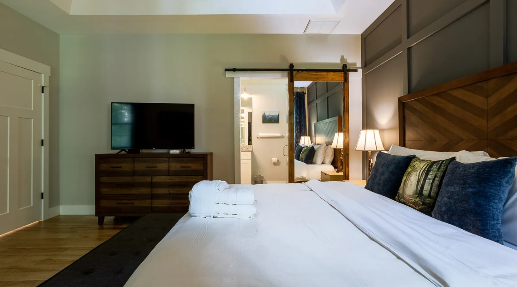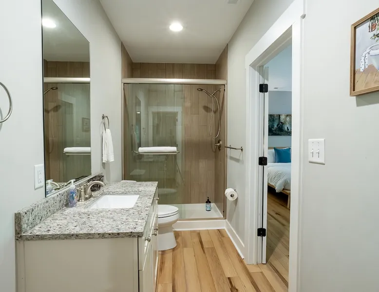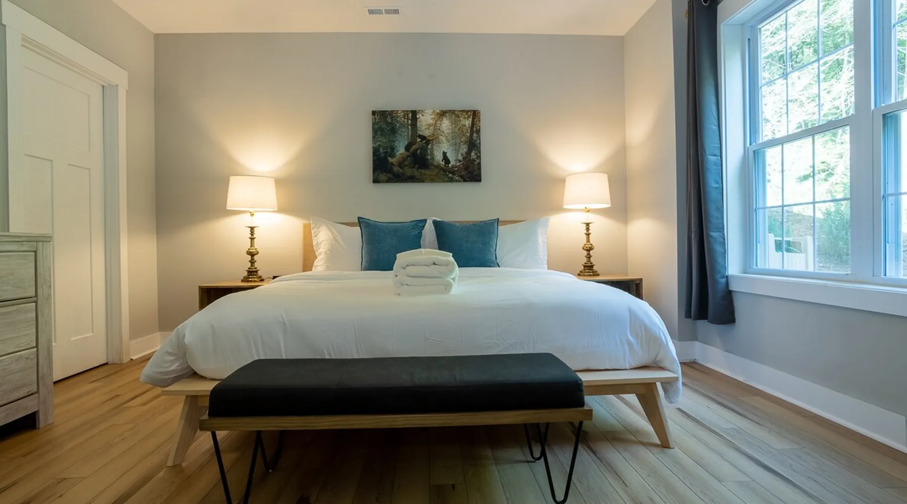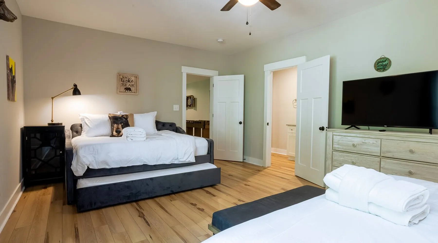 Crooked Maple Cottage is a craftsman style 4 bedroom, 3 bath home that is beautifully decorated and is spacious. This is the perfect cottage to choose for your home base while you explore the Blue Ridge Mountains. So many activities are at your fingertips, whether you want to take a drive on the scenic Blue Ridge Parkway, go for a waterfall hike, rafting or zip lining. And, you’re conveniently located just 20 minutes to downtown Asheville with shopping, dining, music and more! The space The open floor plan welcomes everyone that walks through its doors. The peacefulness will wash over you along with the abundance of natural light, you will immediately feel right at home. The great room provides comfortable seating and a gas fireplace to cozy up in front of while you’re watching a movie or just spending time with your group. Bring your dog along, they are welcome! The fully equipped kitchen will have the chef of the group happy. Take a step out onto the large deck to enjoy your morning coffee or an evening cocktail and breathe in the fresh mountain air. Comfortable guests rooms for individual privacy are sure to provide a good nights rest. Crooked Maple Cottage is also equipped with all of the modern amenities you’re used to having and so much more! Including Smart TV’s for streaming, strong wifi, and a game area with a pool table, foosball, dart board, corn hole, there is something for everyone! As you head out to explore, you won't have to go far as you are only 5 minutes from 2 breweries, a local cheese and wine shop as well as an ice cream parlor! We know that this property will surpass your wildest expectations, plan your trip today! Exclusive Special: When you book Crooked Maple Cottage you will receive a special code for discounted tickets to the Biltmore Estate! Contact us for more info. Home Truths: - Sleeps in beds: 8 - Max Occupancy: 12 - Queen sofa bed in lower level - We provide linens for all beds; other occupancy will require guests providing their own linens - Internet Speed: Download - 400Mbps We openly share our Cleaning Fees in a manner of full disclosure, as we think this is the most honest and forthright approach with respect to our guests. Our Cleaning Fees are backed by our Clean Guarantee, which reflects the highest level of standards, pristine environments for our guests, and a level of clean that surpasses any other vacation homes; we literally guarantee it! Quiet Policy: Parties, loud noise and unruly behavior are absolutely prohibited, and guests are expected to respect the neighbors and the peace this mountain retreat area affords. Pets: This home and property are very dog friendly, and guests are welcome to bring their "best friends" with them. There is a non-refundable Pet Fee of $130 with a limit of 2 dogs per booking party. *If additional pets are approved, additional charges will apply (This is NOT automatically added by VRBO, TripAdvisor or Airbnb, so please let us know so that we can add the fee for you) Early Check In and/or Late Check Out may be possible, depending on cleaning schedules and other reservations. If it is possible, there may be an additional fee that would be determined based on the time that you wish to check in or out and the seasonal rates. Please inquire for details regarding payment, the cancellation policy, military discounts, and trip insurance. Note: Reservations over 30 days are subject for review prior to acceptance. A separate rental agreement will be required for 90+ day stays. Last Minute Bookings: Reservations made within 7 days of check-in require additional documentation before confirmation.