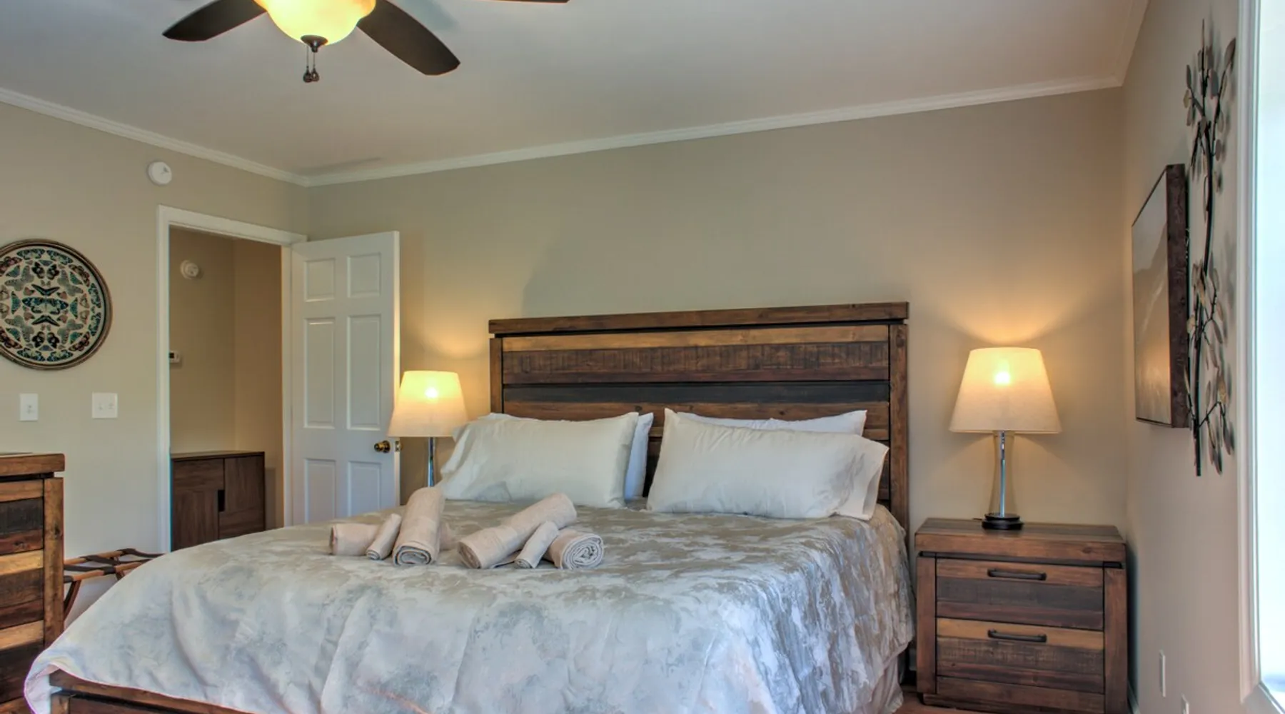 Modern comfort meets natural beauty at Toe River Retreat! This one-level home features epic mountain views, a covered deck for year-round fun, and a game garage with ping pong, arcade, darts, and more. Hike from your doorstep or stargaze at the nearby Bare Dark Sky Observatory. Located just 49 mins from Asheville and 15 mins from Burnsville. Includes our exclusive Mountain Discovery Pass with a Biltmore Estate ticket and other seasonal adventures! The space Searching for a mountain view and a modern, clean home? You've found your dream getaway at Toe River Retreat! This well-appointed vacation rental boasts hiking trails out your door and easy access to mountain adventures. The view is itself a reason to spend your vacation at Toe River Retreat. Watch all day from the shady covered deck as the clouds dance over the mountain peaks on the horizon. You'll find yourself rushing home from the day's adventures so you won't miss the spectacular sunsets! Toe River Retreat offers comfortable one-level living centered around light-filled gathering and dining areas. Enjoy the primary suite with a spacious bathroom and private deck access. Gather in the converted garage for game night with a ping-pong table, a foosball table, corn hole, a dart board, and an arcade game with dozens of options. The kids can be entertained for hours, even on a rainy day! Perhaps the best part of Toe River Retreat is that half of the expansive deck is covered for year-round, all-weather family fun. In the evening, sit back and watch the stars-- this is actually one of the darkest spots on the East Coast (check out Bare Dark Sky Observatory, visible from the deck). Leave your worries behind and discover the peaceful tranquility of Toe River Retreat! This Asheville vacation rental is located in Bakersville and is approximately 49 minutes to downtown Asheville. • 1 Story Home • 3 Bedrooms: 1 King Bed, 2 Queen Beds • 2 Full Baths • Main Level: Bedroom One - 1 King Bed, attached Full Bath; Bedroom Two - 1 Queen Bed; Shared Full Bath; Bedroom Three - 1 Queen Bed • Bonus TV Room: 1 Queen Sleeper Sofa • Main Level Living Area: 1 Queen Sleeper Sofa Important Property Notes • Noise Ordinance: Exterior quiet hours are strictly enforced from 9:00 p.m. to 8:00 a.m. to ensure a peaceful mountain environment. • ATV's and Four Wheelers are not permitted on the property. • 4WD/AWD Recommended. During winter months or inclement weather, a 4WD/AWD vehicle is recommended. We recommend one with sufficient clearance (i.e SUV, Truck, or raised Sedan). Each reservation staying 28 days or less includes our exclusive Mountain Discovery Pass, which includes one Biltmore Estate pass, in addition to a ticket for other seasonal attractions that are sure to delight and entertain! This special offer is only available with Carolina Mornings, and is our special gift to you during your stay. (Ticket(s) must be used during your stay. Terms apply, please inquire for more information.) CAROLINA MORNINGS, INC. IS A NORTH CAROLINA CORPORATION IN THE BUSINESS OF REAL ESTATE BROKERAGE, AND DOING BUSINESS AS CAROLINA MORNINGS, LICENSE #11216. Other things to note This property is professionally managed and hosted by Carolina Mornings, Asheville's longest-running professional management company (since 1997)!