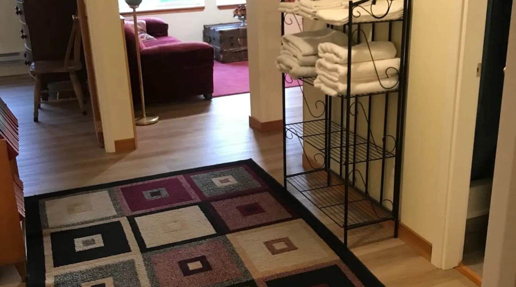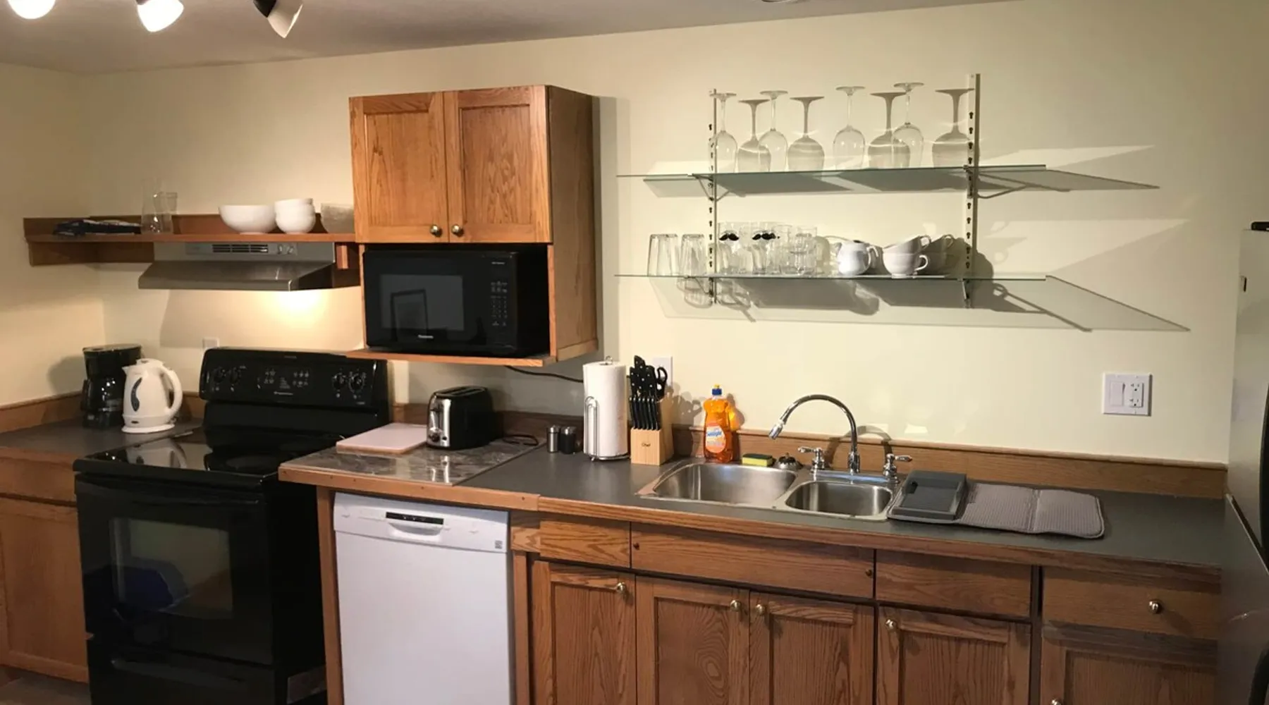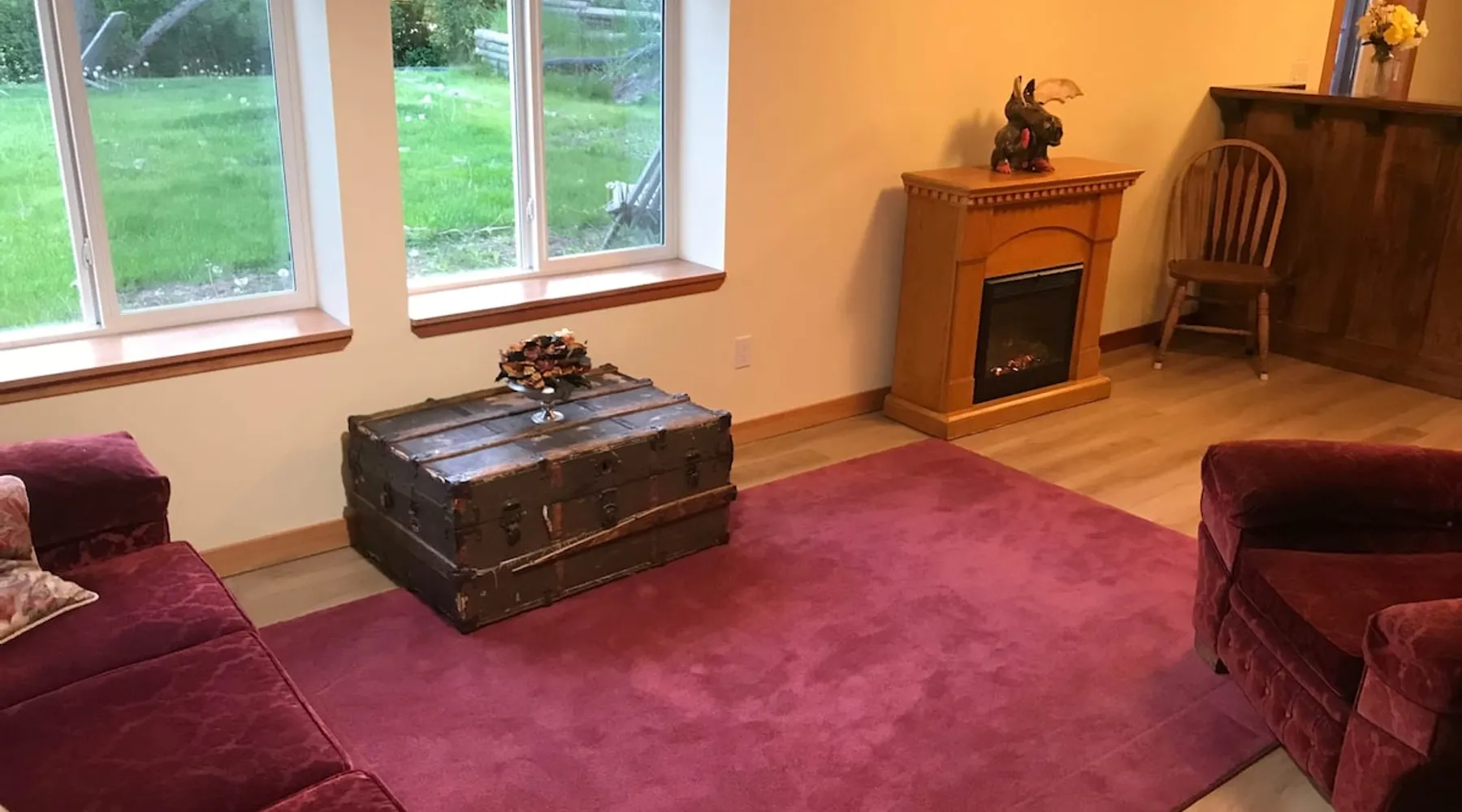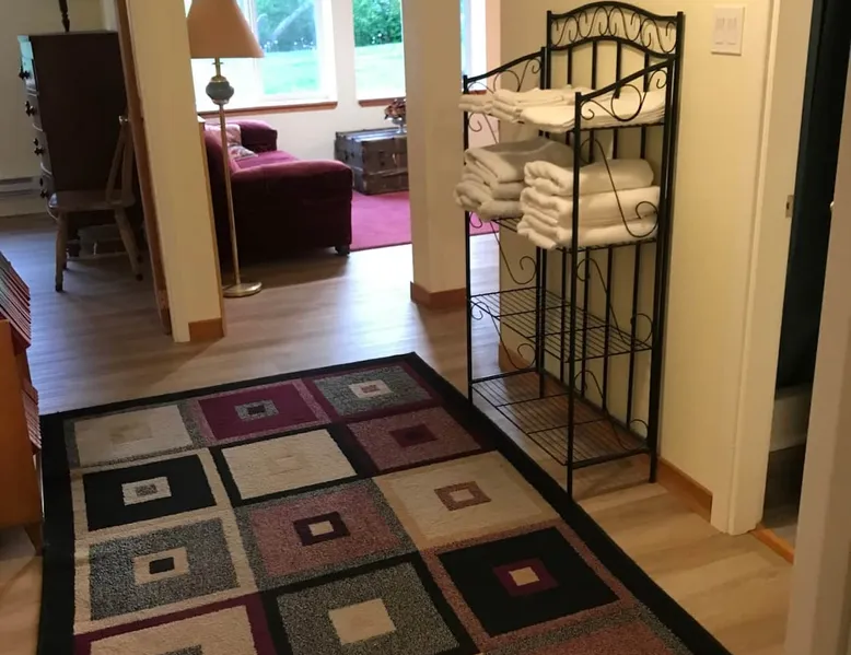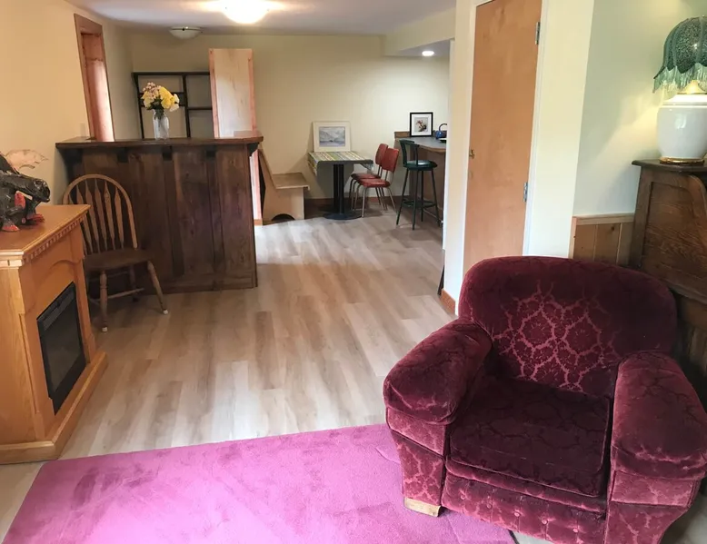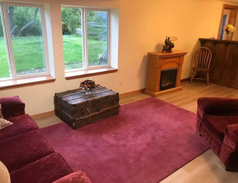 Waterfront living in Downtown Quesnel. The Riverwalk is in a private location with both lawn and forest reaching down to the Fraser River. The setting is enhanced by a park across the street and its adjacency to Quesnel's Two Rivers Trail network. Just a few houses from the newly renovated hospital, it is also a short walk to restaurants, cafes and other retail businesses in Quesnel's vibrant core. Poised a short distance from the Barkerville Hwy to Wells/Barkerville/Bowron Lakes, the 'West Side' bridge to the Nazko Lakes, and easily accessible to Hwy 97 running North/South along the Fraser. We offer convenience, quiet, and beauty in an urban setting. A walk-out basement leads onto the back lawn and the Fraser River. Private entrance, large windows, and lots of light. Private space with a full kitchen, in a quiet setting. Your own parking, and 3 to 10 minutes to cafes, restaurants, retail, and easy access to Hwy 97 for exploring or commuting.