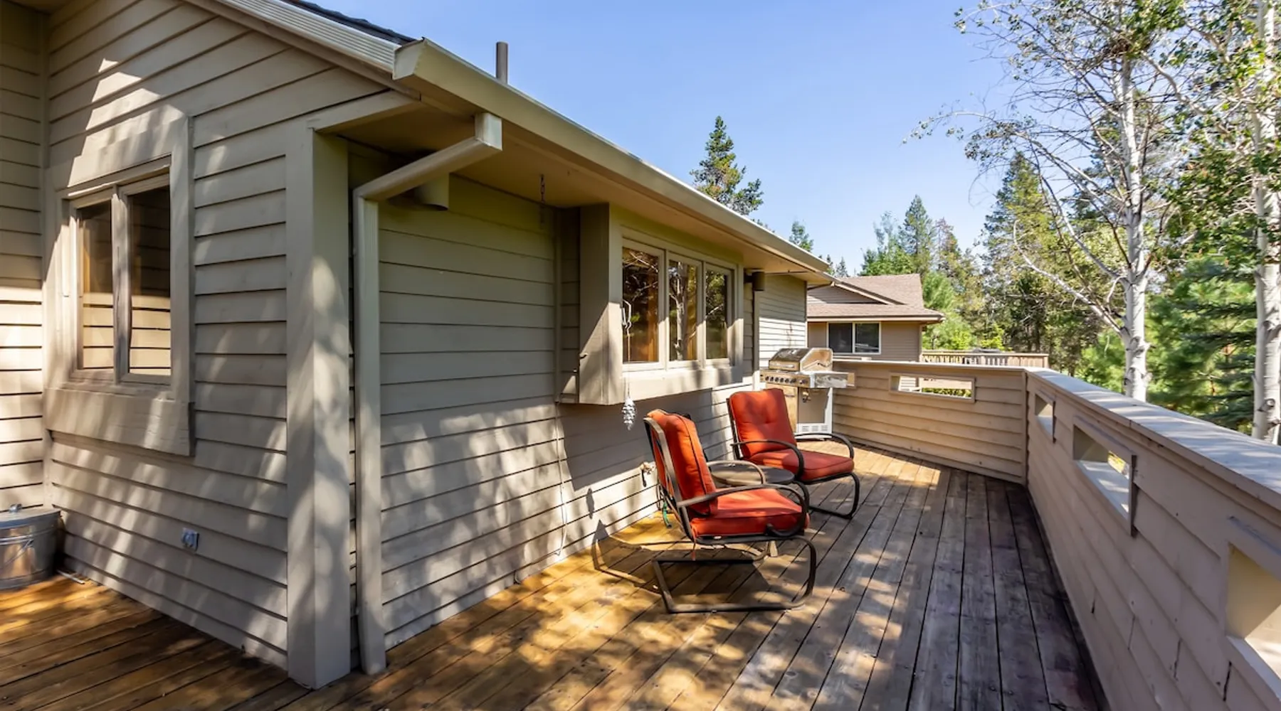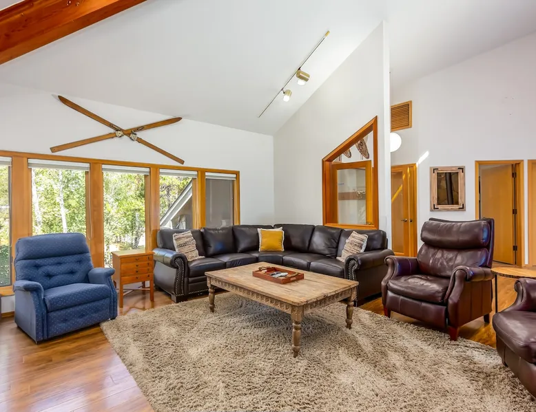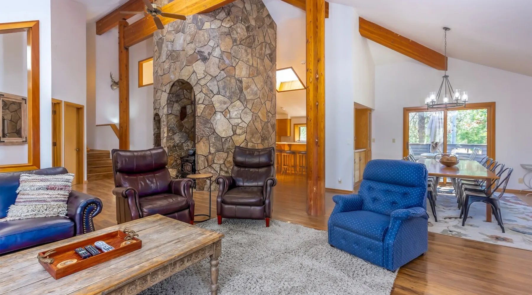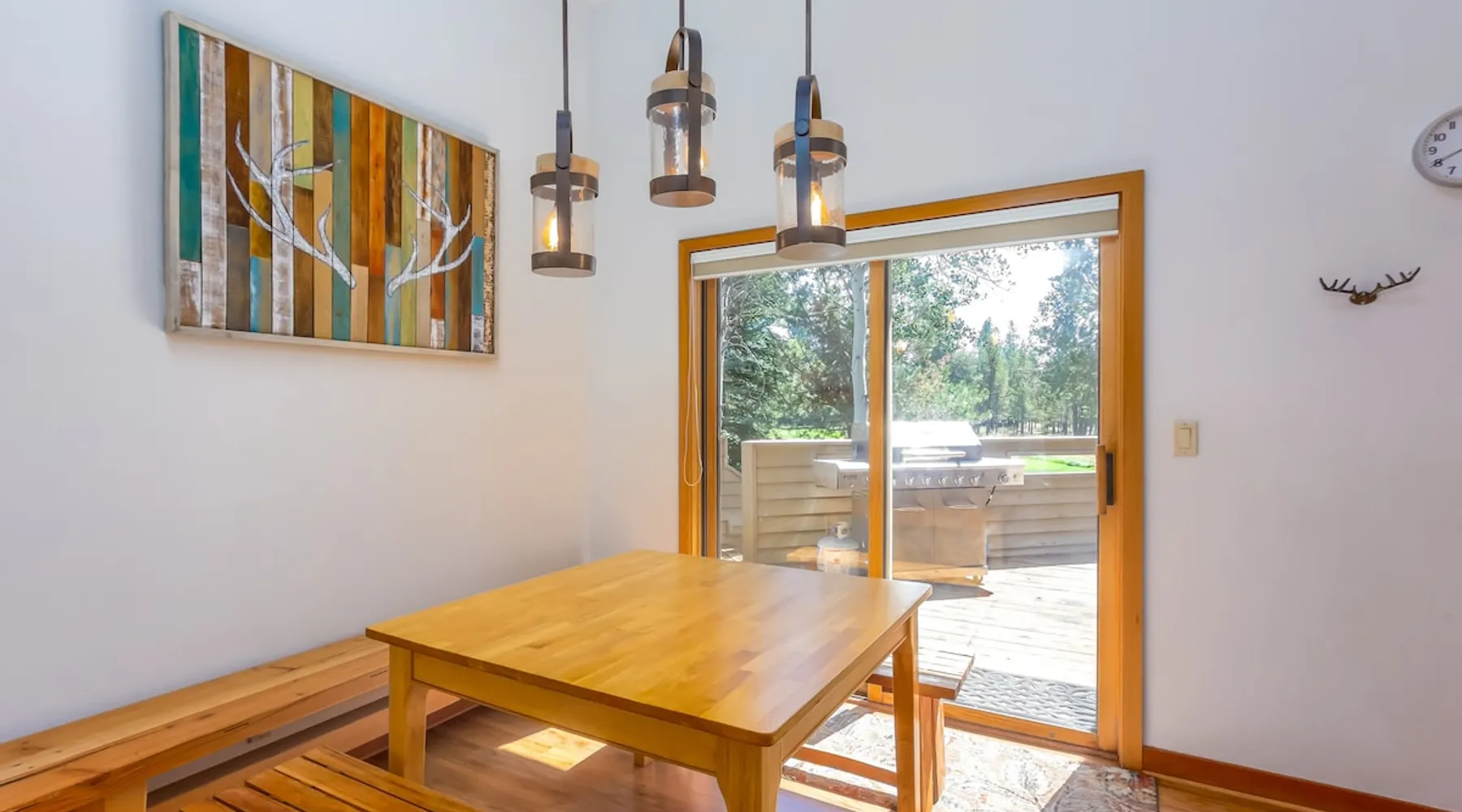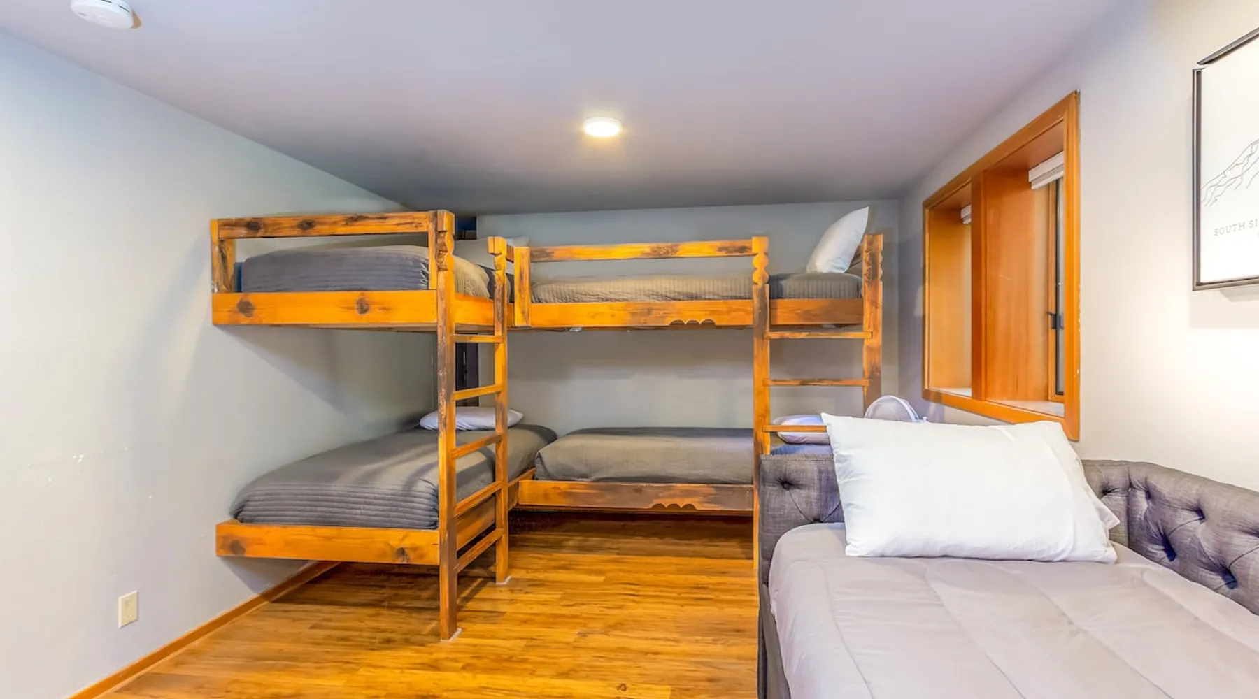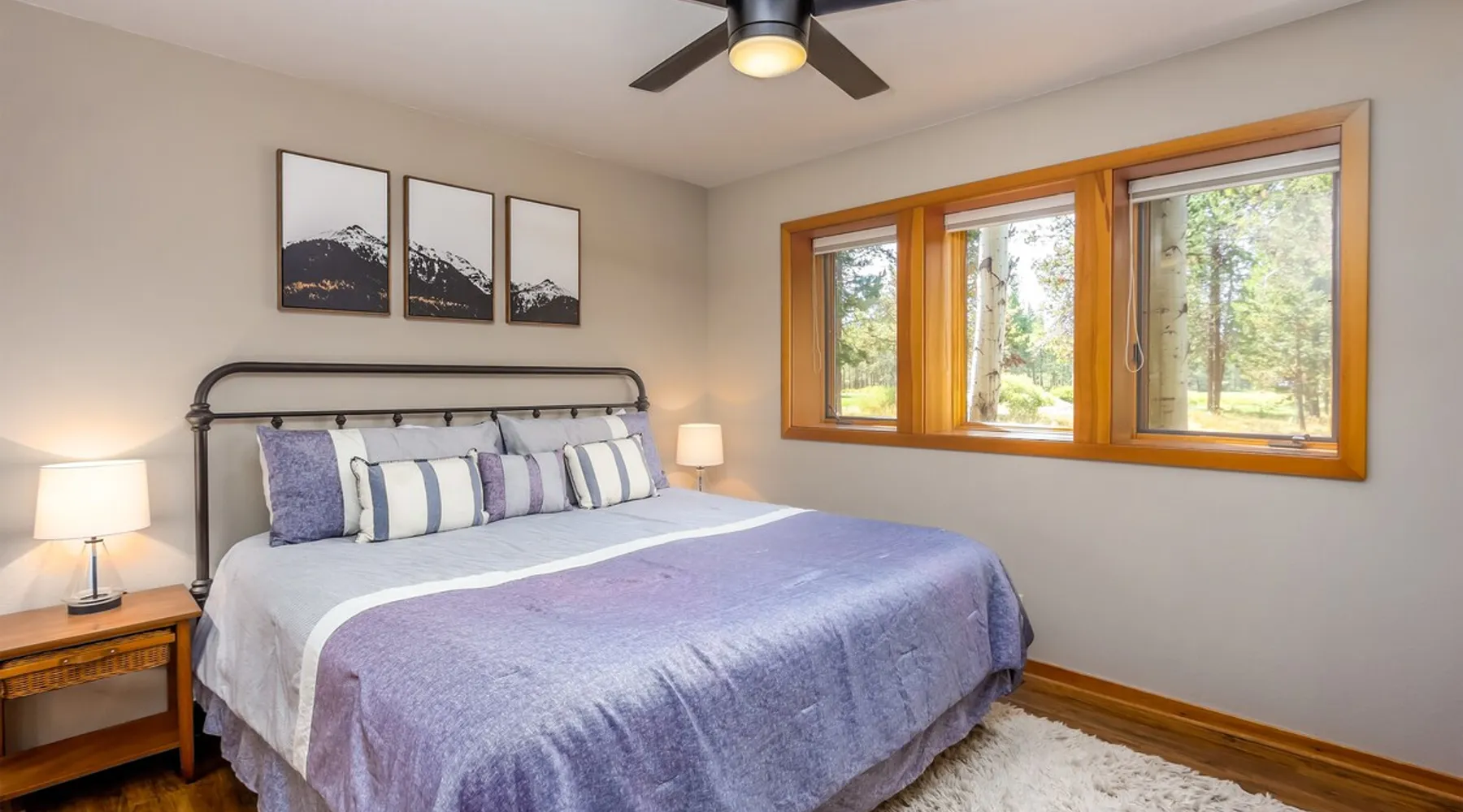Spacious 5-bedroom Sunriver home near Fort Rock Park, perfect for family getaways year-round. Enjoy a private hot tub, fully stocked kitchen, plus ping pong and a pool table. Explore 30+ miles of trails with included bikes, float the river, visit the Nature Center, or hit the slopes in winter. The space Welcome to your perfect Sunriver escape! From the moment you walk in, you’ll be wowed by soaring ceilings, warm wood and basalt rock accents, and gorgeous natural light filling the reverse-living, open-concept space. The updated kitchen has everything you need to cook and gather, with a spacious dining room and a charming breakfast nook that might just become your favorite spot. The main level features a queen bedroom with a TV and desk, plus a guest half bath. Just half a flight up, the primary king ensuite is a true retreat with a spa-like bathroom featuring a soaking tub, skylight, and walk-in shower, along with private deck access. Downstairs, you’ll find three additional bedrooms: a fun bunk room with three twin bunks plus a twin bed with trundle, a king bedroom that shares a full bath with the bunk room, and a queen ensuite with its own bathroom and walk-in shower. There’s plenty of family fun to be had in the garage with ping pong, a pool table, and bikes for exploring the area. Relax outside on the large upstairs deck with golf course views, seating, and a gas BBQ. After a day of adventure, head down to your private hot tub and soak under the stars. Looking to book a family reunion or large group gathering? Reserve this home along with Red Cedar 16, Red Cedar 20, Red Cedar 23 and Red Cedar 49. ***Please note both fireplaces in this home will not be available for use Other things to note AGE RESTRICTIONS: Guests must be 23 years or older to rent Bennington homes and the person reserving must occupy the home the whole reservation.