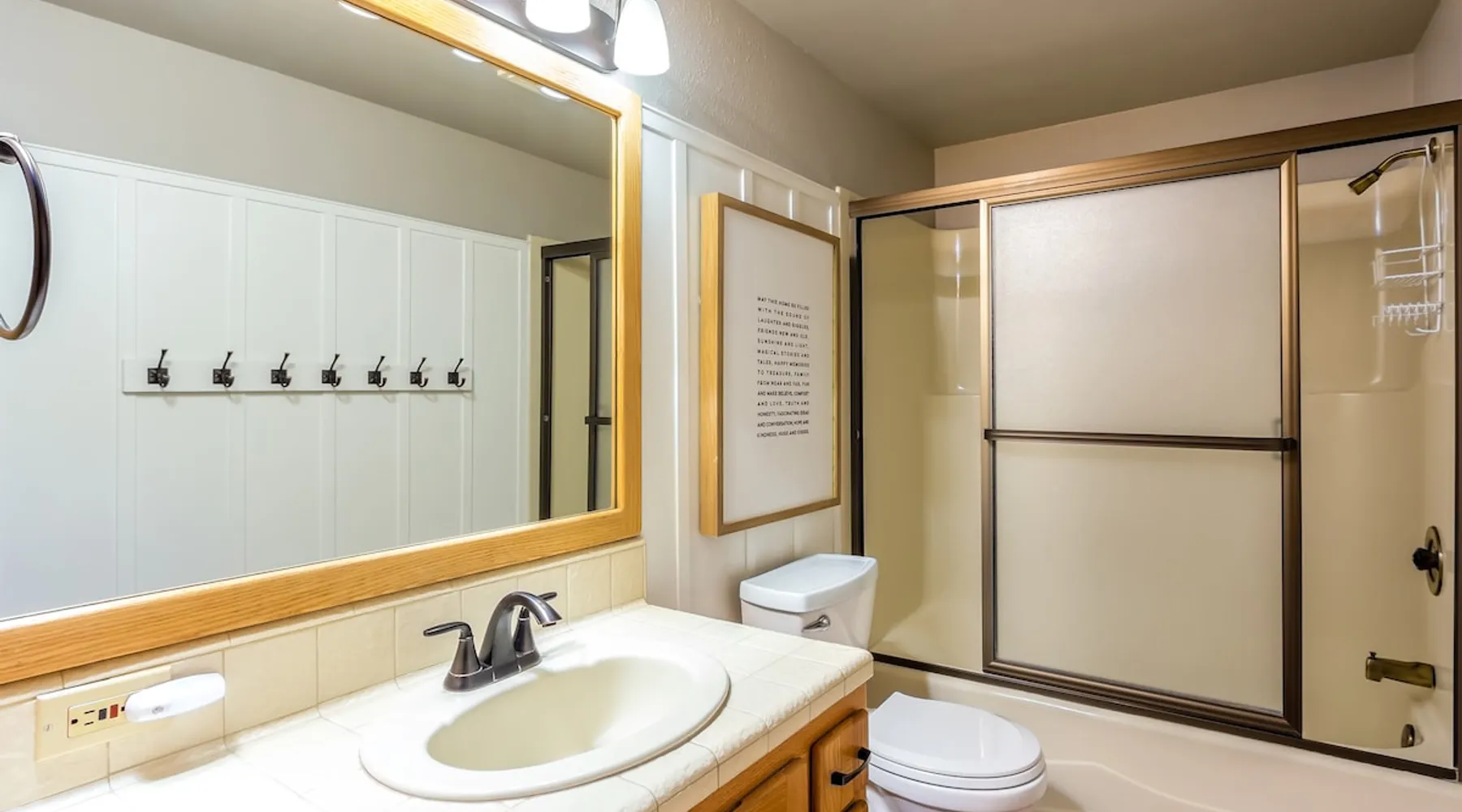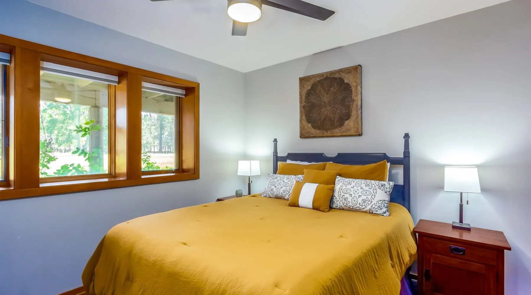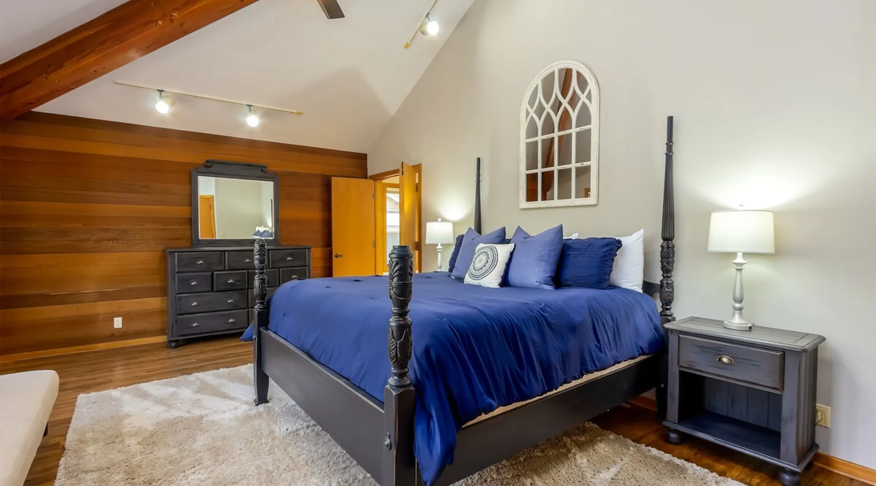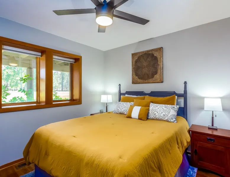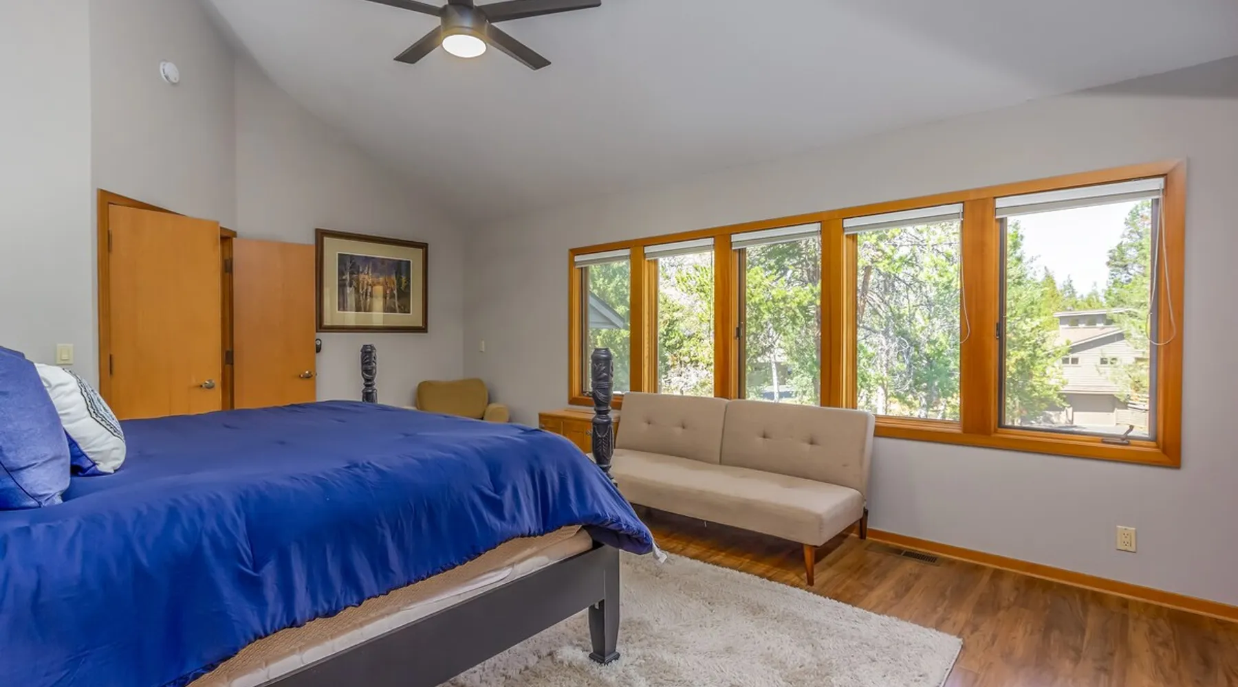 Spacious 5-bedroom Sunriver home near Fort Rock Park, perfect for family getaways year-round. Enjoy a private hot tub, fully stocked kitchen, plus ping pong and a pool table. Explore 30+ miles of trails with included bikes, float the river, visit the Nature Center, or hit the slopes in winter. The space Welcome to your perfect Sunriver escape! From the moment you walk in, you’ll be wowed by soaring ceilings, warm wood and basalt rock accents, and gorgeous natural light filling the reverse-living, open-concept space. The updated kitchen has everything you need to cook and gather, with a spacious dining room and a charming breakfast nook that might just become your favorite spot. The main level features a queen bedroom with a TV and desk, plus a guest half bath. Just half a flight up, the primary king ensuite is a true retreat with a spa-like bathroom featuring a soaking tub, skylight, and walk-in shower, along with private deck access. Downstairs, you’ll find three additional bedrooms: a fun bunk room with three twin bunks plus a twin bed with trundle, a king bedroom that shares a full bath with the bunk room, and a queen ensuite with its own bathroom and walk-in shower. There’s plenty of family fun to be had in the garage with ping pong, a pool table, and bikes for exploring the area. Relax outside on the large upstairs deck with golf course views, seating, and a gas BBQ. After a day of adventure, head down to your private hot tub and soak under the stars. Looking to book a family reunion or large group gathering? Reserve this home along with Red Cedar 16, Red Cedar 20, Red Cedar 23 and Red Cedar 49. ***Please note both fireplaces in this home will not be available for use Other things to note AGE RESTRICTIONS: Guests must be 23 years or older to rent Bennington homes and the person reserving must occupy the home the whole reservation.