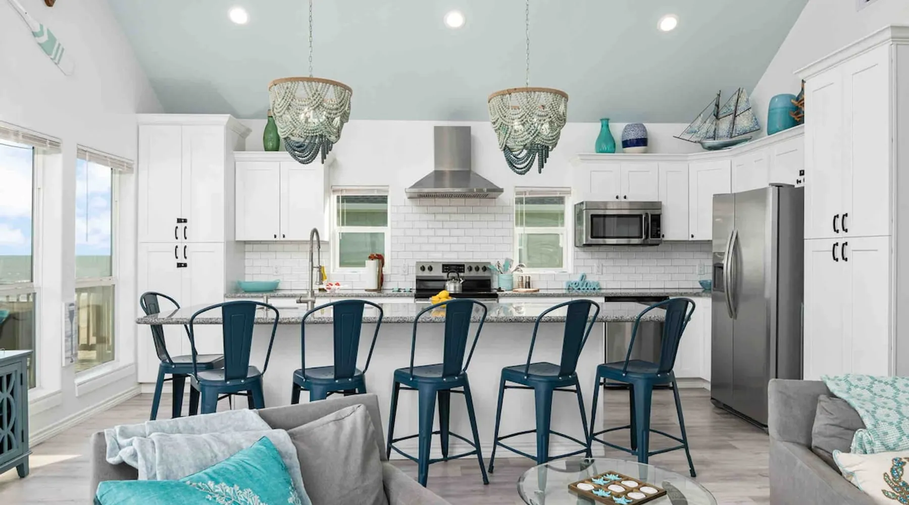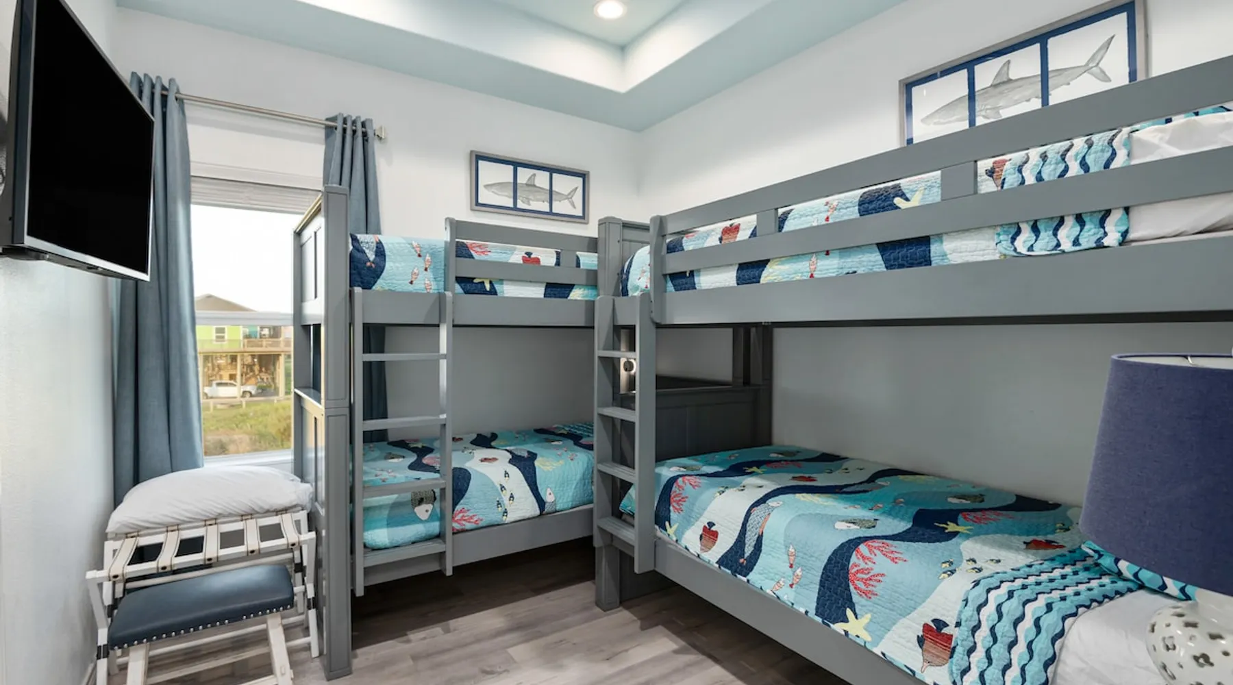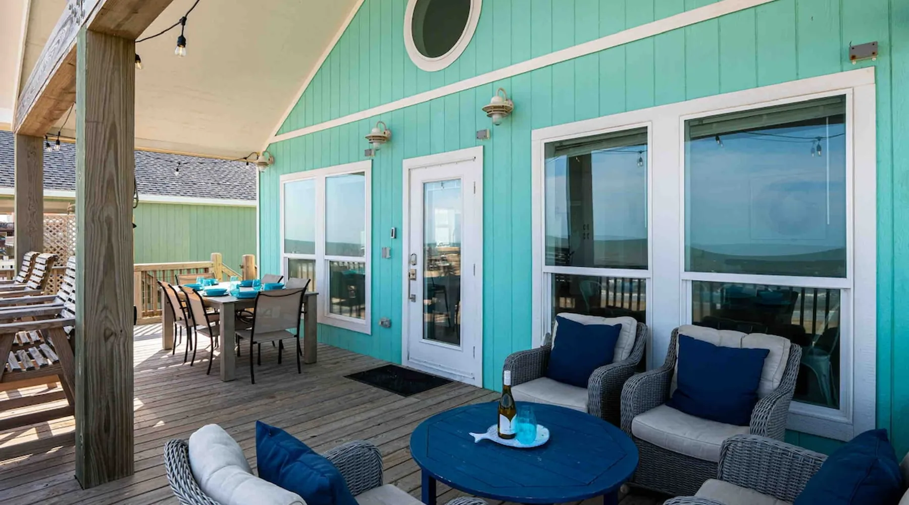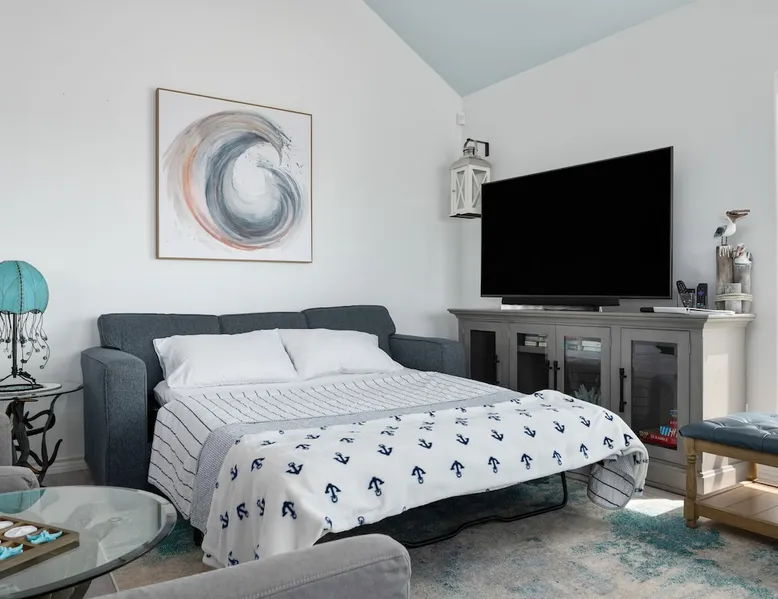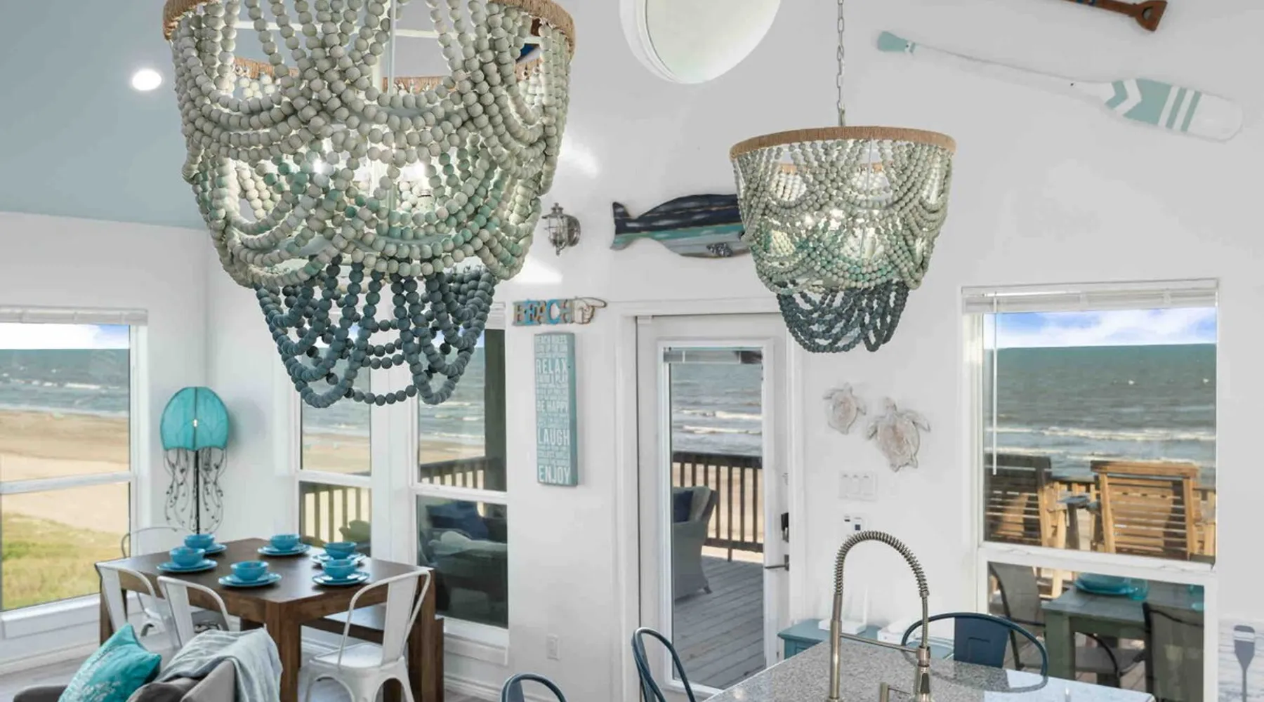 Located on one of Texas’ premier beaches, Fore Shore is steps from feeling the sand between your toes, basking in the warm seaside sun, and splashing in the sparkling Gulf waters. This spectacular 3-bedroom, 2-bath beachfront home is beautifully styled with a modern coastal theme, has wide open social areas, comfortable private bedrooms, fantastic outdoor entertaining spaces including mini golf, and is directly on the water - all making for an unforgettably perfect vacation getaway. The space Amenity Highlights ⛳️ Mini Golf 🎲 Board games, yard games, and even an arcade game 🚿 Outdoor shower 🔥 Fire pit 👶 Everything you need for baby- pack’n’play, changing pad, dishes, and high chair 🏖️ Beach chairs, gear, and toys ❄️Central HVAC system, ceiling fans and box fan 🧺 Laundry is on-site and complementary ⭐️ Complimentary unlimited Wi-Fi ⭐️Dedicated workspace ⭐️ Comprehensive housewares package + standard small appliances ⭐️Fresh linens, towels, and beach towels for every guest At Fore Shore beach house, guests will find gulf views in every room, enough space to gather with extended family and friends indoors and out, and endless possibilities for relaxation and fun! The residence boasts an open designer kitchen with high-end appliances and convenient bar seating that seamlessly transitions to the dining and living areas. Guests will love the breathtaking gulf views and watching the sunset from these rooms, or they can head outside to the adjacent covered deck for an even better view with additional dining options, a seating area, and quick escape to the sand and sea. BEDROOMS Three private bedrooms (all with smart televisions) and two full baths comfortably accommodate up to 10 guests. There is a total of 1 king bed, 1 queen bed, 4 twin beds (bunks), and a sleeper sofa in the living room. Bedroom one- Indulge in the spacious luxury of the primary bedroom featuring a king bed. It has an ensuite bathroom and access to a private balcony. There is also a desk in case you need to check off some work items before you head out for a day in the sun. Bedroom two- features a lovely queen bed and smart tv. The design blends comfort and style seamlessly which invites relaxation. Bedroom 3- is styled as a double bunk room – a fun feature that kids always love. It is comfortable and cozy and has a cabinet of bedtime storybooks for your young ones to enjoy. BATHROOMS The home has 2 clean and bright bathrooms. You’ll find one walk-in shower and one shower/tub combo. Showers are stocked with shampoo, body wash and conditioner. OUTDOOR SPACE Outdoor living at Fore Shore is amazing, too! A covered outdoor entertainment court down below is definitely the hot spot to chill day or night. Perfect your putting skills on the 9-hole mini golf course, host a cornhole tournament, nap in the hammock, relax on the porch swing, then prepare the catch of the day on the BBQ grill and serve alfresco in the shady picnic spot. Once the sun goes down, gather at the beachside firepit with Adirondack seating for s’mores and stargazing. Ample on-site parking, an outdoor shower with hot and cold water for rinsing off after seaside excursions, and convenient laundry machines add to the long list of thoughtful on-property service extras. And be sure to find the hidden stand-up arcade and make the most of all the board games when not at the beach! Guest access You’ll have access to every room and feature of this home except locked owner’s storage. Make yourself at home; hosts are just a text or call away if you need anything! Other things to note We know and understand that FUR BABIES are an extension of most families, we DO NOT ALLOW pets of any kind out of respect for the health and safety of all current and future guests. Thank you for understanding and leaving your pets behind.