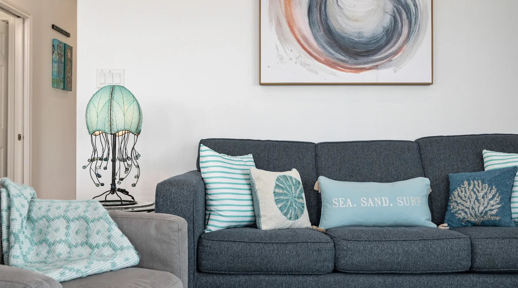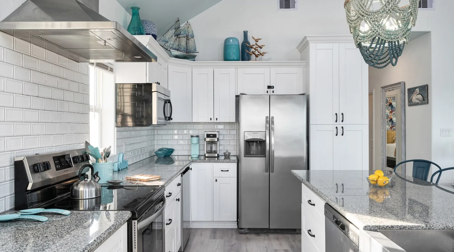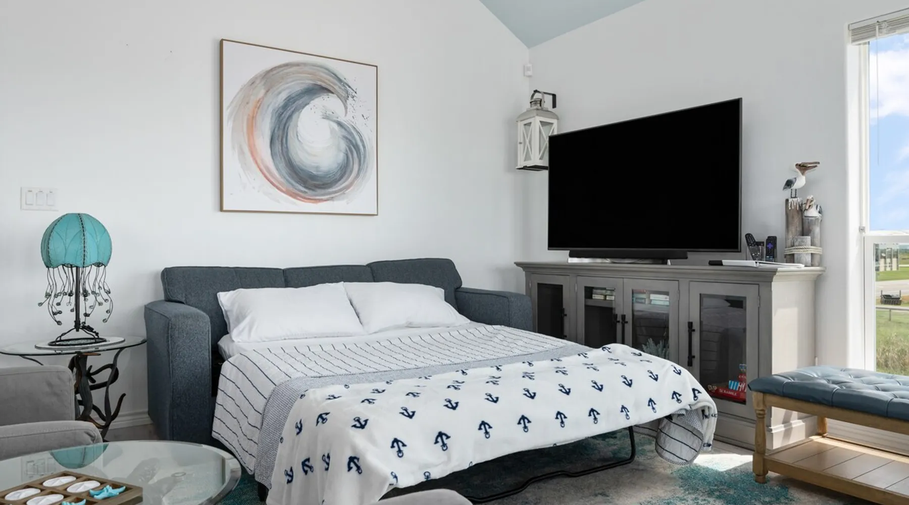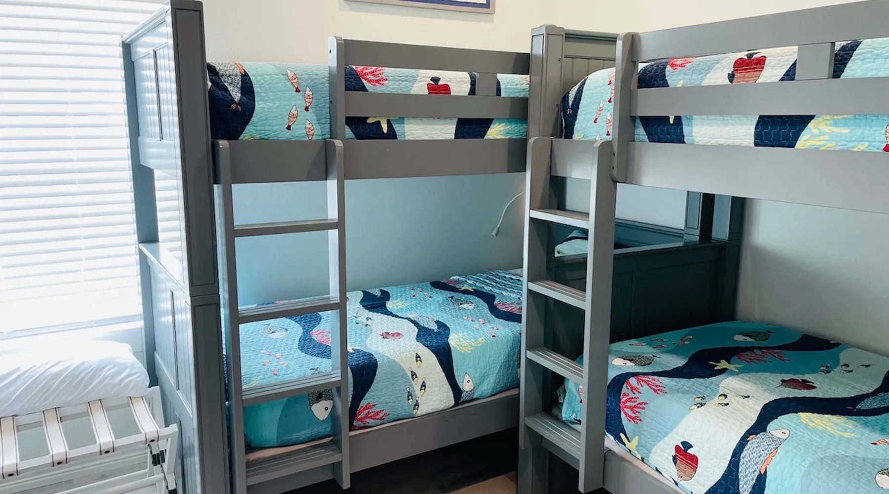 Located on one of Texas’ premier beaches, Fore Shore is steps from feeling the sand between your toes, basking in the warm seaside sun, and splashing in the sparkling Gulf waters. This spectacular 3-bedroom, 2-bath beachfront home is beautifully styled with a modern coastal theme, has wide open social areas, comfortable private bedrooms, fantastic outdoor entertaining spaces including mini golf, and is directly on the water - all making for an unforgettably perfect vacation getaway. The space Amenity Highlights ⛳️ Mini Golf 🎲 Board games, yard games, and even an arcade game 🚿 Outdoor shower 🔥 Fire pit 👶 Everything you need for baby- pack’n’play, changing pad, dishes, and high chair 🏖️ Beach chairs, gear, and toys ❄️Central HVAC system, ceiling fans and box fan 🧺 Laundry is on-site and complementary ⭐️ Complimentary unlimited Wi-Fi ⭐️Dedicated workspace ⭐️ Comprehensive housewares package + standard small appliances ⭐️Fresh linens, towels, and beach towels for every guest At Fore Shore beach house, guests will find gulf views in every room, enough space to gather with extended family and friends indoors and out, and endless possibilities for relaxation and fun! The residence boasts an open designer kitchen with high-end appliances and convenient bar seating that seamlessly transitions to the dining and living areas. Guests will love the breathtaking gulf views and watching the sunset from these rooms, or they can head outside to the adjacent covered deck for an even better view with additional dining options, a seating area, and quick escape to the sand and sea. BEDROOMS Three private bedrooms (all with smart televisions) and two full baths comfortably accommodate up to 10 guests. There is a total of 1 king bed, 1 queen bed, 4 twin beds (bunks), and a sleeper sofa in the living room. Bedroom one- Indulge in the spacious luxury of the primary bedroom featuring a king bed. It has an ensuite bathroom and access to a private balcony. There is also a desk in case you need to check off some work items before you head out for a day in the sun. Bedroom two- features a lovely queen bed and smart tv. The design blends comfort and style seamlessly which invites relaxation. Bedroom 3- is styled as a double bunk room – a fun feature that kids always love. It is comfortable and cozy and has a cabinet of bedtime storybooks for your young ones to enjoy. BATHROOMS The home has 2 clean and bright bathrooms. You’ll find one walk-in shower and one shower/tub combo. Showers are stocked with shampoo, body wash and conditioner. OUTDOOR SPACE Outdoor living at Fore Shore is amazing, too! A covered outdoor entertainment court down below is definitely the hot spot to chill day or night. Perfect your putting skills on the 9-hole mini golf course, host a cornhole tournament, nap in the hammock, relax on the porch swing, then prepare the catch of the day on the BBQ grill and serve alfresco in the shady picnic spot. Once the sun goes down, gather at the beachside firepit with Adirondack seating for s’mores and stargazing. Ample on-site parking, an outdoor shower with hot and cold water for rinsing off after seaside excursions, and convenient laundry machines add to the long list of thoughtful on-property service extras. And be sure to find the hidden stand-up arcade and make the most of all the board games when not at the beach! Guest access You’ll have access to every room and feature of this home except locked owner’s storage. Make yourself at home; hosts are just a text or call away if you need anything! Other things to note We know and understand that FUR BABIES are an extension of most families, we DO NOT ALLOW pets of any kind out of respect for the health and safety of all current and future guests. Thank you for understanding and leaving your pets behind.