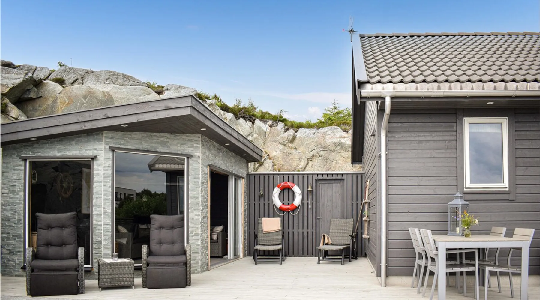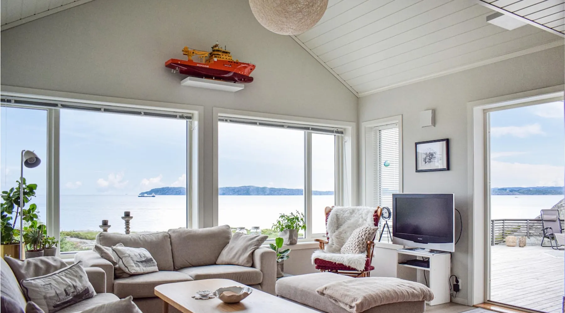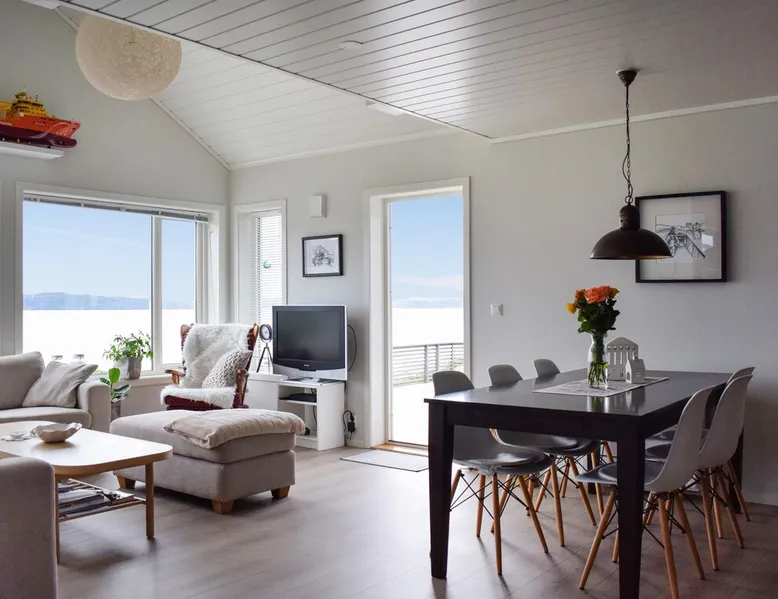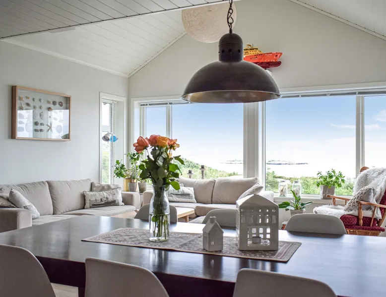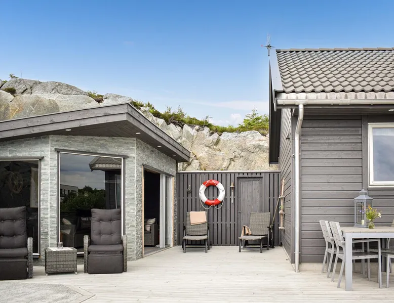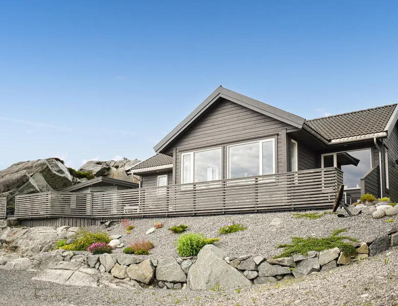 Modern cottage with fantastic panoramic view of islands and islets. The space Modern cottage with fantastic panoramic view of islands and islets. On the west coast between Stavanger and Bergen you will find this vacation home in a lovely location. The house offers a bright interior in maritime style and comfortable facilities, so you will want for nothing. Step out onto the large terraces where you can benefit from the good sun conditions. Experience great sunsets in the beautiful garden furniture while looking out over the Bømlafjord. Nearby you will find good swimming and fishing opportunities by the fjord. Go hiking in the nearby mountains and discover the wildlife. Also visit the nearby Ryvarden Lighthouse or relax at the Albatross Spa. Haugesund with its many, cultural and culinary offerings is only a short drive away. Look forward to an unforgettable vacation! Can comfortably fit up to 8 people Other things to note Please note that: Consumption costs are included in the room rate.