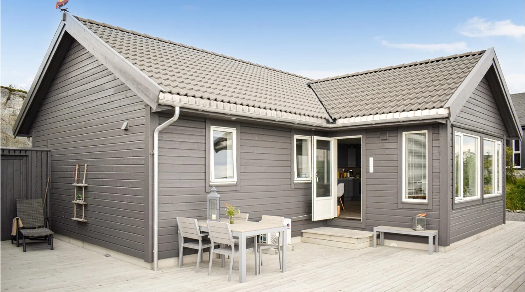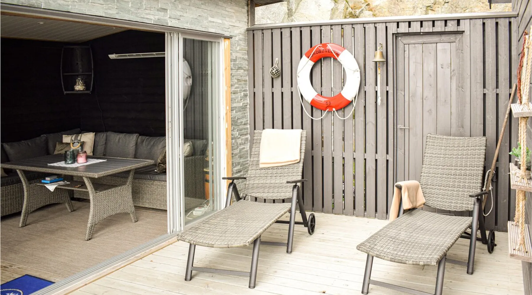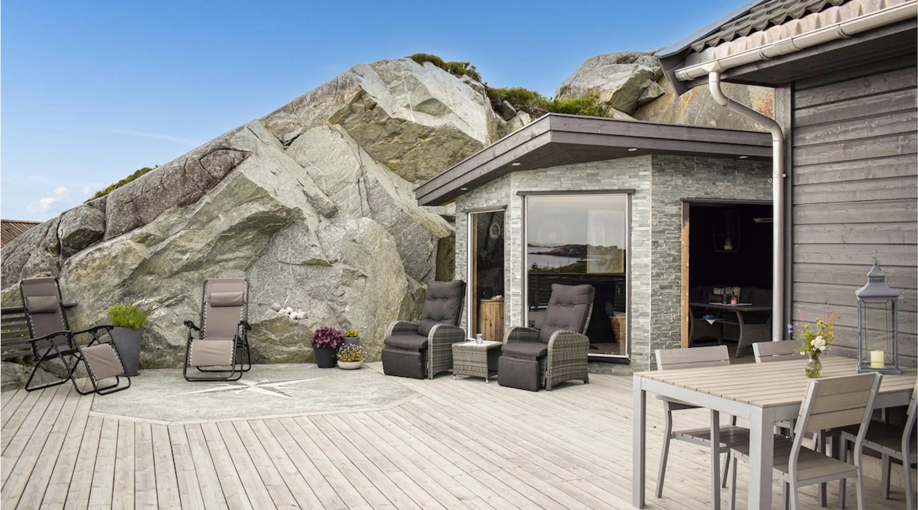 Modern cottage with fantastic panoramic view of islands and islets. The space Modern cottage with fantastic panoramic view of islands and islets. On the west coast between Stavanger and Bergen you will find this vacation home in a lovely location. The house offers a bright interior in maritime style and comfortable facilities, so you will want for nothing. Step out onto the large terraces where you can benefit from the good sun conditions. Experience great sunsets in the beautiful garden furniture while looking out over the Bømlafjord. Nearby you will find good swimming and fishing opportunities by the fjord. Go hiking in the nearby mountains and discover the wildlife. Also visit the nearby Ryvarden Lighthouse or relax at the Albatross Spa. Haugesund with its many, cultural and culinary offerings is only a short drive away. Look forward to an unforgettable vacation! Can comfortably fit up to 8 people Other things to note Please note that: Consumption costs are included in the room rate.