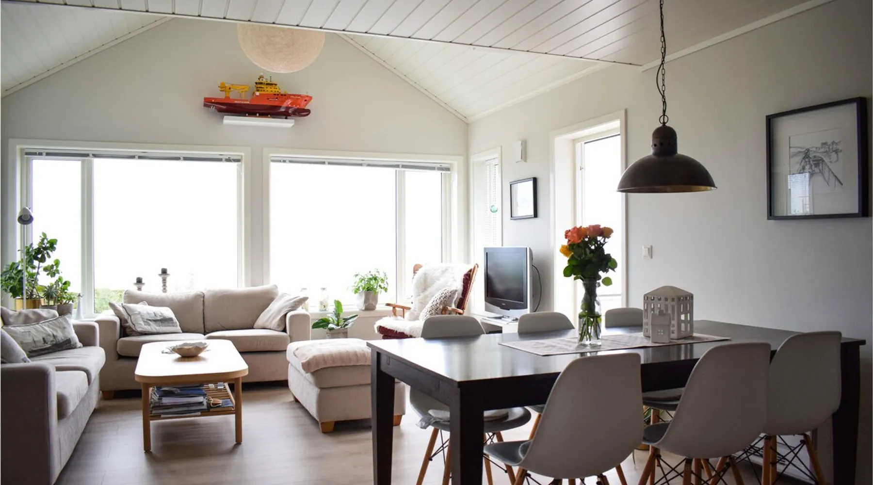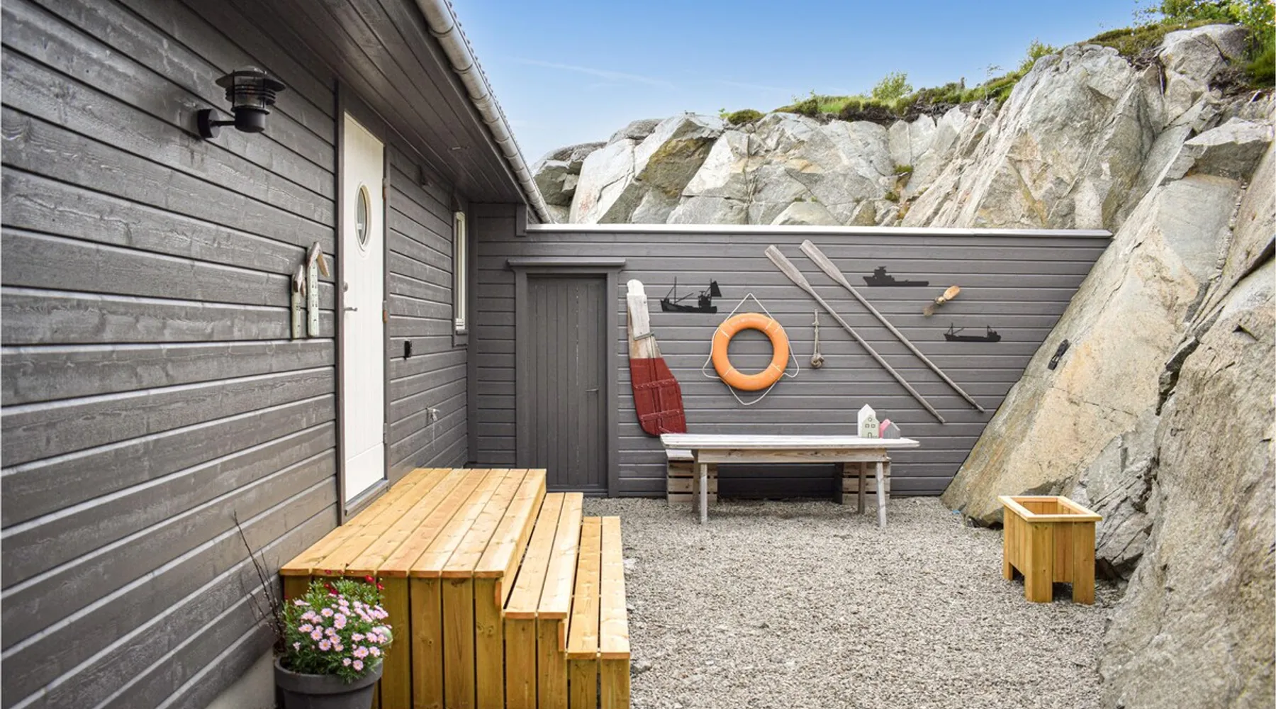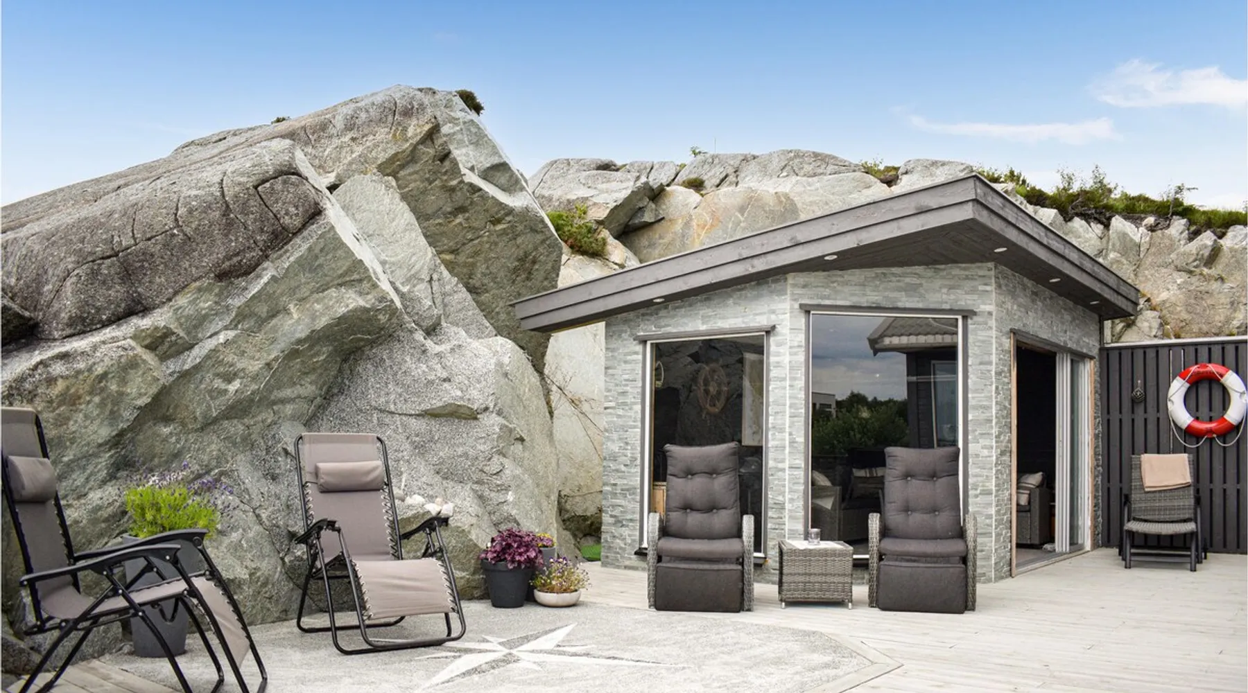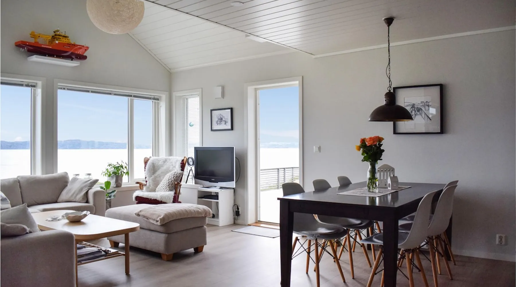 Modern cottage with fantastic panoramic view of islands and islets. The space Modern cottage with fantastic panoramic view of islands and islets. On the west coast between Stavanger and Bergen you will find this vacation home in a lovely location. The house offers a bright interior in maritime style and comfortable facilities, so you will want for nothing. Step out onto the large terraces where you can benefit from the good sun conditions. Experience great sunsets in the beautiful garden furniture while looking out over the Bømlafjord. Nearby you will find good swimming and fishing opportunities by the fjord. Go hiking in the nearby mountains and discover the wildlife. Also visit the nearby Ryvarden Lighthouse or relax at the Albatross Spa. Haugesund with its many, cultural and culinary offerings is only a short drive away. Look forward to an unforgettable vacation! Can comfortably fit up to 8 people Other things to note Please note that: Consumption costs are included in the room rate.