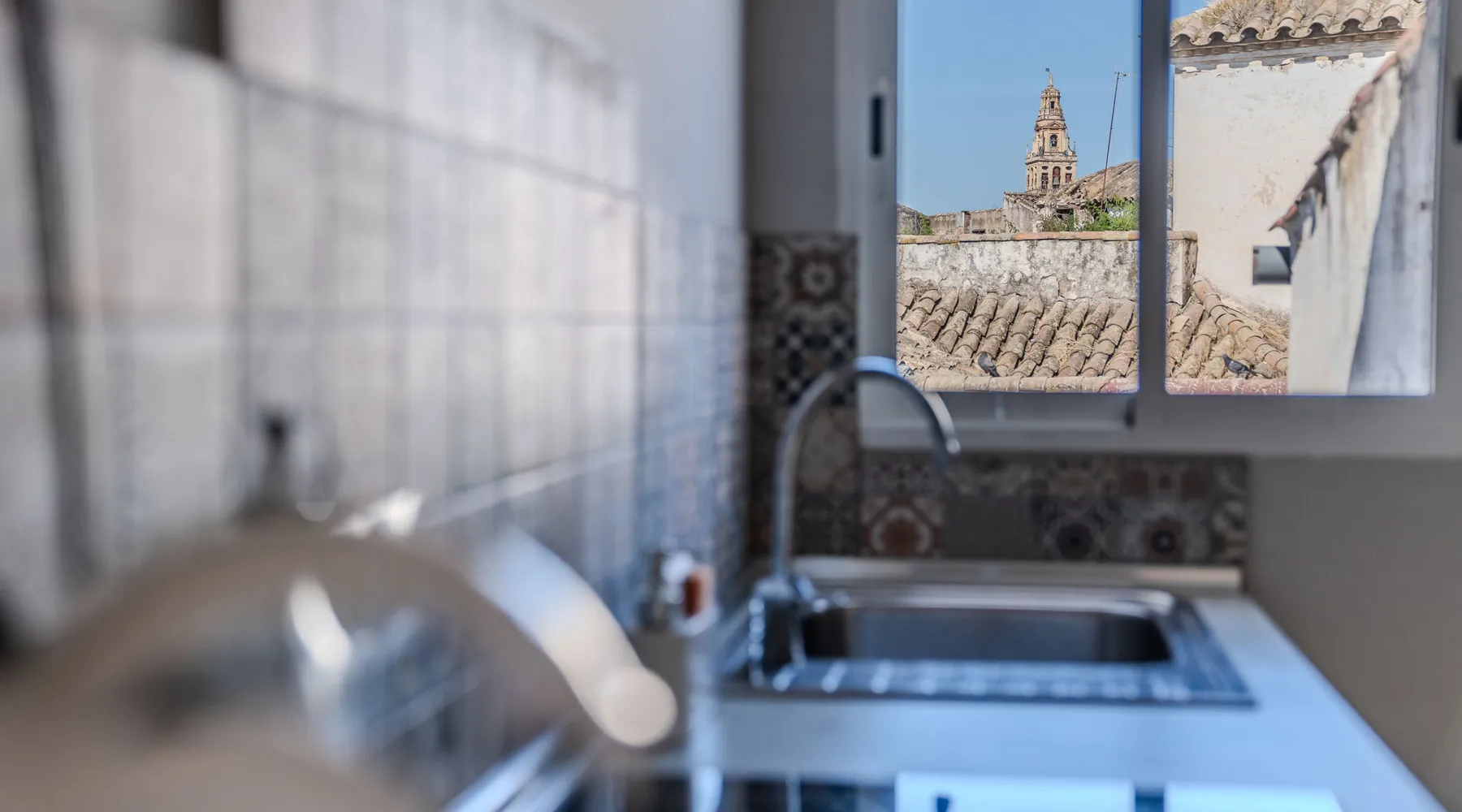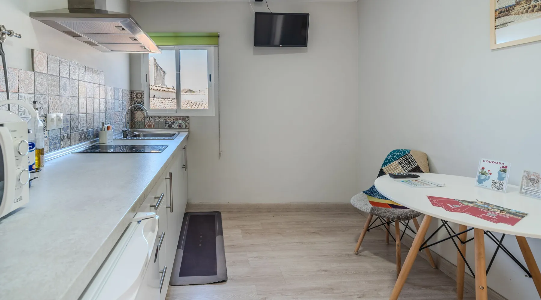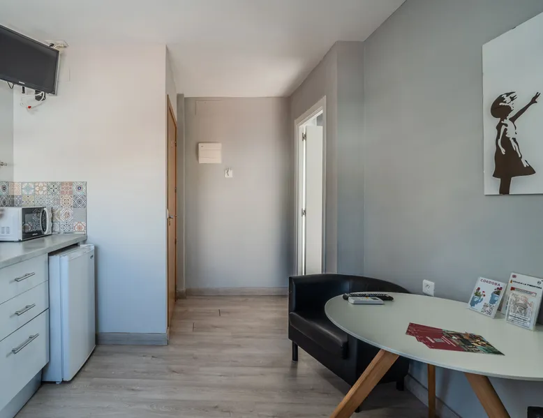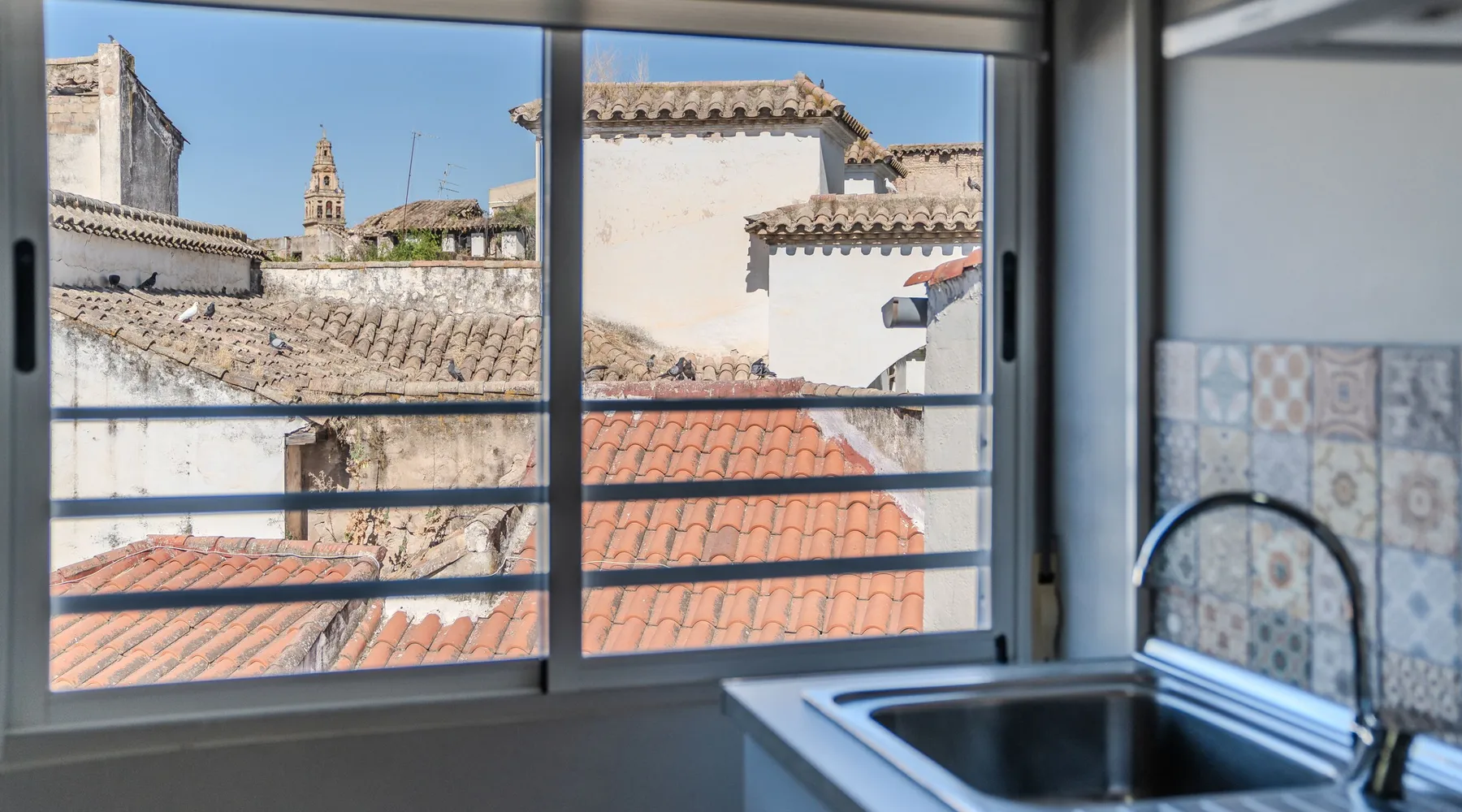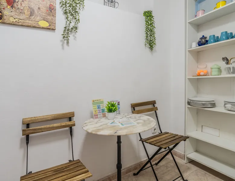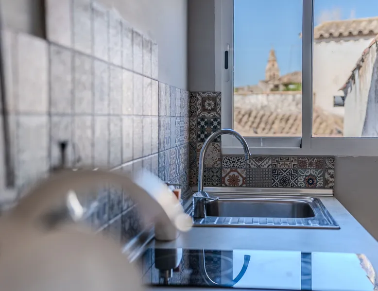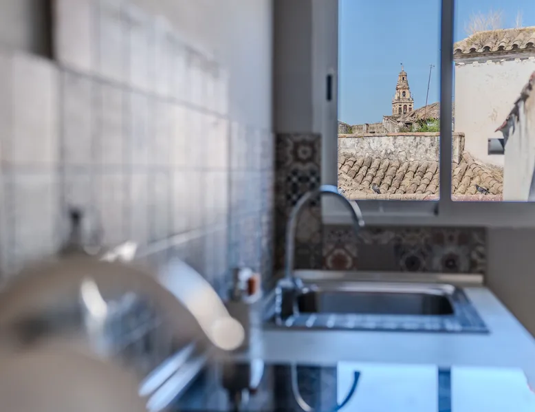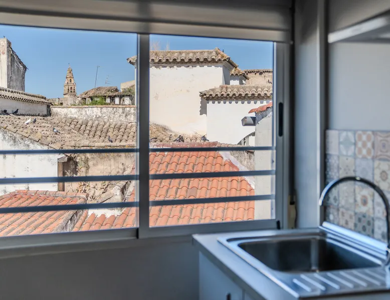 Beautiful and comfortable studios located on the top floor, with views of the Mosque Tower and the rooftops of the historic centre of Cordoba. The kitchen is equipped with coffee maker, toaster, kettle, microwave... The room has 2 beds and a coat rack, as well as hot/cold air-conditioning. The bathroom has a shower, amenities, hairdryer and towels. Calleja La Pimentera is a Tourist Holiday Home located in the Historic Centre of Cordoba (Spain), in the surroundings of the Jewish Quarter, next to the most emblematic monuments of the city: Mosque, Alcazar de los Reyes Cristianos, Synagogue, Roman Bridge, etc... being located in the heart of this beautiful city. The name of this house has different nomenclatures of the area. It was part of the Hostal La Calleja, having its entrance in San Fernando street. It was one of the three cul-de-sacs of the Calle Caldereros in the late Middle Ages, and is located where women dedicated to the sale of spices lived, perhaps hence the nickname La Pimentera. We have 6 different rooms: Flat, Studios and Rooms, all designed for travelling alone, with family, as a couple or with friends. A quiet and cosy space, mixing recycled spaces with comforts so that the client feels at ease during their stay. In the surroundings you will find various services for your comfort (restaurants, parking, supermarkets, shops, etc.). Our exceptional treatment at check in time will make you know the best activities and services to make your stay unforgettable!!!.