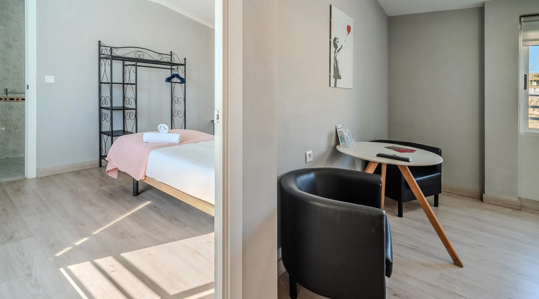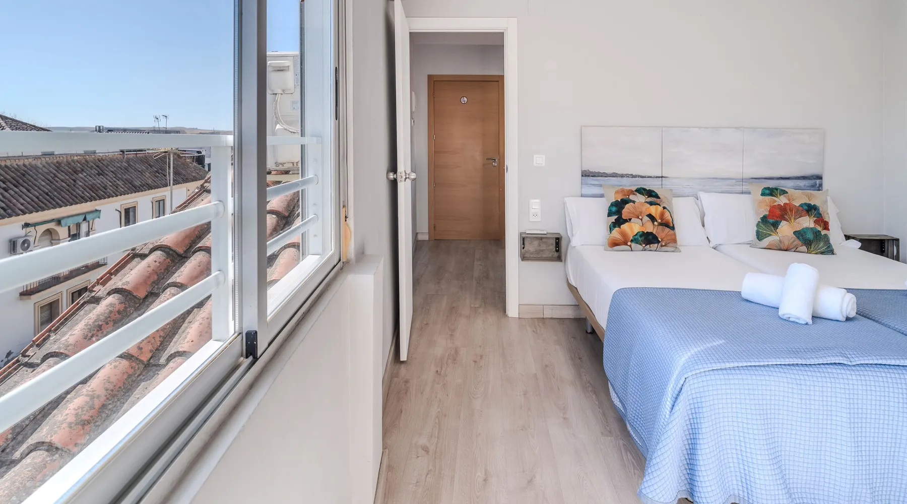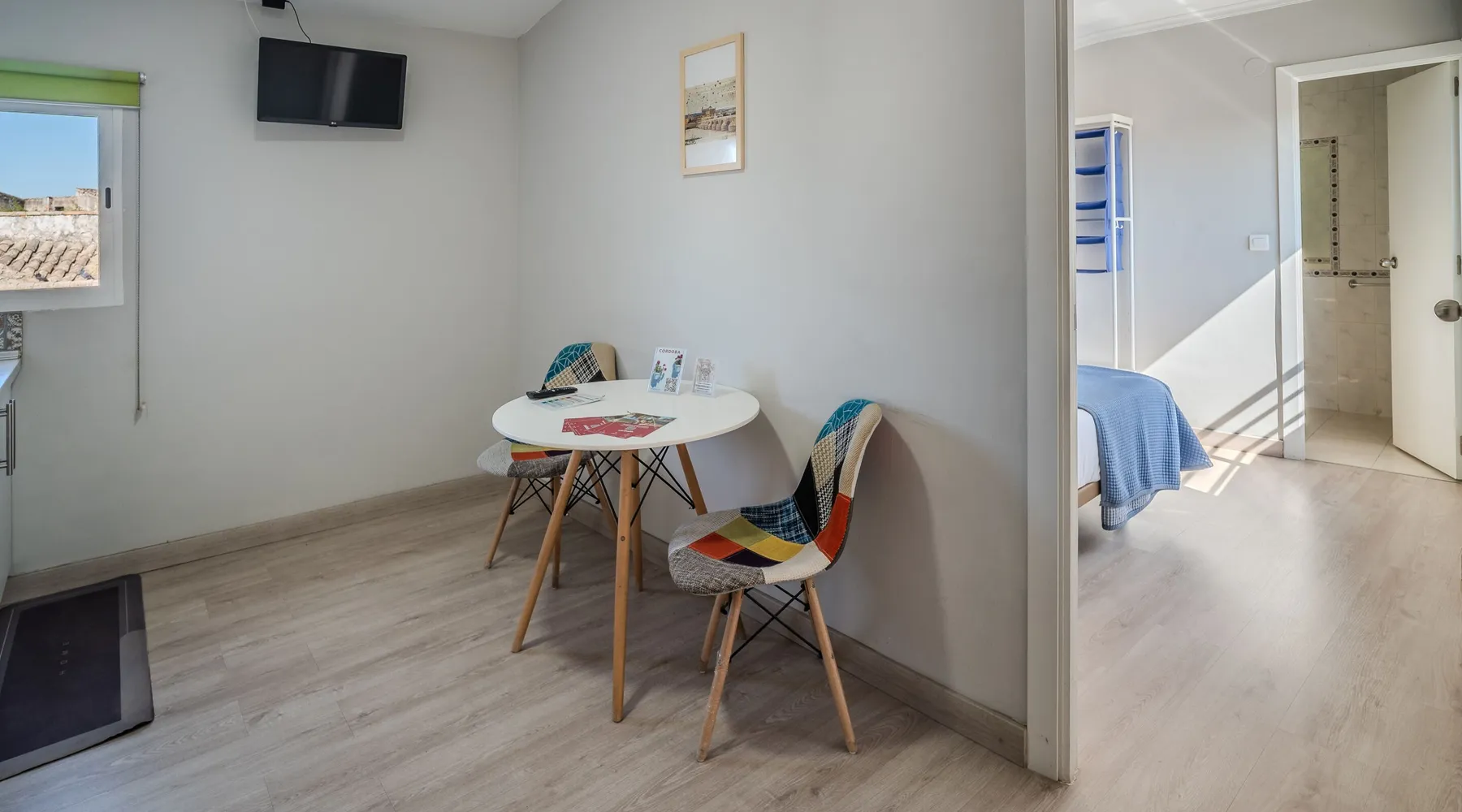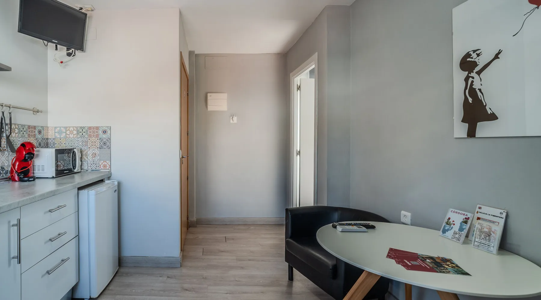 Beautiful and comfortable studios located on the top floor, with views of the Mosque Tower and the rooftops of the historic centre of Cordoba. The kitchen is equipped with coffee maker, toaster, kettle, microwave... The room has 2 beds and a coat rack, as well as hot/cold air-conditioning. The bathroom has a shower, amenities, hairdryer and towels. Calleja La Pimentera is a Tourist Holiday Home located in the Historic Centre of Cordoba (Spain), in the surroundings of the Jewish Quarter, next to the most emblematic monuments of the city: Mosque, Alcazar de los Reyes Cristianos, Synagogue, Roman Bridge, etc... being located in the heart of this beautiful city. The name of this house has different nomenclatures of the area. It was part of the Hostal La Calleja, having its entrance in San Fernando street. It was one of the three cul-de-sacs of the Calle Caldereros in the late Middle Ages, and is located where women dedicated to the sale of spices lived, perhaps hence the nickname La Pimentera. We have 6 different rooms: Flat, Studios and Rooms, all designed for travelling alone, with family, as a couple or with friends. A quiet and cosy space, mixing recycled spaces with comforts so that the client feels at ease during their stay. In the surroundings you will find various services for your comfort (restaurants, parking, supermarkets, shops, etc.). Our exceptional treatment at check in time will make you know the best activities and services to make your stay unforgettable!!!.