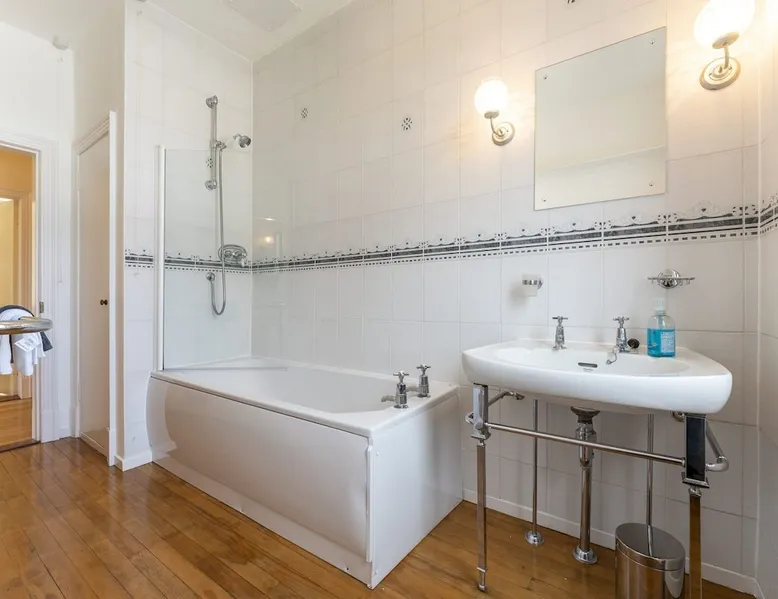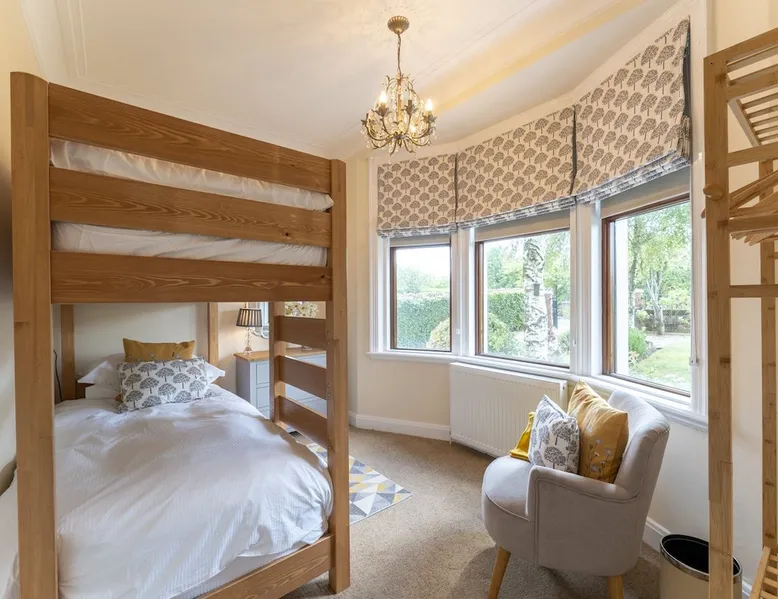 Welcome to St Michael’s, a unique rental that is only a few minutes walk from the historic village of Kippen. This delightful, detached, 5 bedroom house sits in the perfect spot to take in the views of the Trossachs Mountain range. If the inside isn’t enough, you can retreat to the rear deck of this impressive getaway to watch the stunning sunsets then gaze at the twinkling constellations under a cosy blanket. St Michael's is a fabulous place both inside and out with superb 180 degree views. The space Rent St Michael’s and spread out in 5 bedrooms and 3 full bathrooms ( one of which is ensuite), with sleeping space for a total of 9 guests. St Michael’s has 200 sq. metres (2,152 sq. ft.) of space, plus extensive mature gardens. The decked balcony at the back of the house overlooks the rear garden and has the most magnificent view. Restaurants, shopping, family entertainment, and nature trails are all either within walking distance or just a short drive from this ideally located property. Amenities You’ll Love: The property accommodates up to 9 guests with 5 bedrooms and 3 bathrooms Mountain views with spectacular sunsets Extensive private garden + patio space Outdoor dining area with top-quality dining furniture A travel cot and high chair can be supplied Fully equipped kitchen Authentic ‘PulleyMaid’ ceiling mounted clothes airer Washing machine and tumble drier Reliable WiFi throughout with Ubiquiti signal boosters to ensure full coverage Bedrooms equipped with blackout curtains and/or roller blinds Ample parking + space for visitors Proximity to shopping, historic Stirling Castle and tons of family-friendly activities 2 Gastro Pubs within a 5-minute walk Children's playground 3 minute walk from the house A range of family board games left out for you to enjoy A welcoming, large floor plan makes it easy for your group to spend time together AND find quiet moments to yourself. Recently refurbished and modernised with top-quality furniture and beds make St Michael’s the perfect setting for your next family holiday, corporate retreat, or romantic getaway. Bedrooms and Bathrooms Ground Floor The ground floor has 2 bedrooms: one has a king-sized bed with views to the rear of the property and also has the use of the family bathroom with an over-bath shower. Perfect for less mobile guests, this bedroom allows access to all of the property's amenities without having to worry about the stairs! The other bedroom has premium quality wooden bunk beds and views to the front of the property First Floor The first floor has 3 bedrooms—the master suite with a plush king bed and an extensive dressing room/walk-in closet and an ensuite bathroom with a shower cubicle. The views offered from this room are incredible. A further bedroom has the flexibility of zip and link beds which can be configured as either 2 x narrow width single beds or 1 x king size bed. The final bedroom on this floor with coombe ceilings is fully equipped with a wardrobe, bedside table, kids bean bag and a standard-size single bed. These two bedrooms share a full-sized bathroom with over bath shower. All bedrooms are fitted with black-out curtains and roller blinds. The Living Spaces The ground floor features a roomy and sunny living area with a flat-screen OLED TV with NIAM sound bar to connect your music devices to, nap-worthy sofas and windows that fill the space with natural light. There is room here for everyone to lounge together after a day of activities! From here, access through the French Doors onto the decked balcony overlooking the rear garden and take in the views from comfy outdoor dining furniture. This room also boasts a wood-burning stove for cosy winter nights. Kitchen and Dining The kitchen is fully equipped and stocked, with all of the appliances and amenities you’d find at home, including a NESPRESSO coffee maker and additional milk frother, Nutri Pro smoothie maker/blender, dishwasher, washing machine, tumble drier and the large pantry has plenty of room for your self-catering holiday groceries. The kitchen table with 4 chairs makes a great “kids table” or a space for you to relax and chat with other members of your group whilst cooking. And don’t forget the outdoor dining furniture on the decked balcony! The exceptionally large, bay-windowed dining room with period style feature fireplace and ample seating and dining space for 8 people is perfect for your group feasts and family board game nights. Guest access Guests have sole access to the property and gardens. Other things to note The zip and link beds in bedroom 2 are narrow-width single beds best suited to children. When zipped and linked together it forms a standard-size king-size bed. Linens are included on all beds and towels are also supplied. Amenities include free WiFi, Smart TV and a fully equipped kitchen. Guests receive a 'starter pack' of dishwashing detergent, cleaning fluid, dish cloths, a few bin liners, a pint of milk, tea, coffee, sugar and a packet of biscuits. Guests are expected to replenish these if they run out during their stay. Please note that the charging of electric vehicles by means of extension cable or otherwise to connect to the power source at this property is not permitted. Registration Details ST00093P
