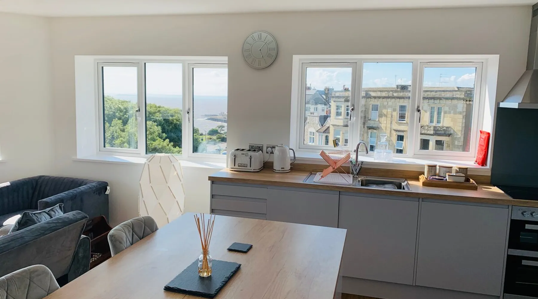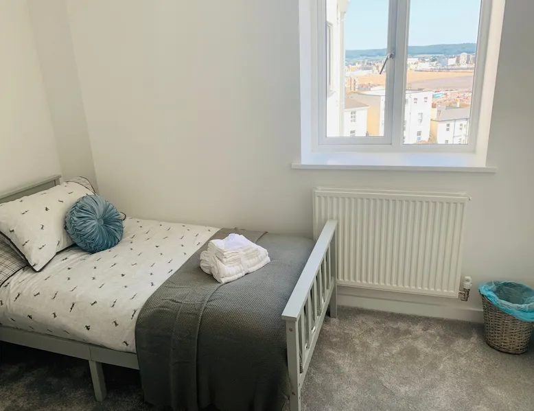 Positioned at the quieter end of the sea front, the location is perfect for an array of activities. The apartments are slightly tucked away from the hustle and bussle of the seafront but the beach and town centre is easily reached on foot. More importantly, you have stunning sea views from the apartment. This is a self-service apartment but we are around and happy to support with whatever we can, just get in contact. The space This 2 bedroom apartment is set on the top floor. This can be accessed via the lift or the stairs. Please beware that the lift is rather snug, this would not be an issue for a pushchair. It has panoramic sea views in the open-plan living space. It has been fully furnished with the intention of it being for Airbnb customers. The kitchen as of June 2020 is brand new. It is fully equipped with a washer dryer, dishwasher, double oven, fridge freezer microwave and lots of storage! Of course, it has all the crockery, pans, utensils etc that you would need. Enough to feed 6 people. 6 adults could stay here, 4 in the 2 bedrooms and 2 using the sofa-bed in the lounge. Alternatively, there is a sofa bed in the twin room. The bathroom has a shaver point, bath and separate shower. Entrance is self-service. Details of codes will be sent at least 24 hours prior to your arrival. You can request them earlier if necessary. The views truly are stunning and as this is on the top floor, you are not overlooked, rather you're overlooking other properties and the sea. Guest access Self service using a key box.