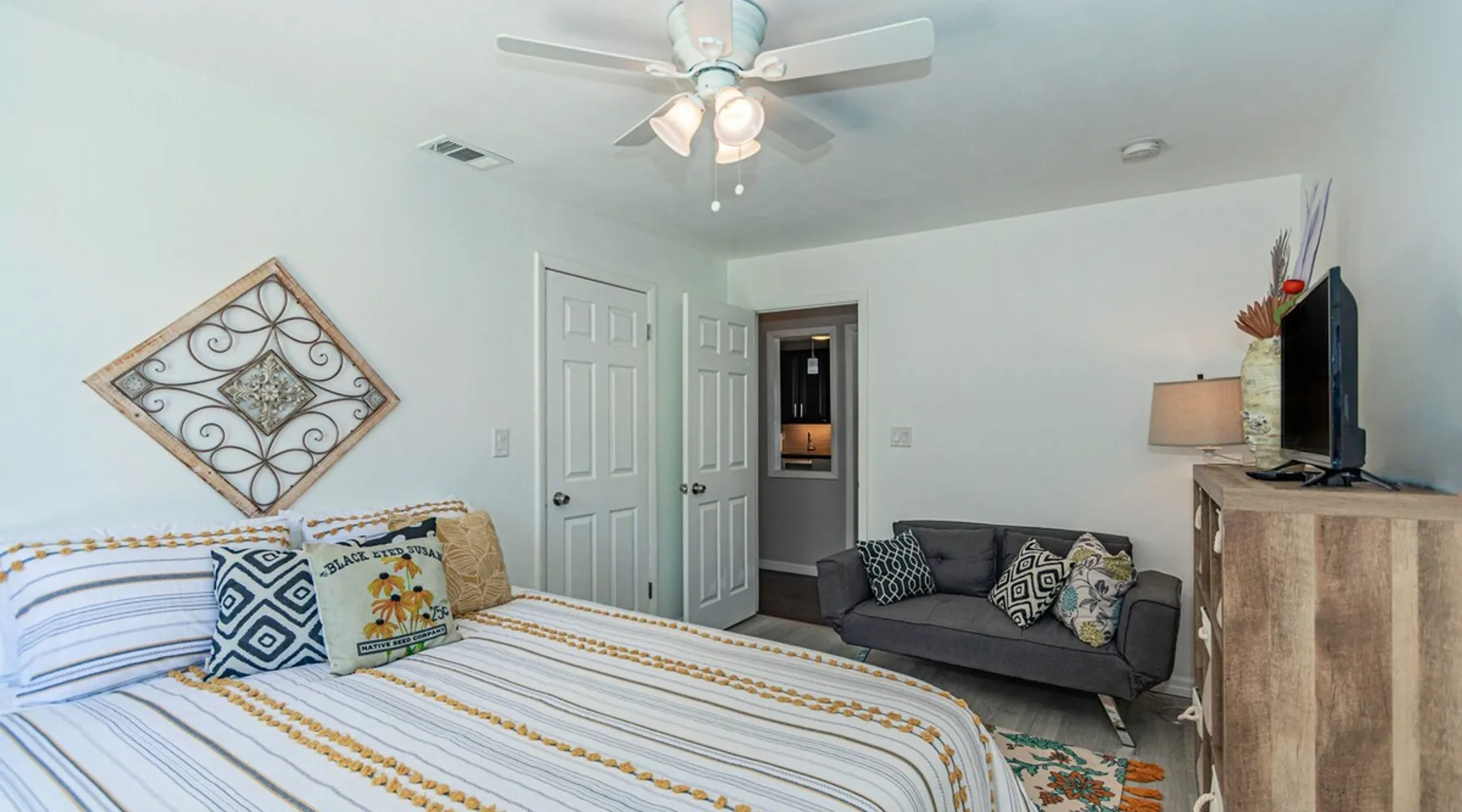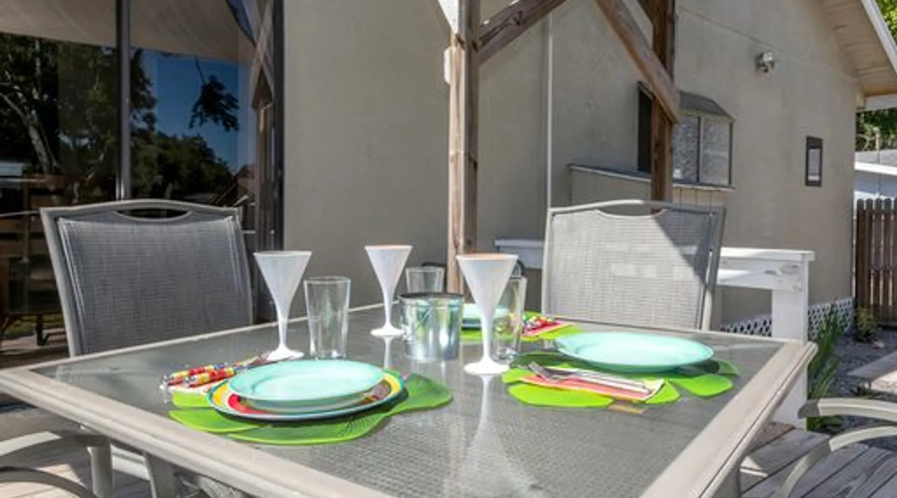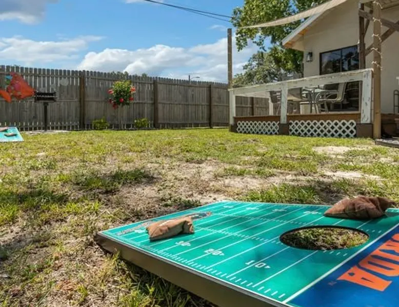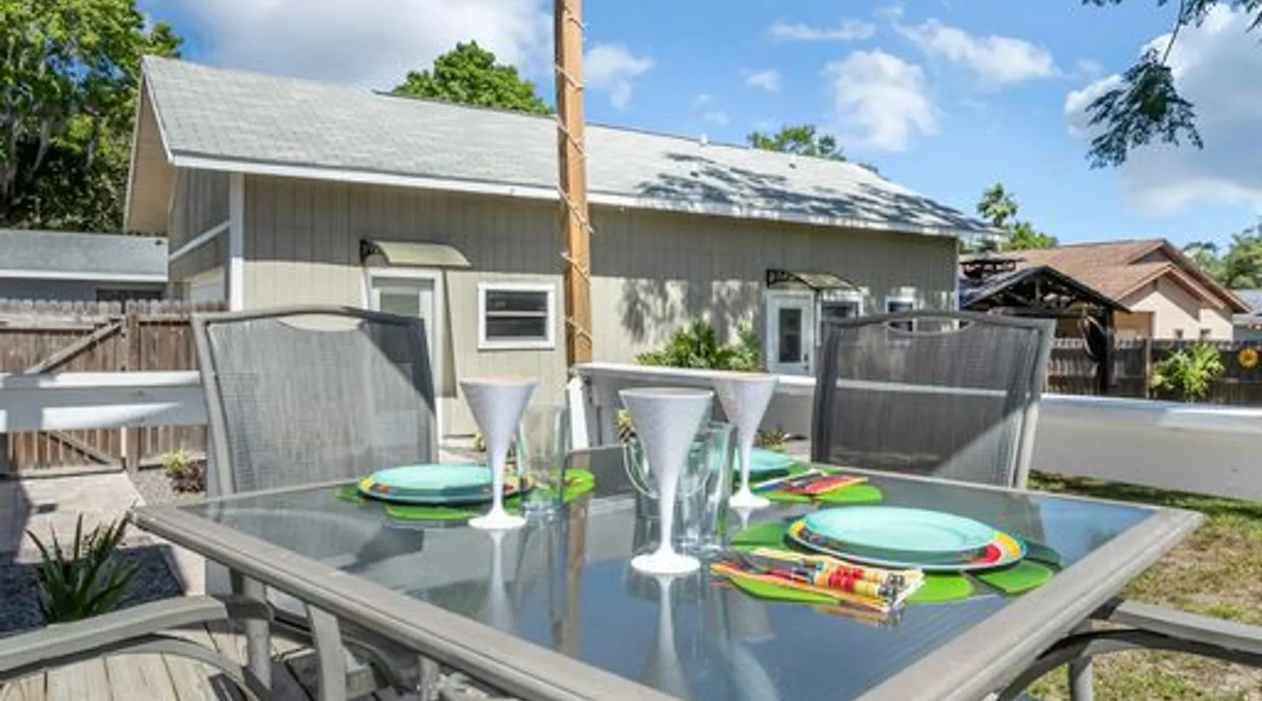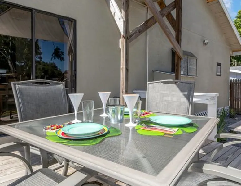 Welcome to Safety Harbor, site of the Hallmark feature film, Love in the Sun! Centrally located between Tampa, St. Pete and Clearwater Beach (and just an hour from Orlando!), this home is perfect for your entire family. The thoughtfully furnished main house is a fully renovated 1920’s Florida bungalow with large gourmet kitchen. The space This sparkling vacation home is appointed with the whole family in mind. Plenty of off-street parking, a large private fenced yard, deck and lighted gazebo provide indoor and outdoor space for the entire family. The main house features a large living room with a 58” TV, 3 bedrooms (sleeps 7), 2 full baths, large dining room, and fully-equipped kitchen with separate coffee bar. The adjacent guest house has 1 bedroom (sleeps 3) with 1 full bath (shower) and a fully-equipped kitchen newly-renovated in June 2021 . A whole-house water softener provides good tasting, soft water throughout. Some starter coffee pods and welcome snacks will be available on arrival. A washer & dryer are available, as well as a charcoal grill, one bike and toddler trailer, pack and play, play yard, high chair, cornhole, beach chairs and assorted children's toys. The property is immaculately cleaned by professionals before each guest arrives. Wi-Fi and smart TVs (Roku or Amazon Firesticks) are also included. A 30 amp RV outlet is available for an additional daily charge.. An HP Laserjet P3015 printer and Scansnap S510 scanner (both wired) are available in the main house. (No paper or technical assistance included). An Uppababy Cruz Stroller with Piggyback Platform is available for use as well (stored in the dining room closet). Guest access The Blue Gecko has a huge driveway with parking for up to 8 vehicles. Additional on-street parking is also available. This home is located 1/3 mile from downtown Safety Harbor. Quiet side streets with sidewalks allow for a leisurely stroll downtown for breakfast, lunch, cocktails, or dinner. Other things to note The fully fenced back yard is perfect for small weddings, showers, birthday parties or similar quiet events. However, prior permission of the host is required. Safety Harbor has quiet hours commencing at 10:00 pm. Please inquire before booking if you are seeking to host any type of party/event at this property.