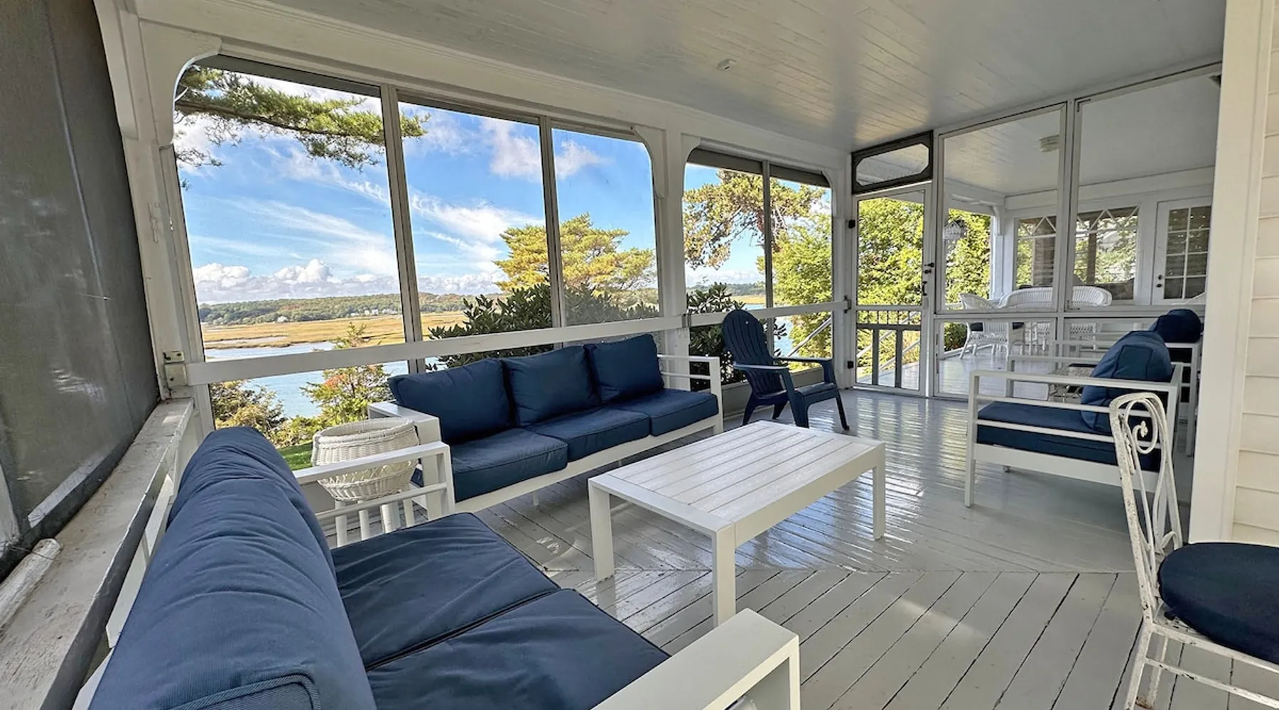 Imagine spending your days swimming from the private dock at high tide or exploring the sandy shoreline at low tide. Launch a kayak or paddleboard from the beach and glide across the water to nearby islands or Wingaersheek Beach for a day of sun, surf, and adventure. Nestled on over an acre of waterfront land, Annisquam Singing Pines is a historic retreat that offers stunning river views, ample outdoor space, and charming indoor comforts—all designed to create unforgettable vacation The space Experience a Classic Cape Ann Summer at Annisquam Singing Pines Originally built as the summer home of Governor Bates, Massachusetts’ governor at the turn of the 20th century, this beautifully updated home seamlessly blends historic character with modern amenities. With five bedrooms and space for up to 10 guests, this is the perfect destination for family gatherings, friend getaways, or a relaxing waterfront escape. Property Highlights: Expansive Waterfront Property – Private dock, beach access, and panoramic views Multiple Porches & Outdoor Living Spaces – Screened-in and open-air options Renovated Kitchen (2023) – Fully equipped with modern appliances Historic Charm Meets Modern Comforts – Updated interiors with original character Prime Location – Easy access to Gloucester, Rockport, Salem, and Boston Parking – There is off-street parking for up to 6 cars. Other things to note 2,418 SF. No Smoking. No events or parties.
