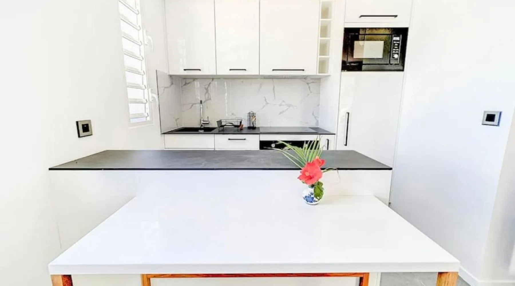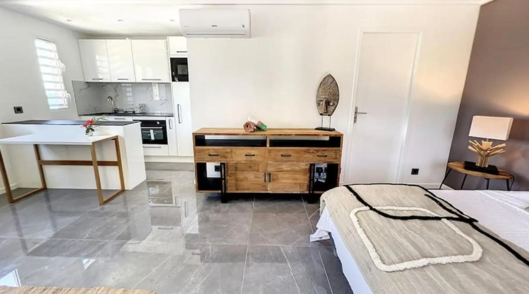 Elegant Accommodations: Studio Aloe in Grand-Case offers a holiday home with one bedroom and a bathroom. Guests enjoy a terrace with sea views, an infinity swimming pool, and a balcony. Free WiFi is available throughout the property. Modern Amenities: The holiday home features air-conditioning, a fully equipped kitchen, and a washing machine. Additional amenities include a dining table, sofa bed, and streaming services. Free on-site private parking and luggage storage enhance the stay. Prime Location: Located a few steps from Grand Case-Espérance Airport, Studio Aloe is an 8-minute walk from Grand Case Beach. Boating is available in the surrounding area. Highly rated by guests, the property ensures a comfortable and memorable stay. The pool with a view is the standout feature of this bungalow. Boasting a private entrance, this air-conditioned bungalow comes with a kitchen, 1 bedroom and 1 bathroom with a shower and a hairdryer. Meals can be prepared in the well-fitted kitchen, which features a stovetop, a refrigerator, kitchenware and an oven. Featuring a balcony with sea views, this bungalow also features a washing machine and a TV with streaming services. The unit has 2 beds.