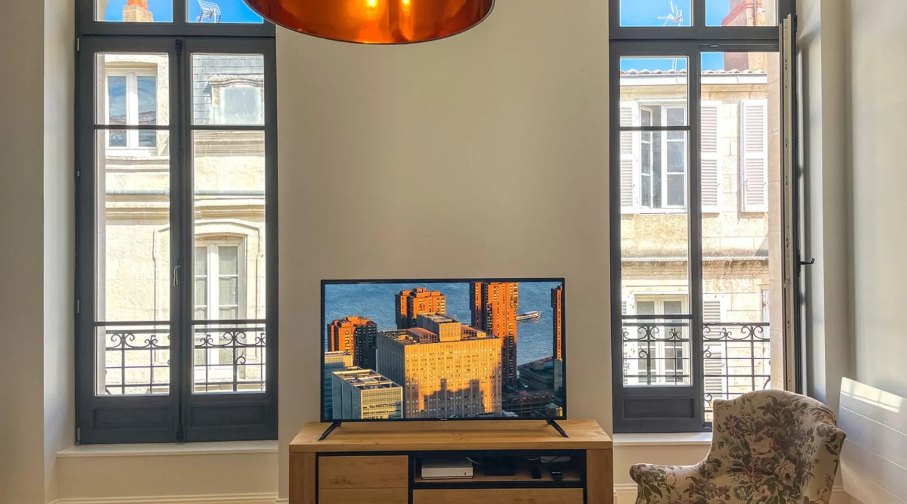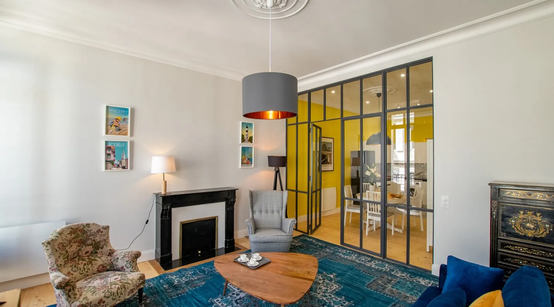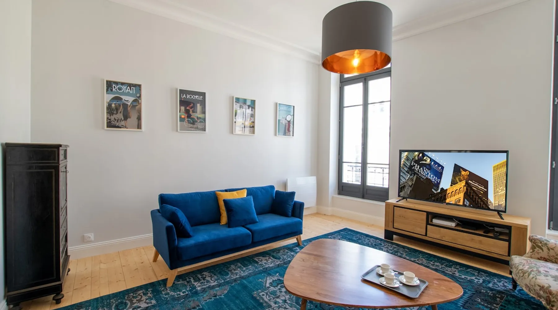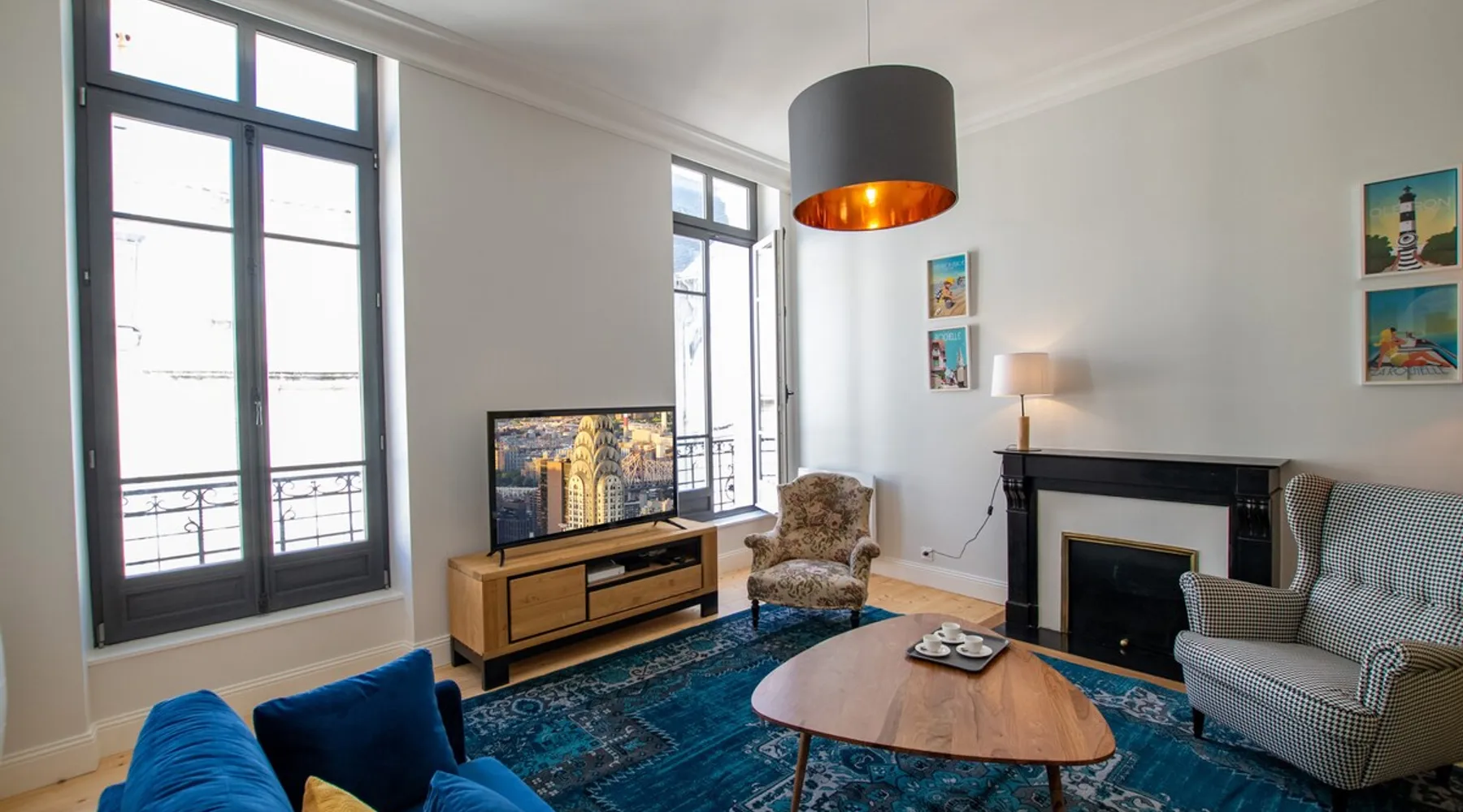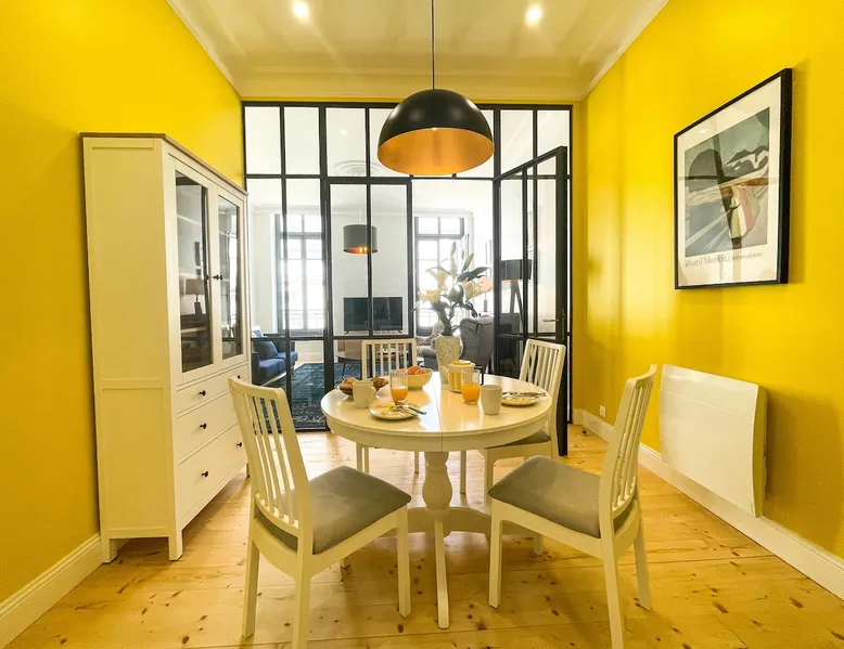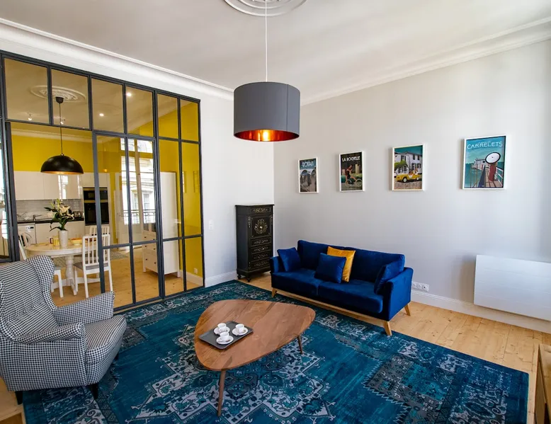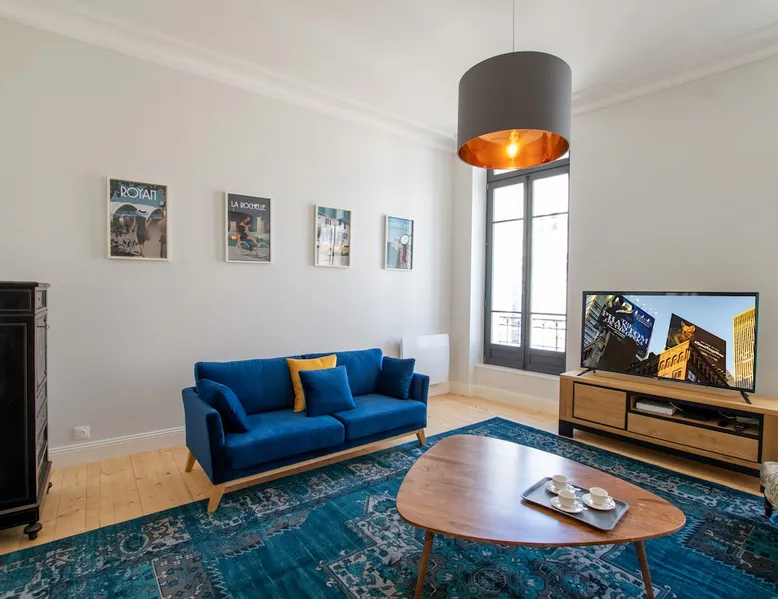 Apartment in the historic heart of La Rochelle, lively area of the city, 150 meters from the famous Towers, near the "Grosse Horloge", close to all conveniences. Renovated apartment in a charming 18th century building. Apartment equipped, WiFi (fiber), linen provided. The space > Living room: large living room of 40m2 with sofa and 55''' TV screen with NETFLIX > Master suite: King bed 160x200 cm, bathroom (walk-in shower, sink, toilet and bidet) > Bedroom 2: Single bed x2 (90x200 cm) ensuite balcony > Kitchen: Modern, fully equipped, with sitting area for 6 guests Other things to note Check in possible from 4:00 p.m. to 00:00 a.m. and check out at 11 a.m. maximum. For a check in before 4:00 p.m. and a check out after 11:00 a.m.: we ask 40€ extra (subject to availability) Registration Details 173000046566X