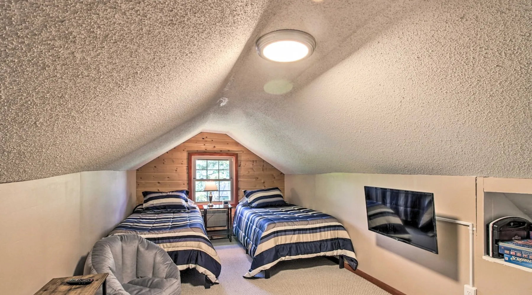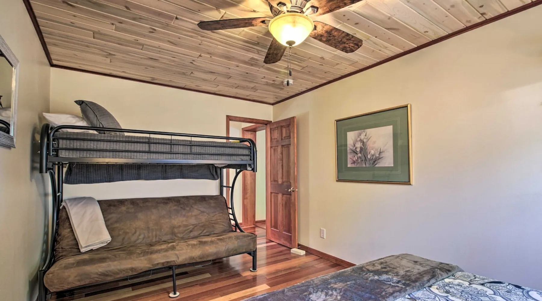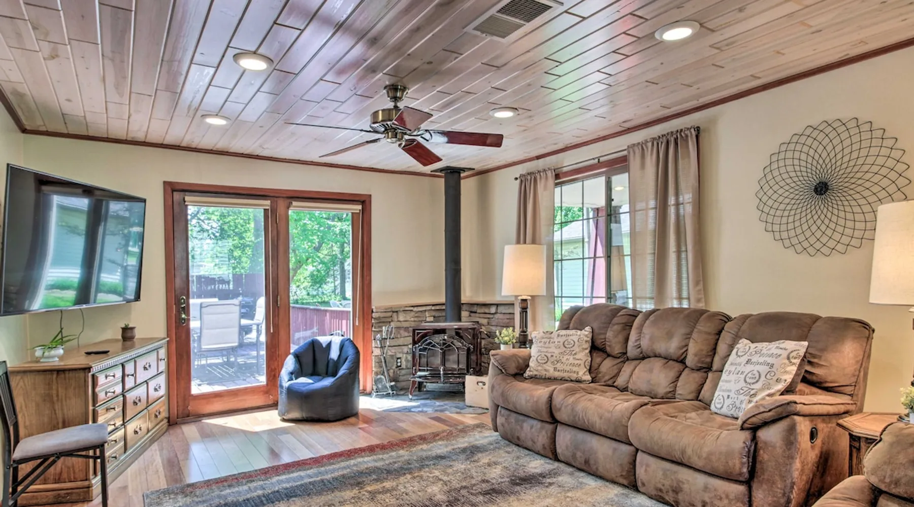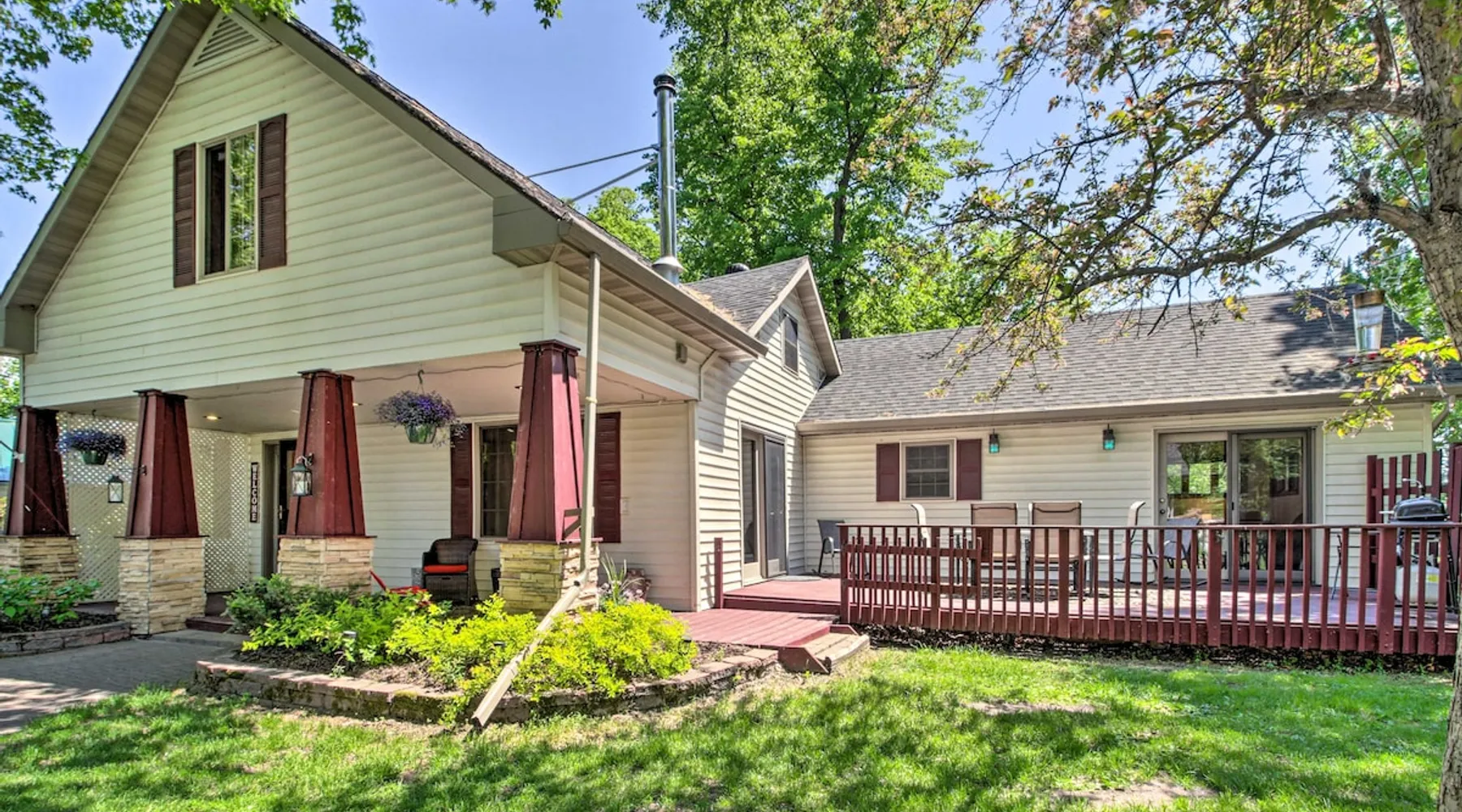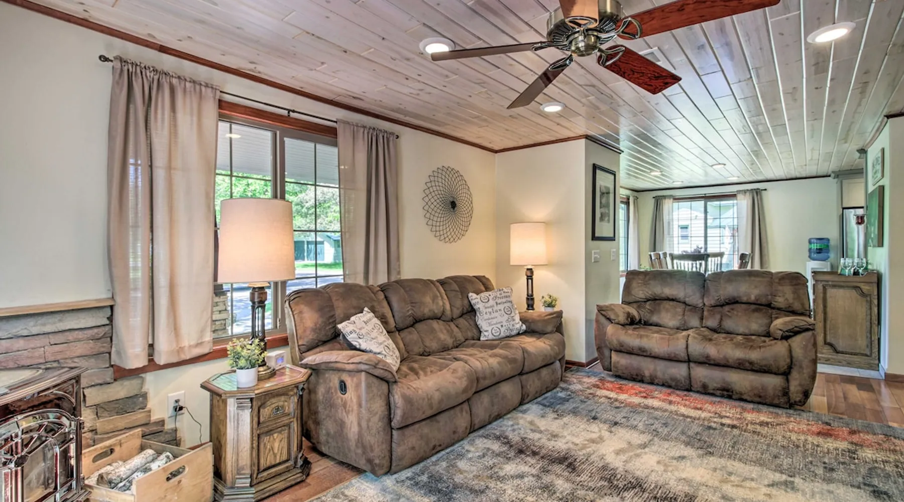 Discover the first city on the Mississippi and head to Bemidji for unforgettable fun at this 4-bedroom, 2-bathroom vacation rental! Bring your boat along for some lakeside fun on Big Turtle Lake or explore the many lakes dotting the area! For a winter adventure, visit Buena Vista Village for skiing, tubing, or even an authentic sleigh ride with the family! At the end of a fun-filled day, fire up the grill and enjoy a home-cooked meal together before roasting marshmallows around the fire pit. The space 1,925 Sq Ft | Fire Pit | Wood-Burning Stove Bedroom 1: Queen Bed | Bedroom 2: Queen Bed, Twin/Full Futon Bunk Bed | Bedroom 3: Queen Bed | Bedroom 4: 2 Twin Beds | Office: Sleeper Sofa | Additional Sleeping: Queen Air Mattress, Pack ‘n Play OUTDOOR LIVING: Gas grill, furnished porch & deck, 2 paddle boards INDOOR LIVING: 4 Smart TVs, 6-person dining table, ceiling fans, board games KITCHEN: Gas stove, dishwasher, Keurig & drip coffee makers, microwave, air fryer, Crockpot, toaster, blender, spices, cooking & dining basics GENERAL: Free WiFi, window A/C units, electric heating, linens/towels, washer/dryer, laundry detergent, high chair, complimentary toiletries, hair dryer, iron/board FAQ: Ring doorbell camera (facing front entry) SUITABILITY: 2 steps required for entry, bedroom & bathroom on 1st floor PARKING: Garage (2 vehicles), driveway (2 vehicles), back garage (4 vehicles), boat/snowmobile trailer parking available, no street parking Guest access Guests will have access to the entire property via keyless entry Other things to note - No smoking - No pets allowed - No events, parties, or large gatherings - Additional fees and taxes may apply - Photo ID may be required upon check-in - NOTE: Your safety matters. This property features a Ring doorbell device with an exterior security camera facing the front outdoor entry. The camera does not look into any interior spaces. The camera actively records video when motion is detected by the device (including devices linked to the camera such as the alarm system’s motion detector) or when the video doorbell button is pressed