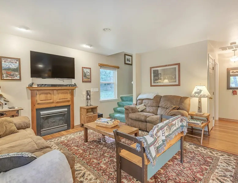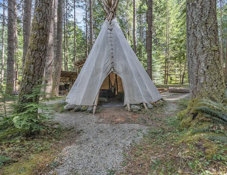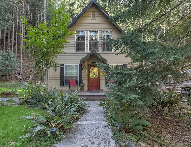 The Elk Crossing Cozy Cabin is a beautiful 3 bedroom, 2 bathroom cabin perfect for skiers, hikers, and outdoor enthusiasts! Nestled within Crystal River Ranch, the cabin has a cozy living space, full kitchen, dining area, huge fire pit, and many outdoor community spaces to enjoy. Go skiing/snowboarding at Crystal Mountain (~18 mile drive), hike/trek Mt. Rainier (~50 mile drive), relax in our NEW hot tub, sit around the fire, or watch the elk wander by your private cabin in the woods! The space You'll love our cozy cabin has several outdoor community spaces. You can grill on the patio with outdoor seating, roast marshmallows around a huge fire pit (seats ~12), play games or build snowmen on the spacious lawn, stargaze, relax in the outdoor gazebo hot tub, read and swing on the outdoor chair lift (seats 2), walk to the river, and lounge or sleep in the outdoor teepee. There are several hikes nearby and Mt Rainier is only 30 minutes away! (Note road to Mt Rainier is closed in the winter and based on snowfall) Guests have a keypad for easy access to the cabin