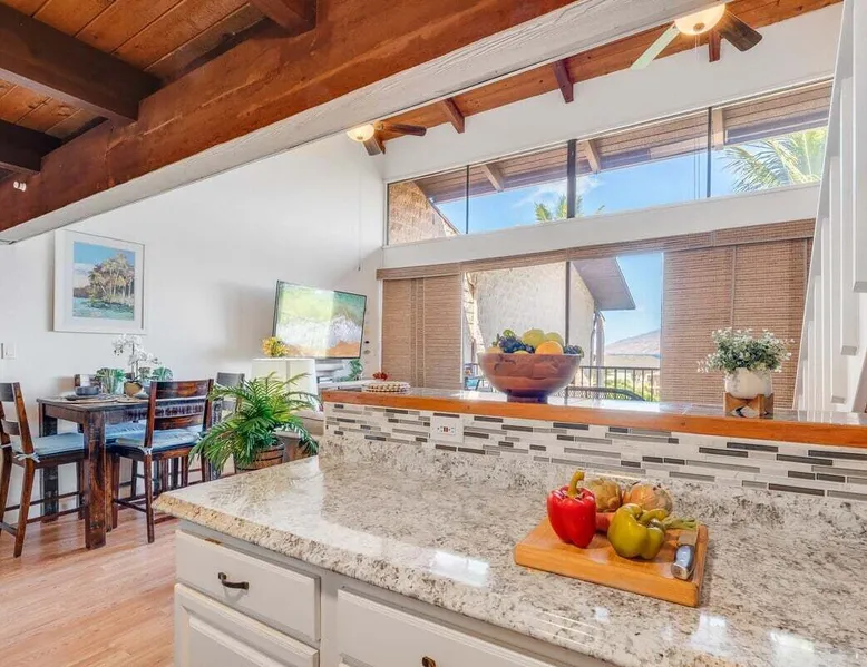 Kihei Alii Kai C405 Updated 2Bedroom Kihei Condo Across from Kamaole Beach Park II with AC, Pool, Hot Tub. Perfect Vacation Rental for Family and Friends. Walk to Shops and Dining FREE daily activities included with your stay value up to $554! Complimentary admission, every day of your stay*: Whale Watching (seasonal), Sunset Dinner Cruise, Molokini Snorkel Trip, Alpaca Farm Tour, Pineapple Farm Tour, and Tea Farm Tour. (S1) *One ticket per activity per day. Additional details provided after confirmed booking. Your next unforgettable Maui vacation awaits you at our lovely, clean and comfortable Kihei Alii Kai C405. The open floor plan leads to the spacious lanai and the high vaulted ceilings, create the perfect space for gathering with your family, entertaining friends, or just to kick back and relax after a long day of exploring Maui. You can enjoy the many onsite amenities such as the pool, hot tub, sauna and gas BBQ areas. Aloha from Kihei Alii Kai! Condo Highlights: -2 Bedroom, 1 Bathroom, Sleeps 6 guests -Mitsubishi Split Zone AC in living room and bedroom1 -Partial ocean view from lanai -Bedroom1 with King size bed -Bedroom2 loft with Queen size bed -Sleeper-sofa in the living room -Smart TVs in the living room and both bedrooms -Sonos smart soundbar in living room -Fully-equipped kitchen -Indoor dining area with high top table and chairs for 4 -In-unit washer/dryer -Ceiling fans throughout NOTE: Steps are required to get from parking areas to elevators and from elevators to unit. The Kihei Alii Kai Resort is a short walk to shops and restaurants, and right across the street to one of Maui's popular beaches - Kamaole Beach I. Known for the amazing beaches and relaxed feel, you can enjoy low key activities in the middle of town, and still relax exploring Maui's South Side. Visit the island during whale season - November to April - and you're likely to catch a glimpse of the newborns and mom jumping and splashing in the warm sunshine along the coastline! Come enjoy your next Maui adventure from the perfect location on the South Side. Resort Highlights: -Brand new pool and large pool deck -Hot tub -Sauna -Two BBQ areas with gas grills and tables -No resort fees -Elevators -Free on-site parking included No Mail Allowed: We are unable to receive USPS mail, including letters and packages at this rental. For medical-related items, please contact our Reservations Team for assistance. Minimum age of primary renter: 25 We provide the following in every unit: -First Aid Kit -High Speed Internet -Linens and towels -Iron and ironing board -Hair dryer -Beach towels, Beach chairs, and Hard sided cooler -Starter Kit: Starter supply of shampoo, conditioner, body wash, lotion, hand soap, dish soap, laundry detergent, dishwasher tabs, toilet paper, paper towels, trash bags *We don't provide beach umbrellas, toys, or gears, such as snorkeling, due to safety, health, and hygiene risks. BEACHES & CRITTERS: The beach size in Hawaii varies month to month due to weather, heavy surf, strong currents, and tides. Due to Maui's rural setting, you may experience the occasional rooster, as well as harmless geckos. Geckos are friendly, eat insects, and are considered good luck in Hawaii. Please don't kill them. Although the HOA schedules regular professional pest control services, pests such as ants, roaches and rodents simply cannot be completely controlled in the tropics. Maui is in a tropical climate. If our guest spot more than the normal expected pests, we always make our best efforts to contact and work with the HOA to minimize your interactions with these pests. Any contact with such pests within or outside the unit does not constitute a breach of this Agreement or give Guest any right to any refund or rental adjustment. **We make no guarantee that properties adjacent to the Unit will be free from disturbances, including but not limited to noise or inconvenience from construction, traffic or other guests or neighbors. Any such disturbance shall not constitute a breach of this Agreement or give Guest any right to any refund or rental adjustment. By booking your stay with us, you accept that Host is not liable for any inconveniences arising from any temporary defect or stoppage in supply of water, electricity, air conditioning or plumbing that is beyond their control. Host is not liable for any loss or damage to Tenants' personal property caused by weather conditions, natural disasters, or other events beyond their control. Tenants accept that the cable and internet service at the Rental can be sporadic and unreliable at times, and Tenant shall not be entitled to any refund of the rental fee in the event either of these services are unavailable or not operating properly during Tenants' stay. GE-063-242-3936-01 TA-063-242-3936-01 TMK: 390200160092