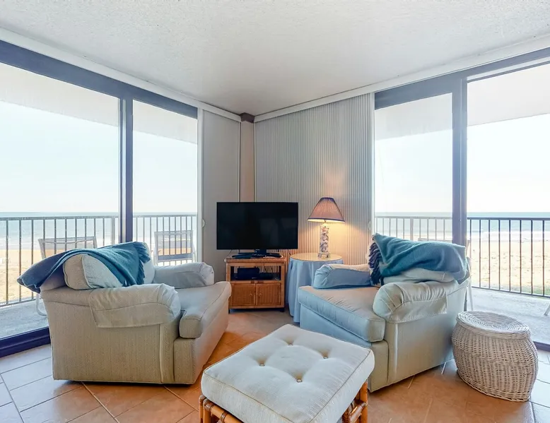 Sea Colony corner condo with ocean views, wraparound balcony, pools, & beach