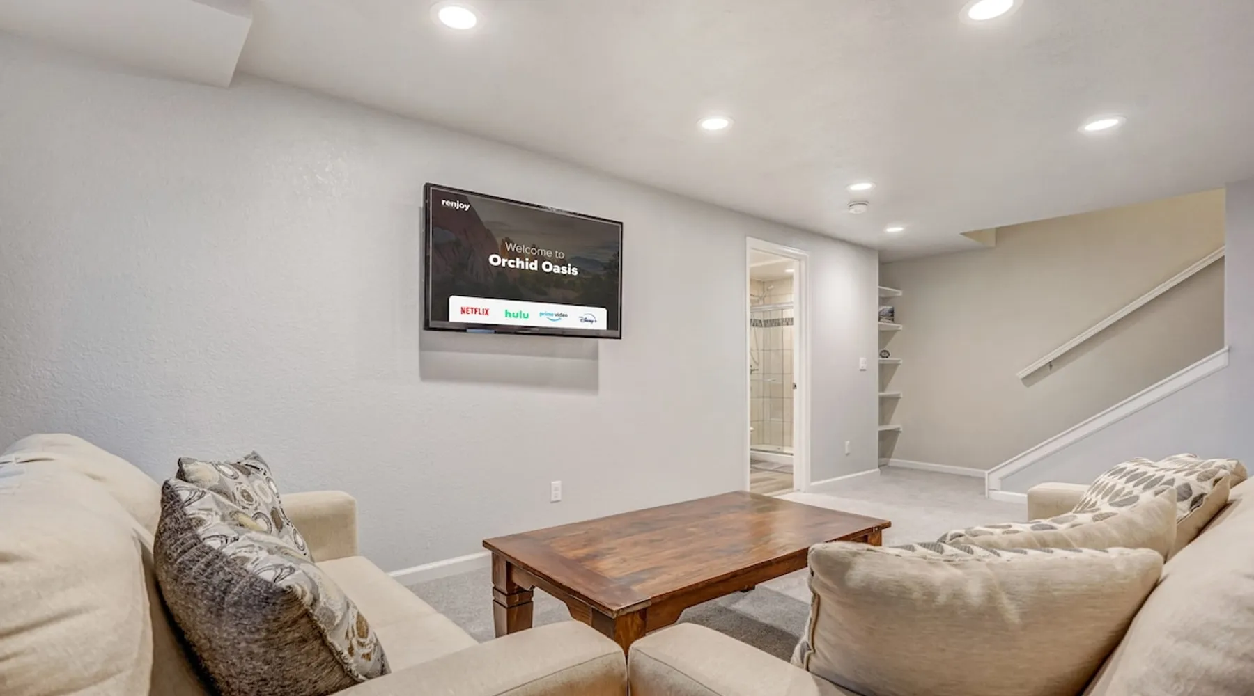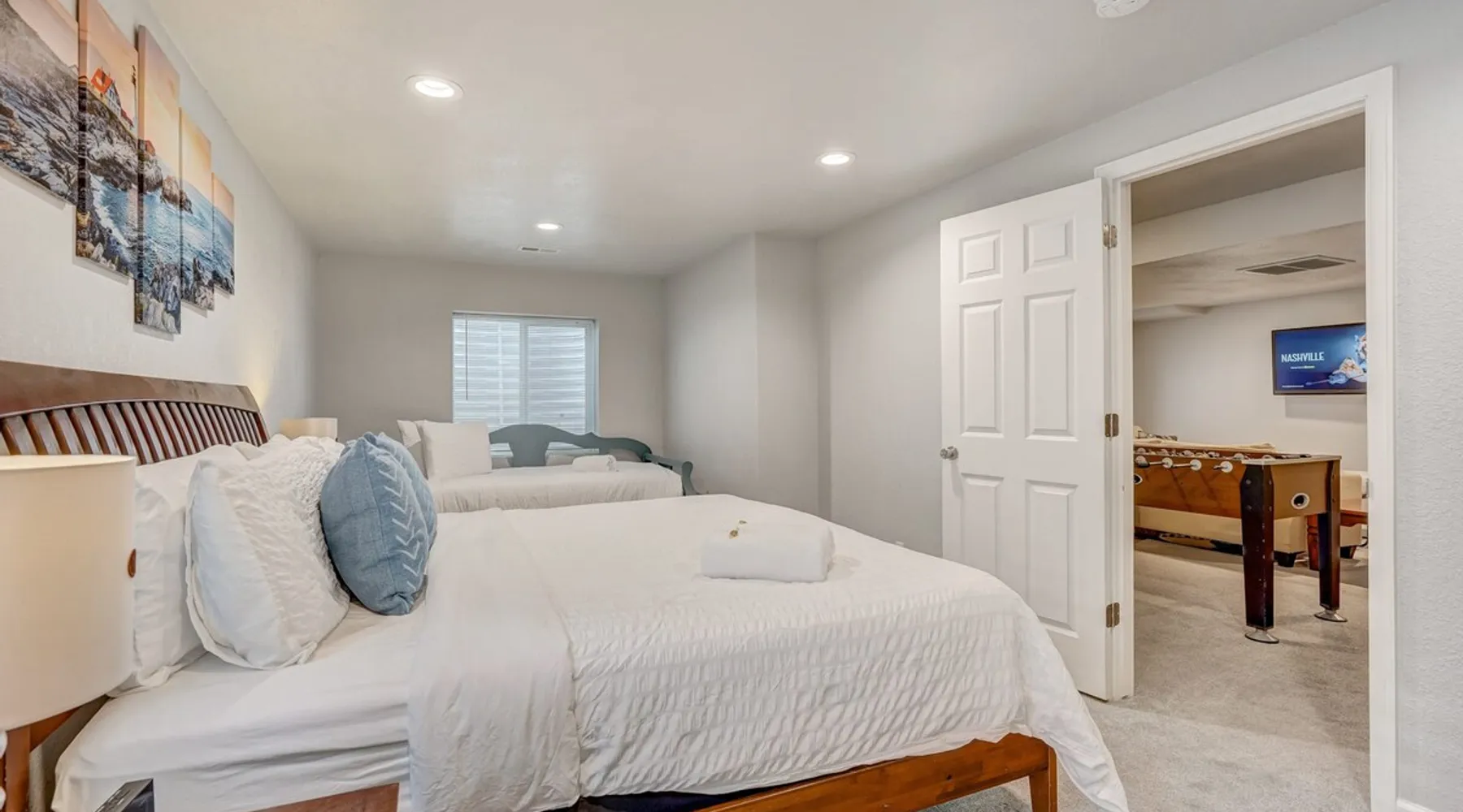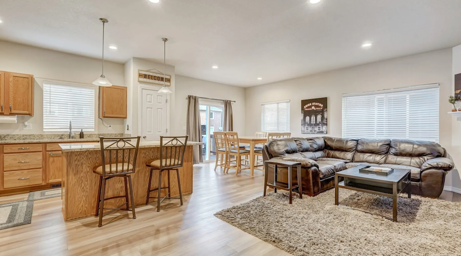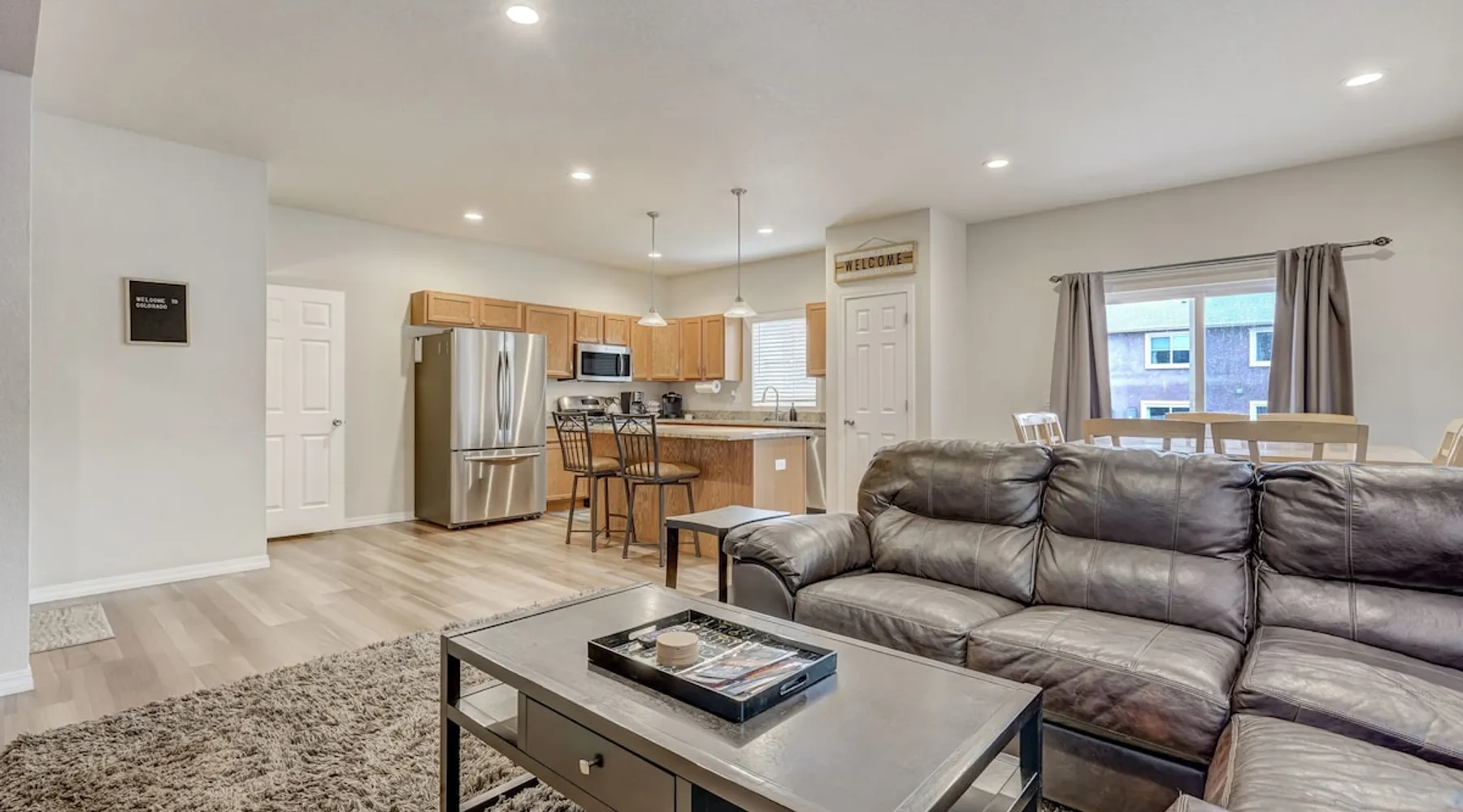 Escape to the heart of Colorado Springs and experience the perfect blend of convenience and charm just moments away from downtown's vibrant attractions! 🕹️ Basement man cave with Foosball, Smart TV, and workspace! 🔥 Fire pit, BBQ grill, outdoor seating, & mountain view! 🏫 15-20 mins to downtown COS, UCCS, and St. Francis Hospital! 🏰 25-35 mins to Garden of the Gods, The Broadmoor, and Cheyenne Mtn Zoo! Bring your peers and open some beers! Book now! The space Welcome to this stunning townhome in Colorado Springs, designed for comfort and convenience. With an open floor plan, ample sleeping arrangements, and a dedicated hangout room, this home is perfect for your next getaway. 🏡 Main Living Room Adjacent to the kitchen and dining room in an open layout, the living room features a comfy leather sectional and a large Smart TV. Log into your preferred streaming service, prepare some popcorn, and enjoy a cozy movie night! 🍳 Kitchen The fully equipped kitchen includes all major appliances and everything you need to cook from the comfort of home. Whether it’s breakfast, lunch, or dinner, savor each other's company over delicious food and drinks. 🛏️ Bedroom Setup Bedroom 1 (King Bed): Located upstairs, this King Master Suite includes a private, sparkling clean bathroom with toiletries. Unwind with your own Smart TV from the comfort of bed. Bedroom 2 (King Bed w/ Twin bed & Twin Trundle): Located in the basement. Bedroom 3 (Queen Bed): Located on the main level. Bedroom 4 (Queen Bed): Located upstairs. Bedroom 5 (Queen Bed): Located upstairs. Bedroom 6 (Queen Pullout Sofa Bed or Queen Air Mattress): Located in the basement. 🎮 Basement Living Room Recline in the basement living room with a large Smart TV, Foosball table, and a smaller dedicated workspace for remote work. For larger groups, the Queen Sofa Bed offers additional sleeping arrangements. 👶 Kid-Friendly Amenities For your convenience, we provide a pack-n-play, sheets, and a high chair, making your stay with children more comfortable. 🌳 Backyard Enjoy the fenced backyard with well-maintained grass and a delightful deck equipped with seating next to the grill for your BBQ pleasures! Unwind with the fire pit and chairs for a fun night roasting s'mores together. 🎉 Gatherings This modern, contemporary home is centrally located, making it perfect for work, sightseeing, or visits. While we want you to have a great time, please note our strict "No Party" policy out of respect for other tenants and neighbors. 🔕 Quiet Hours Quiet hours are from 10 pm to 8 am. Guests are responsible for the conduct of all persons in their unit. 🚭 Smoking Smoking of any kind is not allowed in the unit. A minimum $300 fee will apply if smoking is detected during your stay. 🧑💼 Minimum Age Guests on the reservation must be 18 years or older. By booking, you confirm that you are 18 or older and have the legal capacity to enter into a contract. The named reservation guest must be present at check-in and throughout the stay. 🔒 Security For security, there are exterior audio/video recording cameras. There are no recording devices inside the unit. 🚗 Parking Free street parking, driveway parking, and garage parking are available. ⏰ Check-In / Check-Out Check-in is at or after 4 pm, and check-out is prior to or at 10 am. Early check-ins and late checkouts are subject to availability and can be requested one day before. Additional fees may apply. Guest access 🔑 You will have access to the entire place, including the washer and dryer for use at your convenience during your stay! Enjoy easy access to the EV charger in the garage for your vehicle! Other things to note 📜 Rental Agreement: For a seamless booking experience, a Rental Agreement is required for all reservations. Once your reservation is confirmed, we’ll provide details for completing the agreement. 🔑 Check-In Process: For a seamless check-in experience, your unique code along with your check-in instructions will be updated into your personalized guidebook on the morning of your arrival. You’ll use this code for entry. ☕ Starter Supply: We’ve prepared a starter supply that includes paper towels, coffee K-cups, toilet paper, shampoo, body wash, and plush white towels! We hope these amenities add an extra touch of comfort to your stay. 💵 Additional Fees: For guests bringing dogs, there is a mandatory pet fee of $100 per dog, collected after booking. A maximum of 2 dogs is allowed per reservation unless otherwise approved. No other animals are permitted. Optional services, including early check-in, late check-out, and additional guests, can be arranged upon request and are subject to availability. These additional fees help cover the cost of reworking the schedule or adding an additional cleaner if needed. Please message us ahead of time for pricing and availability. ⏰ Unauthorized Late Checkout Fee: $20 per half hour late. 📝 Permit Number: A-STRP-24-0900
