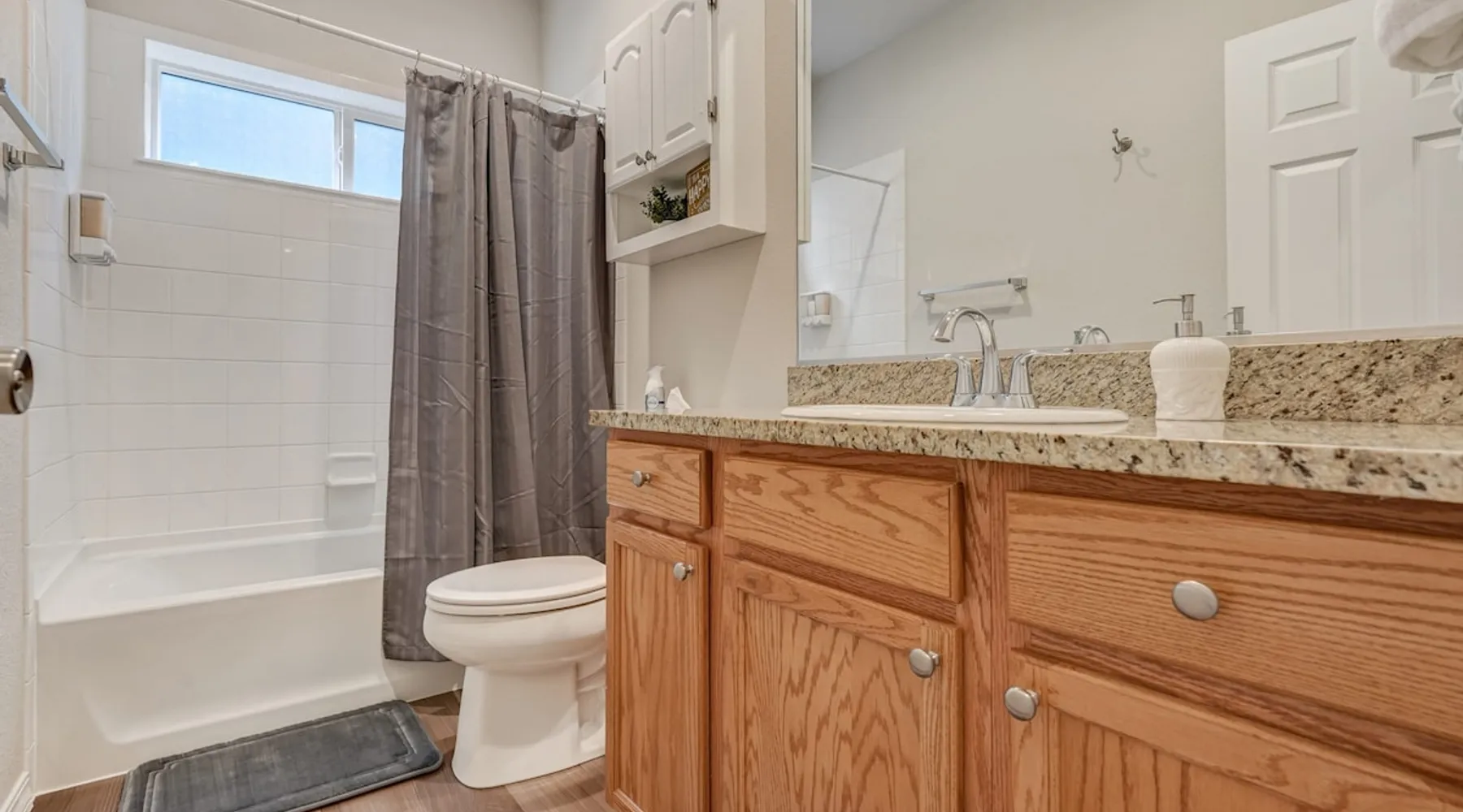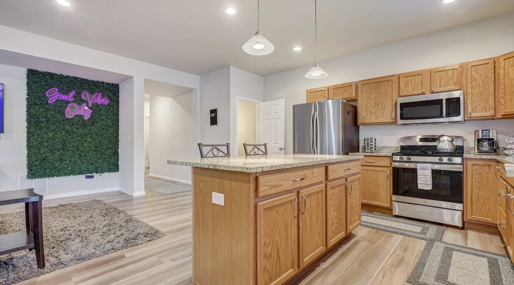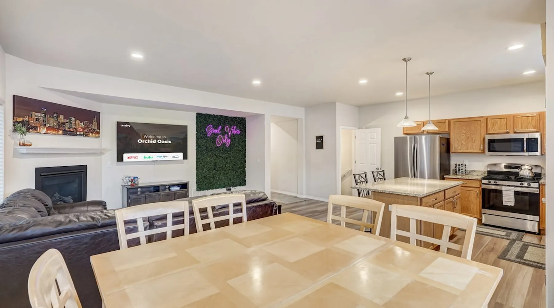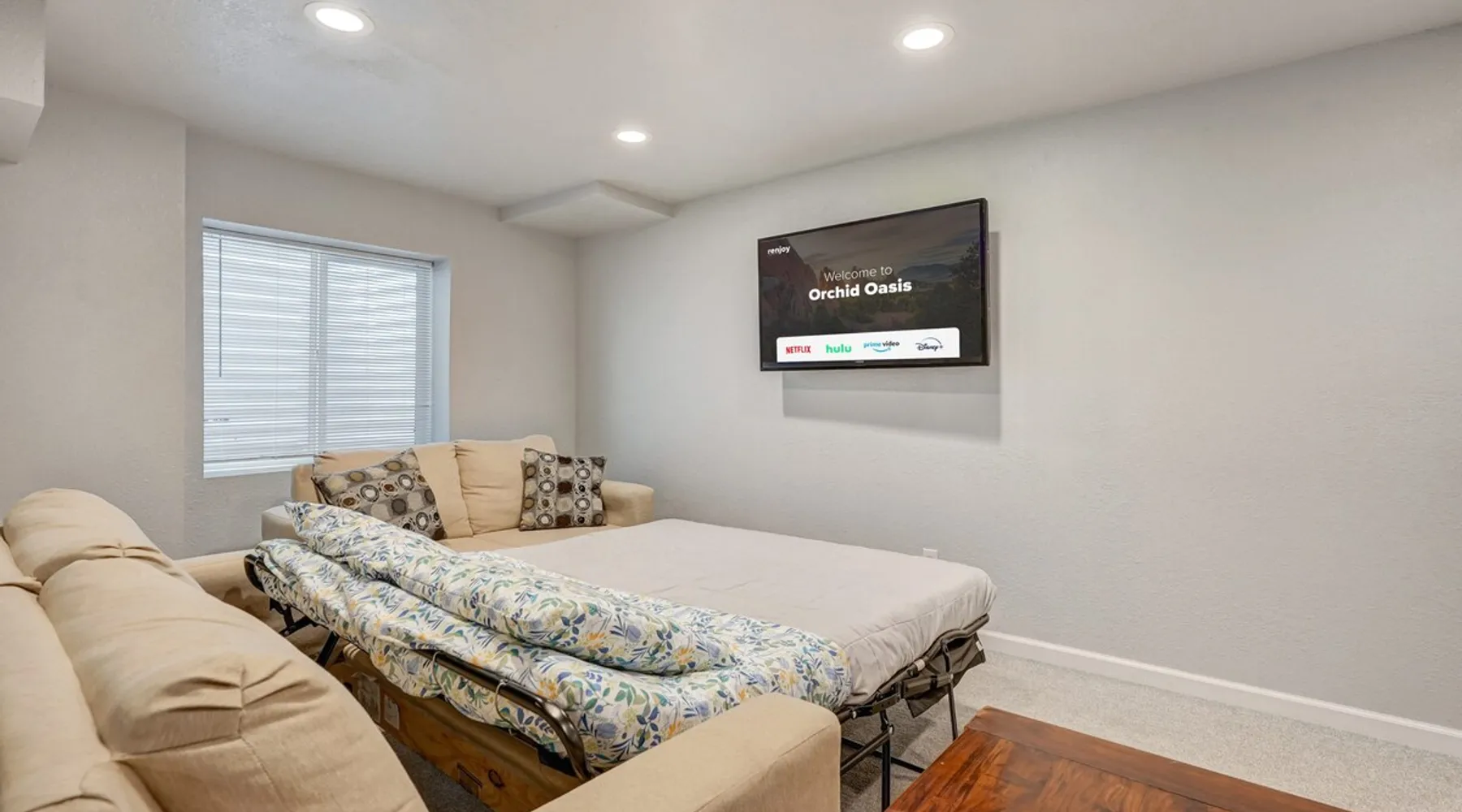 Escape to the heart of Colorado Springs and experience the perfect blend of convenience and charm just moments away from downtown's vibrant attractions! 🕹️ Basement man cave with Foosball, Smart TV, and workspace! 🔥 Fire pit, BBQ grill, outdoor seating, & mountain view! 🏫 15-20 mins to downtown COS, UCCS, and St. Francis Hospital! 🏰 25-35 mins to Garden of the Gods, The Broadmoor, and Cheyenne Mtn Zoo! Bring your peers and open some beers! Book now! The space Welcome to this stunning townhome in Colorado Springs, designed for comfort and convenience. With an open floor plan, ample sleeping arrangements, and a dedicated hangout room, this home is perfect for your next getaway. 🏡 Main Living Room Adjacent to the kitchen and dining room in an open layout, the living room features a comfy leather sectional and a large Smart TV. Log into your preferred streaming service, prepare some popcorn, and enjoy a cozy movie night! 🍳 Kitchen The fully equipped kitchen includes all major appliances and everything you need to cook from the comfort of home. Whether it’s breakfast, lunch, or dinner, savor each other's company over delicious food and drinks. 🛏️ Bedroom Setup Bedroom 1 (King Bed): Located upstairs, this King Master Suite includes a private, sparkling clean bathroom with toiletries. Unwind with your own Smart TV from the comfort of bed. Bedroom 2 (King Bed w/ Twin bed & Twin Trundle): Located in the basement. Bedroom 3 (Queen Bed): Located on the main level. Bedroom 4 (Queen Bed): Located upstairs. Bedroom 5 (Queen Bed): Located upstairs. Bedroom 6 (Queen Pullout Sofa Bed or Queen Air Mattress): Located in the basement. 🎮 Basement Living Room Recline in the basement living room with a large Smart TV, Foosball table, and a smaller dedicated workspace for remote work. For larger groups, the Queen Sofa Bed offers additional sleeping arrangements. 👶 Kid-Friendly Amenities For your convenience, we provide a pack-n-play, sheets, and a high chair, making your stay with children more comfortable. 🌳 Backyard Enjoy the fenced backyard with well-maintained grass and a delightful deck equipped with seating next to the grill for your BBQ pleasures! Unwind with the fire pit and chairs for a fun night roasting s'mores together. 🎉 Gatherings This modern, contemporary home is centrally located, making it perfect for work, sightseeing, or visits. While we want you to have a great time, please note our strict "No Party" policy out of respect for other tenants and neighbors. 🔕 Quiet Hours Quiet hours are from 10 pm to 8 am. Guests are responsible for the conduct of all persons in their unit. 🚭 Smoking Smoking of any kind is not allowed in the unit. A minimum $300 fee will apply if smoking is detected during your stay. 🧑💼 Minimum Age Guests on the reservation must be 18 years or older. By booking, you confirm that you are 18 or older and have the legal capacity to enter into a contract. The named reservation guest must be present at check-in and throughout the stay. 🔒 Security For security, there are exterior audio/video recording cameras. There are no recording devices inside the unit. 🚗 Parking Free street parking, driveway parking, and garage parking are available. ⏰ Check-In / Check-Out Check-in is at or after 4 pm, and check-out is prior to or at 10 am. Early check-ins and late checkouts are subject to availability and can be requested one day before. Additional fees may apply. Guest access 🔑 You will have access to the entire place, including the washer and dryer for use at your convenience during your stay! Enjoy easy access to the EV charger in the garage for your vehicle! Other things to note 📜 Rental Agreement: For a seamless booking experience, a Rental Agreement is required for all reservations. Once your reservation is confirmed, we’ll provide details for completing the agreement. 🔑 Check-In Process: For a seamless check-in experience, your unique code along with your check-in instructions will be updated into your personalized guidebook on the morning of your arrival. You’ll use this code for entry. ☕ Starter Supply: We’ve prepared a starter supply that includes paper towels, coffee K-cups, toilet paper, shampoo, body wash, and plush white towels! We hope these amenities add an extra touch of comfort to your stay. 💵 Additional Fees: For guests bringing dogs, there is a mandatory pet fee of $100 per dog, collected after booking. A maximum of 2 dogs is allowed per reservation unless otherwise approved. No other animals are permitted. Optional services, including early check-in, late check-out, and additional guests, can be arranged upon request and are subject to availability. These additional fees help cover the cost of reworking the schedule or adding an additional cleaner if needed. Please message us ahead of time for pricing and availability. ⏰ Unauthorized Late Checkout Fee: $20 per half hour late. 📝 Permit Number: A-STRP-24-0900