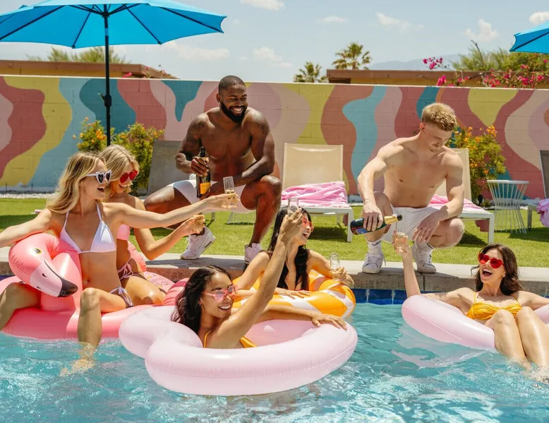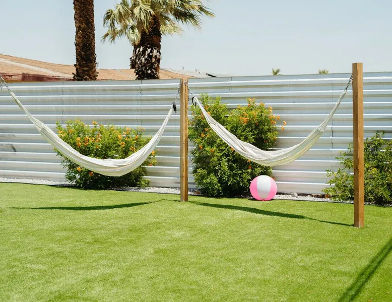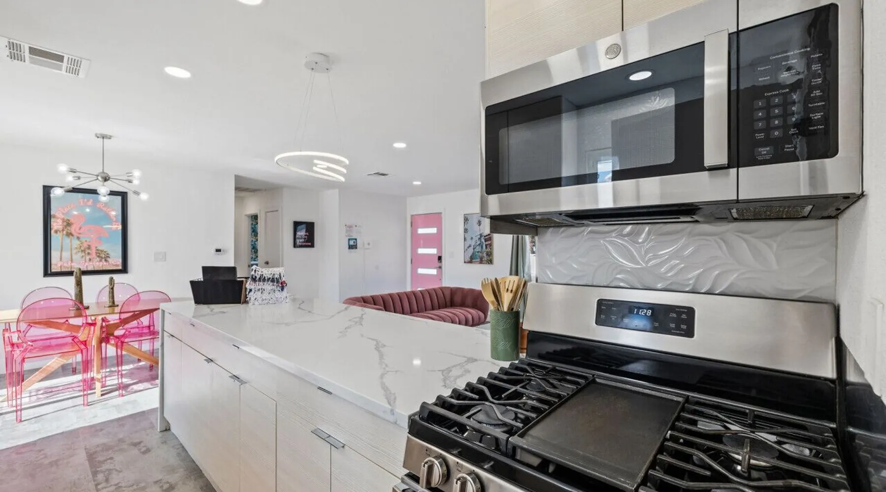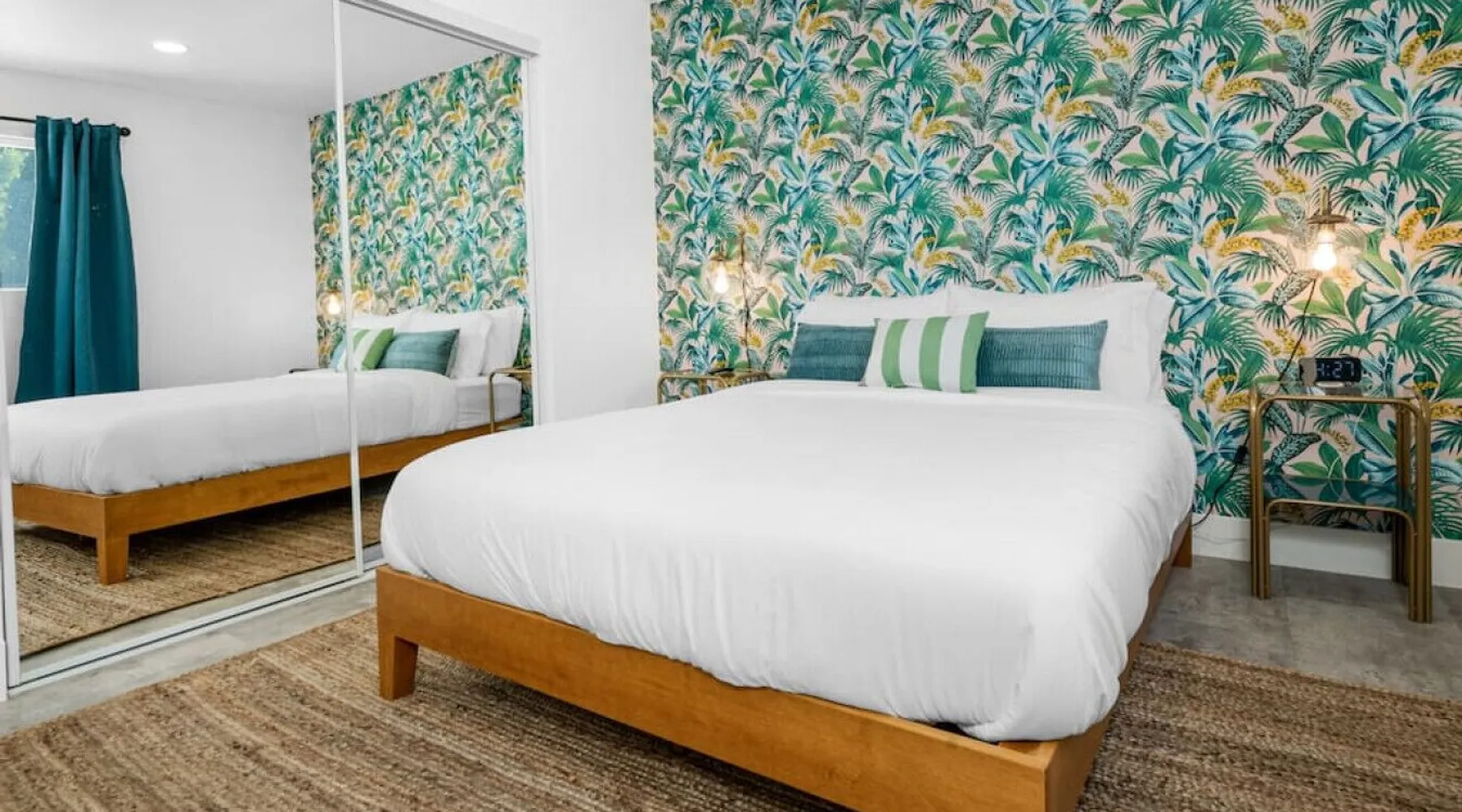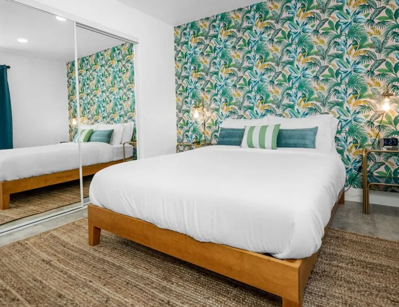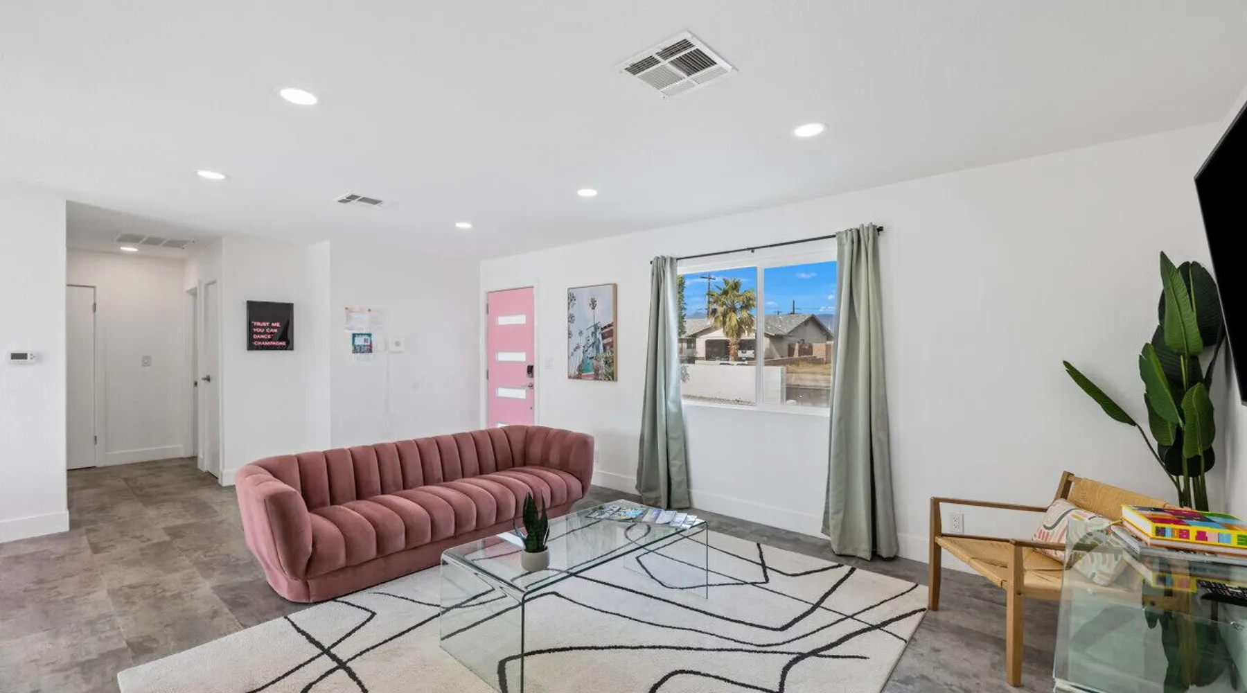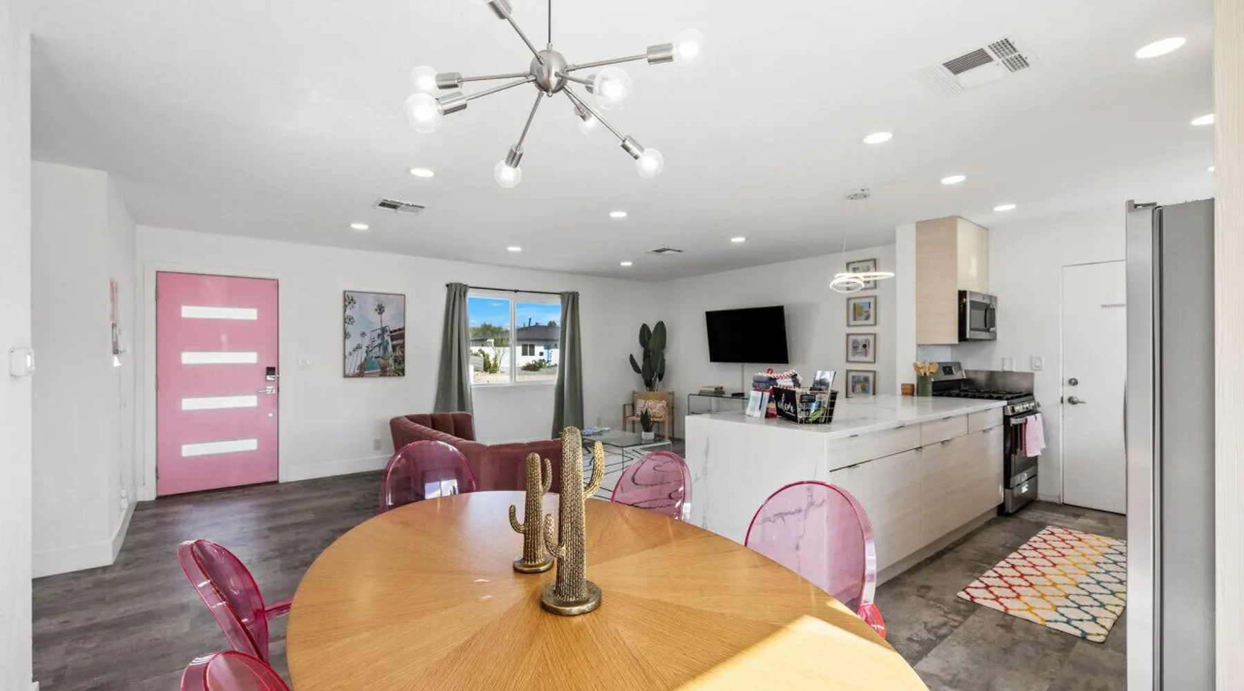 Where tranquility meets epic mountain views! Whether it's a bachelorette bash, a birthday celebration, or a pet-friendly retreat, our paradise has it all. Relax in style with stunning views of the San Jacinto from your heated saltwater pool, hot tub, or hammock. Enjoy outdoor dining, a cozy fire pit, and a fully equipped kitchen with complimentary coffee. With an IG-worthy mural, & just mins from Downtown Palm Springs, the Aerial Tramway, and the airport, your perfect getaway awaits! ☆ Recent Guest Review: "Just like the photos, very responsive and friendly host! Easy to find and great location if you want to enjoy your stay and not be bothered! Would definitely stay again! Such a cute and vibey place!” Cythally Backyard • Large salt water pool, with optional heating • 6x6 hot tub with mountain and sunset views • Sun lounge chairs, drink tables and sun umbrellas • Propane burning fire pit and lounge chairs • Outdoor dining table and chairs • Propane BBQ • Pool toys, floats, games and pump all available for your use • Large green turf grass for you to enjoy a game of corn hole • Pool towels Living room • Super comfortable couch, coffee table and armchairs • Smart TV with Roku, Netflix and Disney+ • Epic (and slightly competitive) evenings of board game fun! Dining room • Seating for 6 at a large table • Steps from the kitchen and outdoor area Kitchen • Brand new appliances including an oven, stove, microwave, dishwasher and a Whirlpool side by side refrigerator with water dispenser and ice machine • Complimentary tea and coffee station • KEURIG machine with coffee pods, cream and sugar • Pour over kettle with a wide selection of teas • Cooking basics- salt and pepper, cooking oil, foil, plastic wrap, baking paper • High velocity blender • Non-stick frying pans and cooking utensils • Plastic cups for outdoor and pool use • BBQ tools Laundry • Washer & dryer with complimentary laundry detergent and dryer napkins Bedrooms • First bedroom- Queen bed, dresser, lamps smart TV with Roku, Netflix and Disney+, private en-suite bathroom with walk in shower, and pack-and-play if you're traveling with your mini • Second bedroom- Queen bed, dresser, lamps, smart TV with Roku, Netflix and Disney+, direct access to backyard and private pool and yard entrance • Bedroom 3- One full over full bunk bed • All bedrooms equip with smart alarm clocks, built-in full-length mirror sliding closets with coat hangers, luggage stands and extra pillows and bedding Bathrooms • Master bathroom has direct access from the master bedroom it has a smart Bluetooth multimedia mirror, so you can listen to your music while in the bed or bathroom • Both bathrooms are equipped with shampoo, conditioner, body wash, complementary bathroom amenities including hair dryers and makeup towels. Storage closet •Located in the hallway, our storage closet is stocked with any extra things you may need to make your vacation feel more like a home. Including a sounds machine, extra pool and diving toys, a pool toy pump, toolbox, first aid kit, iron, ironing board, bug spray, sunscreen, aloe vera, fly swatters, a vacuum, steam mop and clean mop pads, broom and dustpan, laundry basket, close drying rack, extra propane tank and the awning handle to open the shade pergola. Distance from home to popular attractions ☆ Downtown Palm Springs: 3.5 miles ☆ Palm Springs Aerial Tramway: 5 miles ☆ Palm Springs International Airport: 5.9 miles ☆ Cabazon Outlets: 17 miles ☆ The Living Desert Zoo and Gardens: 24 miles ☆ Empire Polo Club: 29 miles ☆ Joshua Tree National Park: 36 miles ☆ Pet-Friendly Accommodations: We welcome pets for a fee of $150 per pet, per stay. Please note that a pet fee will be applied to cover the cleaning of pet hair. If any waste beyond hair (such as urine or feces) is found, an additional cleaning fee of $35-$50 will be charged. Cleaning up after your pet is your responsibility, pets should not be left unattended in the home and are not allowed in pool. *Additional pet fees (plus tax) will be processed through our guest portal after your reservation is confirmed. Kindly let us know if you’ll be traveling with a pet. Thank you for your cooperation! ☆ Hot Tub: The use of the hot tub is included in your nightly rate, it can be heated from the backyard it takes about 30 minutes to get to 100-102 degrees. ☆ Pool heater: The pool requires a lot of natural gas to heat, so using this will incur a daily fee of $100 (Plus Tax). This will be billed prior to your arrival if you request it. Our pool cleaner comes every Monday and Thursday; he comes and goes through the side gate and will not worry you throughout your stay. ☆ Desert living: This home, like many in Palm Springs, is located in the desert, so it's natural for sand to be around. On windy days, some sand and leaves may blow into the pool. While our pool cleaners do their best to keep it clear, there may occasionally be some debris in the water. We provide skimmers for your convenience if you'd like to remove any leaves or sand yourself. ☆ Bachelorette Parties: Given the design of our home, it is a popular choice for bachelorette celebrations. In collaboration with West Coast Bach, we provide enhanced services such as balloon arches, photo backdrops, marquee letters, bubbly/tequila bars, fridge stocking, charcuterie boards, and even cabana boy services. Our goal is to streamline your preparations and create a dreamy setup for your event. If you're booking for a bachelorette party and require assistance with these services, please inform us upon booking! ☆ Location: Our home is located in the up-and-coming neighborhood of Tram View Heights, a community that reflects the evolving character of Palm Springs. The area is experiencing redevelopment and growth, adding to its vibrant and dynamic atmosphere. Like other parts of Palm Springs. Like many urban areas, you may notice a visible homeless popul