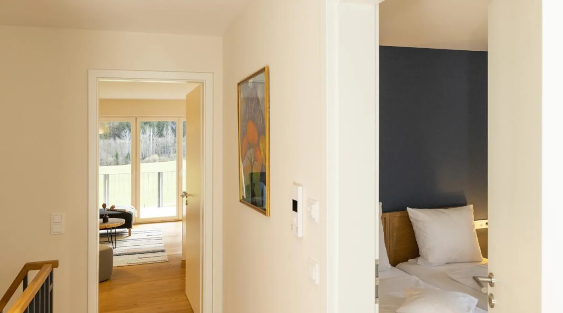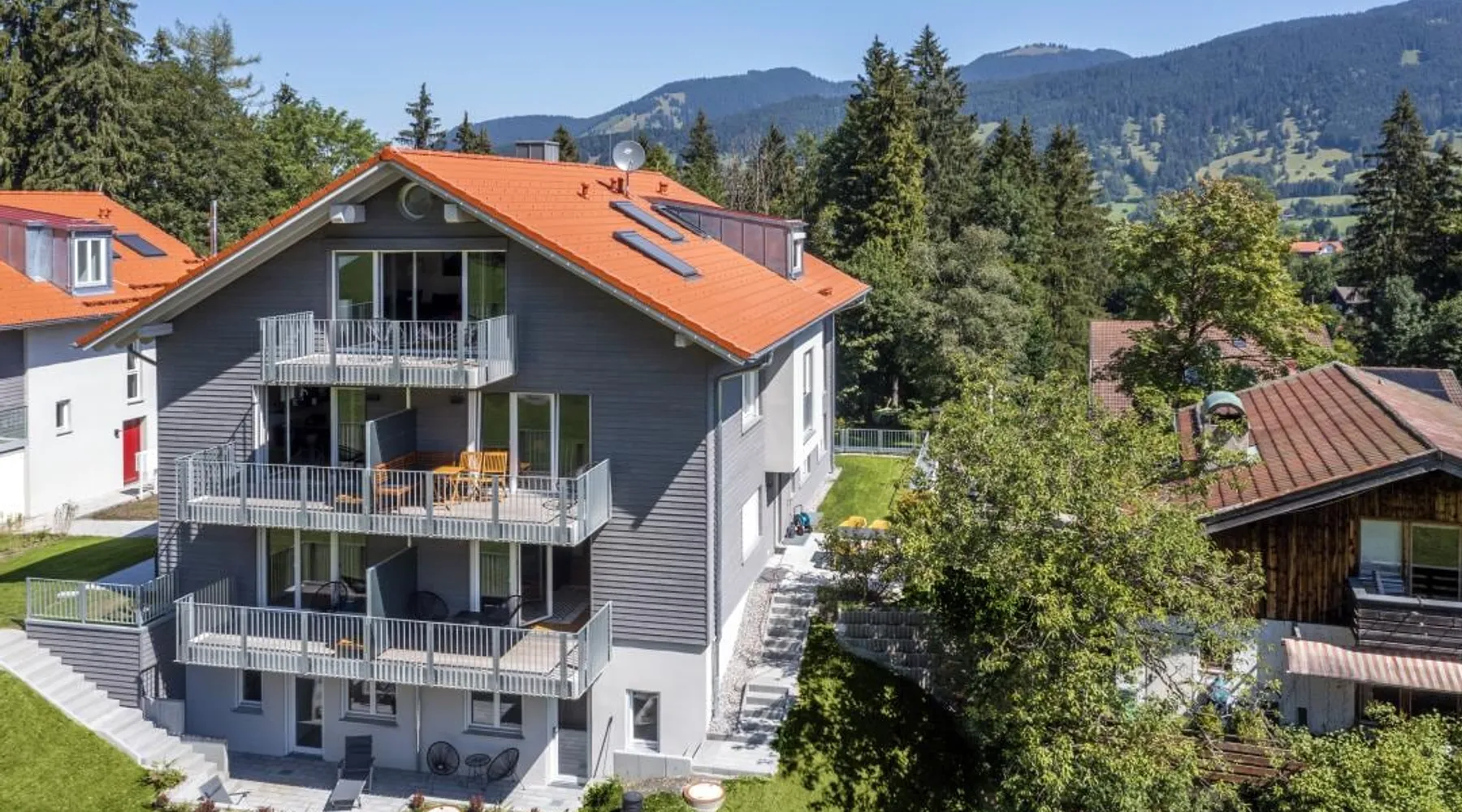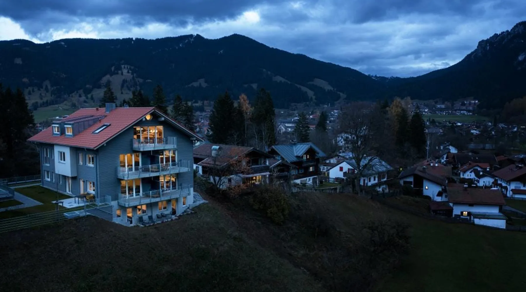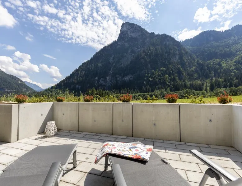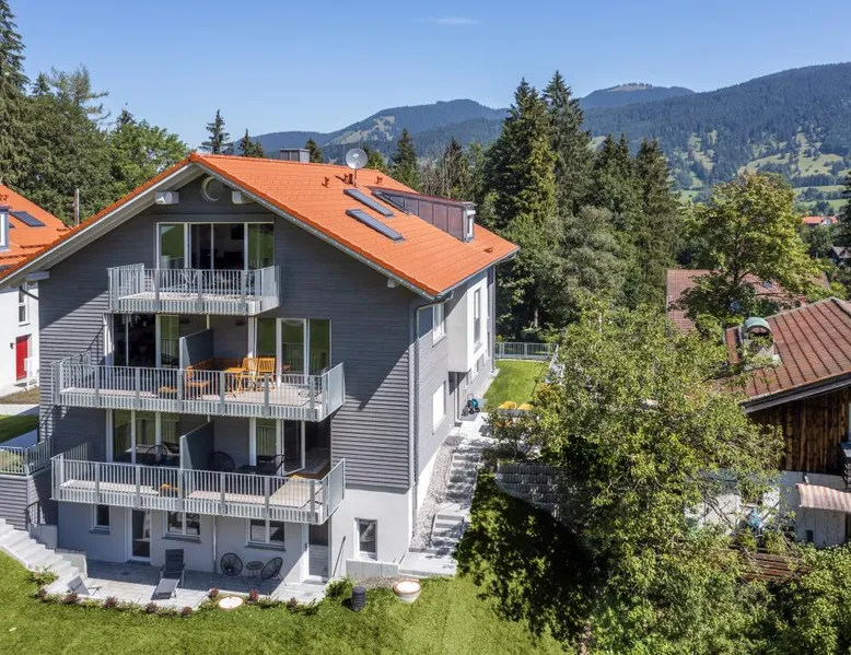 The comfortable and 5-star DTV-classified holiday apartment “Friedenshöhe 2” is located in an apartment house newly built in 2022, which is characterized by high-quality materials and modern comfort. Covering an area of approximately 96 square meters, this maisonette apartment (ground floor and basement) offers you a generous amount of space: 3 comfortable bedrooms, 3 bathrooms in Italian porcelain stoneware and furnishings from Villeroy & Boch as well as a large living room with The space high-quality parquet made of oiled oak floorboards and designer -Furniture (Brühl & Sippolt, Rolf Benz), large tv and soundbar await you. The adjacent open kitchen is equipped with everything you need for a relaxing stay. a sauna in the basement invites you to relax, bathrobes and sauna towels are available for you. On the 3 outdoor terraces of this apartment you can thoroughly enjoy the beautiful view of the surrounding mountains. Your four-legged friends are also very welcome. The house has a washing machine, dryer, ironing board and iron as well as a storage room for skis and bicycles. Baby cot and high chair are available upon request. You can park your car in the underground car park belonging to the house (height 2. 00 m). The elevator takes you directly to your holiday apartment without barriers. The “Friedenshöhe” apartment house is in a very quiet location just above the center of Oberammergau. In about 15 minutes on foot you can reach the town center with various sights (Passion Play House and much more), the tourist information office, the train station and many shopping opportunities. a variety of restaurants are available for culinary holiday enjoyment. In addition, Oberammergau and the Ammergau Alps region offer you countless opportunities for cultural and sporting leisure activities at any time of the year. Welcome – we look forward to your visit!