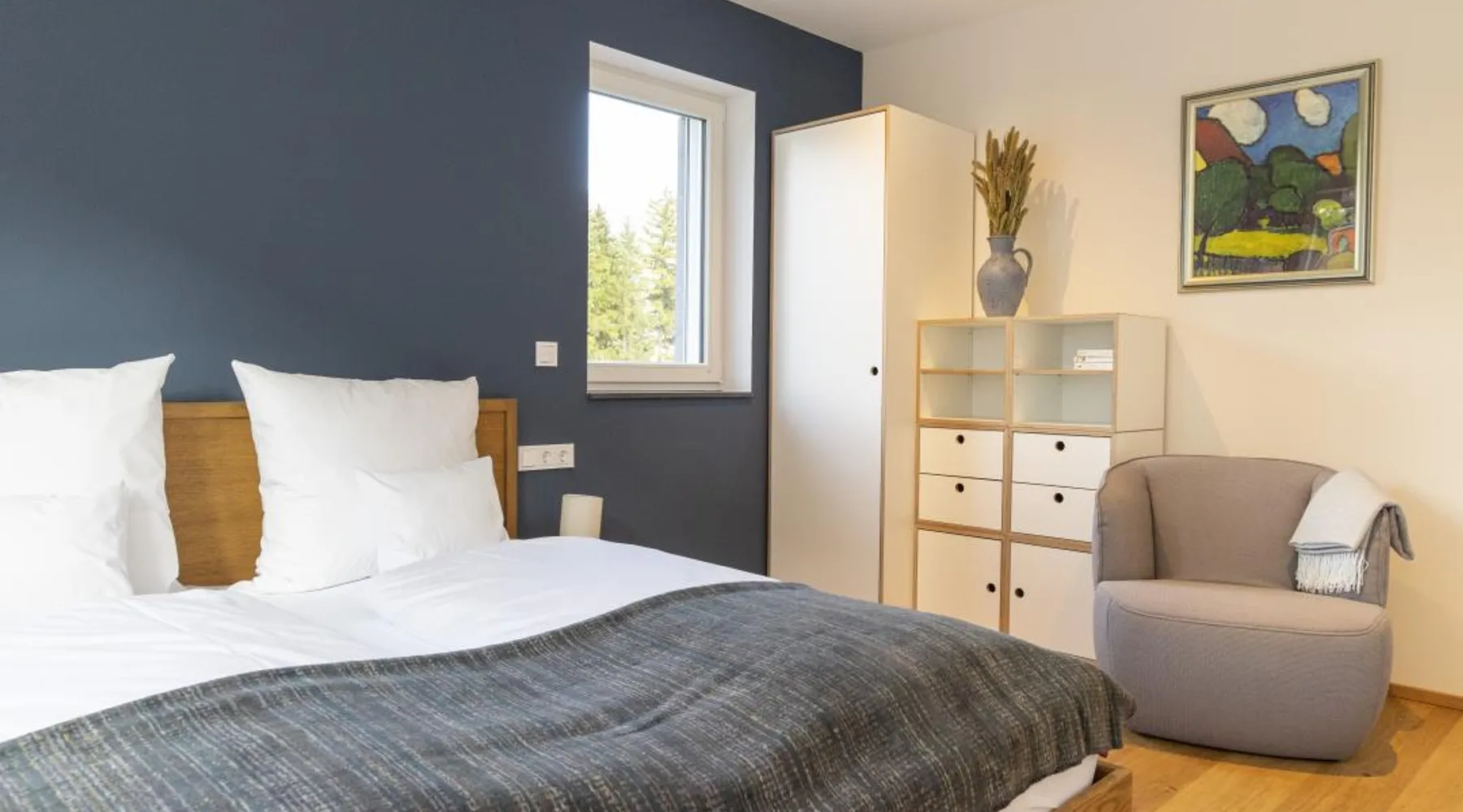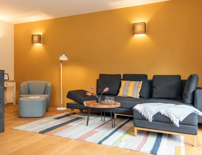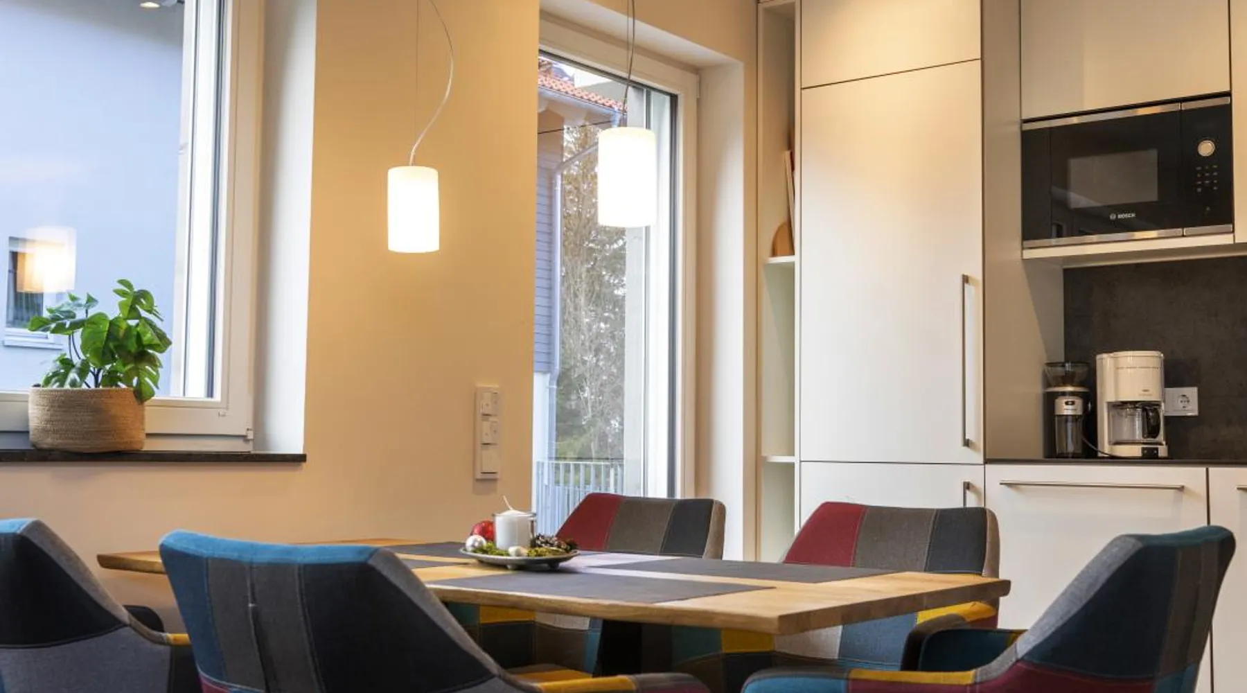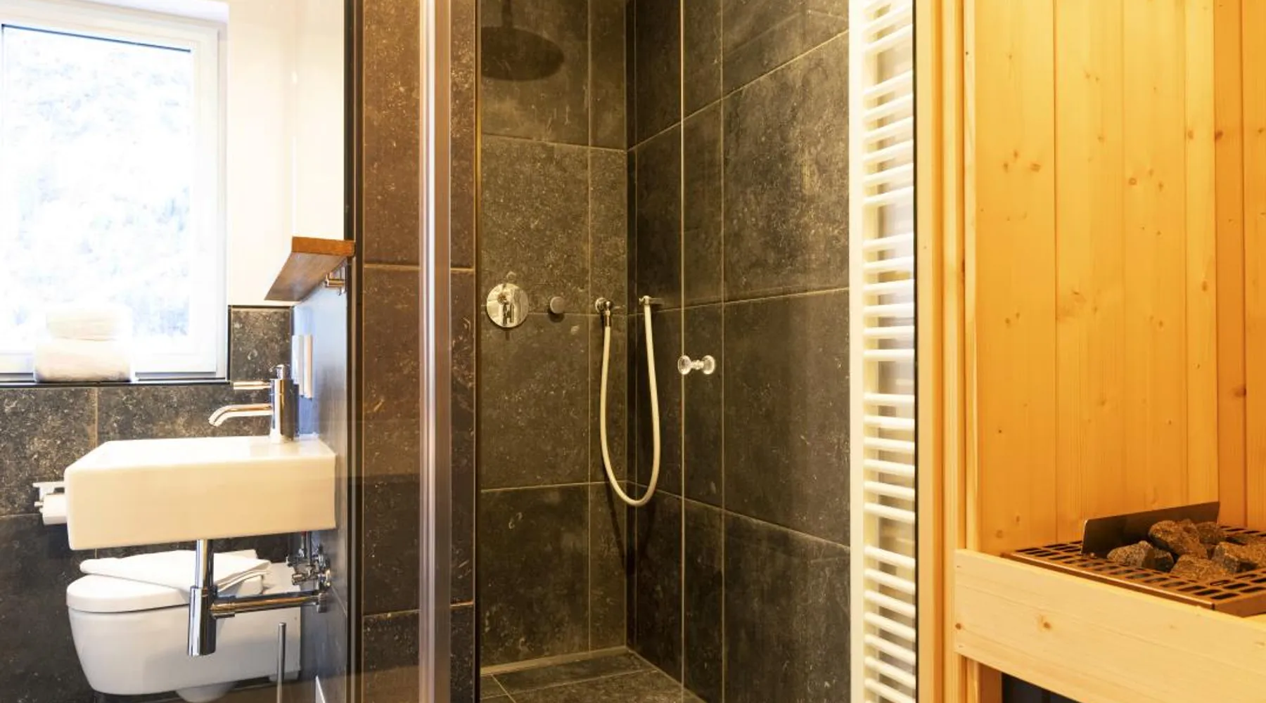 The comfortable and 5-star DTV-classified holiday apartment “Friedenshöhe 2” is located in an apartment house newly built in 2022, which is characterized by high-quality materials and modern comfort. Covering an area of approximately 96 square meters, this maisonette apartment (ground floor and basement) offers you a generous amount of space: 3 comfortable bedrooms, 3 bathrooms in Italian porcelain stoneware and furnishings from Villeroy & Boch as well as a large living room with The space high-quality parquet made of oiled oak floorboards and designer -Furniture (Brühl & Sippolt, Rolf Benz), large tv and soundbar await you. The adjacent open kitchen is equipped with everything you need for a relaxing stay. a sauna in the basement invites you to relax, bathrobes and sauna towels are available for you. On the 3 outdoor terraces of this apartment you can thoroughly enjoy the beautiful view of the surrounding mountains. Your four-legged friends are also very welcome. The house has a washing machine, dryer, ironing board and iron as well as a storage room for skis and bicycles. Baby cot and high chair are available upon request. You can park your car in the underground car park belonging to the house (height 2. 00 m). The elevator takes you directly to your holiday apartment without barriers. The “Friedenshöhe” apartment house is in a very quiet location just above the center of Oberammergau. In about 15 minutes on foot you can reach the town center with various sights (Passion Play House and much more), the tourist information office, the train station and many shopping opportunities. a variety of restaurants are available for culinary holiday enjoyment. In addition, Oberammergau and the Ammergau Alps region offer you countless opportunities for cultural and sporting leisure activities at any time of the year. Welcome – we look forward to your visit!