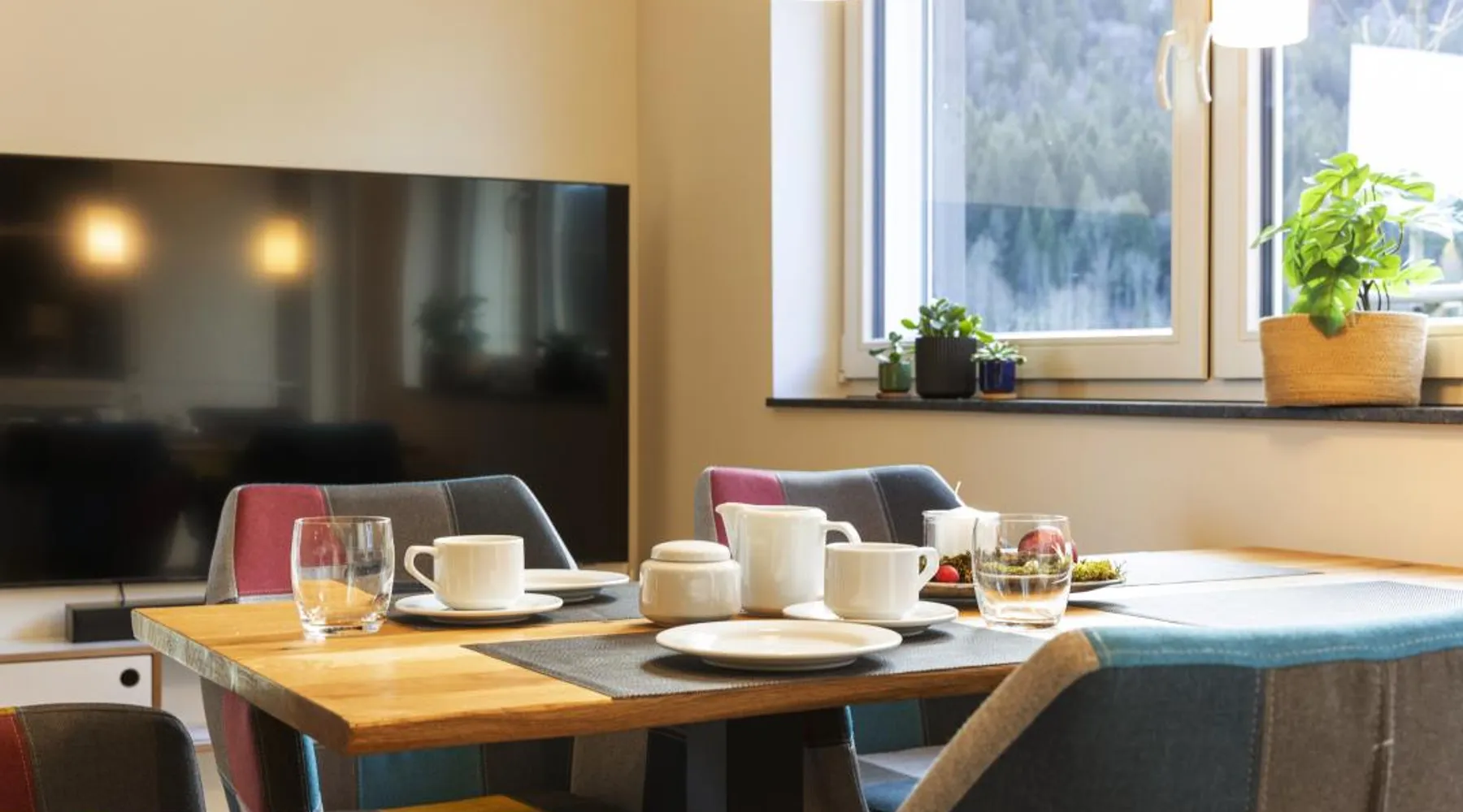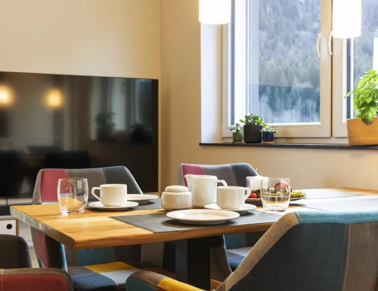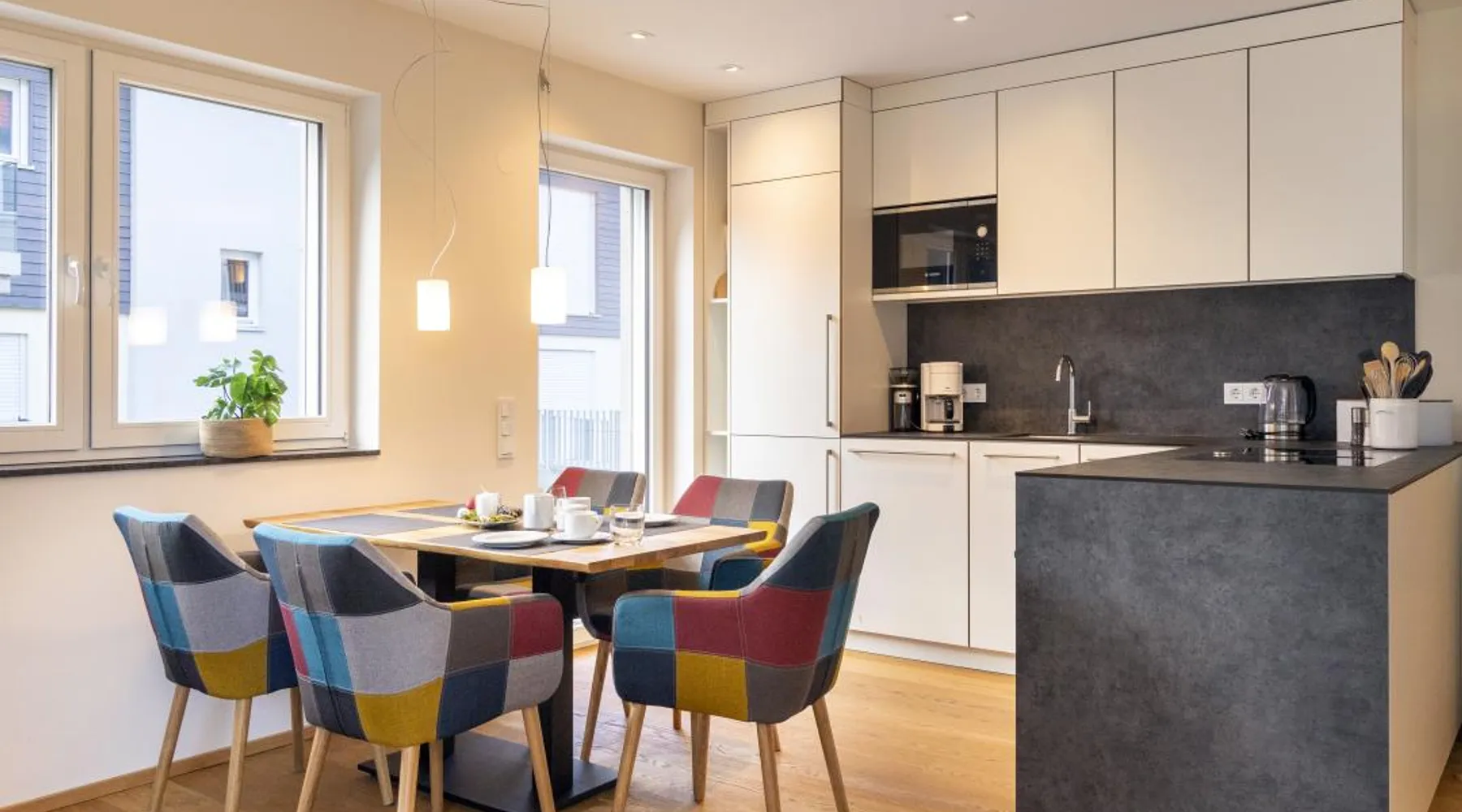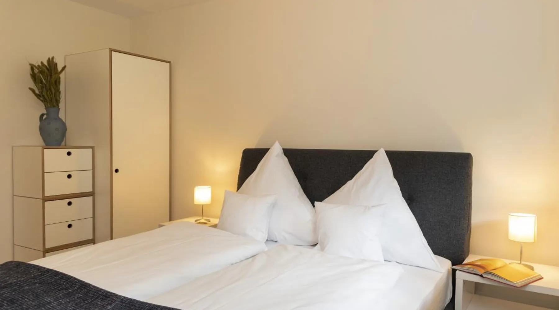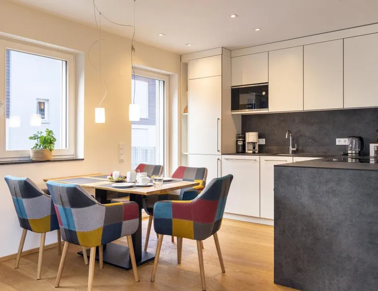 The comfortable and 5-star DTV-classified holiday apartment “Friedenshöhe 2” is located in an apartment house newly built in 2022, which is characterized by high-quality materials and modern comfort. Covering an area of approximately 96 square meters, this maisonette apartment (ground floor and basement) offers you a generous amount of space: 3 comfortable bedrooms, 3 bathrooms in Italian porcelain stoneware and furnishings from Villeroy & Boch as well as a large living room with The space high-quality parquet made of oiled oak floorboards and designer -Furniture (Brühl & Sippolt, Rolf Benz), large tv and soundbar await you. The adjacent open kitchen is equipped with everything you need for a relaxing stay. a sauna in the basement invites you to relax, bathrobes and sauna towels are available for you. On the 3 outdoor terraces of this apartment you can thoroughly enjoy the beautiful view of the surrounding mountains. Your four-legged friends are also very welcome. The house has a washing machine, dryer, ironing board and iron as well as a storage room for skis and bicycles. Baby cot and high chair are available upon request. You can park your car in the underground car park belonging to the house (height 2. 00 m). The elevator takes you directly to your holiday apartment without barriers. The “Friedenshöhe” apartment house is in a very quiet location just above the center of Oberammergau. In about 15 minutes on foot you can reach the town center with various sights (Passion Play House and much more), the tourist information office, the train station and many shopping opportunities. a variety of restaurants are available for culinary holiday enjoyment. In addition, Oberammergau and the Ammergau Alps region offer you countless opportunities for cultural and sporting leisure activities at any time of the year. Welcome – we look forward to your visit!